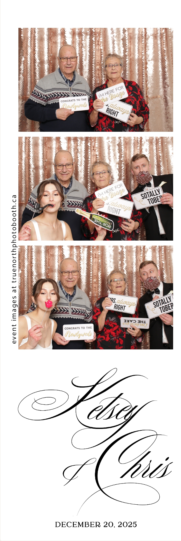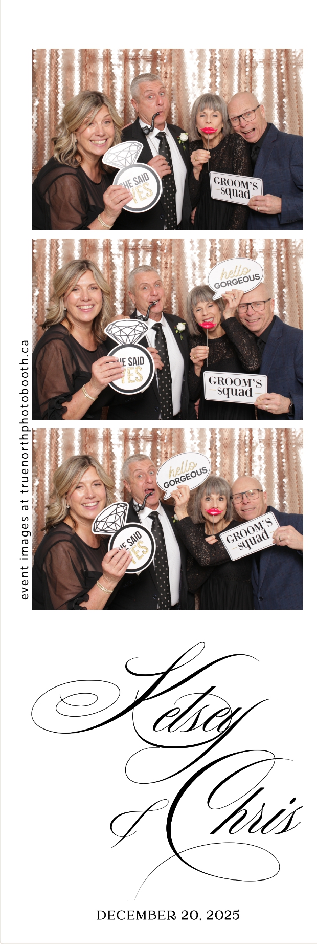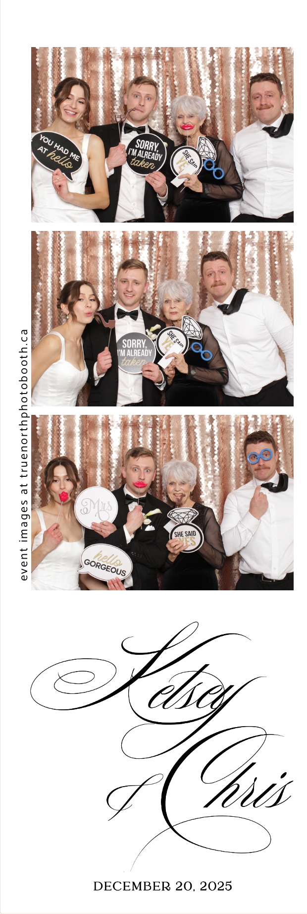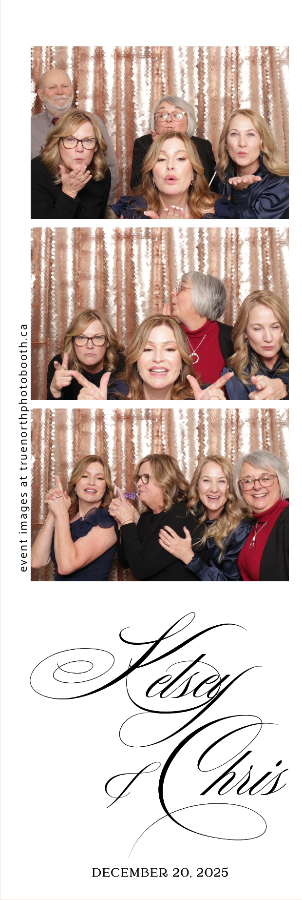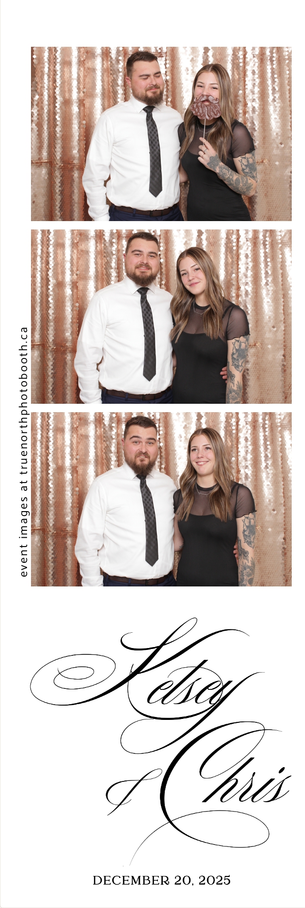 Guests enjoyed capturing memories at the interactive photo booth, featuring 2X6 custom photo strips prints and a stunning champagne sequin backdrop that added a soft, romantic glow to every photo. The fun and stylish photo experience gave everyone meaningful keepsakes to take home, making Kelsey & Chris’s special day even more memorable.
