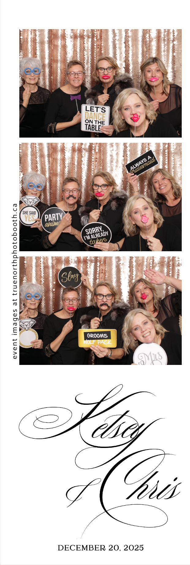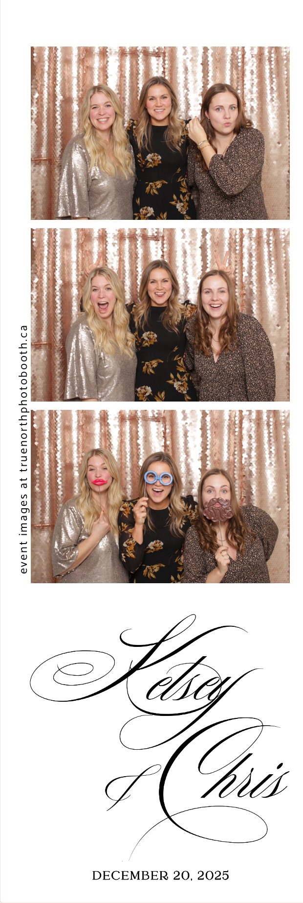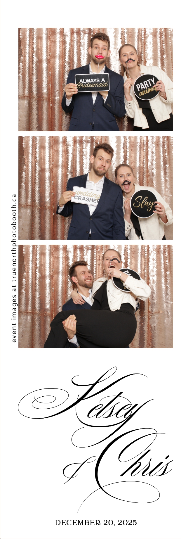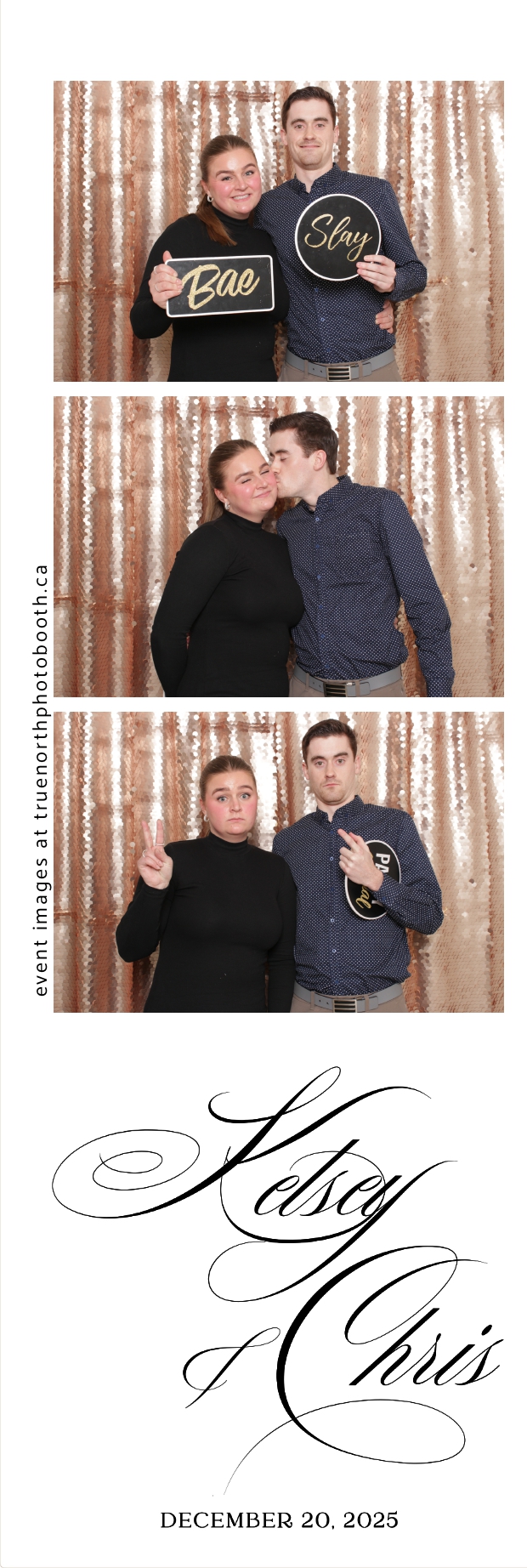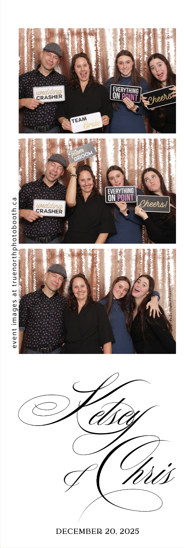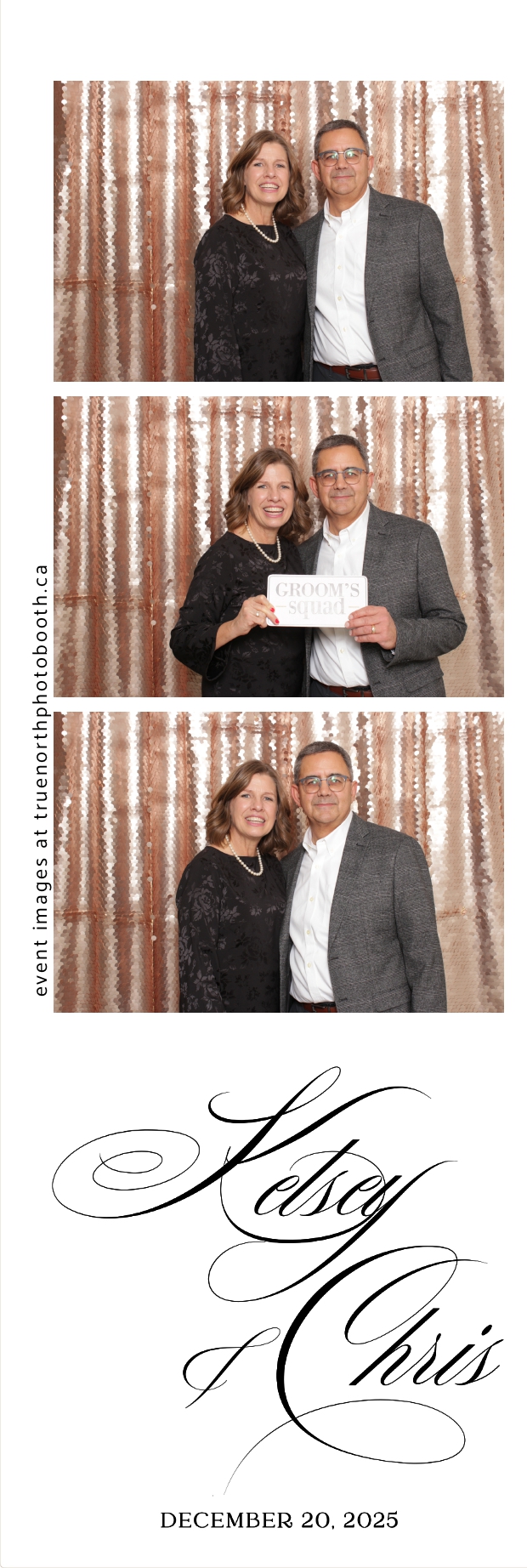 Guests enjoyed capturing memories at the interactive photo booth, featuring 2X6 custom photo strips prints and a stunning champagne sequin backdrop that added a soft, romantic glow to every photo. The fun and stylish photo experience gave everyone meaningful keepsakes to take home, making Kelsey & Chris’s special day even more memorable.