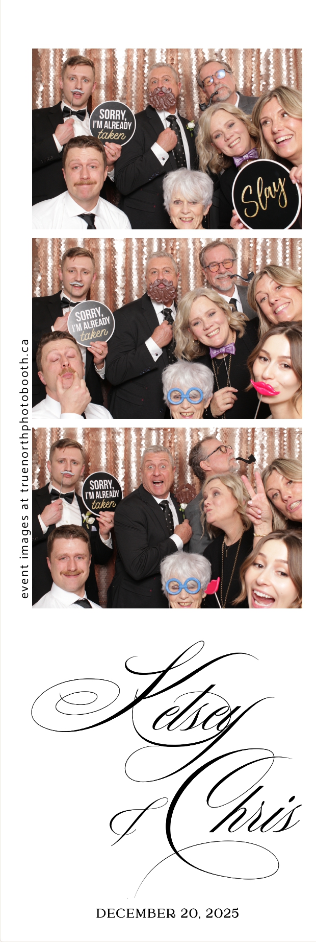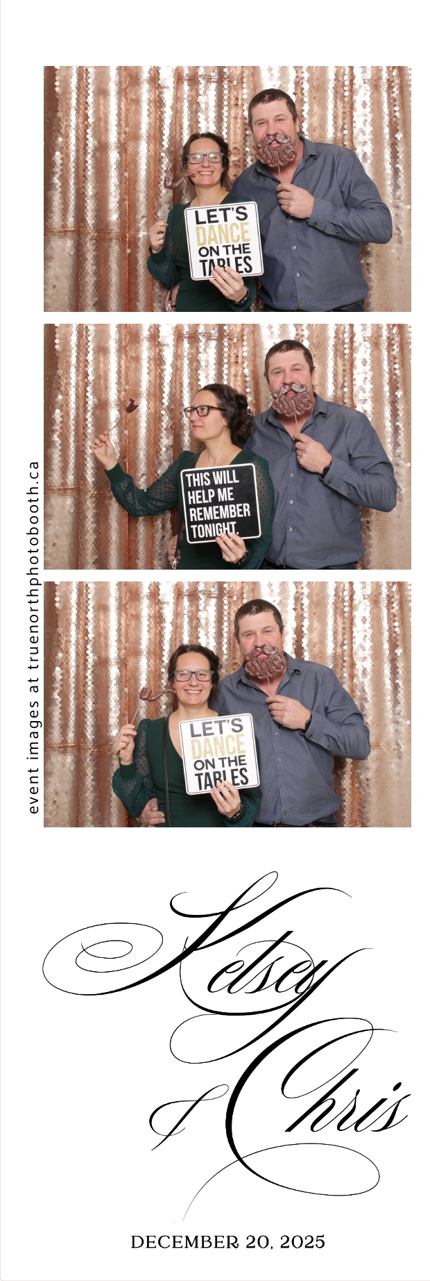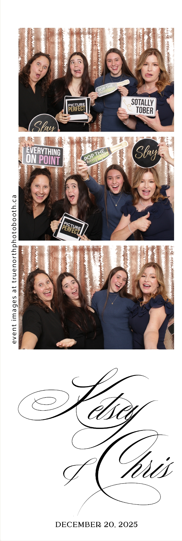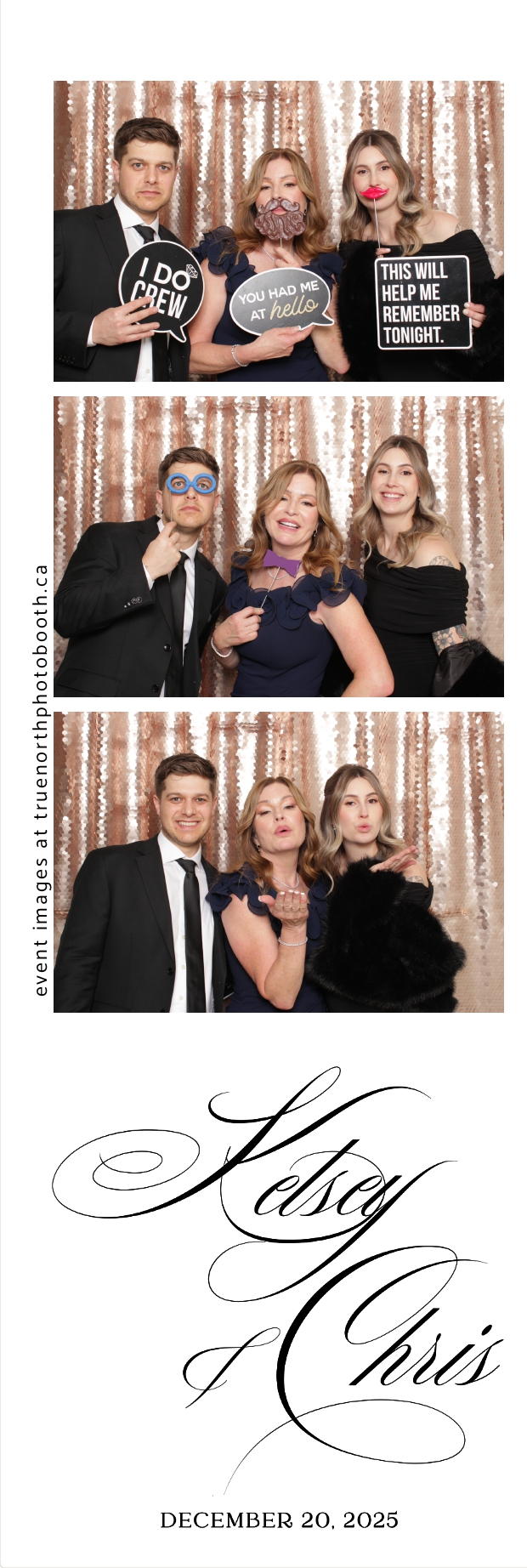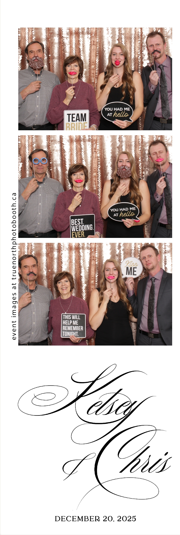 Guests enjoyed capturing memories at the interactive photo booth, featuring 2X6 custom photo strips prints and a stunning champagne sequin backdrop that added a soft, romantic glow to every photo. The fun and stylish photo experience gave everyone meaningful keepsakes to take home, making Kelsey & Chris’s special day even more memorable.