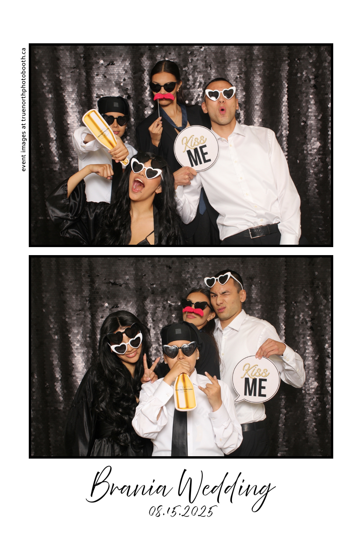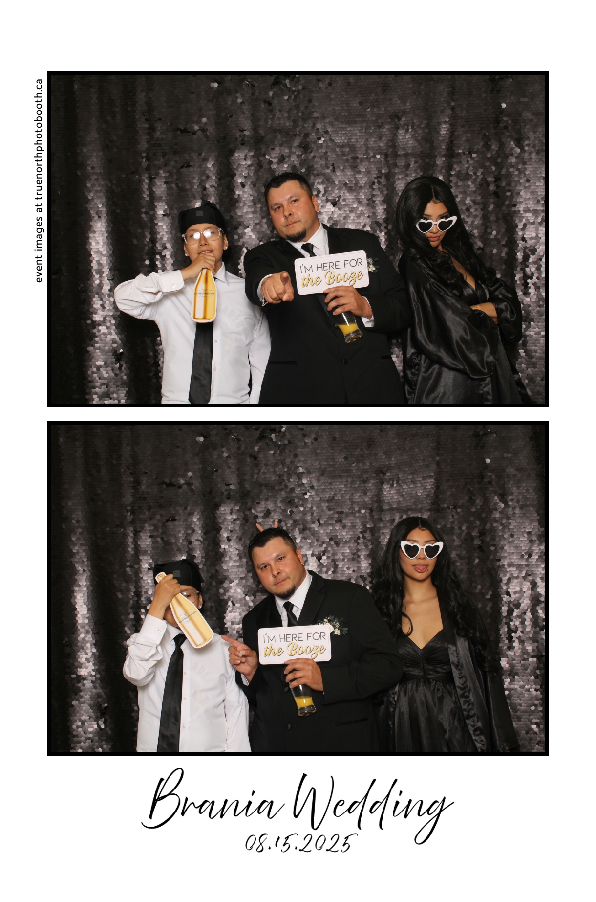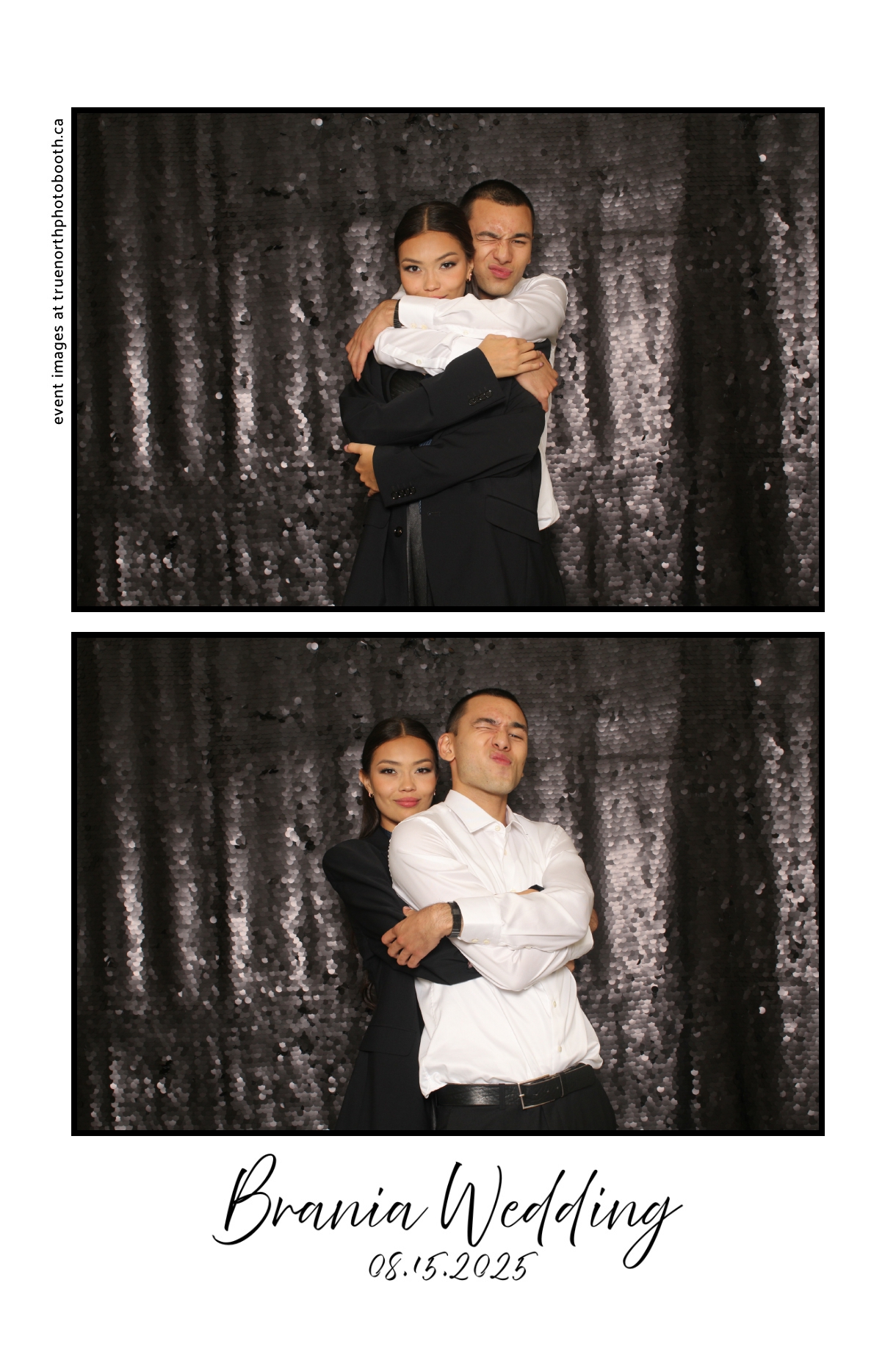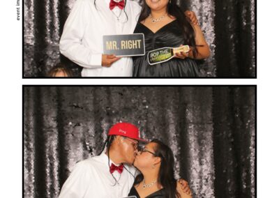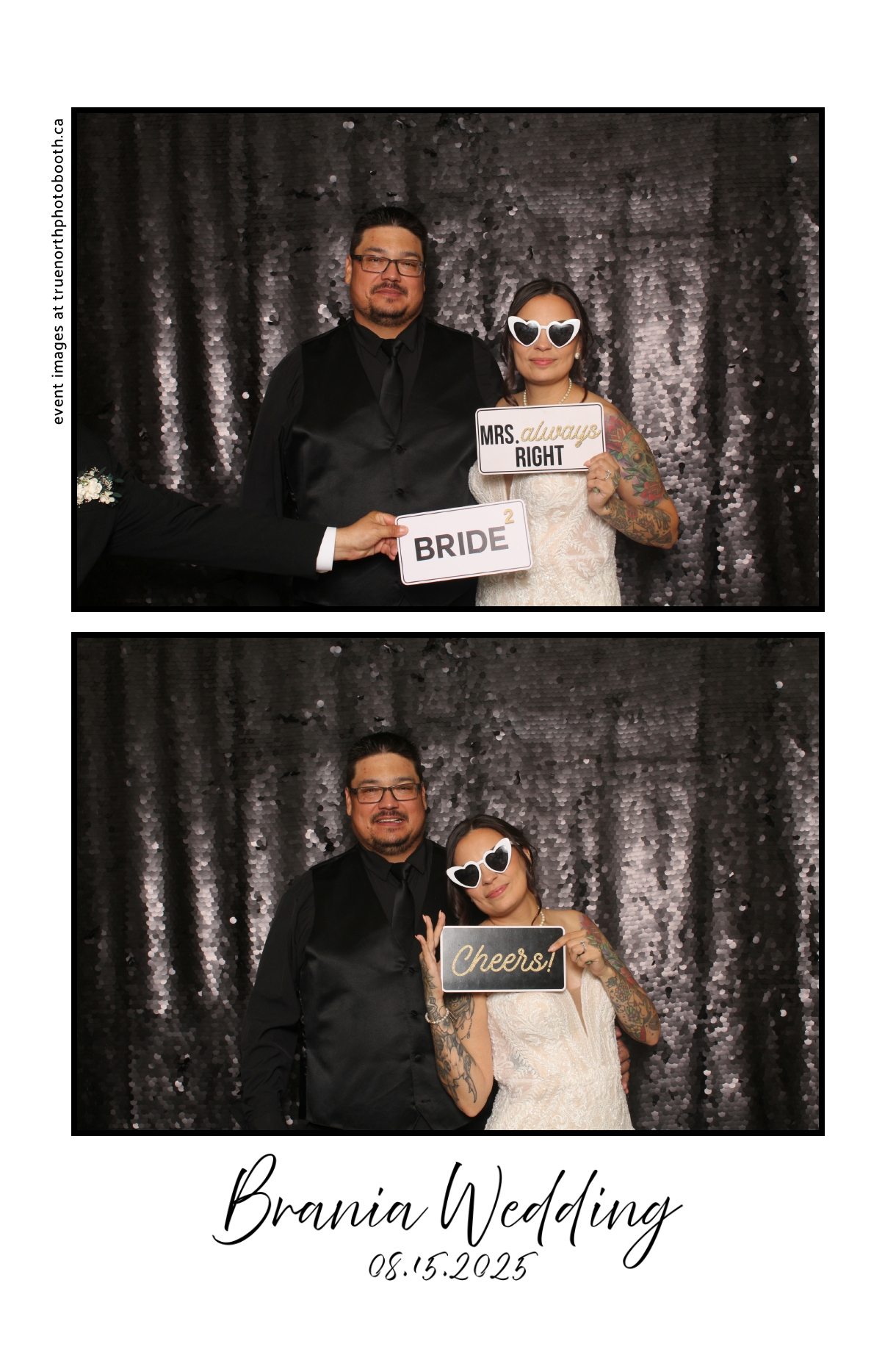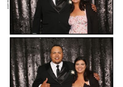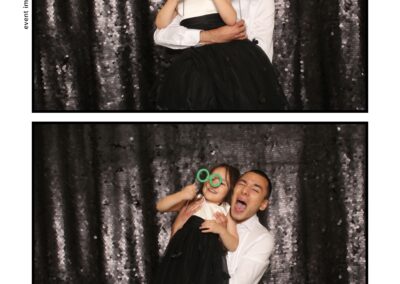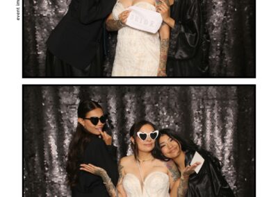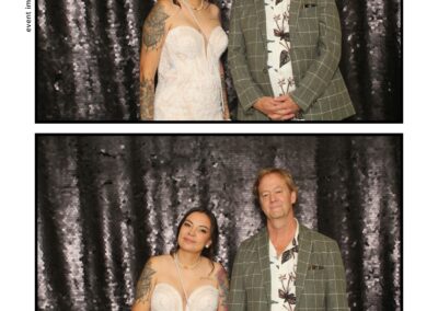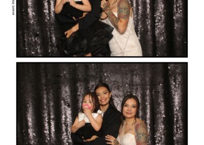 The photo booth quickly became a highlight of the evening, bringing friends and family together to laugh, pose, and capture unforgettable memories. From heartfelt moments to lighthearted fun, every photo was a reflection of the joy shared by Krista & Fred and their loved ones. The combination of the shimmering backdrop and custom-designed photo strips made the celebration both elegant and entertaining, ensuring that the wedding will be remembered for years to come.