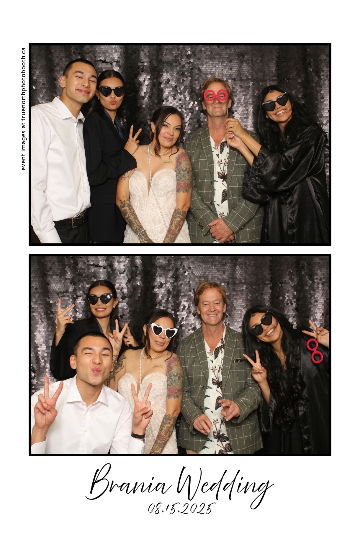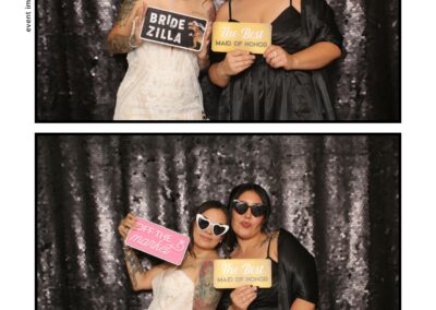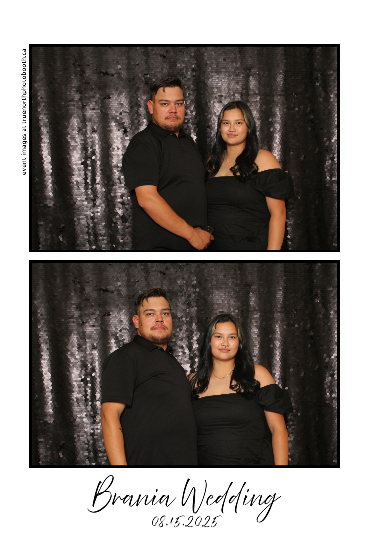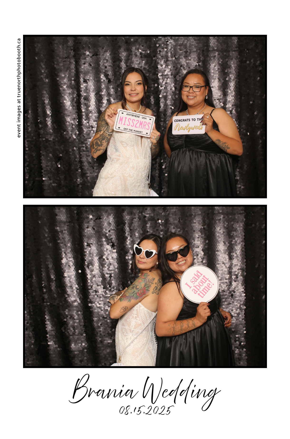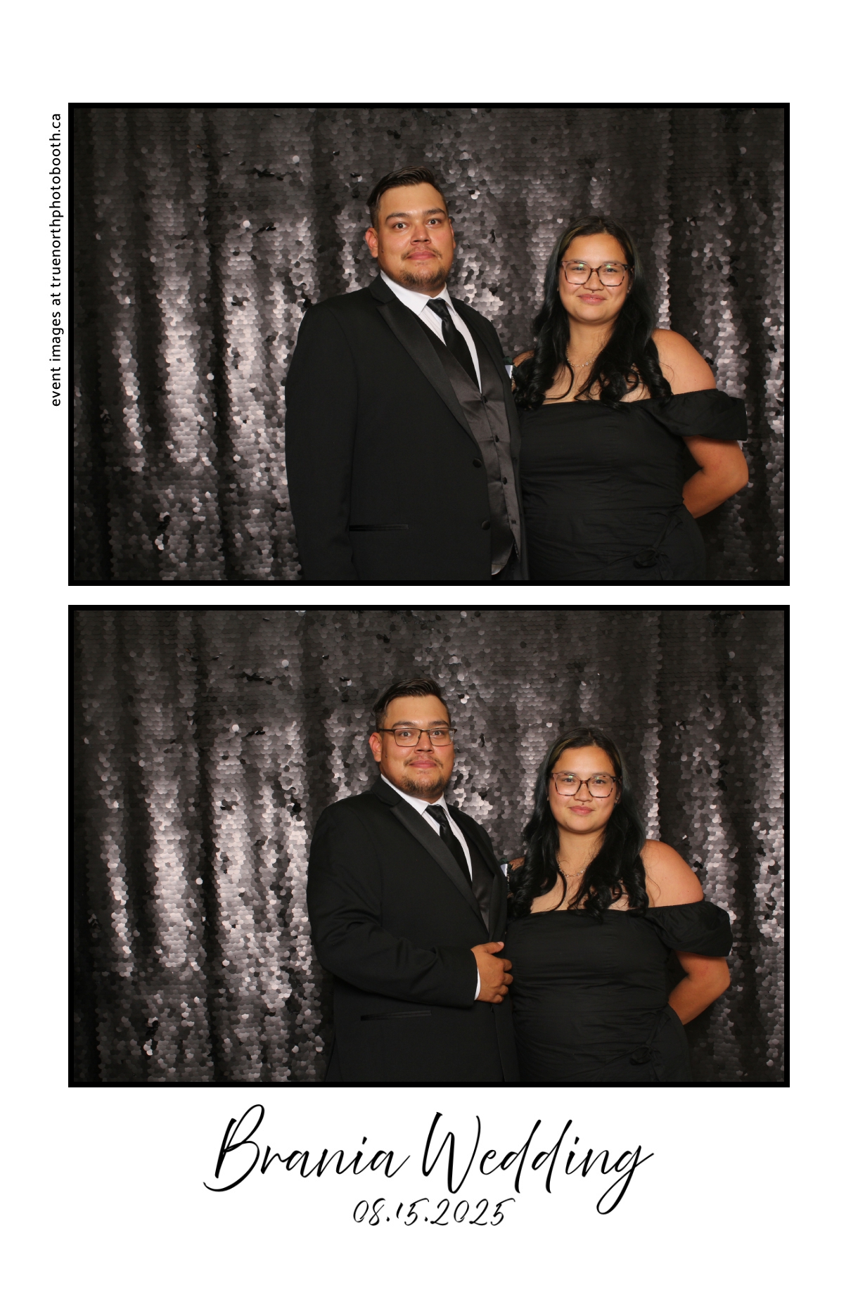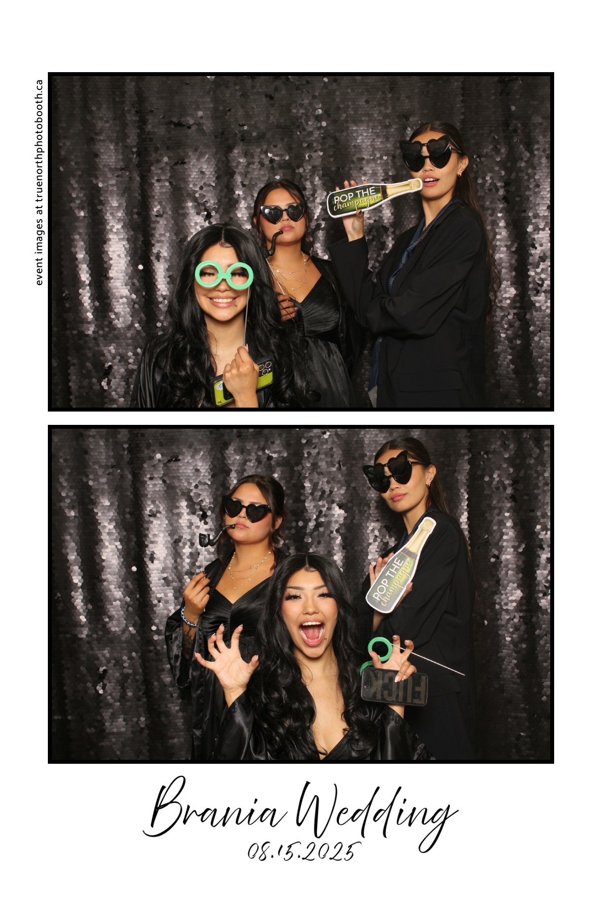 The photo booth quickly became a highlight of the evening, bringing friends and family together to laugh, pose, and capture unforgettable memories. From heartfelt moments to lighthearted fun, every photo was a reflection of the joy shared by Krista & Fred and their loved ones. The combination of the shimmering backdrop and custom-designed photo strips made the celebration both elegant and entertaining, ensuring that the wedding will be remembered for years to come.