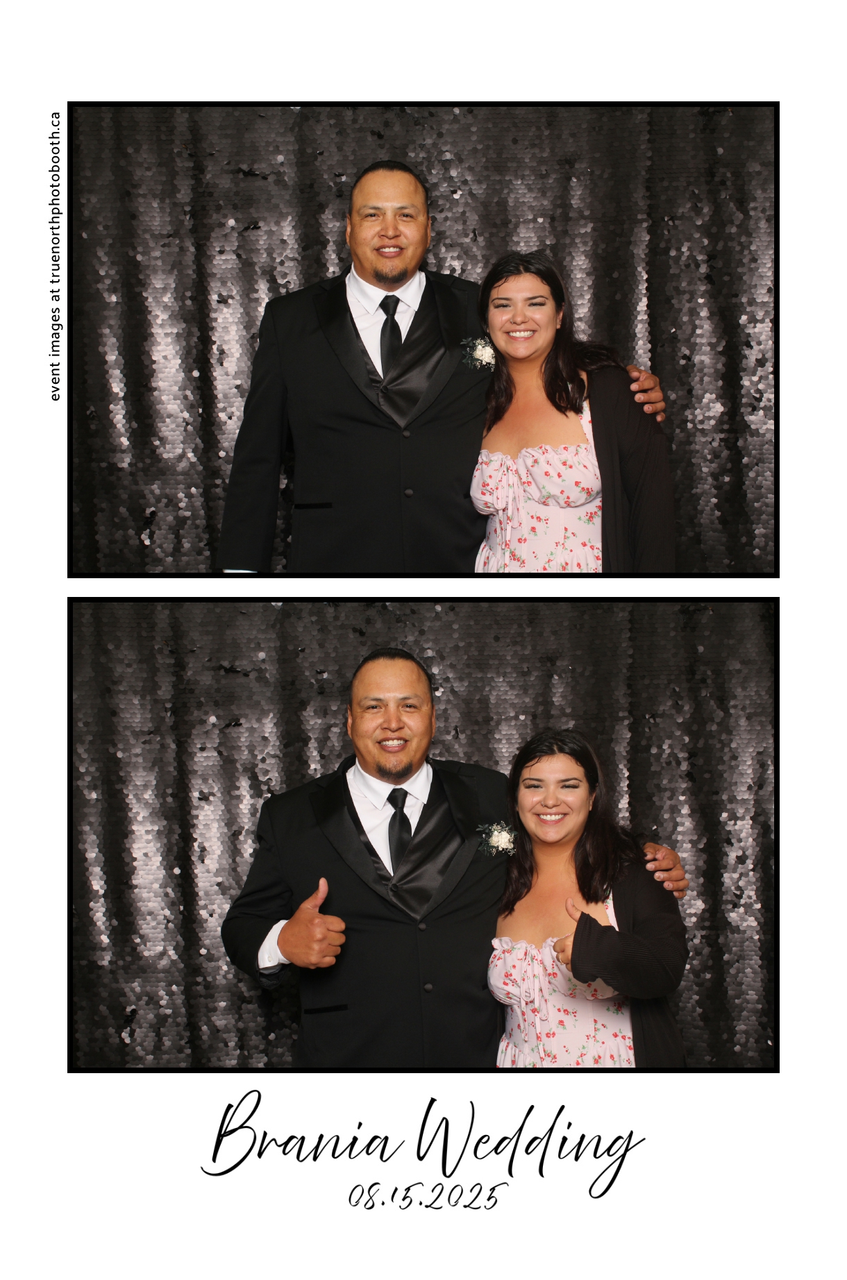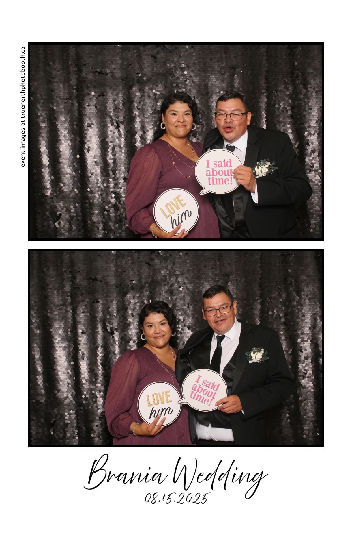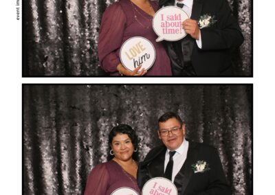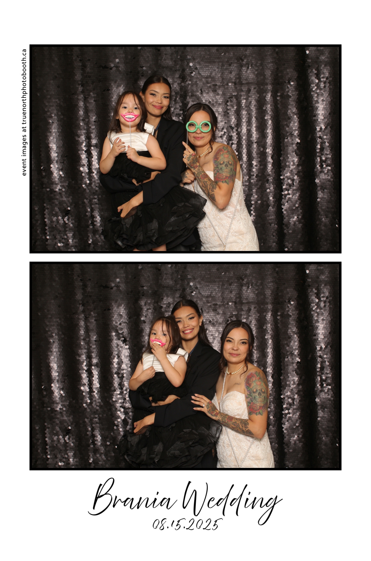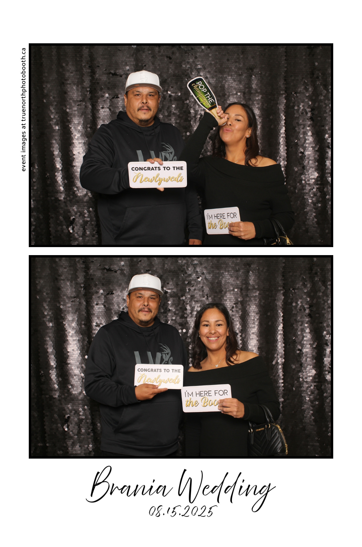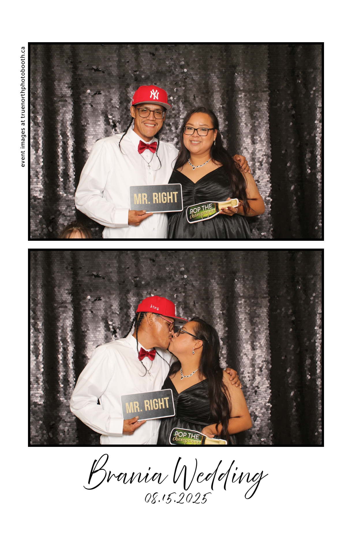 The photo booth quickly became a highlight of the evening, bringing friends and family together to laugh, pose, and capture unforgettable memories. From heartfelt moments to lighthearted fun, every photo was a reflection of the joy shared by Krista & Fred and their loved ones. The combination of the shimmering backdrop and custom-designed photo strips made the celebration both elegant and entertaining, ensuring that the wedding will be remembered for years to come.
