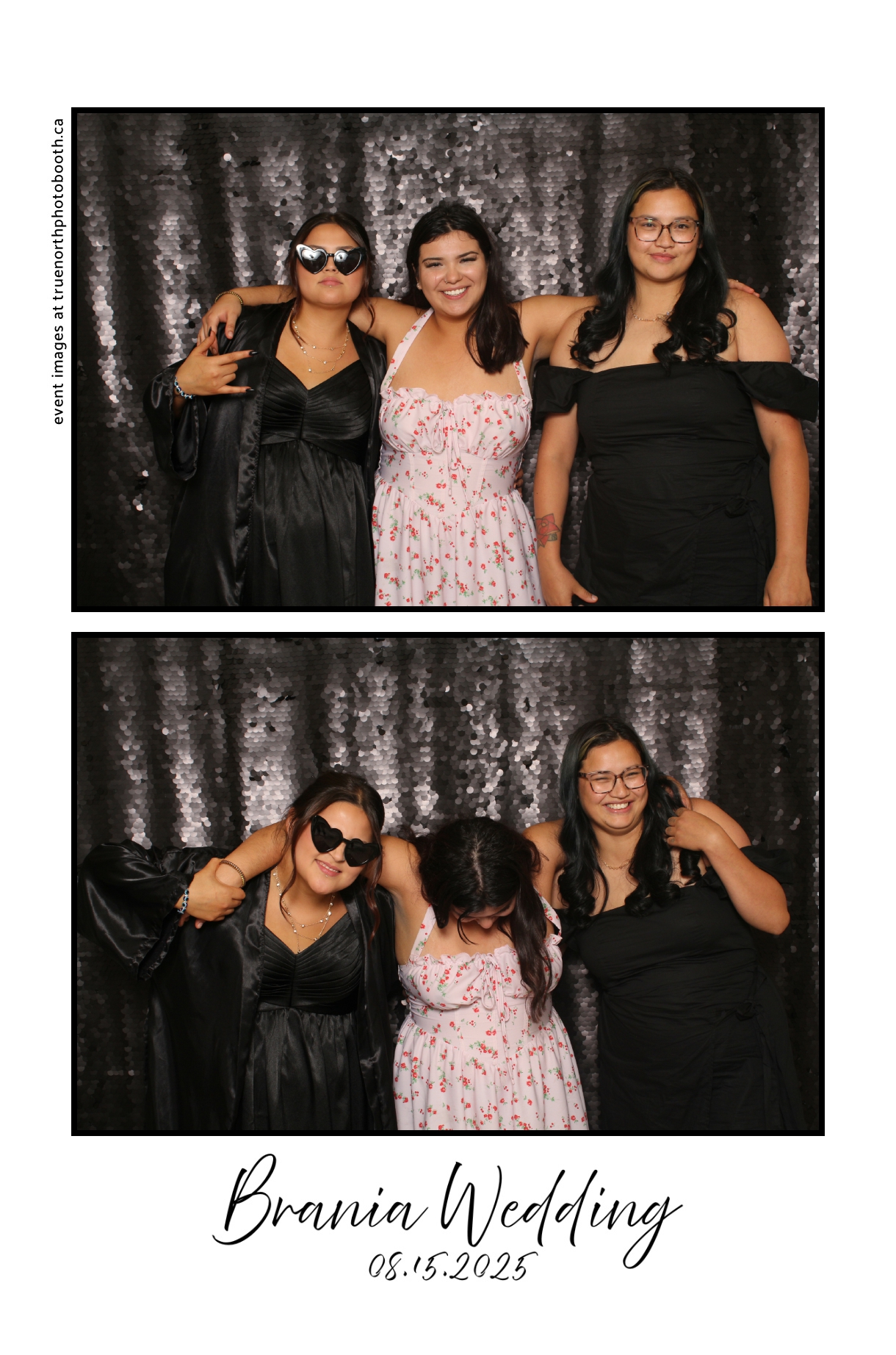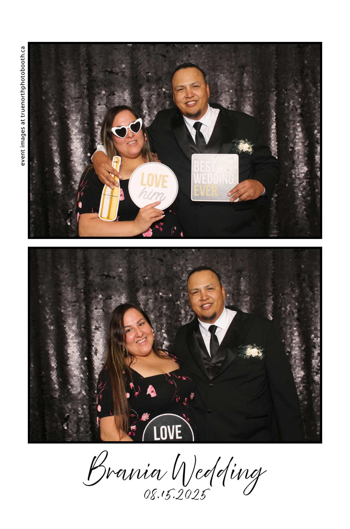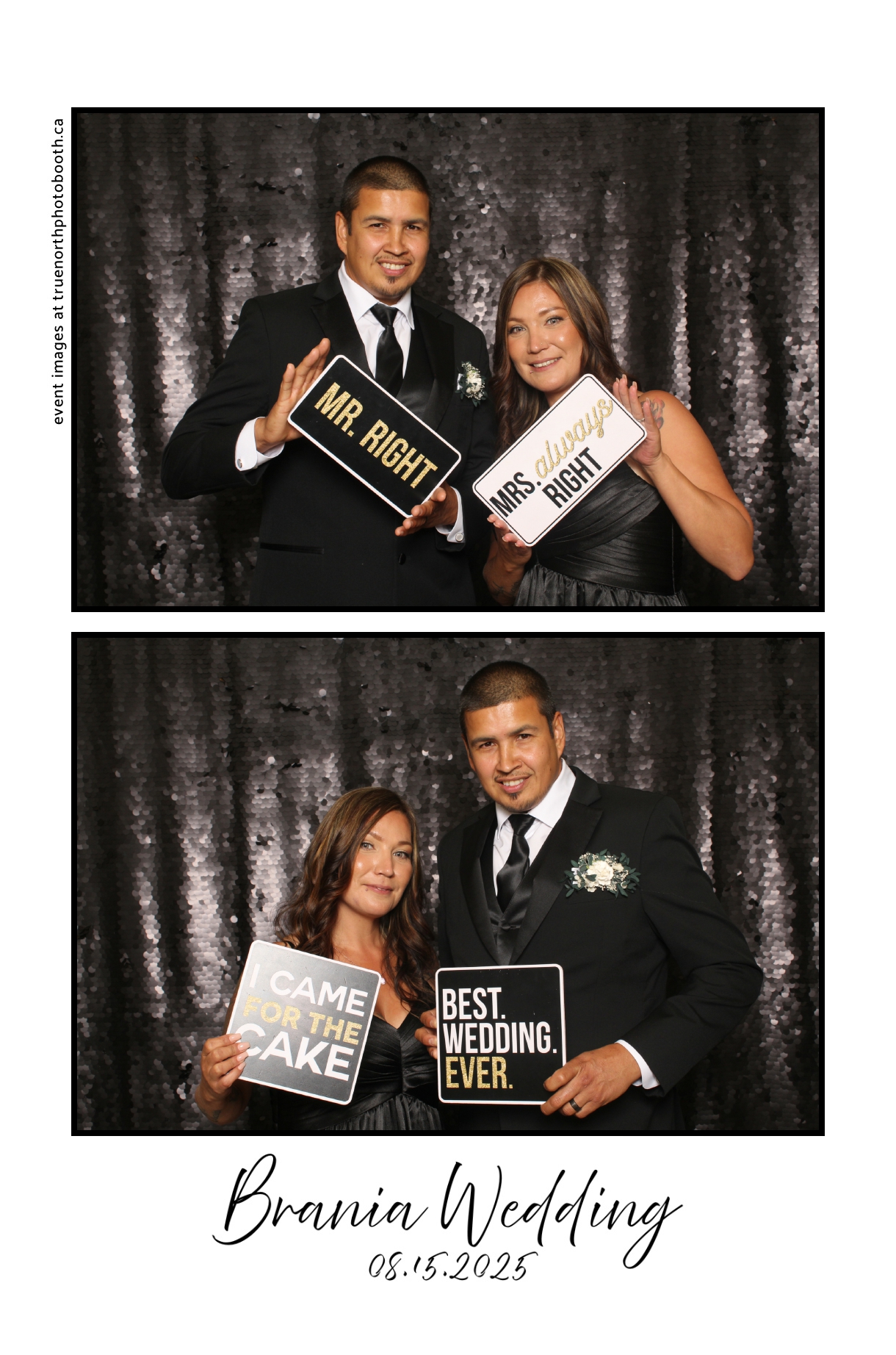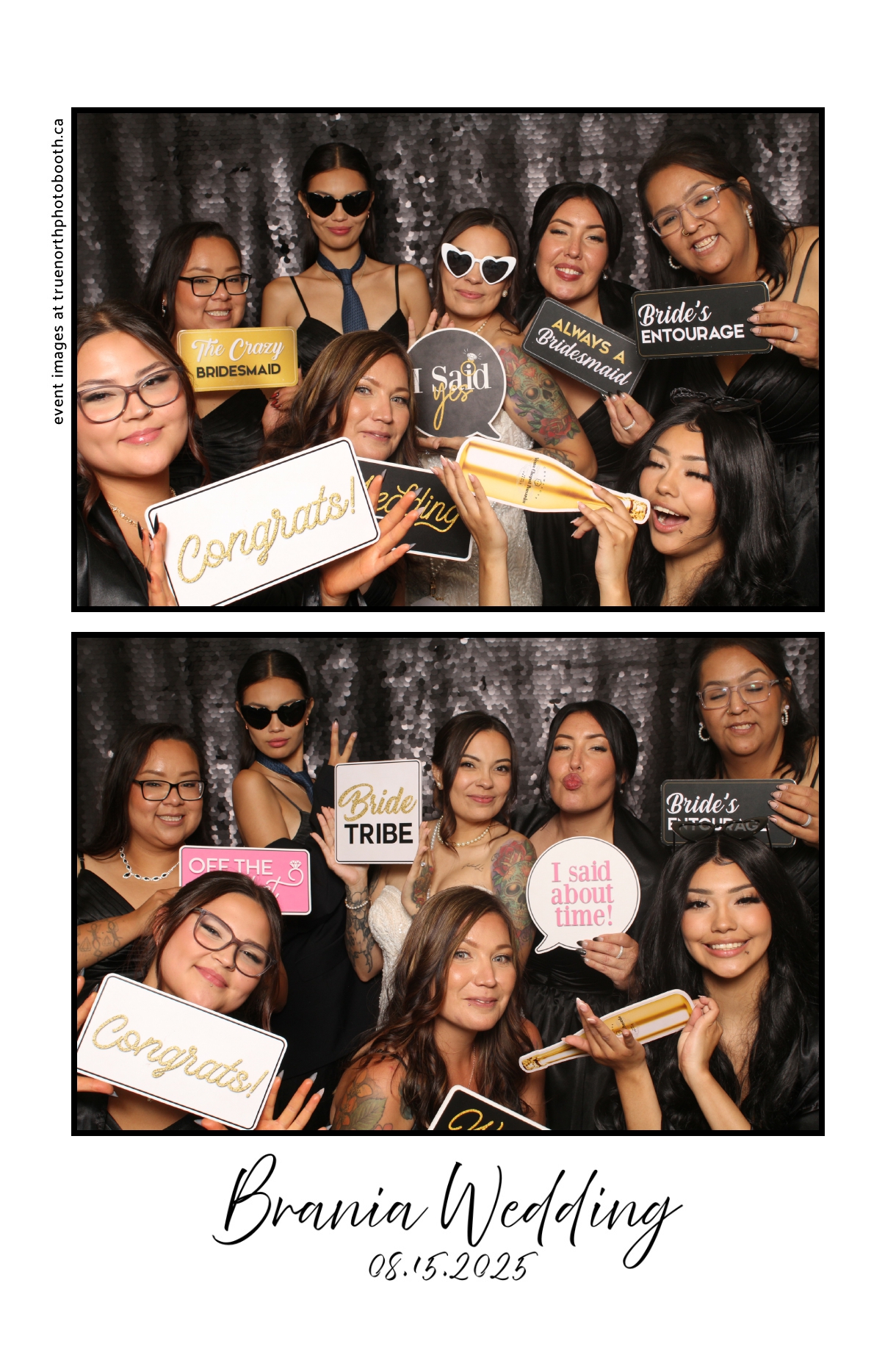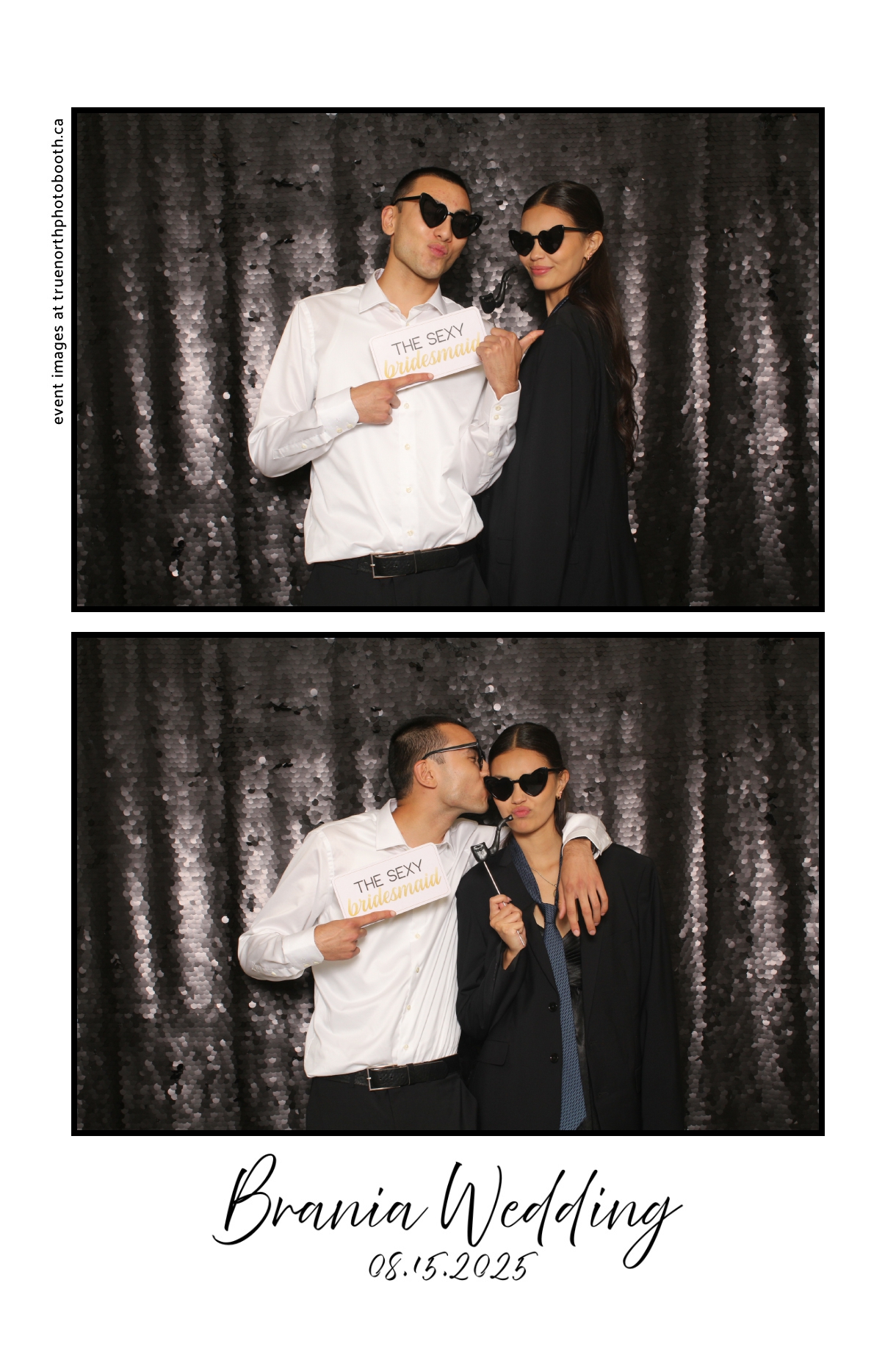 The photo booth quickly became a highlight of the evening, bringing friends and family together to laugh, pose, and capture unforgettable memories. From heartfelt moments to lighthearted fun, every photo was a reflection of the joy shared by Krista & Fred and their loved ones. The combination of the shimmering backdrop and custom-designed photo strips made the celebration both elegant and entertaining, ensuring that the wedding will be remembered for years to come.