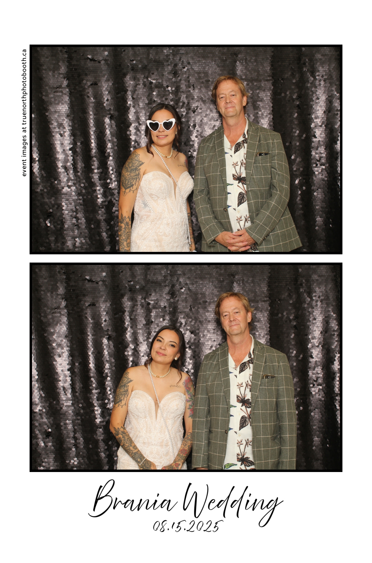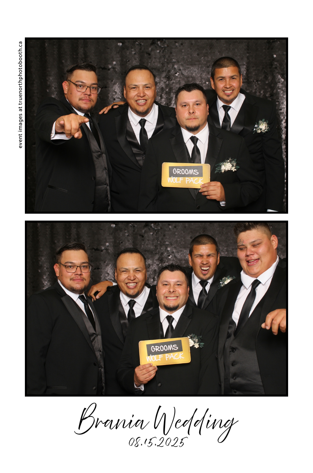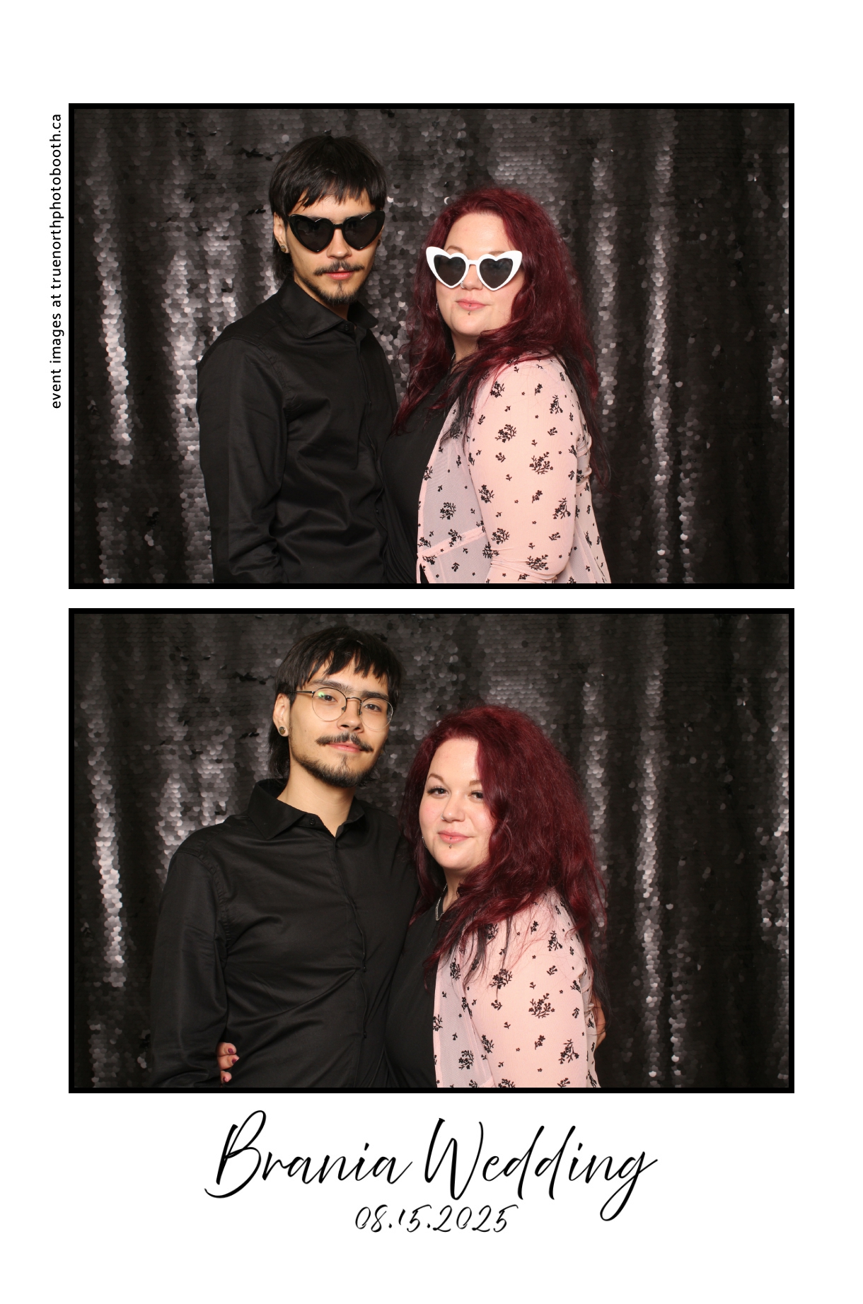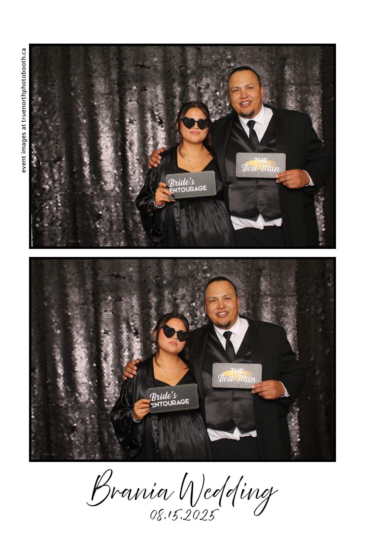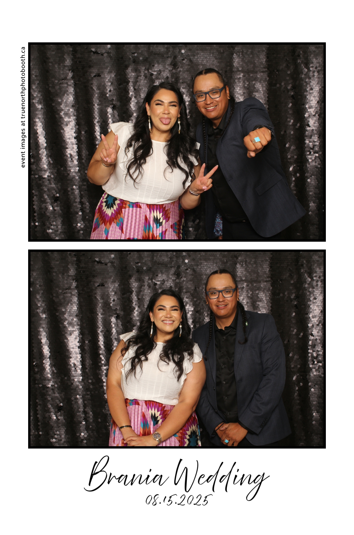 The photo booth quickly became a highlight of the evening, bringing friends and family together to laugh, pose, and capture unforgettable memories. From heartfelt moments to lighthearted fun, every photo was a reflection of the joy shared by Krista & Fred and their loved ones. The combination of the shimmering backdrop and custom-designed photo strips made the celebration both elegant and entertaining, ensuring that the wedding will be remembered for years to come.