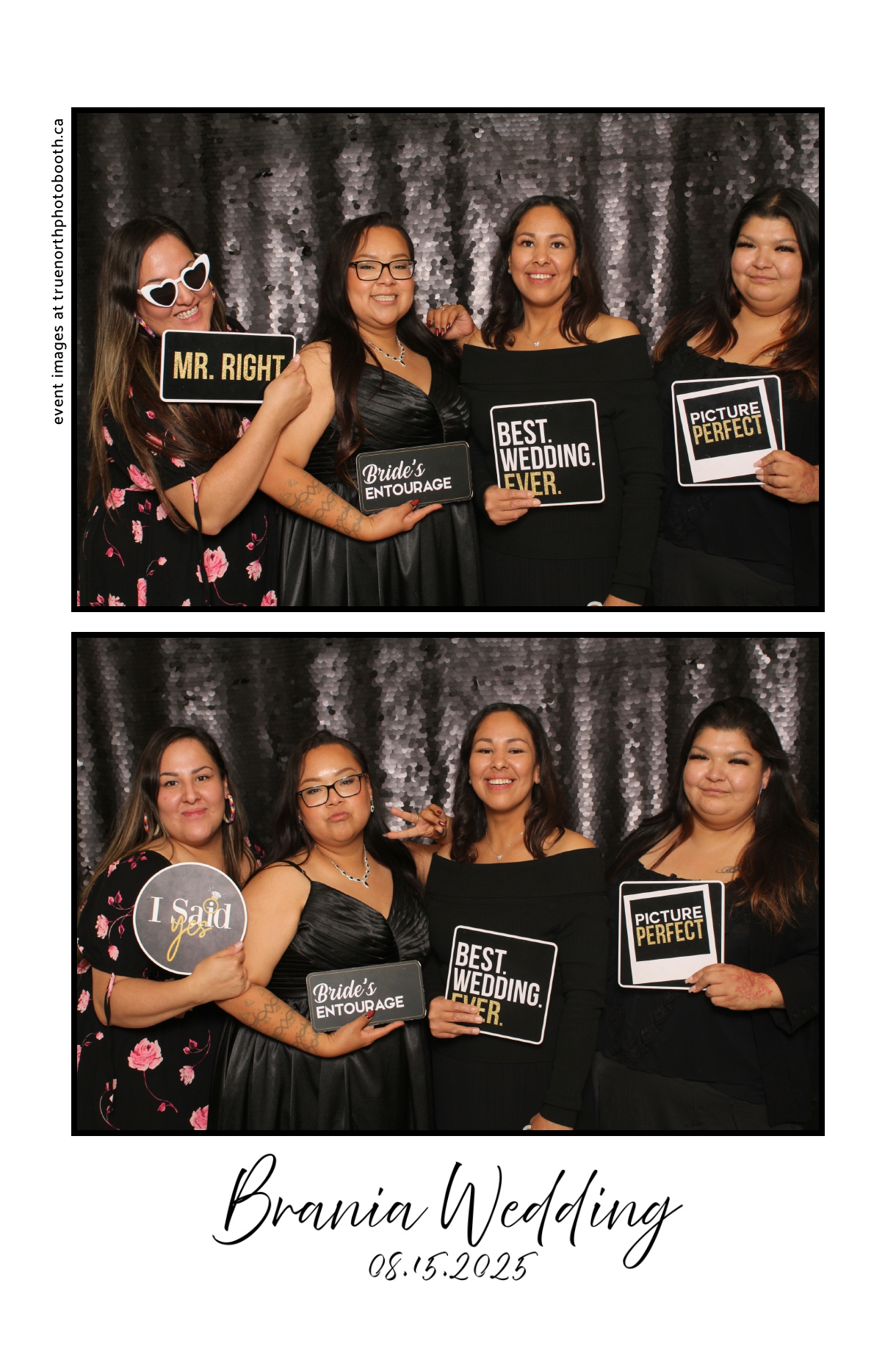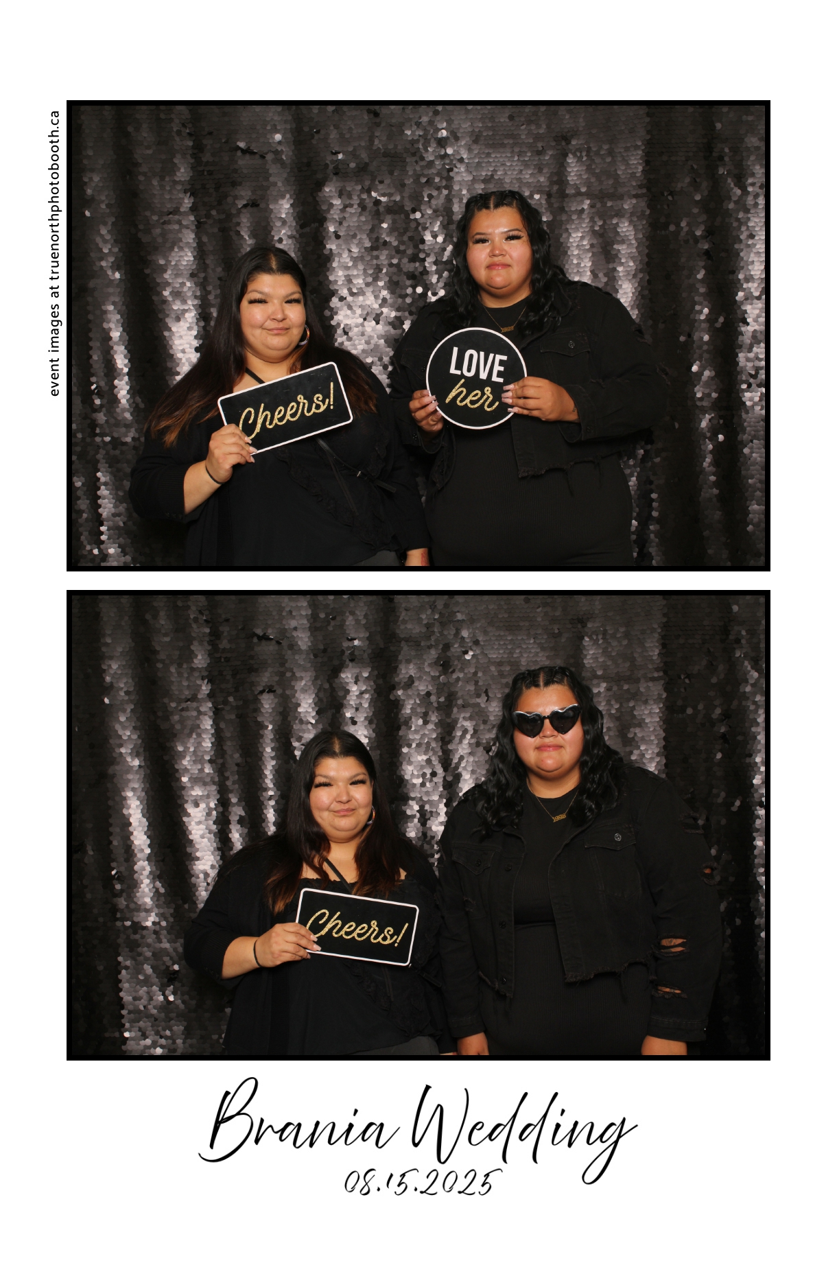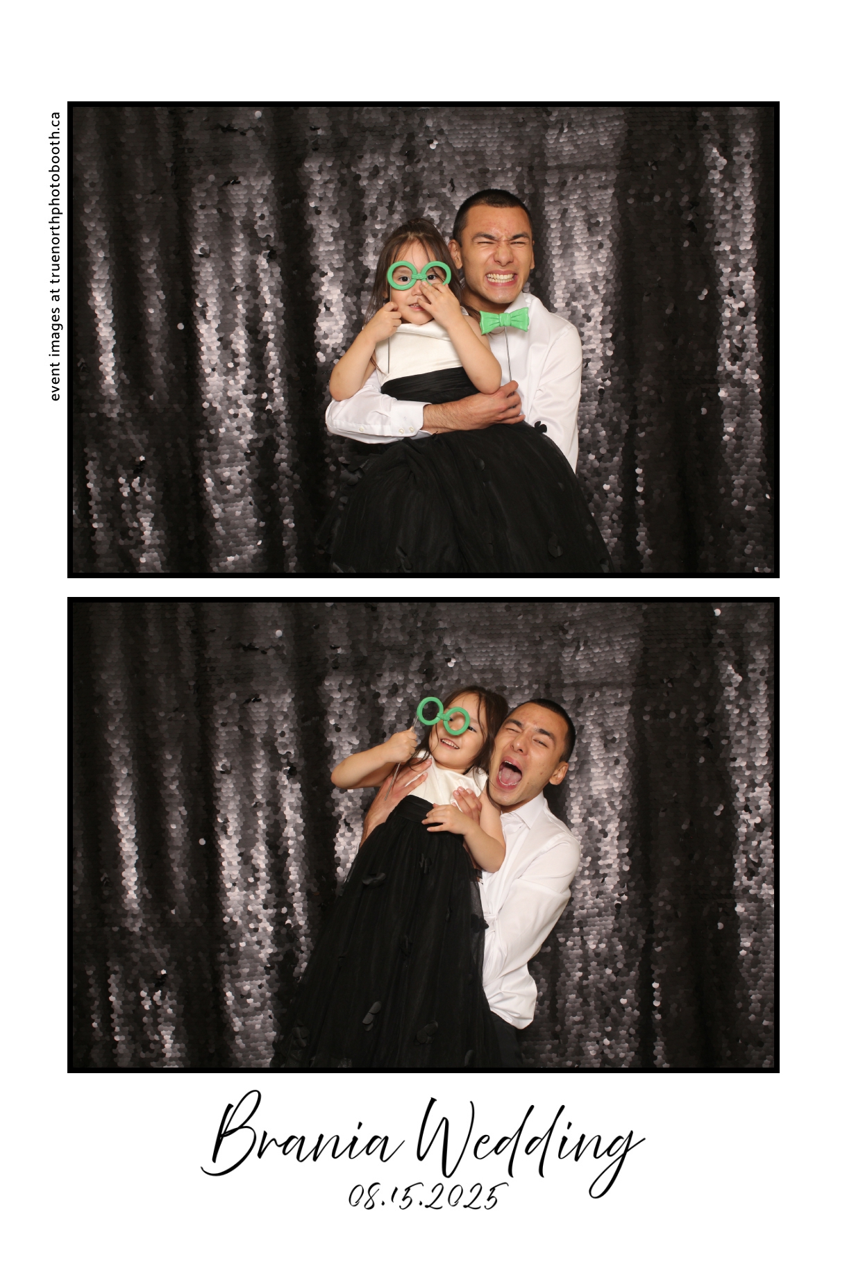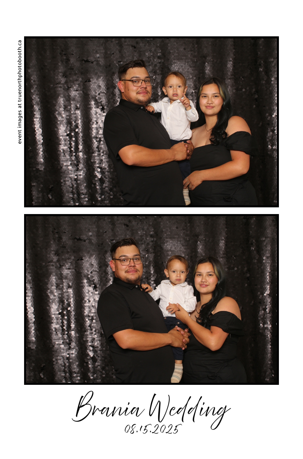 The photo booth quickly became a highlight of the evening, bringing friends and family together to laugh, pose, and capture unforgettable memories. From heartfelt moments to lighthearted fun, every photo was a reflection of the joy shared by Krista & Fred and their loved ones. The combination of the shimmering backdrop and custom-designed photo strips made the celebration both elegant and entertaining, ensuring that the wedding will be remembered for years to come.