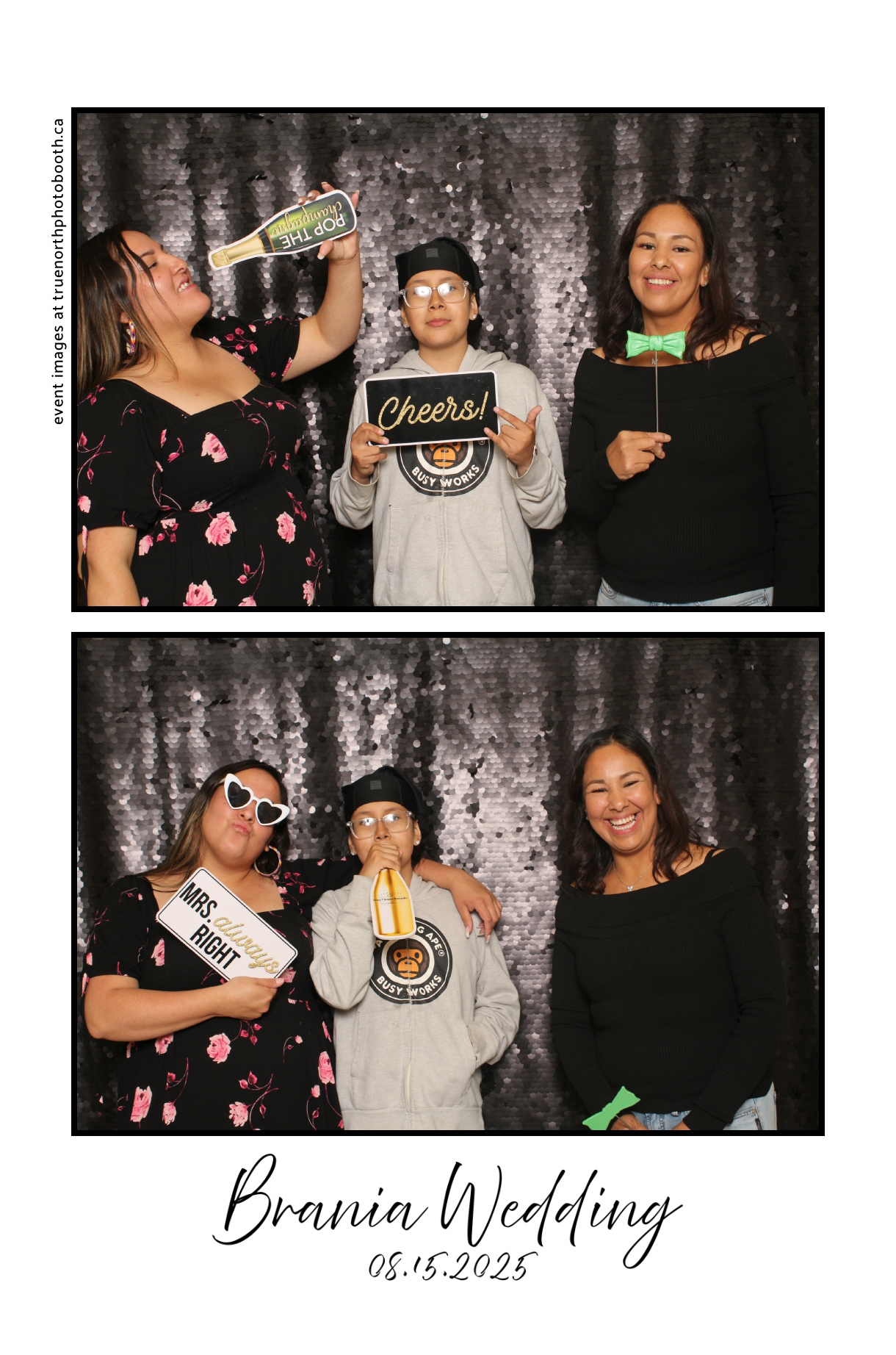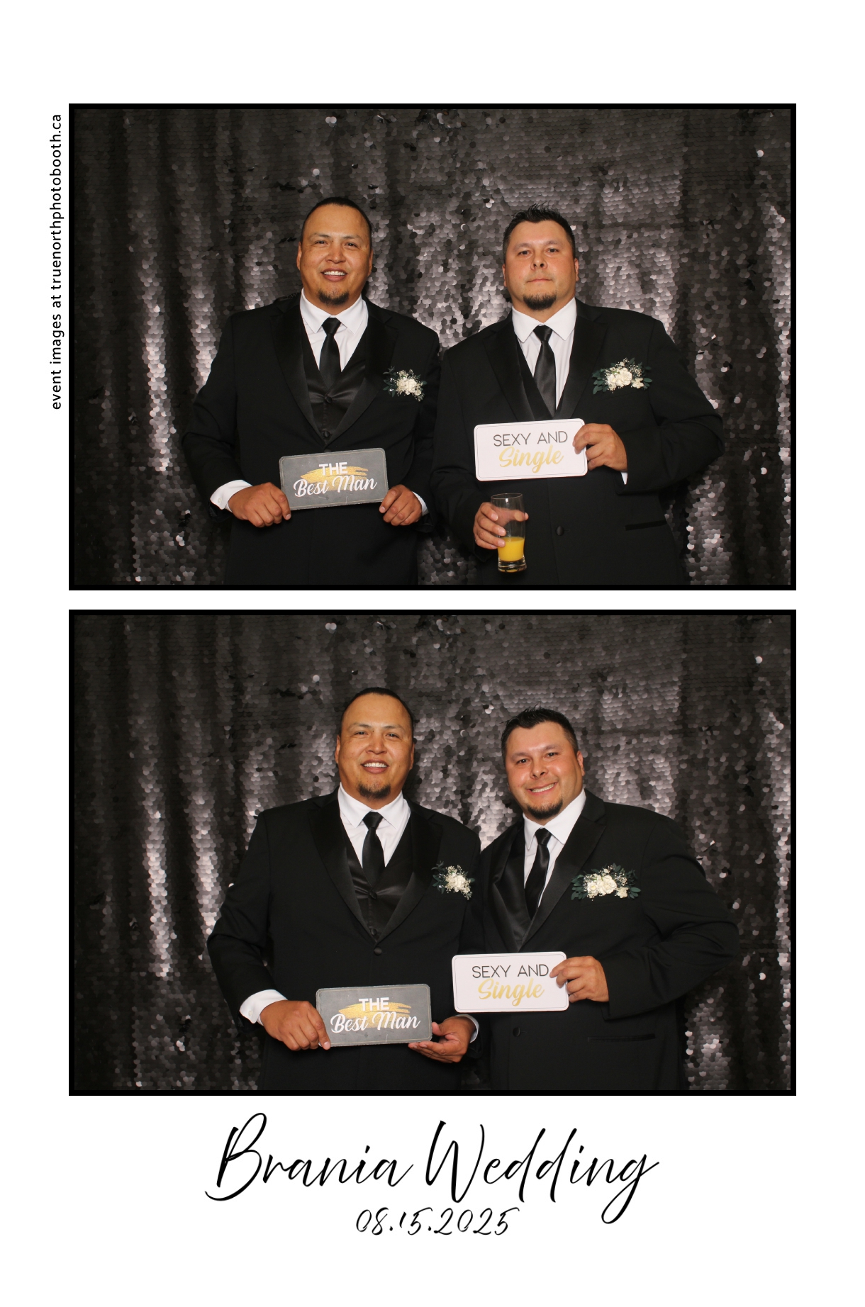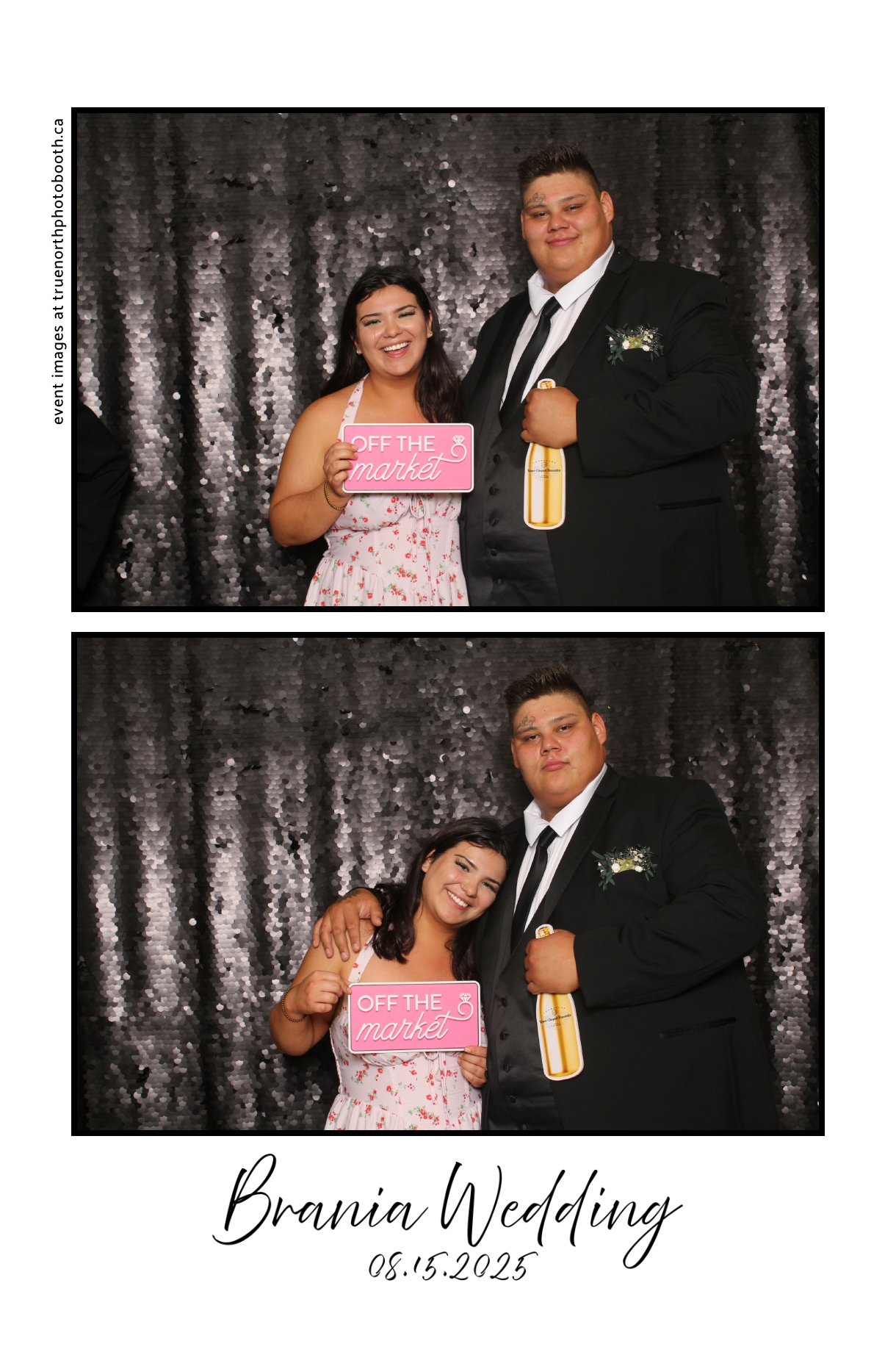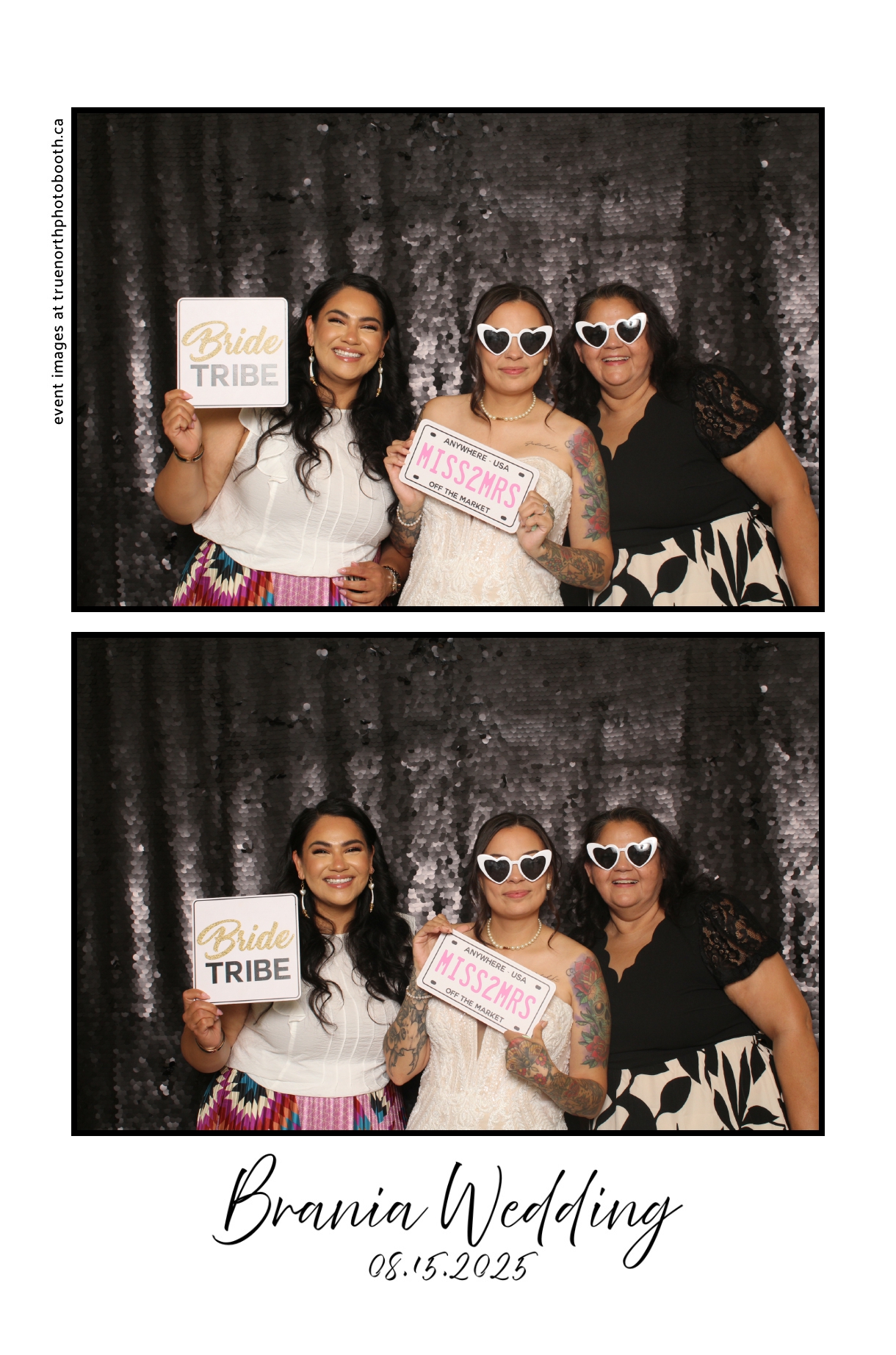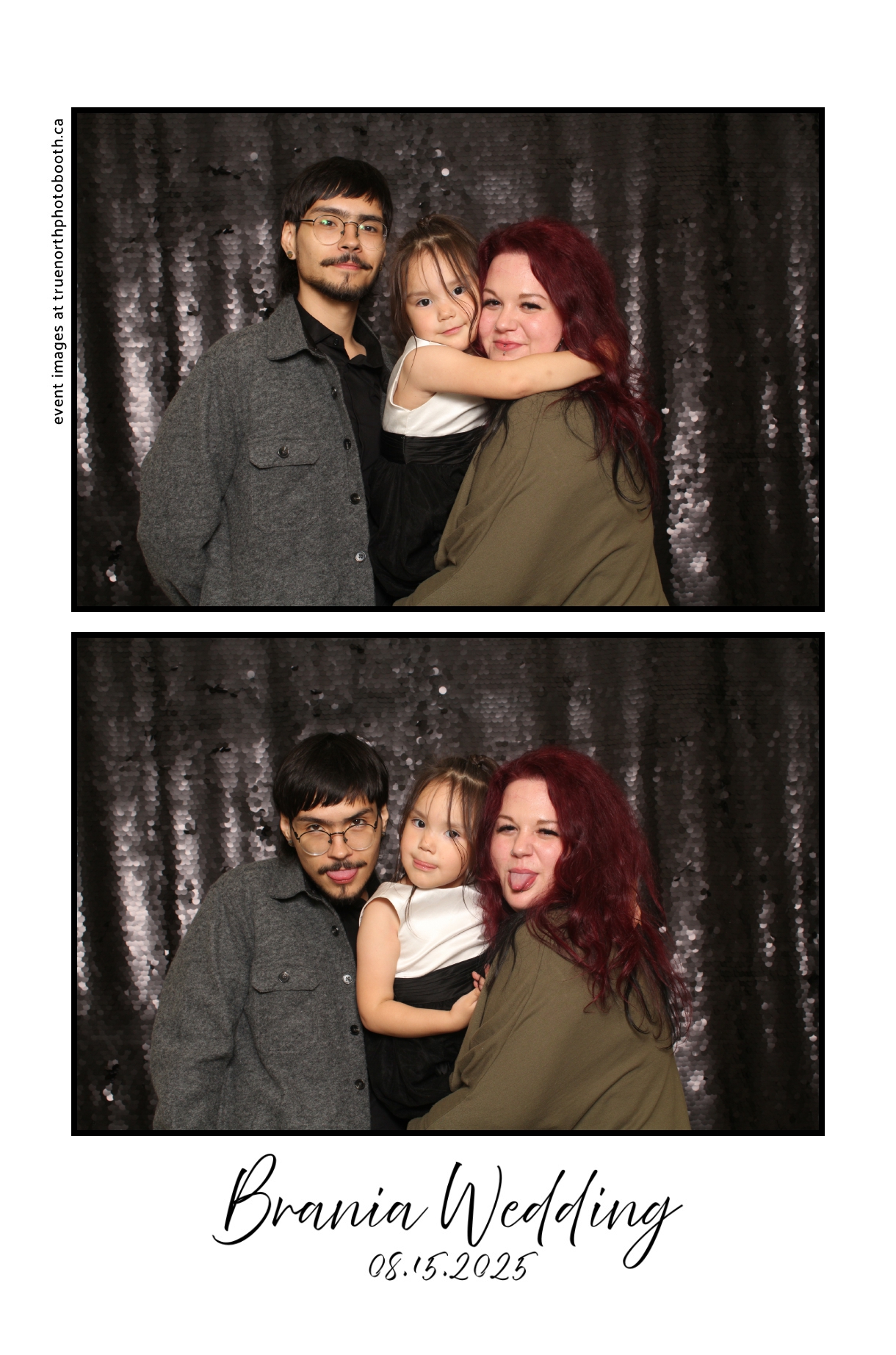 The photo booth quickly became a highlight of the evening, bringing friends and family together to laugh, pose, and capture unforgettable memories. From heartfelt moments to lighthearted fun, every photo was a reflection of the joy shared by Krista & Fred and their loved ones. The combination of the shimmering backdrop and custom-designed photo strips made the celebration both elegant and entertaining, ensuring that the wedding will be remembered for years to come.