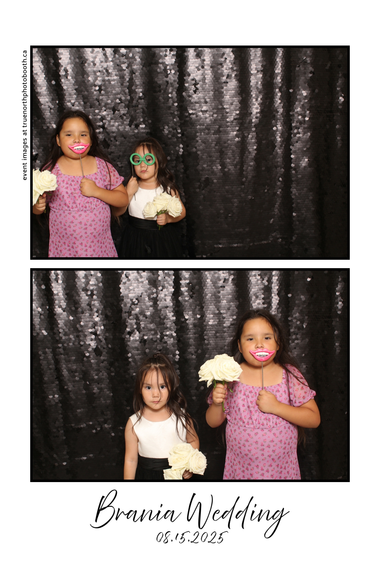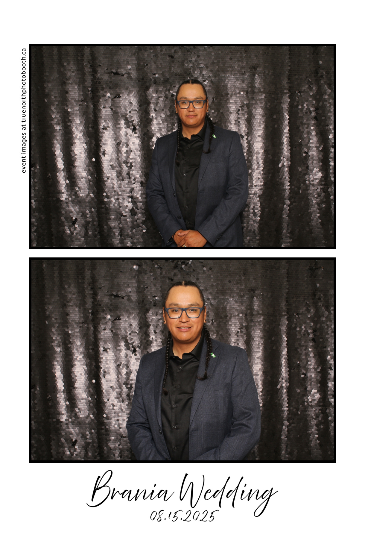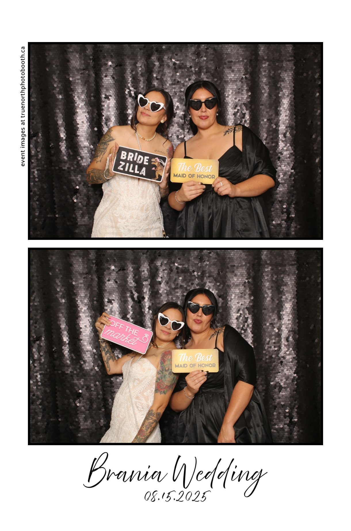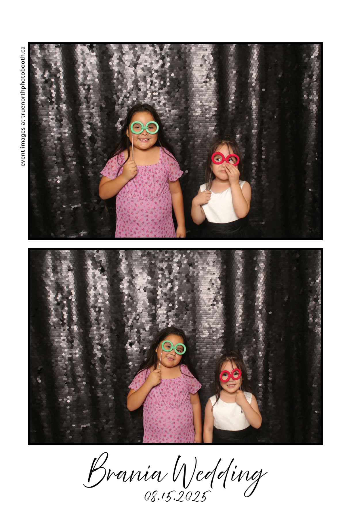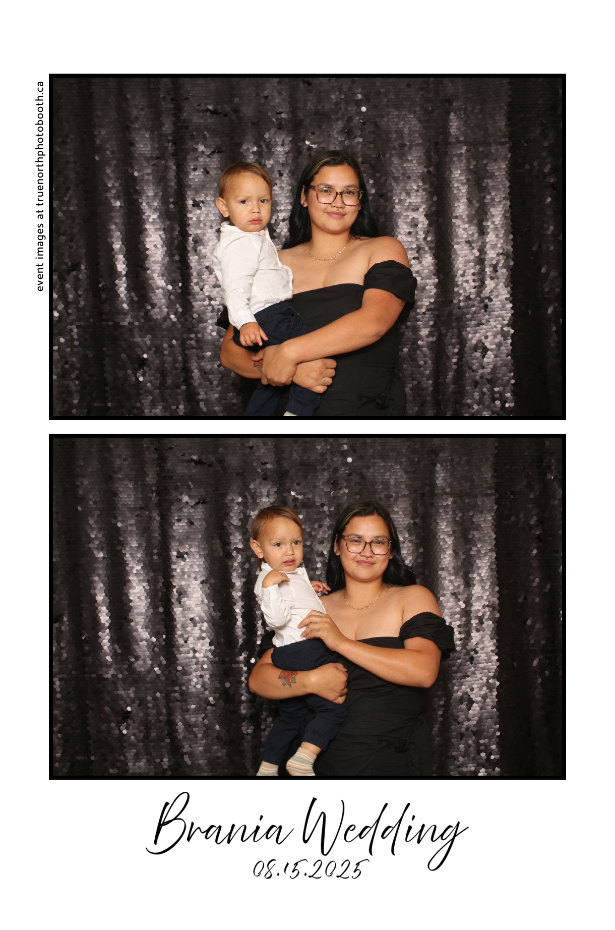 The photo booth quickly became a highlight of the evening, bringing friends and family together to laugh, pose, and capture unforgettable memories. From heartfelt moments to lighthearted fun, every photo was a reflection of the joy shared by Krista & Fred and their loved ones. The combination of the shimmering backdrop and custom-designed photo strips made the celebration both elegant and entertaining, ensuring that the wedding will be remembered for years to come.