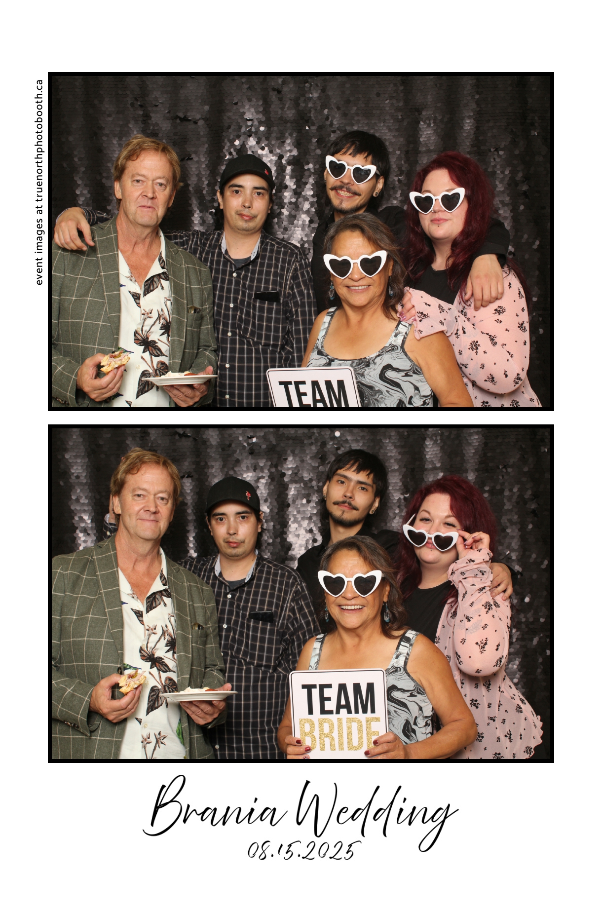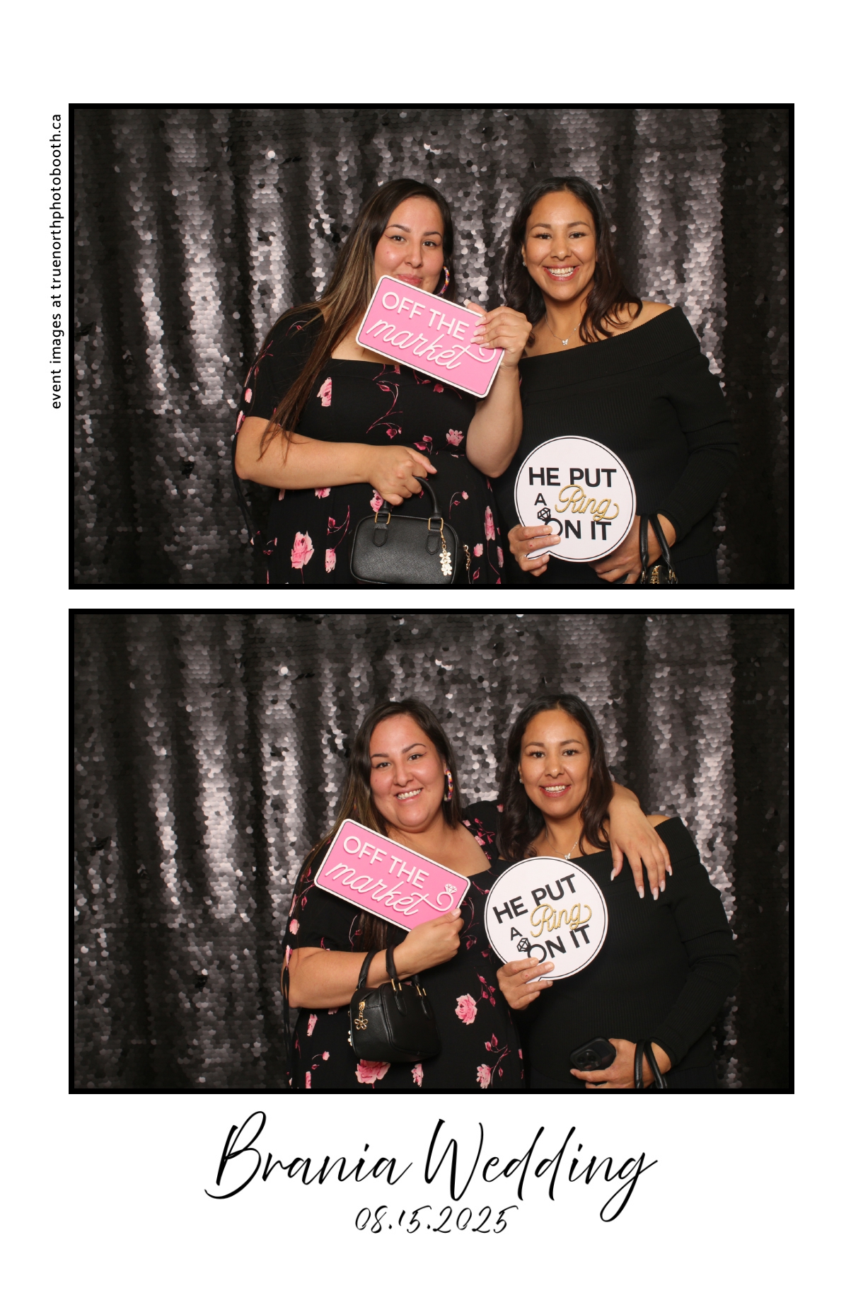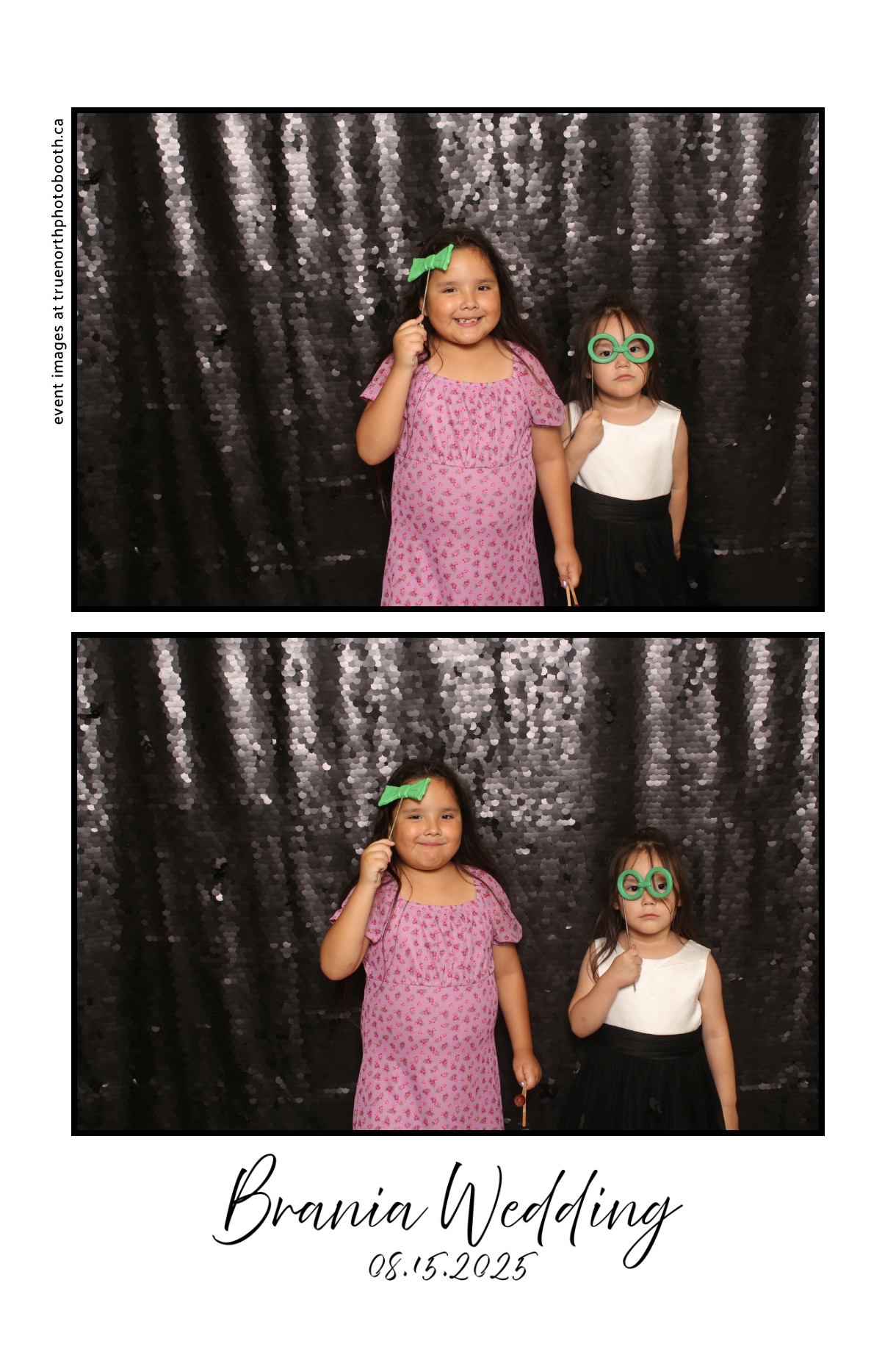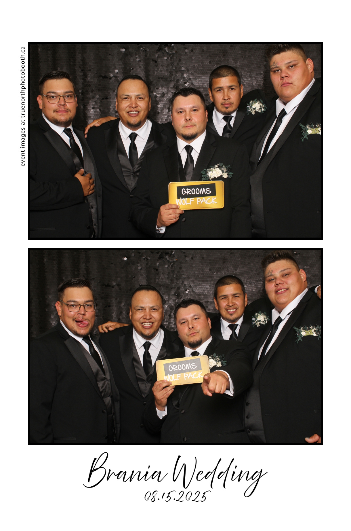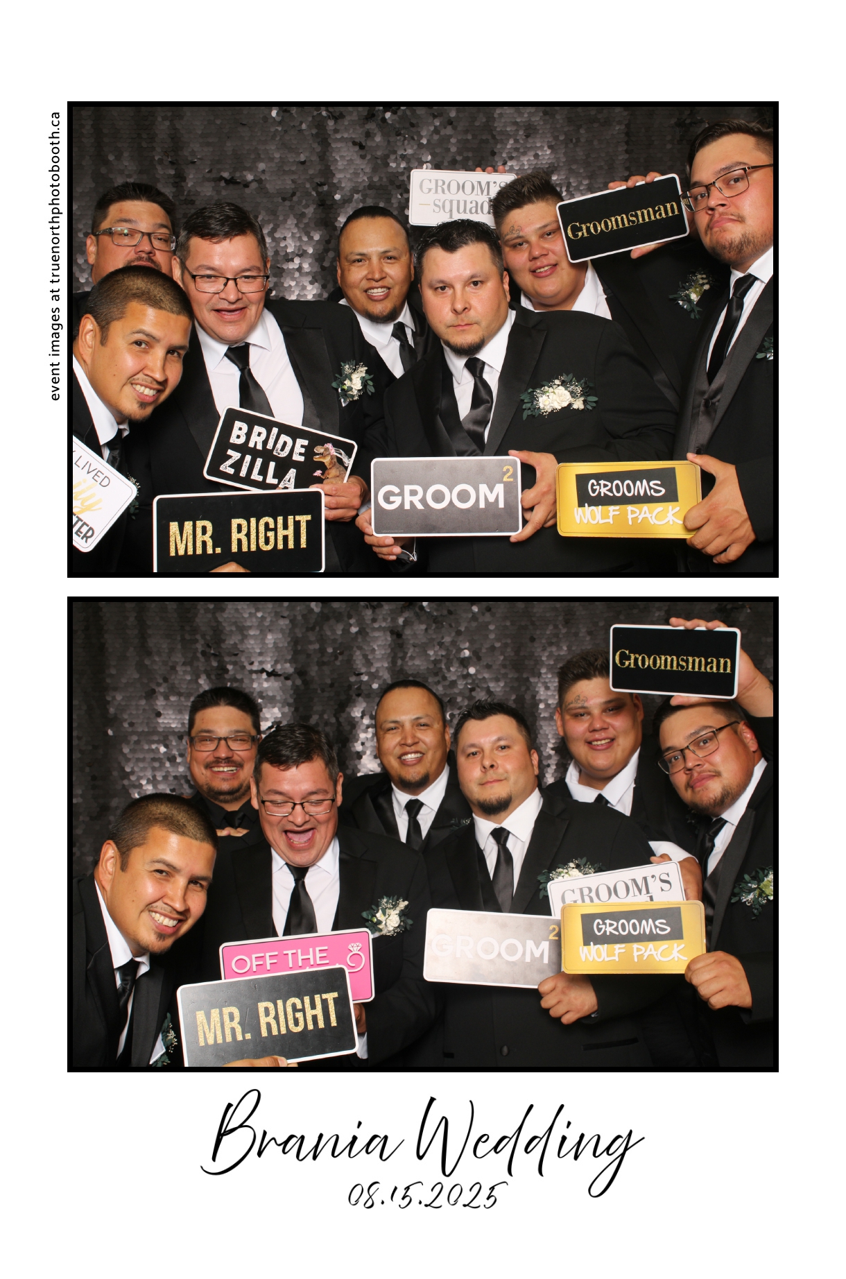 The photo booth quickly became a highlight of the evening, bringing friends and family together to laugh, pose, and capture unforgettable memories. From heartfelt moments to lighthearted fun, every photo was a reflection of the joy shared by Krista & Fred and their loved ones. The combination of the shimmering backdrop and custom-designed photo strips made the celebration both elegant and entertaining, ensuring that the wedding will be remembered for years to come.