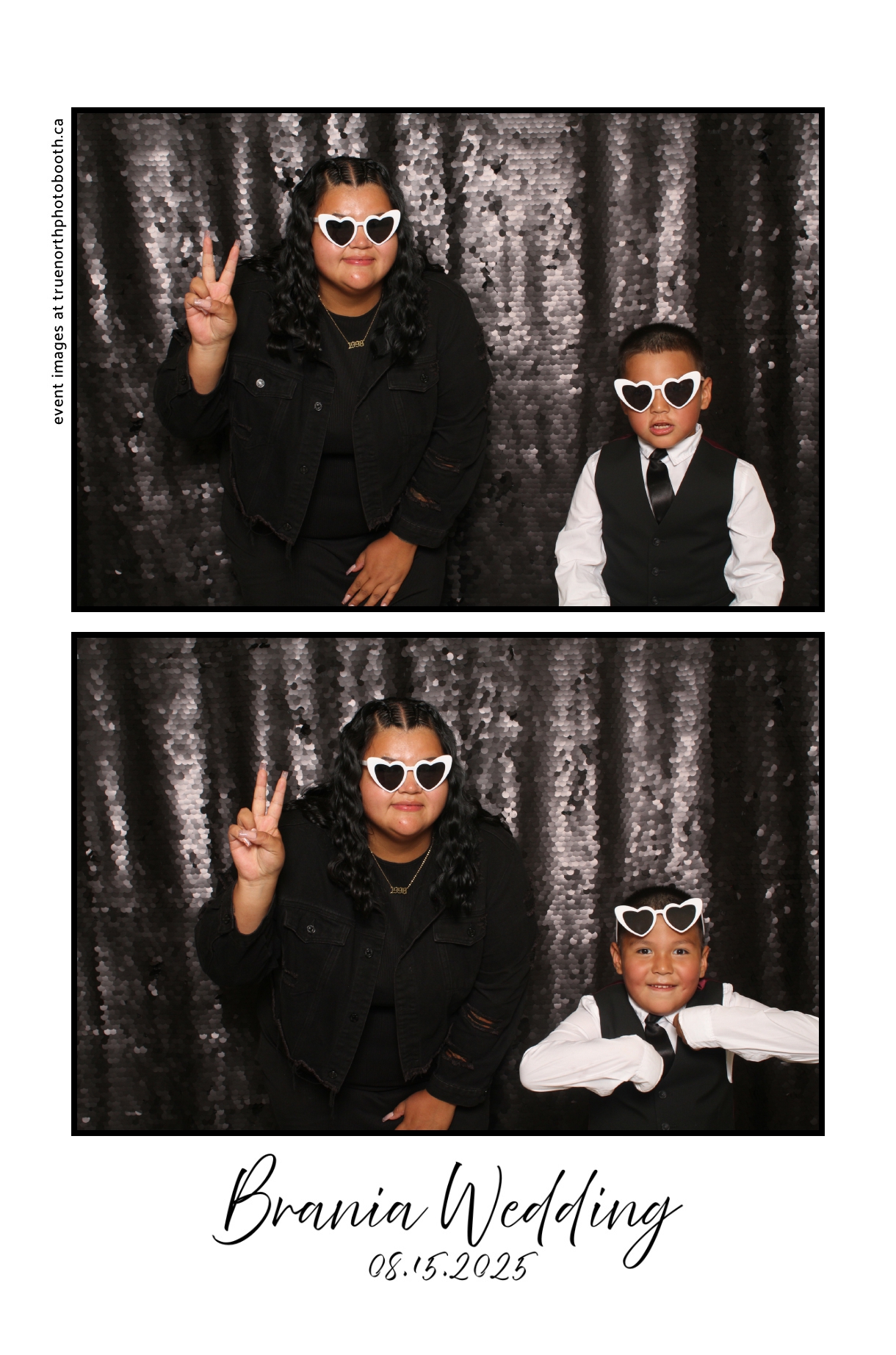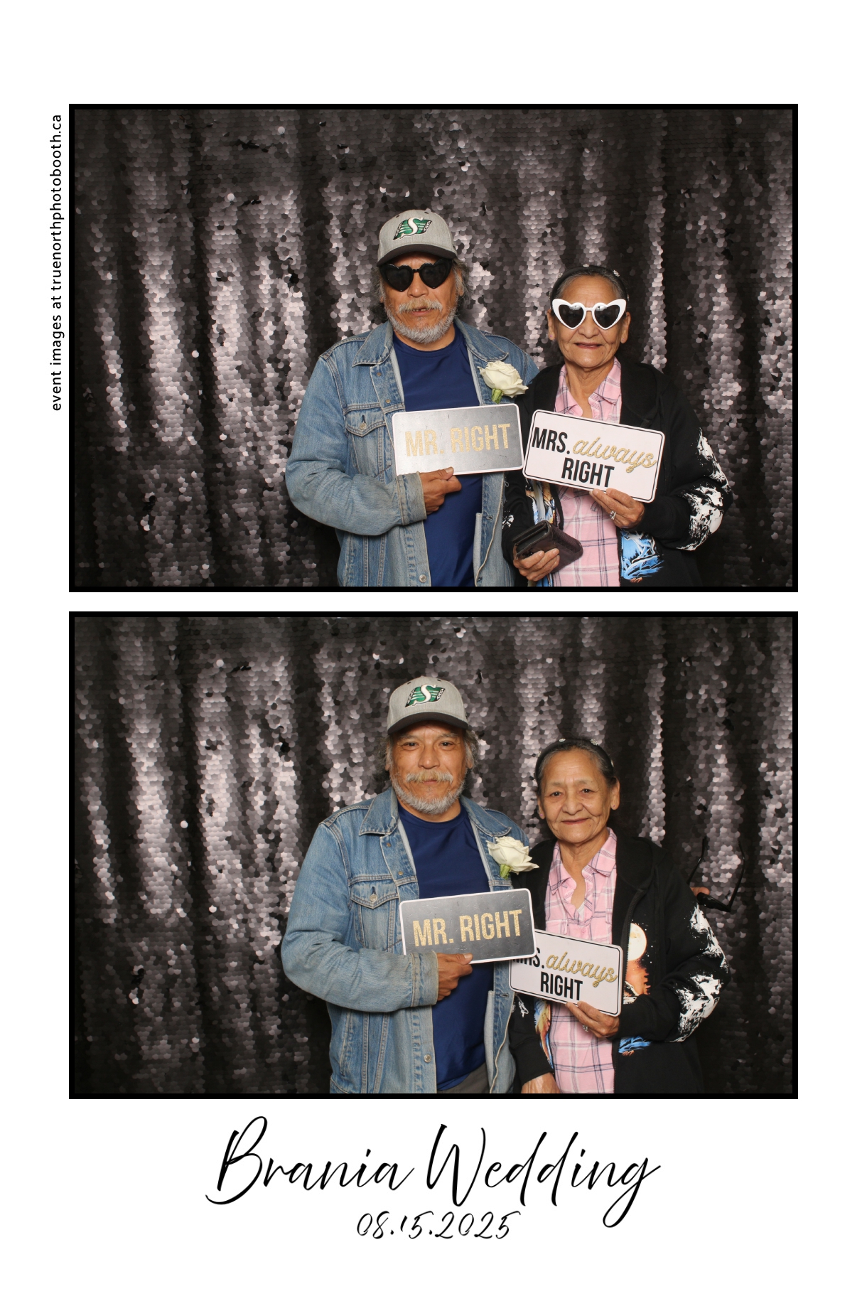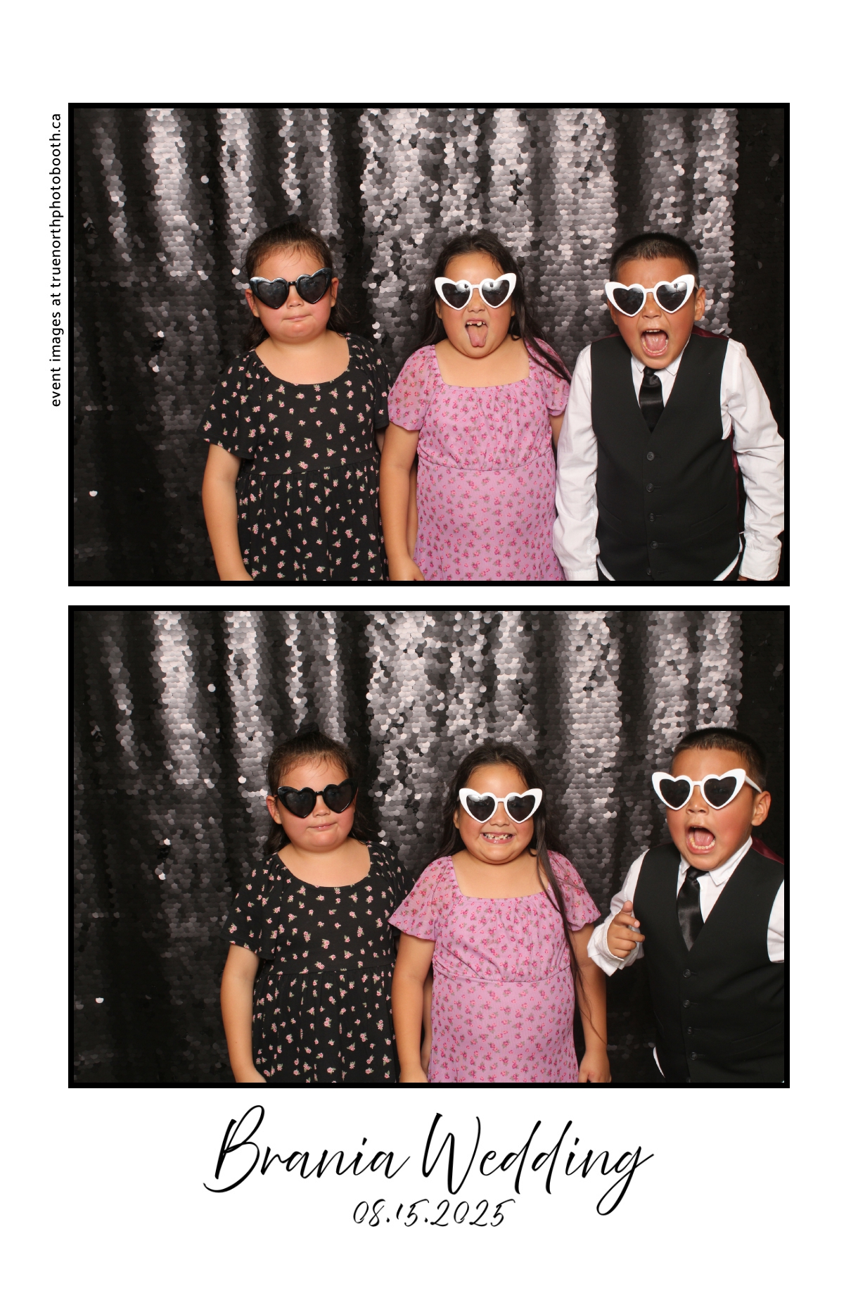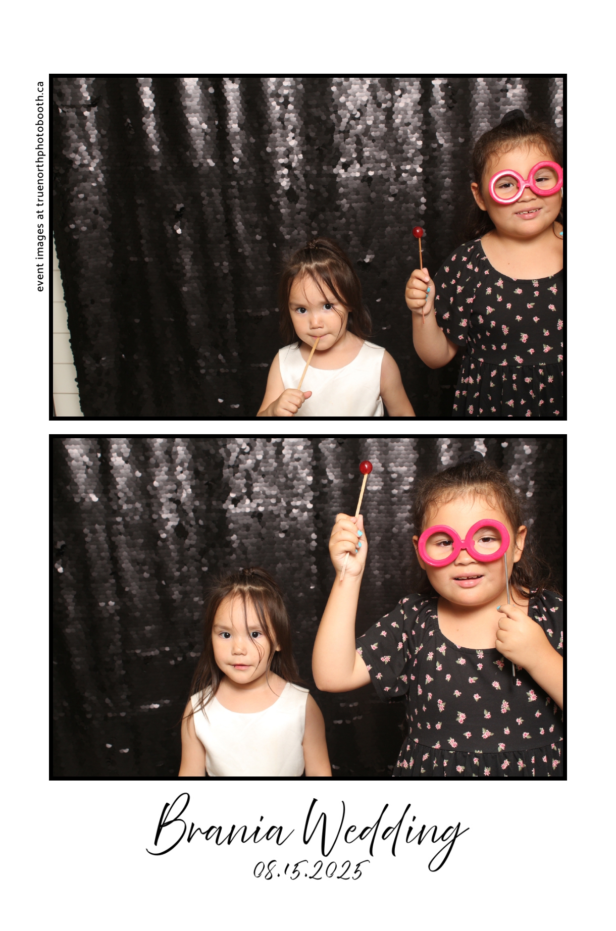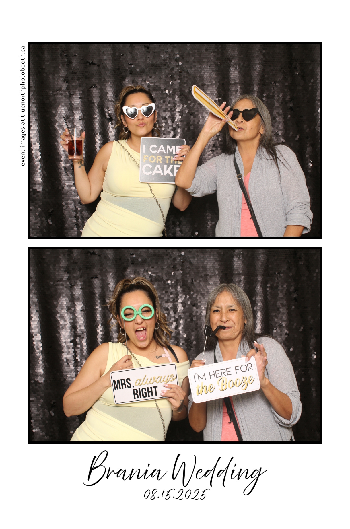The photo booth quickly became a highlight of the evening, bringing friends and family together to laugh, pose, and capture unforgettable memories. From heartfelt moments to lighthearted fun, every photo was a reflection of the joy shared by Krista & Fred and their loved ones. The combination of the shimmering backdrop and custom-designed photo strips made the celebration both elegant and entertaining, ensuring that the wedding will be remembered for years to come.