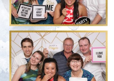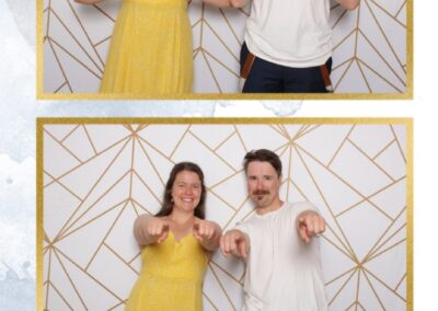 True North Photo Booth brought an extra layer of excitement to Kristen and Cole’s special day with their stunning white & gold geometric pillow backdrop. The 2X6 custom photo strips were a huge hit, providing personalized mementos for guests to cherish. The photo booth became a central attraction, drawing friends and family together to capture fun and candid moments. True North Photo Booth’s professional service and engaging setup ensured that the celebration was not only beautiful but also filled with laughter and unforgettable memories.