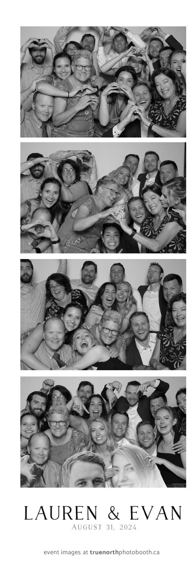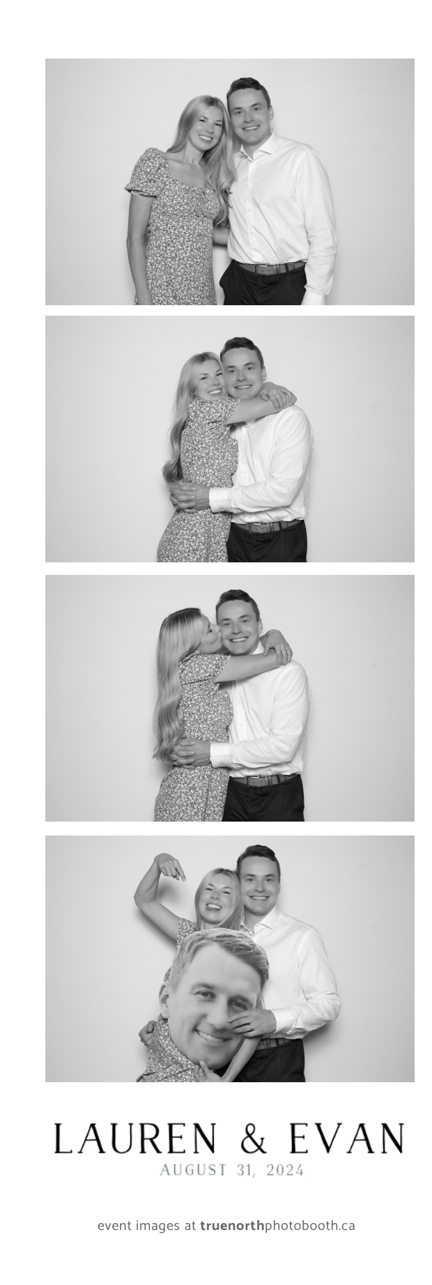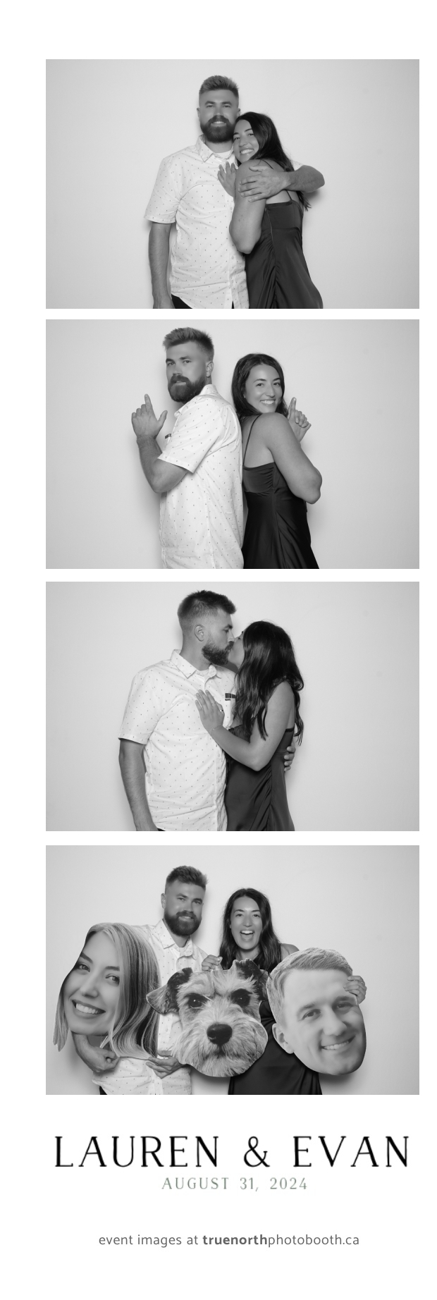 True North Photo Booth helped create an atmosphere of joy, allowing guests to take home memories of the day with their 2X6 custom photo strips. The photo booth became a hub of laughter and creativity as friends and family struck fun poses and enjoyed the sleek backdrop. It was a true pleasure to be part of Lauren & Evan’s love story, making their wedding day even more special for everyone involved!
