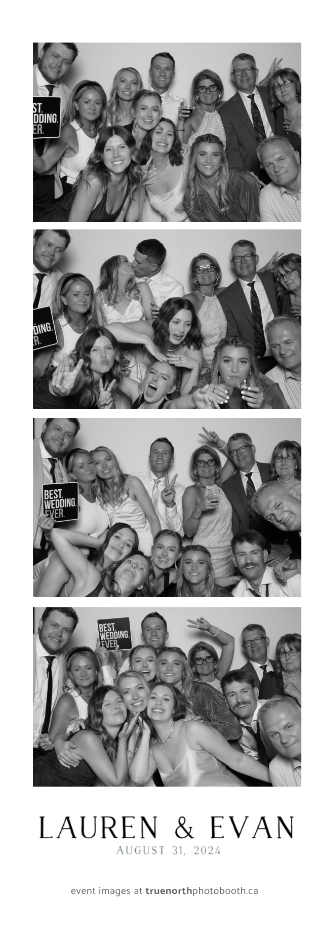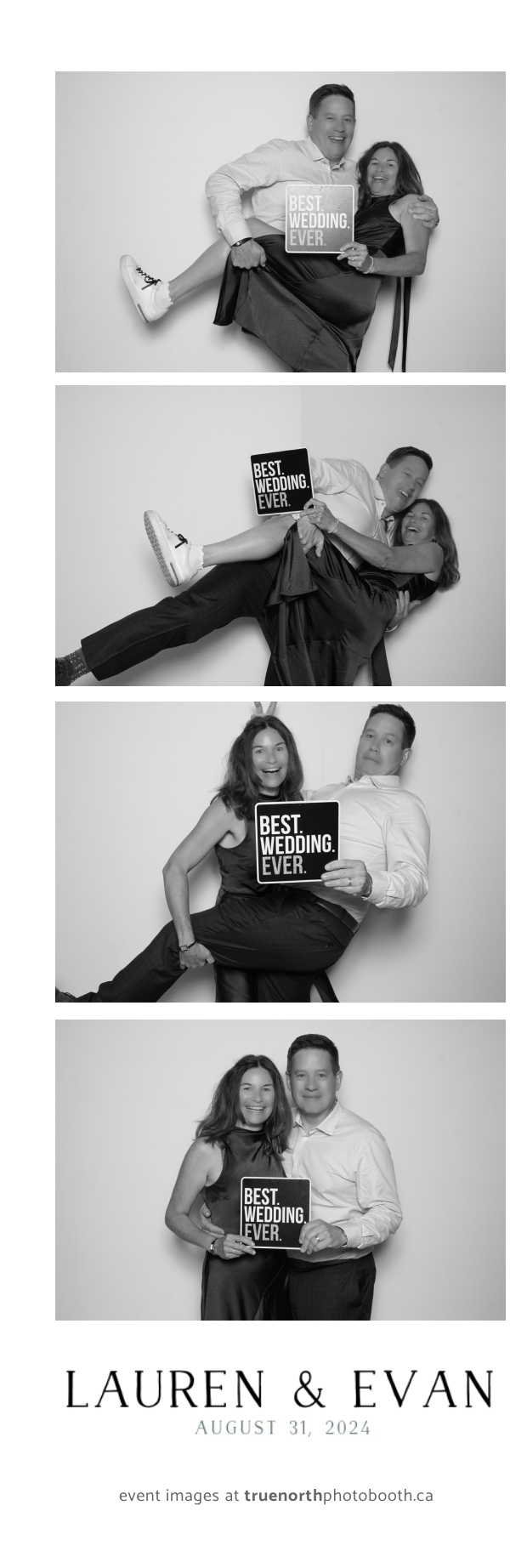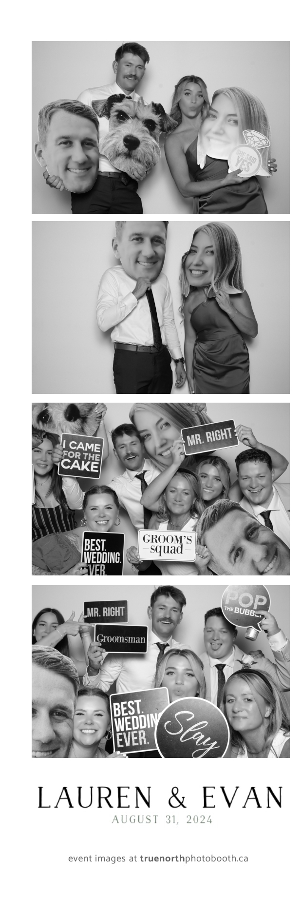 True North Photo Booth helped create an atmosphere of joy, allowing guests to take home memories of the day with their 2X6 custom photo strips. The photo booth became a hub of laughter and creativity as friends and family struck fun poses and enjoyed the sleek backdrop. It was a true pleasure to be part of Lauren & Evan’s love story, making their wedding day even more special for everyone involved!