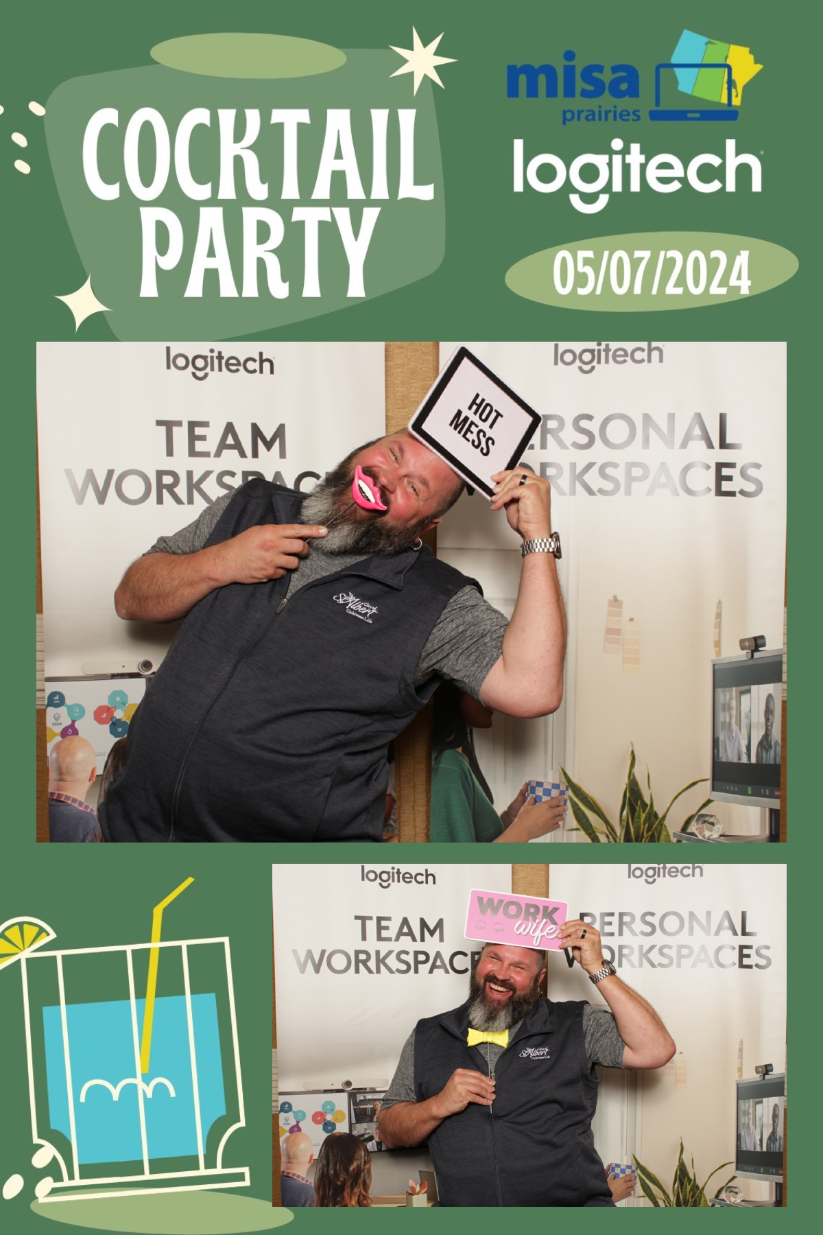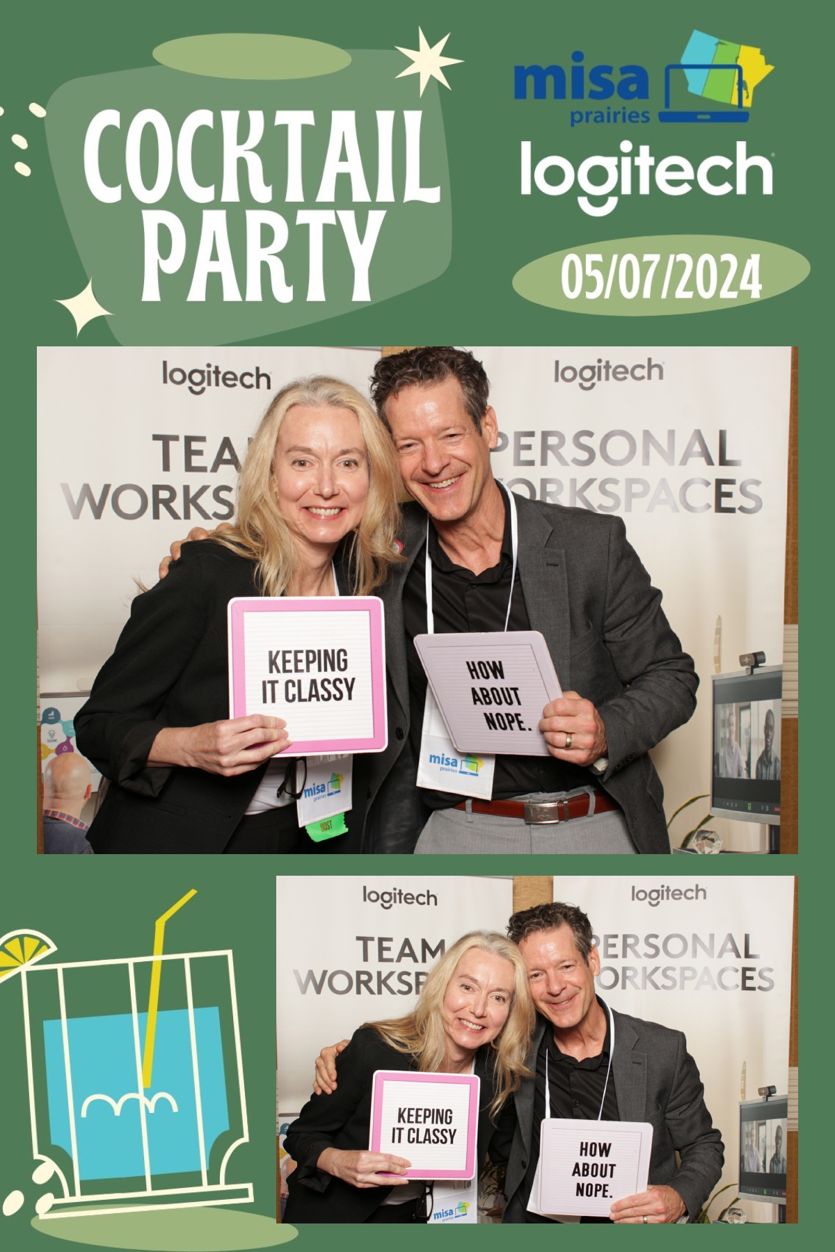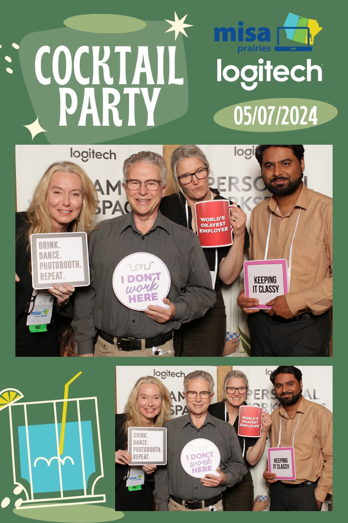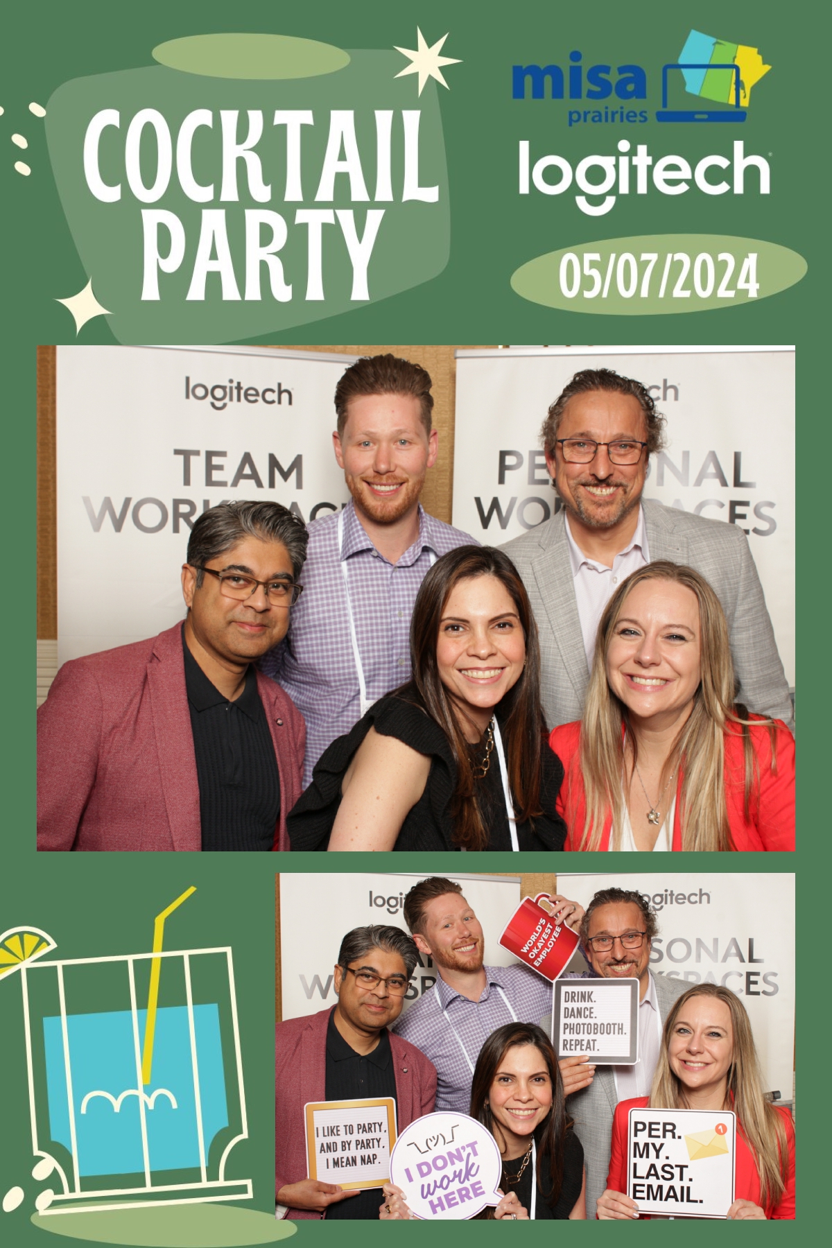 As guests gathered to network and connect with fellow attendees, True North Photo Booth provided a fun and interactive way to capture memories from the evening. With a custom backdrop that perfectly complemented the ambiance of the cocktail party, each photo strip became a cherished keepsake for all who attended. From striking poses to spontaneous group shots, the photo booth was a hit among guests, adding an extra layer of excitement to the event. True North Photo Booth ensured that every moment captured was a reflection of the joy and camaraderie shared throughout the evening. Thank you, Logitech, for sponsoring such a memorable and enjoyable cocktail party at Misa Prairies 2024, and for choosing True North Photo Booth to be part of the celebration!