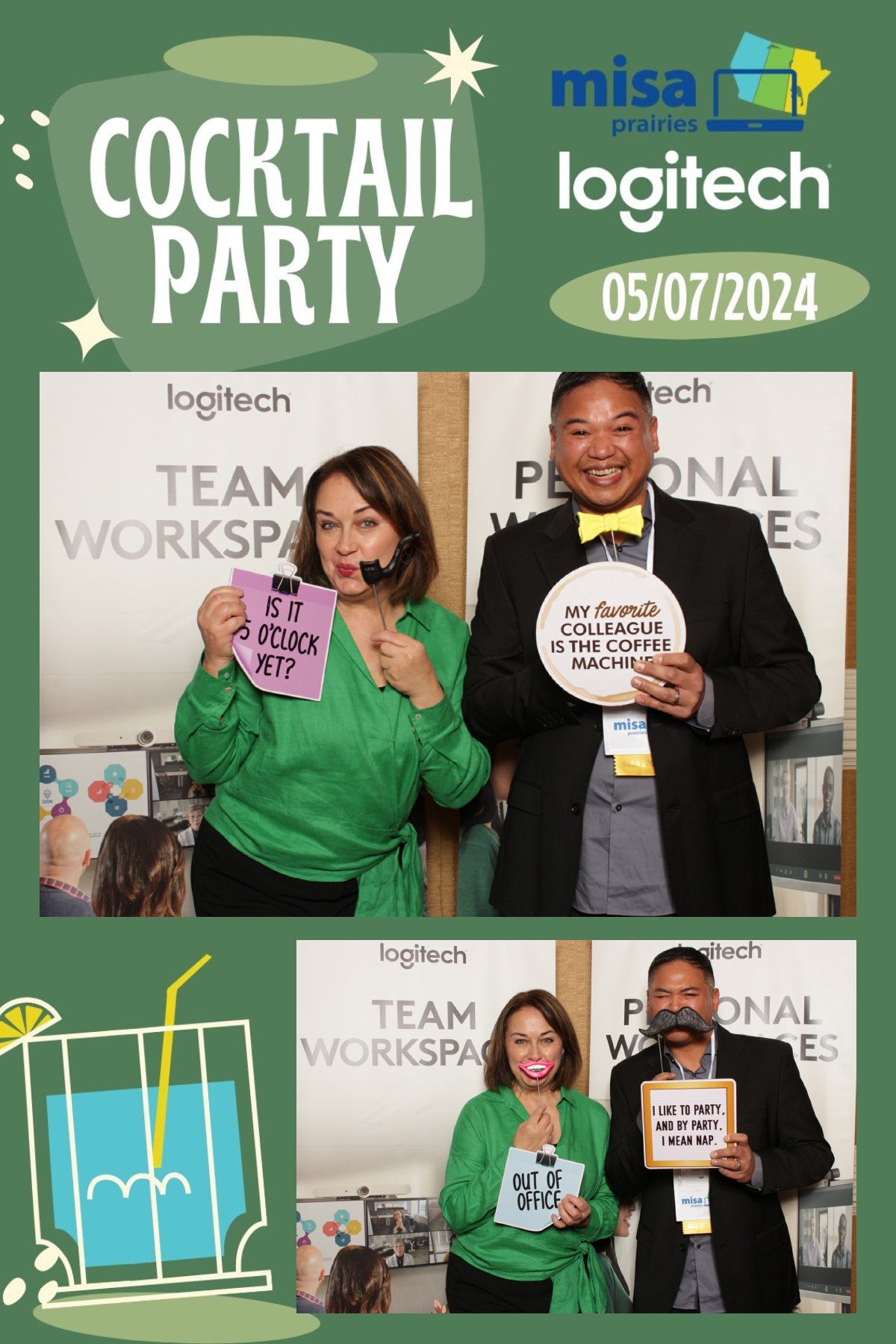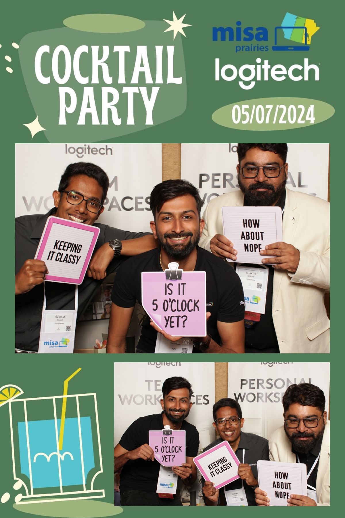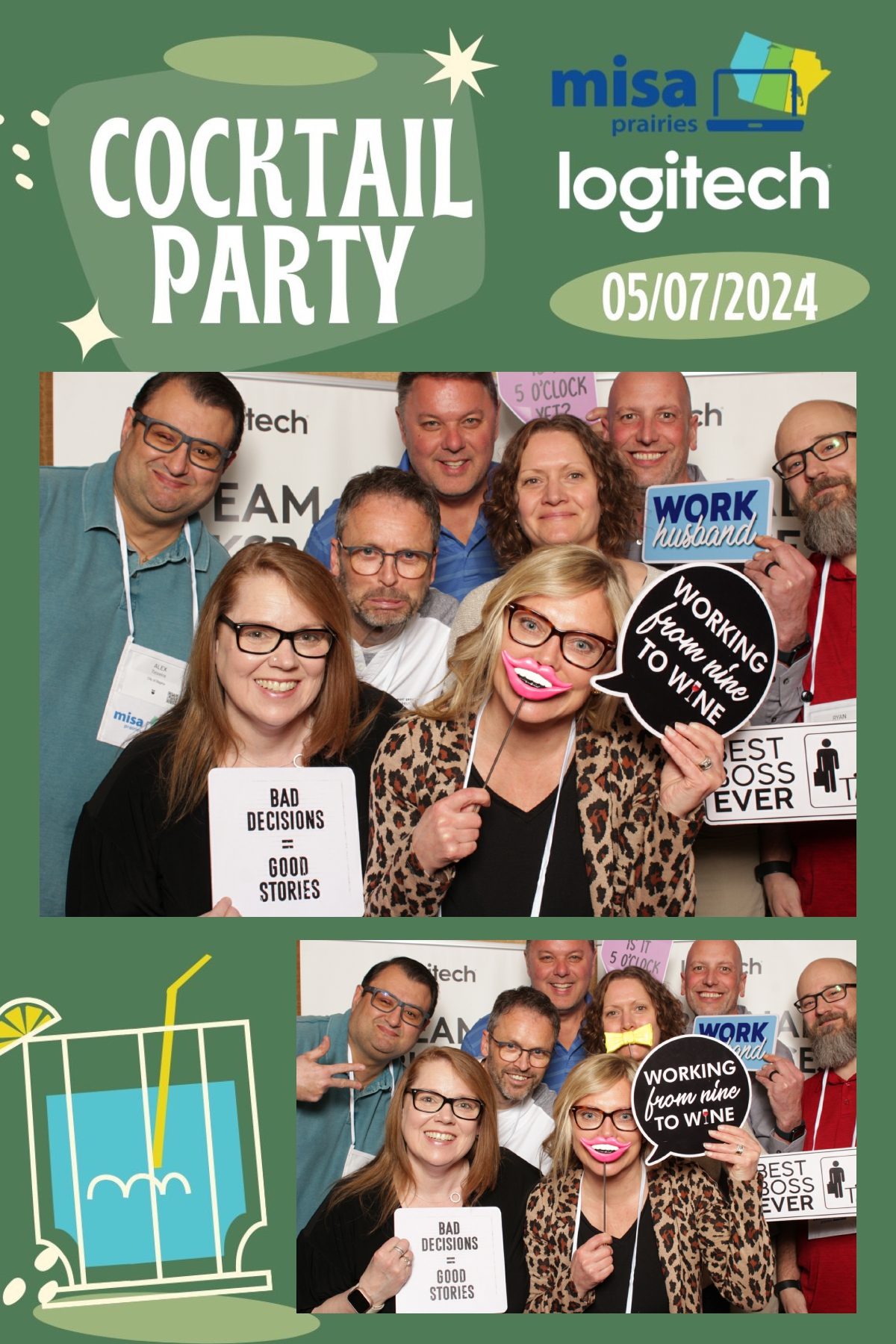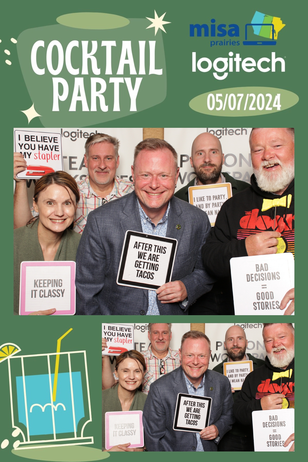As guests gathered to network and connect with fellow attendees, True North Photo Booth provided a fun and interactive way to capture memories from the evening. With a custom backdrop that perfectly complemented the ambiance of the cocktail party, each photo strip became a cherished keepsake for all who attended. From striking poses to spontaneous group shots, the photo booth was a hit among guests, adding an extra layer of excitement to the event. True North Photo Booth ensured that every moment captured was a reflection of the joy and camaraderie shared throughout the evening. Thank you, Logitech, for sponsoring such a memorable and enjoyable cocktail party at Misa Prairies 2024, and for choosing True North Photo Booth to be part of the celebration!