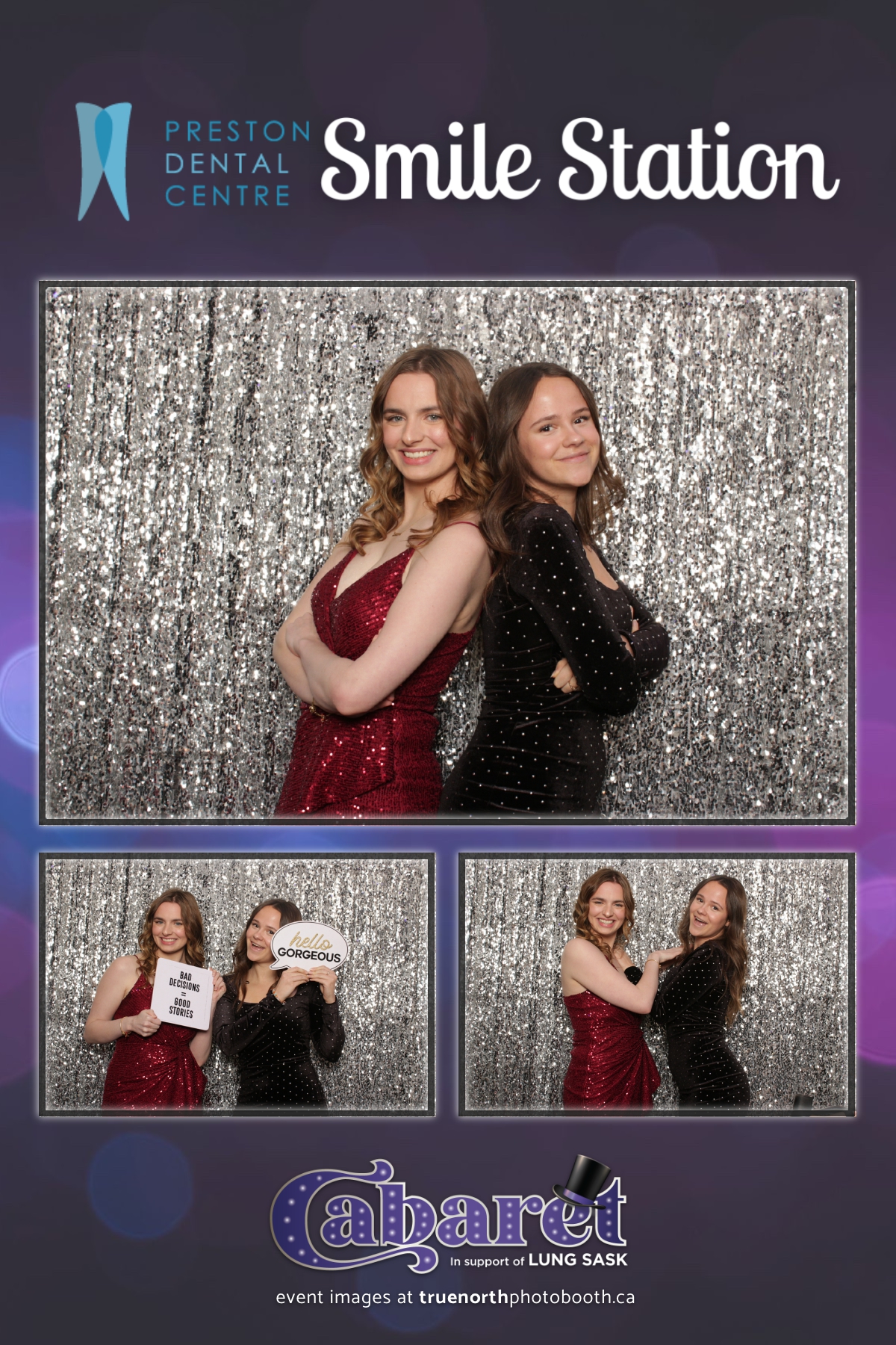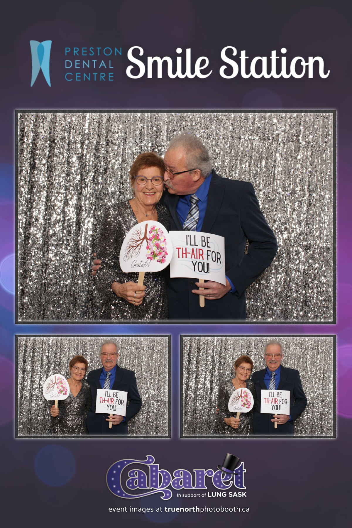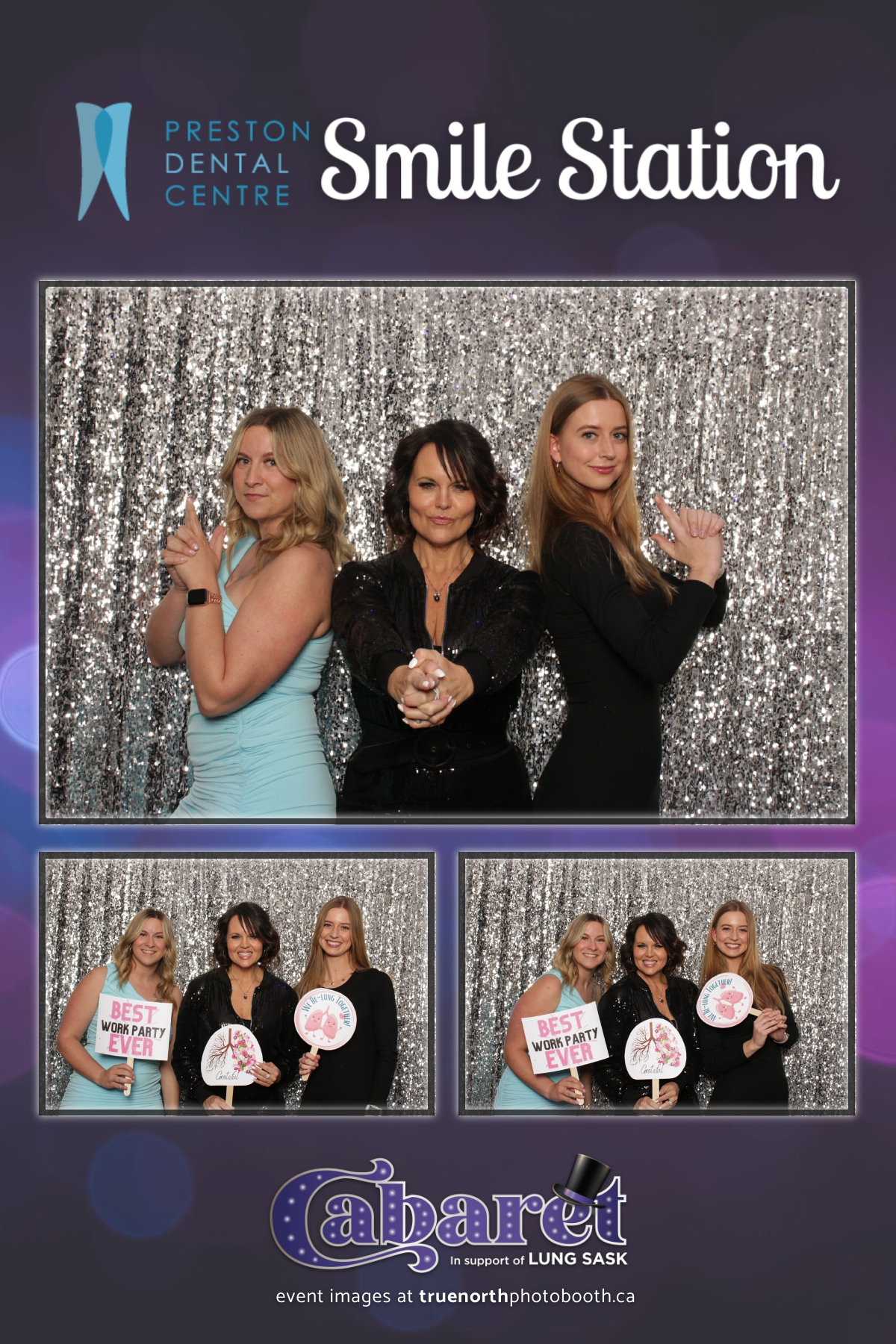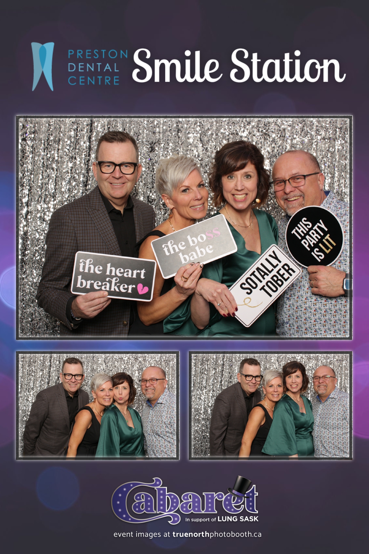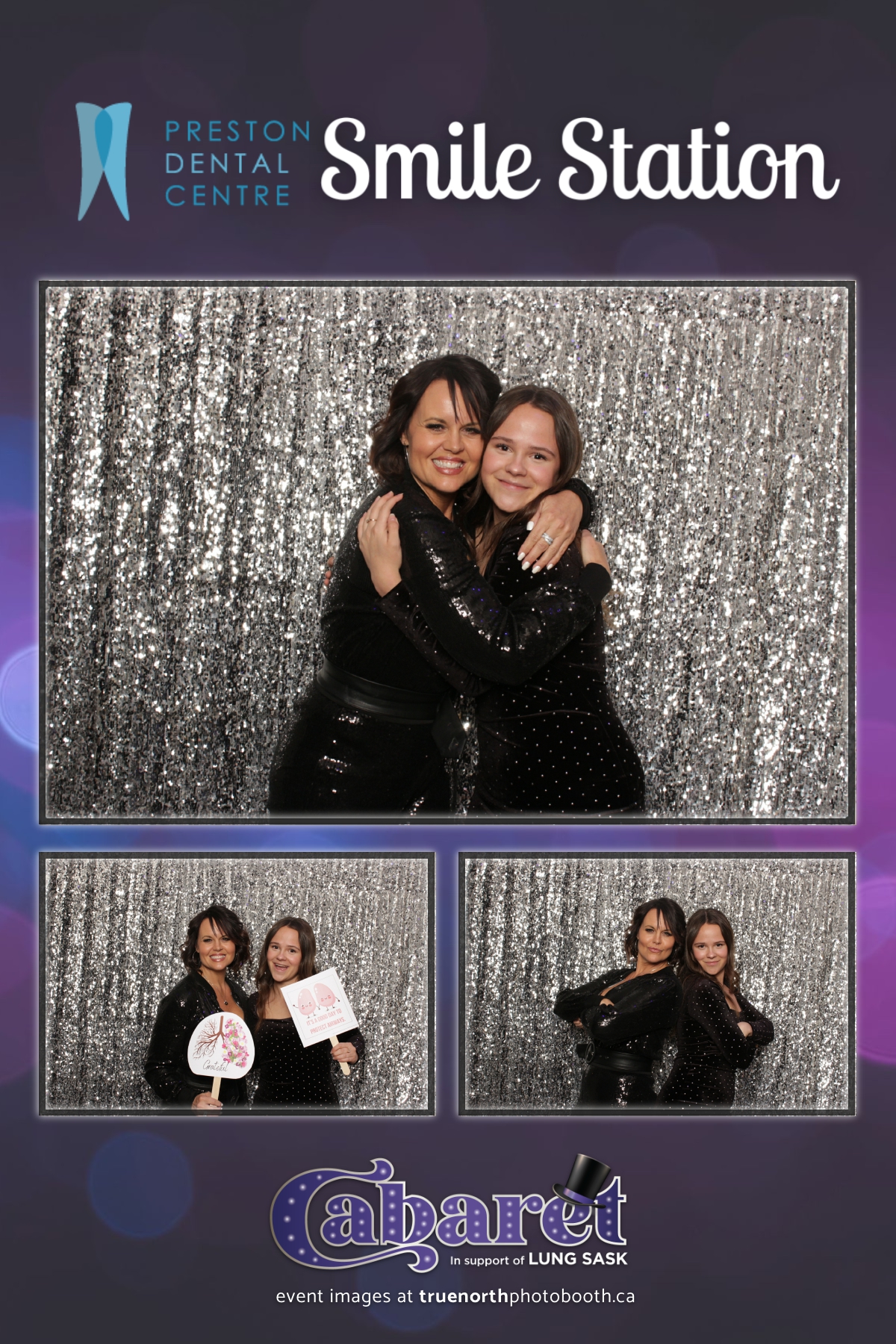 Step into the glitz and glamour of the “Lung Sask Cabaret Smile Station” hosted by Lung Sask at Prairieland Park in Saskatoon. This dazzling event brought together supporters and advocates in a night of laughter, entertainment, and philanthropy. True North Photo Booth was thrilled to be part of the festivities, providing guests with a chance to capture the magic of the evening with custom 4X6 photo strips against a shimmering silver sequin backdrop.