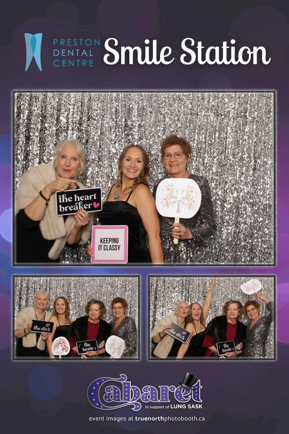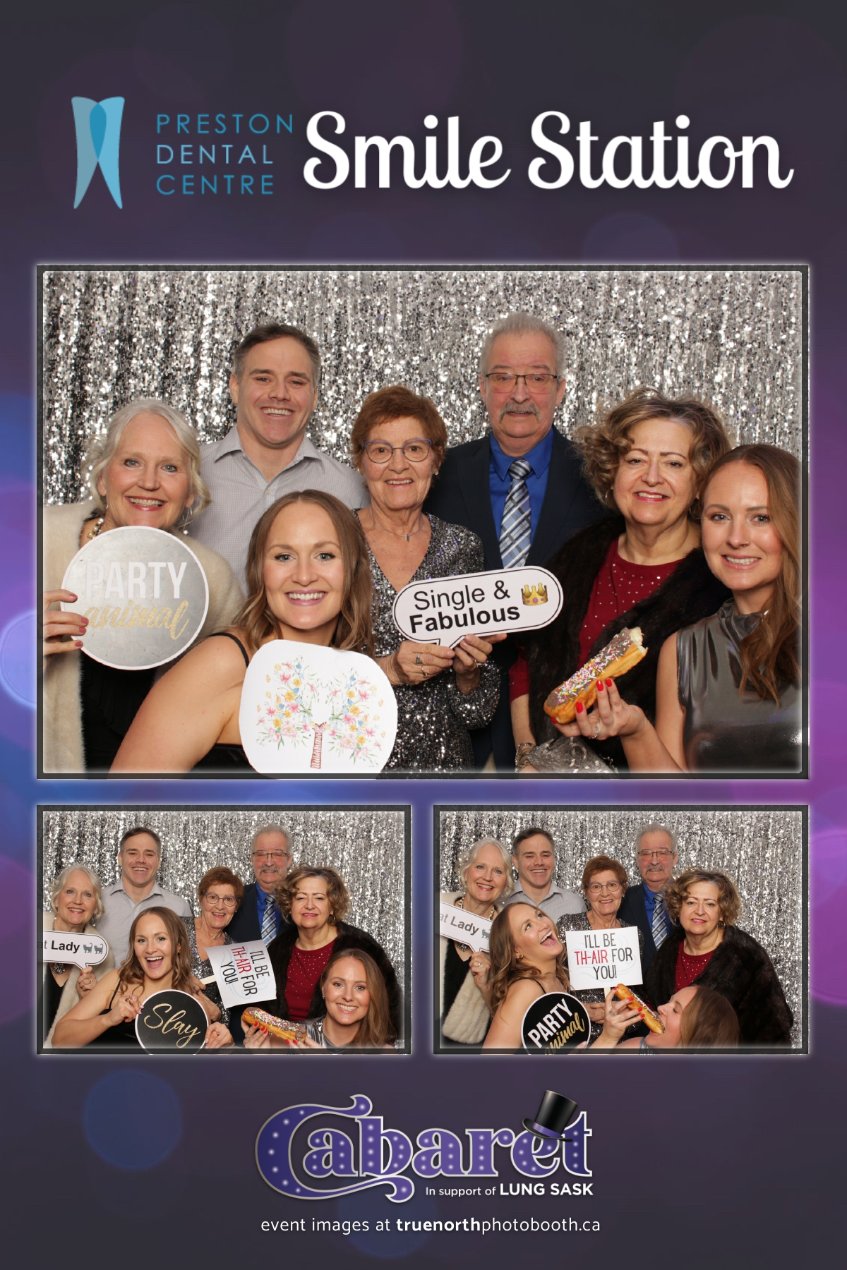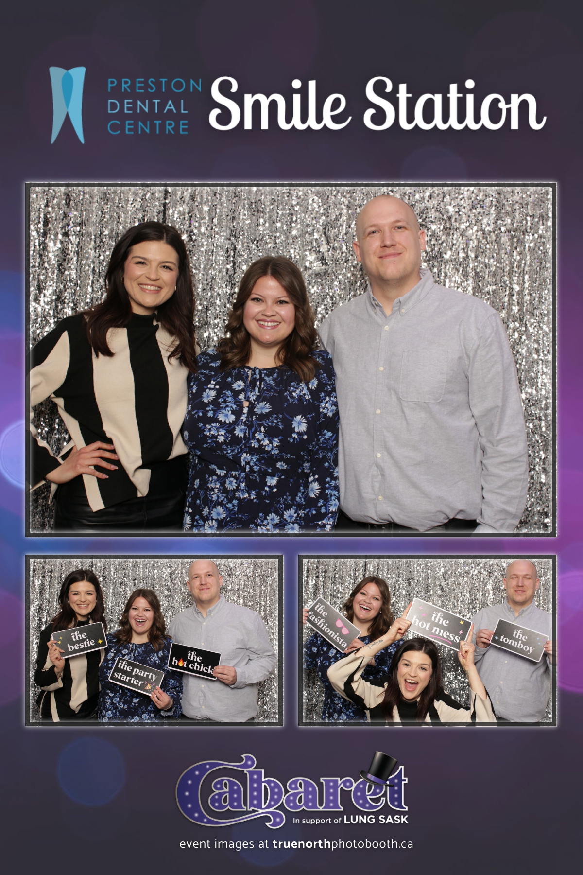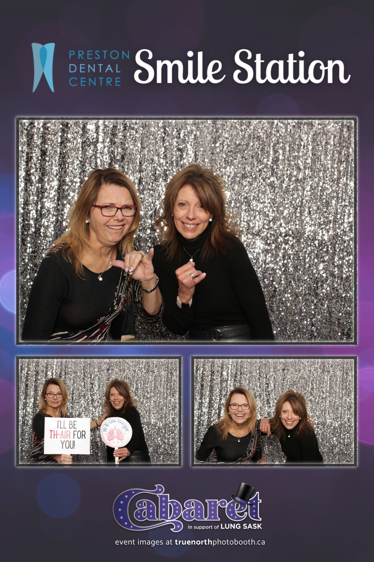 Step into the glitz and glamour of the “Lung Sask Cabaret Smile Station” hosted by Lung Sask at Prairieland Park in Saskatoon. This dazzling event brought together supporters and advocates in a night of laughter, entertainment, and philanthropy. True North Photo Booth was thrilled to be part of the festivities, providing guests with a chance to capture the magic of the evening with custom 4X6 photo strips against a shimmering silver sequin backdrop.