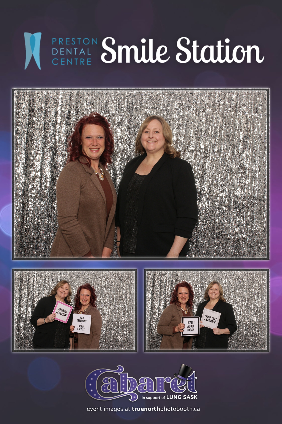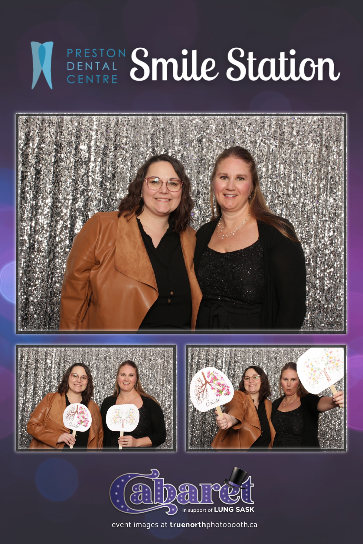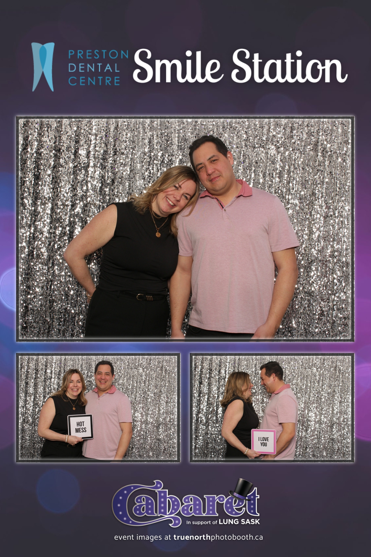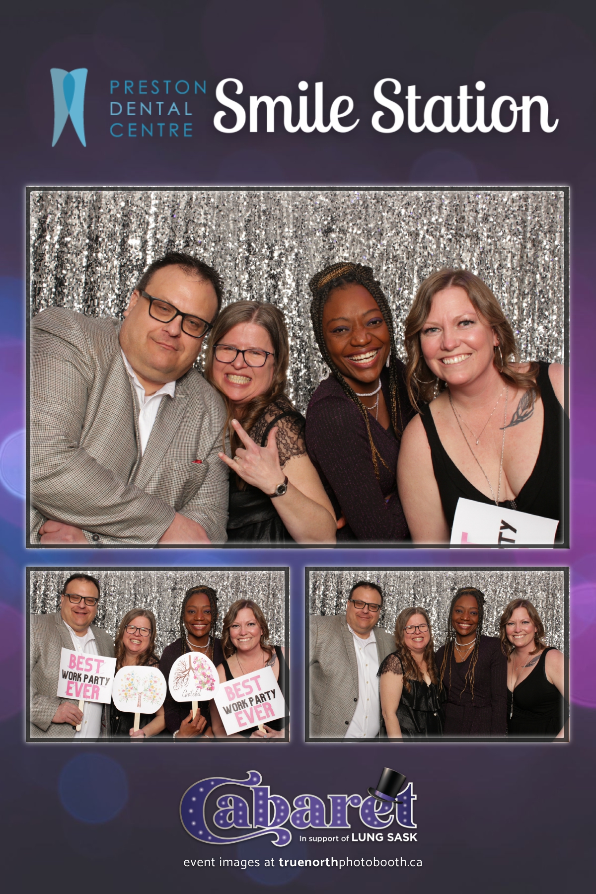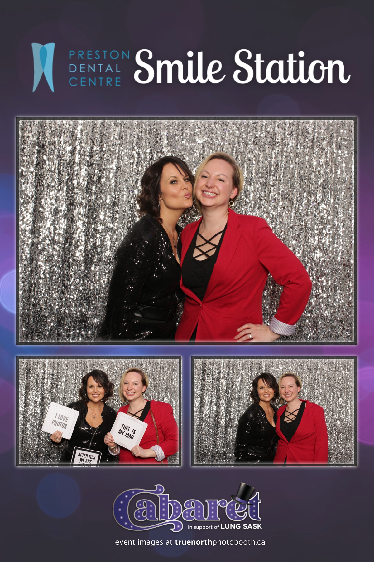 Step into the glitz and glamour of the “Lung Sask Cabaret Smile Station” hosted by Lung Sask at Prairieland Park in Saskatoon. This dazzling event brought together supporters and advocates in a night of laughter, entertainment, and philanthropy. True North Photo Booth was thrilled to be part of the festivities, providing guests with a chance to capture the magic of the evening with custom 4X6 photo strips against a shimmering silver sequin backdrop.