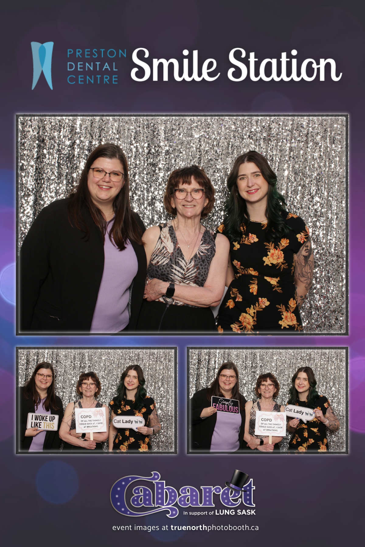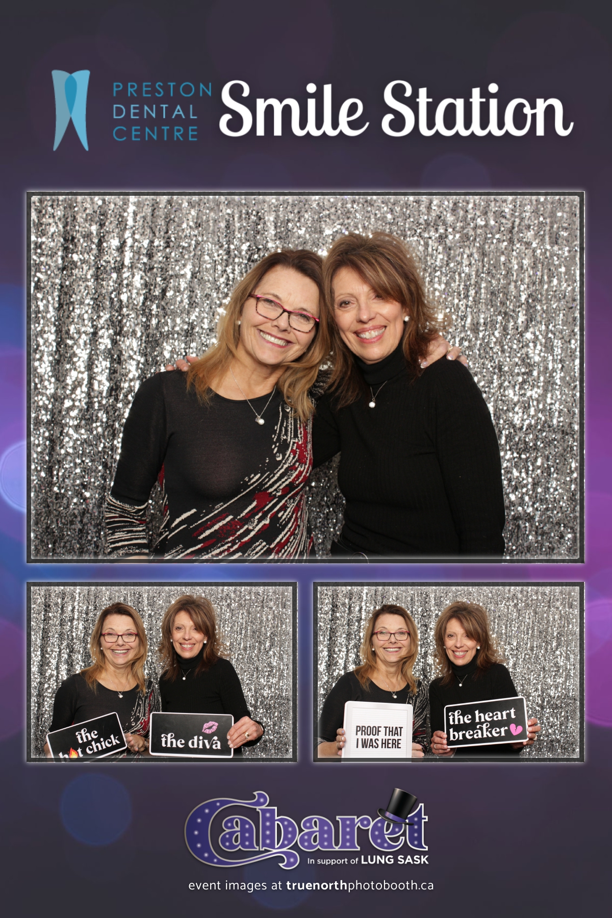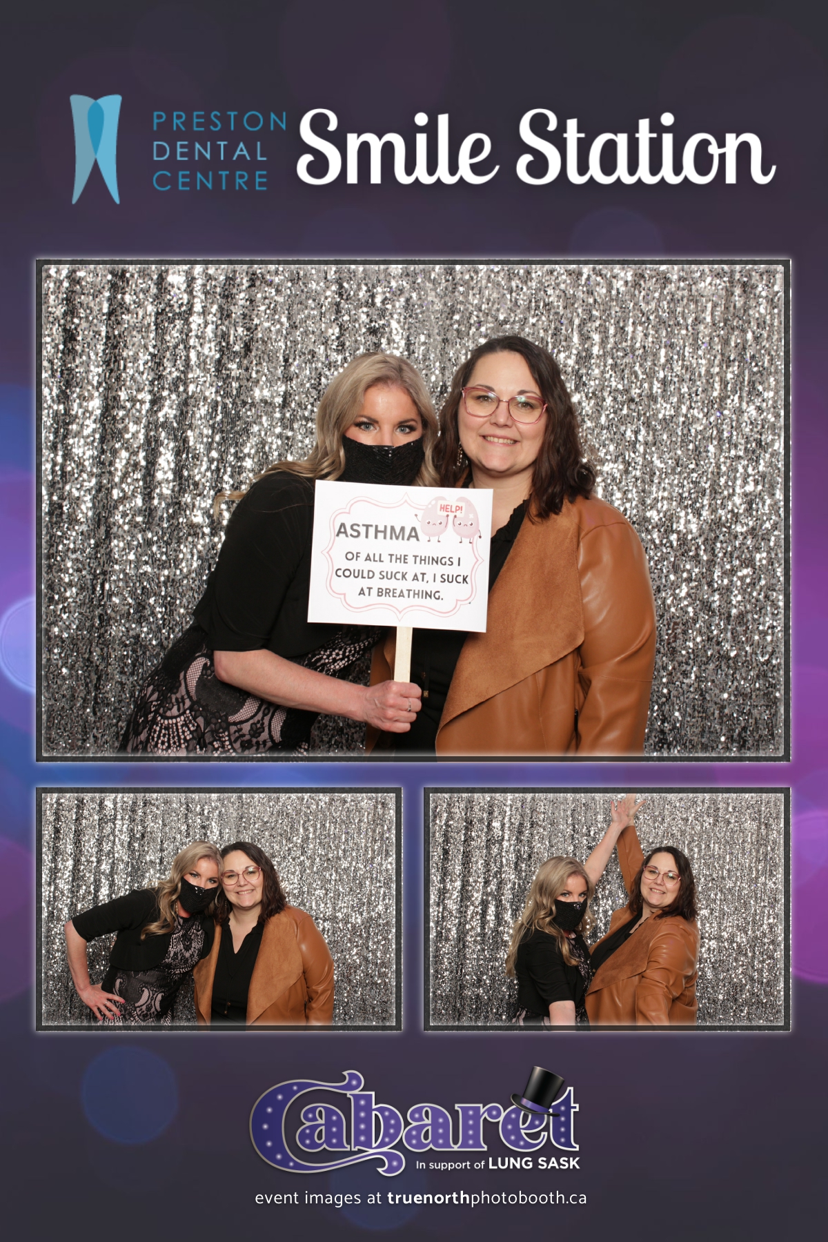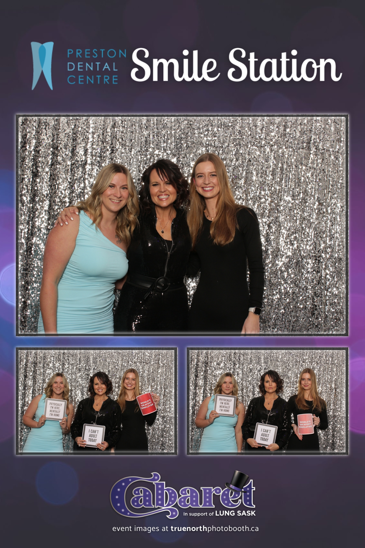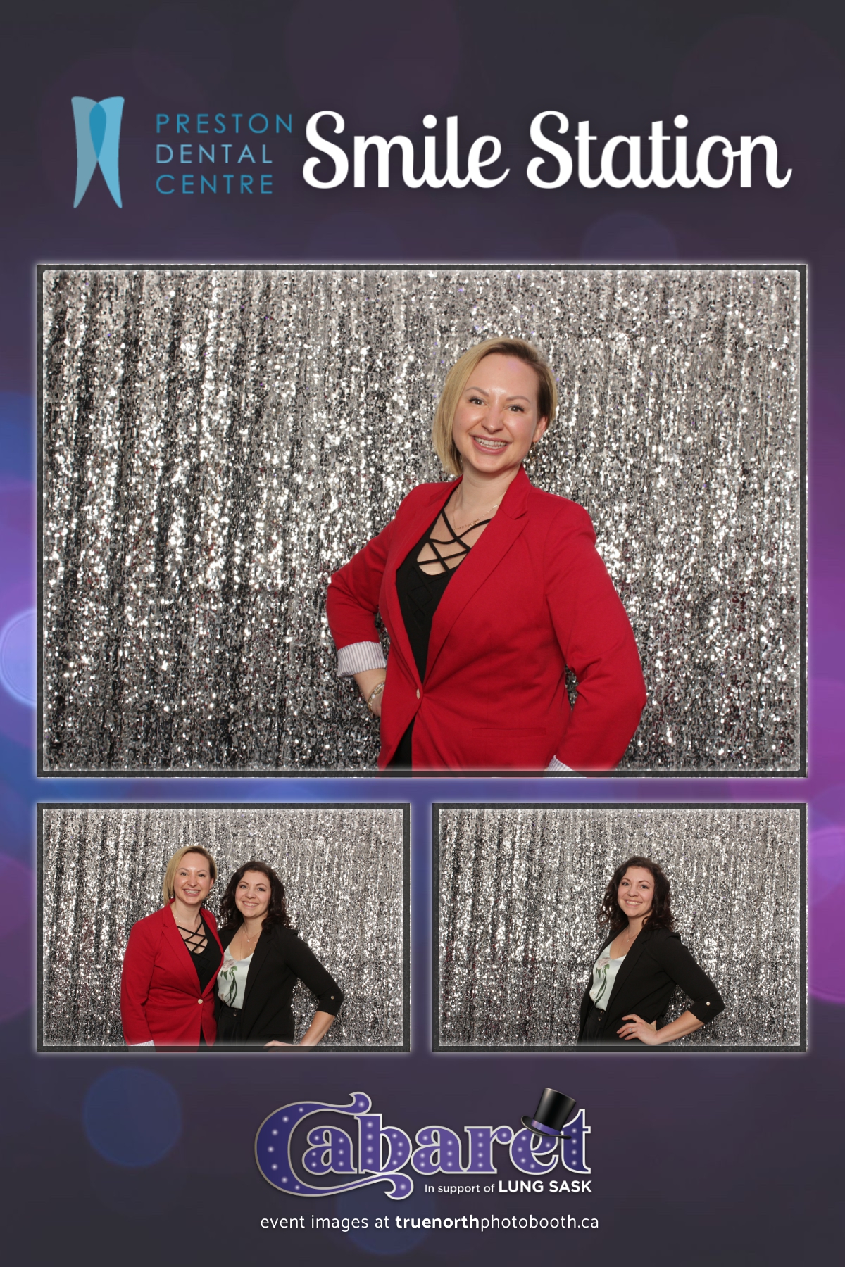 Step into the glitz and glamour of the “Lung Sask Cabaret Smile Station” hosted by Lung Sask at Prairieland Park in Saskatoon. This dazzling event brought together supporters and advocates in a night of laughter, entertainment, and philanthropy. True North Photo Booth was thrilled to be part of the festivities, providing guests with a chance to capture the magic of the evening with custom 4X6 photo strips against a shimmering silver sequin backdrop.