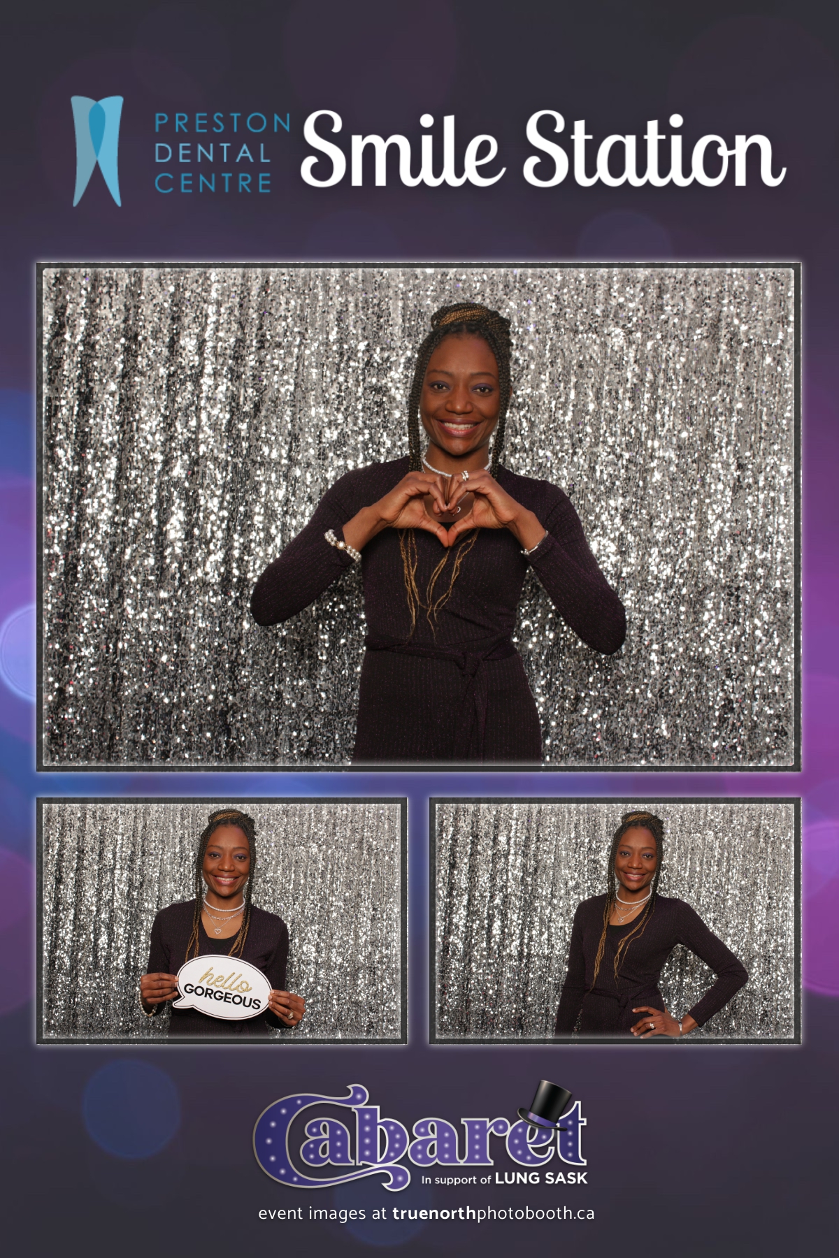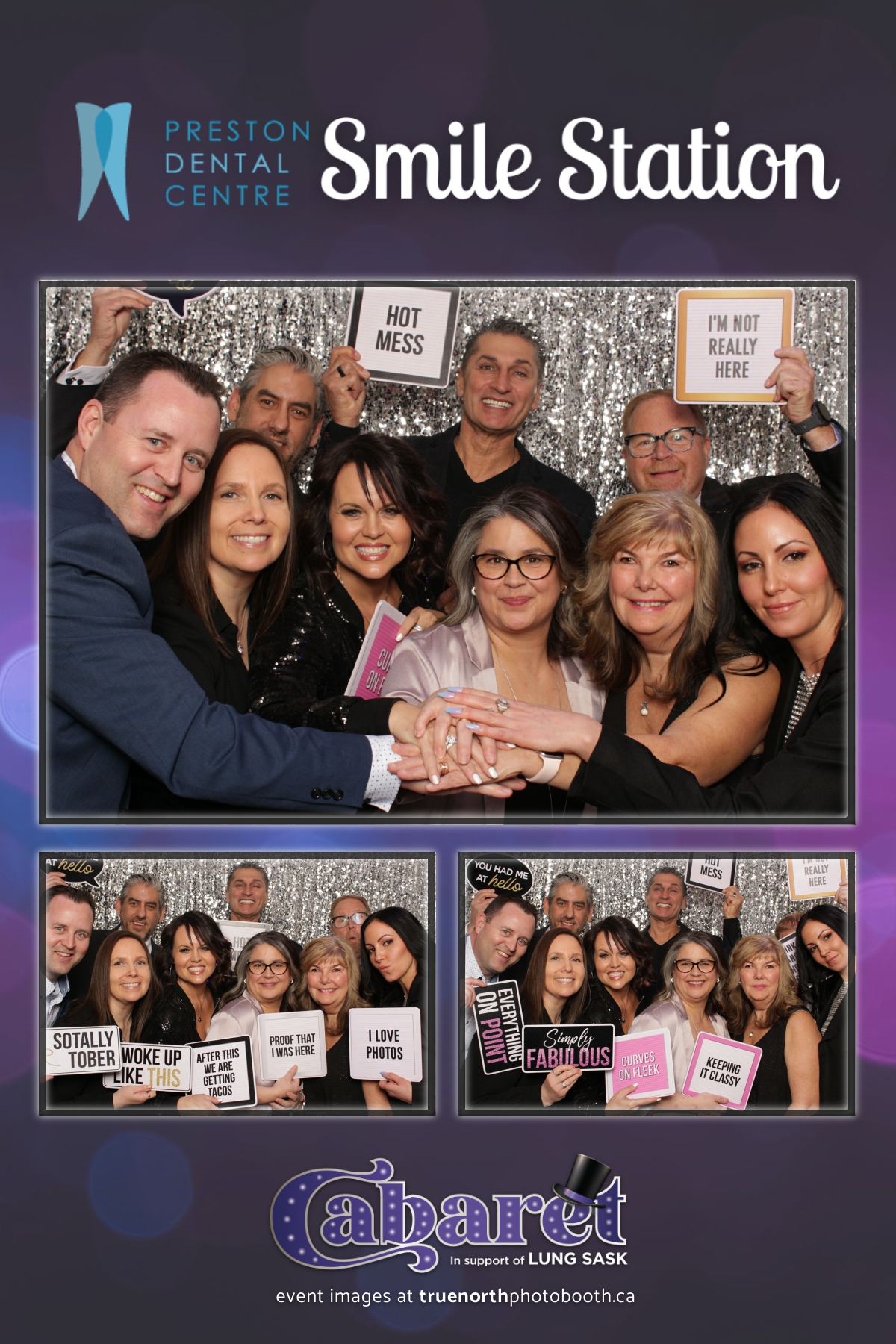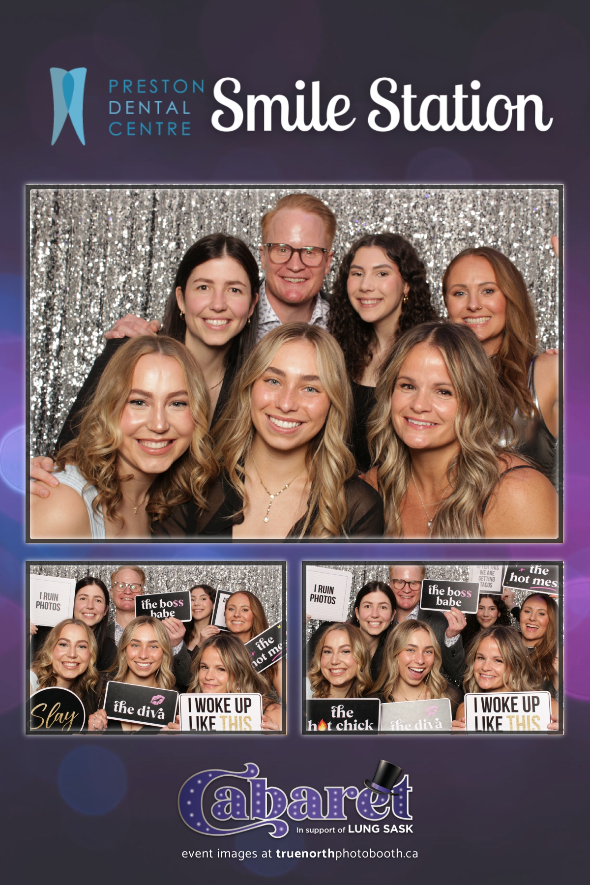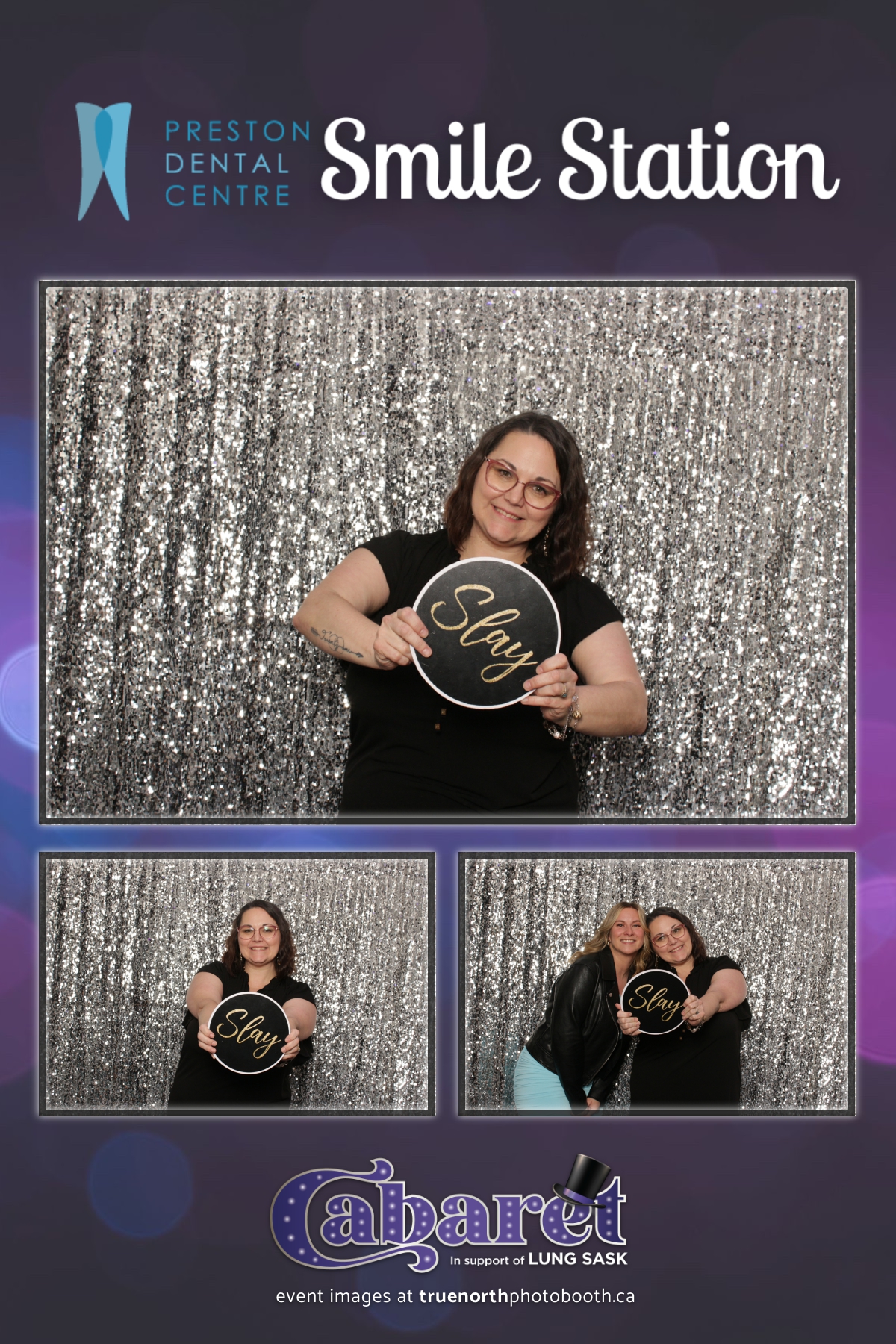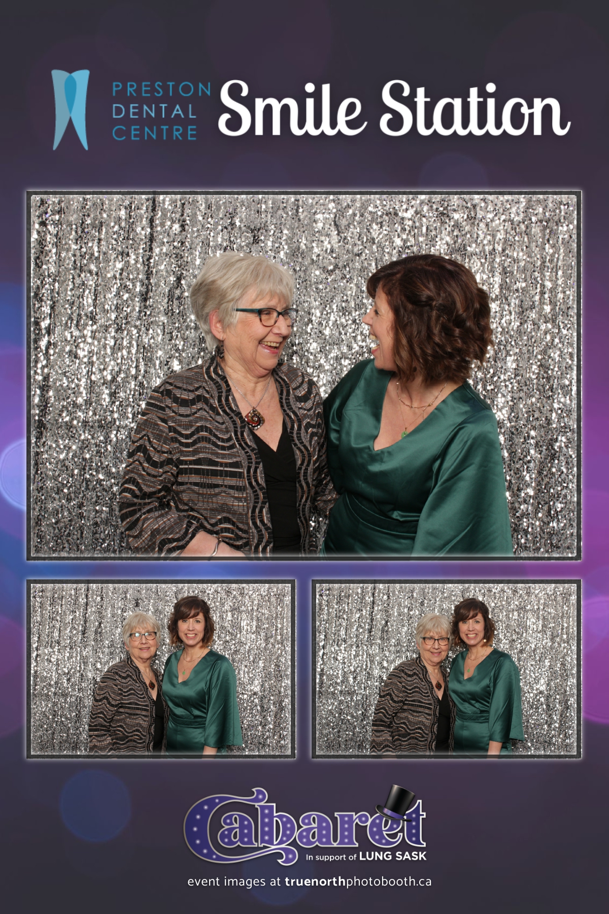 Step into the glitz and glamour of the “Lung Sask Cabaret Smile Station” hosted by Lung Sask at Prairieland Park in Saskatoon. This dazzling event brought together supporters and advocates in a night of laughter, entertainment, and philanthropy. True North Photo Booth was thrilled to be part of the festivities, providing guests with a chance to capture the magic of the evening with custom 4X6 photo strips against a shimmering silver sequin backdrop.