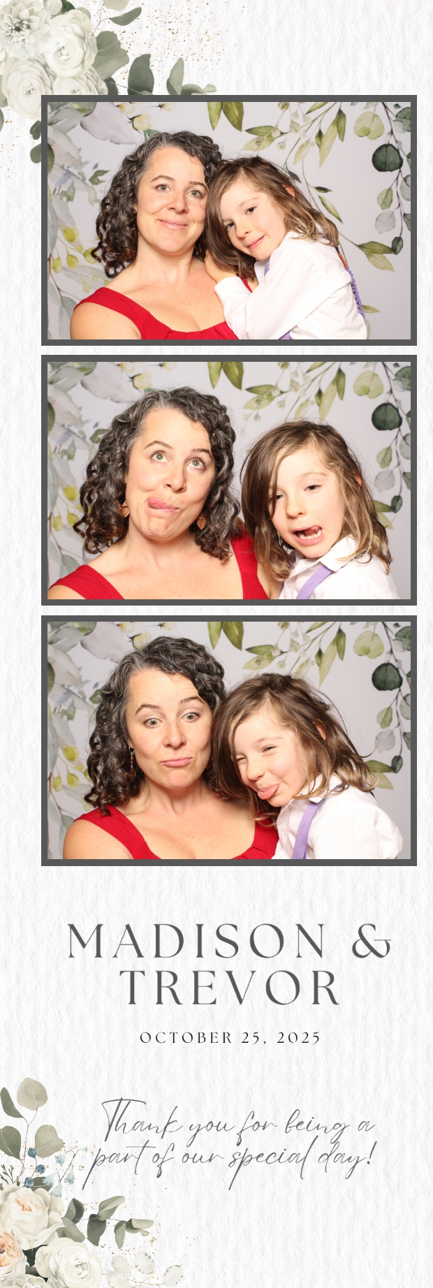 Guests had a blast at the photo booth, capturing keepsake memories with 2X6 custom photo strips against a whimsical greenery pillow backdrop. The fun and interactive setup allowed everyone to take home a personal memento, making the celebration even more memorable and ensuring that the day’s happiness was preserved in style.