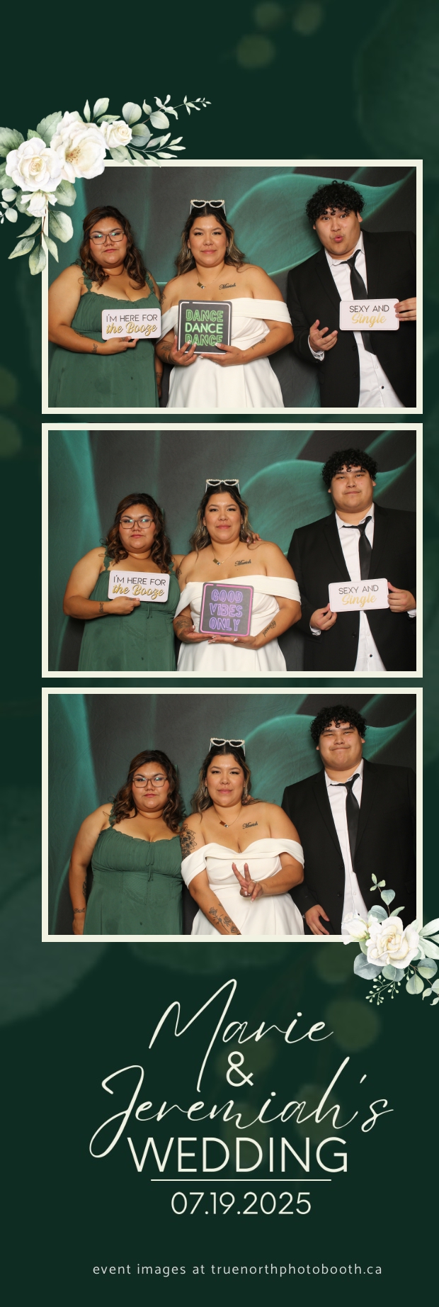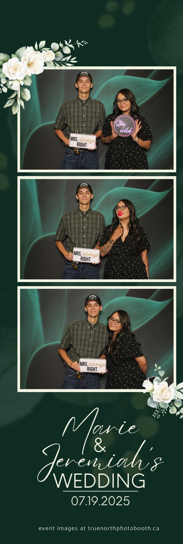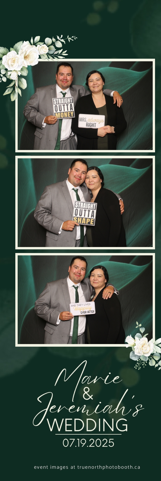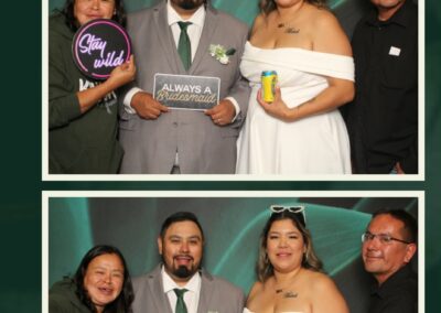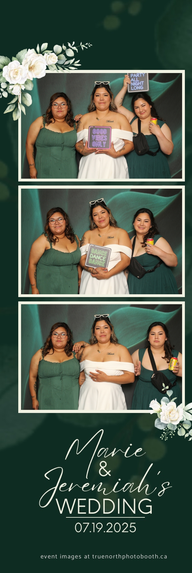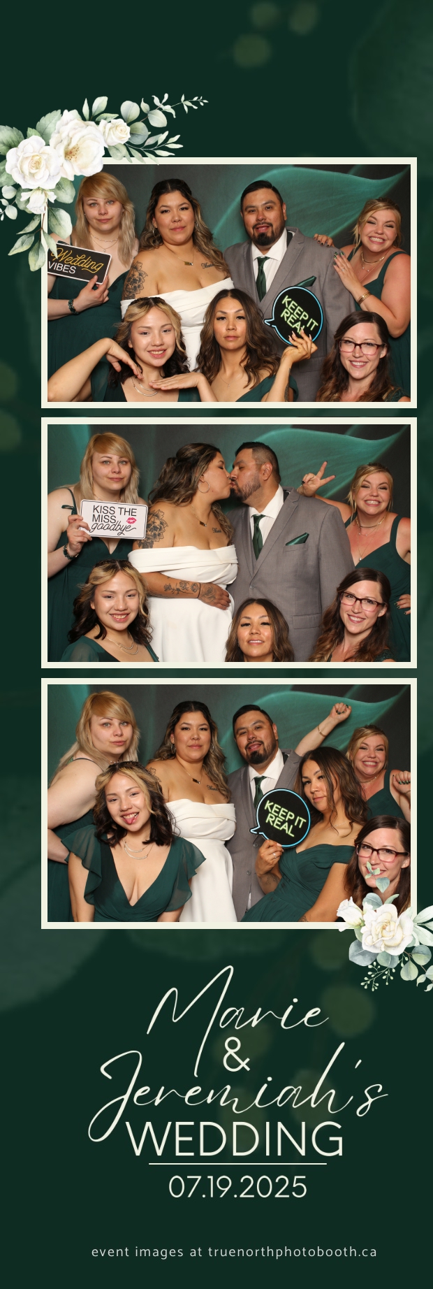 To match the refined atmosphere of the event, our elegant green pillow backdrops provided a lush, sophisticated setting that complemented the couple’s stylish wedding theme. With laughter, love, and countless photo-worthy moments, Marie & Jeremiah’s special day was a picture-perfect celebration made even more memorable with the True North Photo Booth experience.