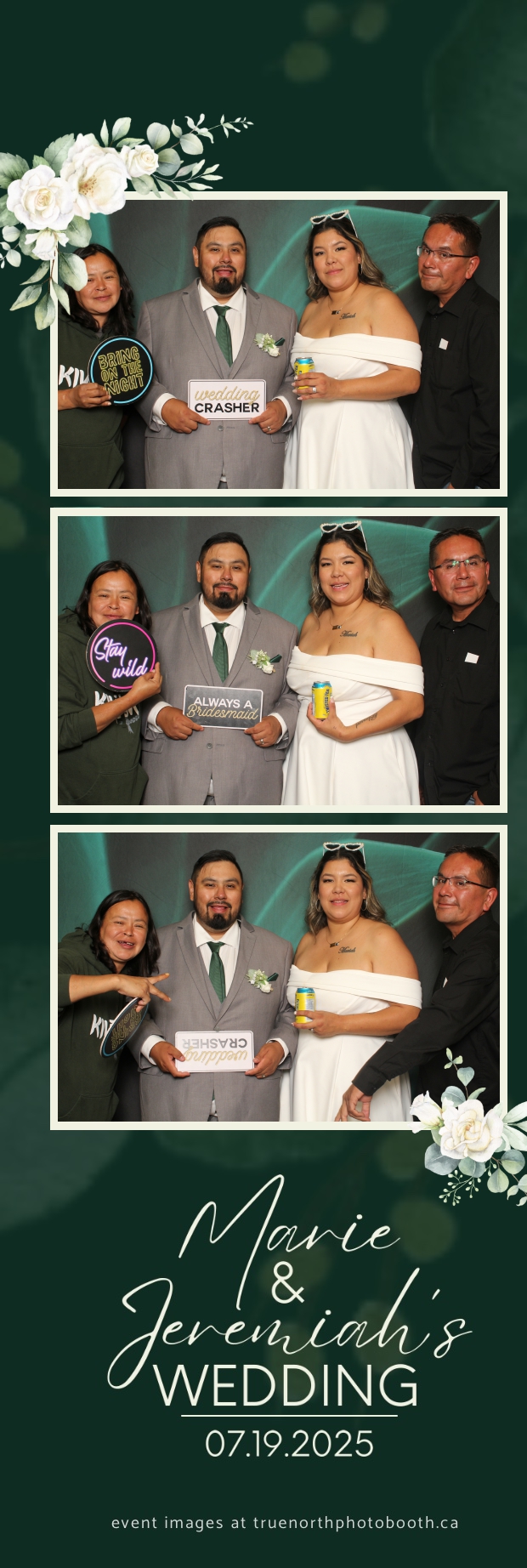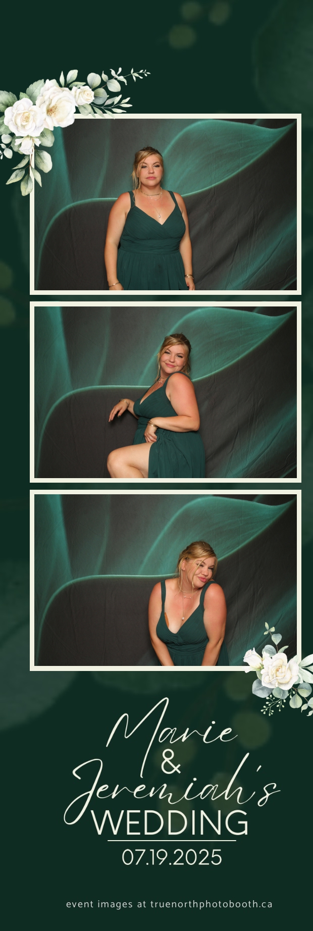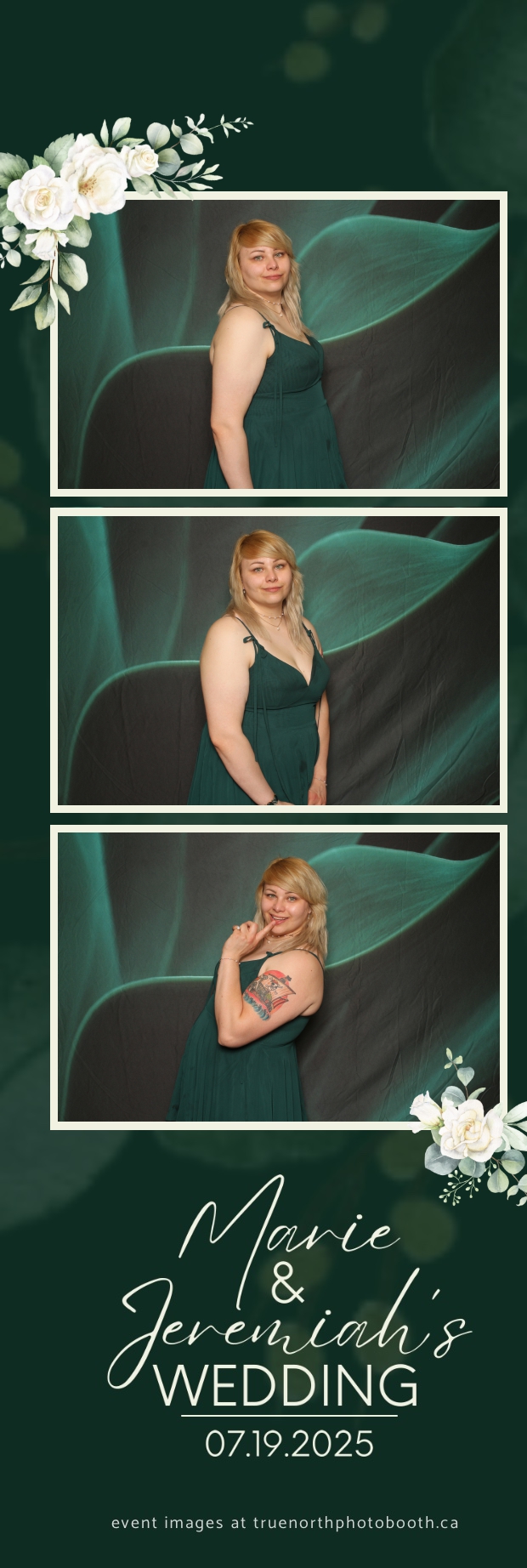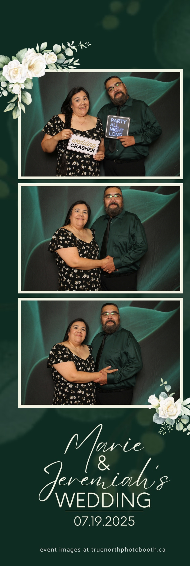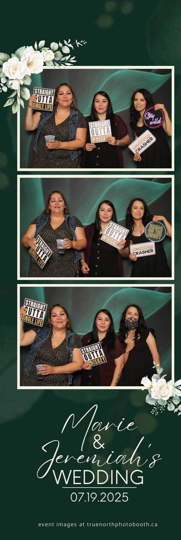 To match the refined atmosphere of the event, our elegant green pillow backdrops provided a lush, sophisticated setting that complemented the couple’s stylish wedding theme. With laughter, love, and countless photo-worthy moments, Marie & Jeremiah’s special day was a picture-perfect celebration made even more memorable with the True North Photo Booth experience.