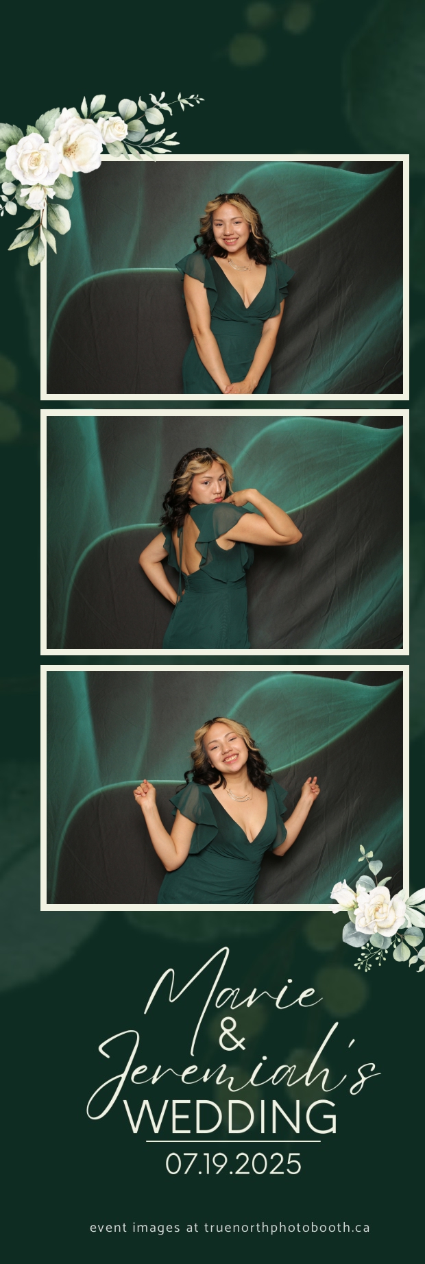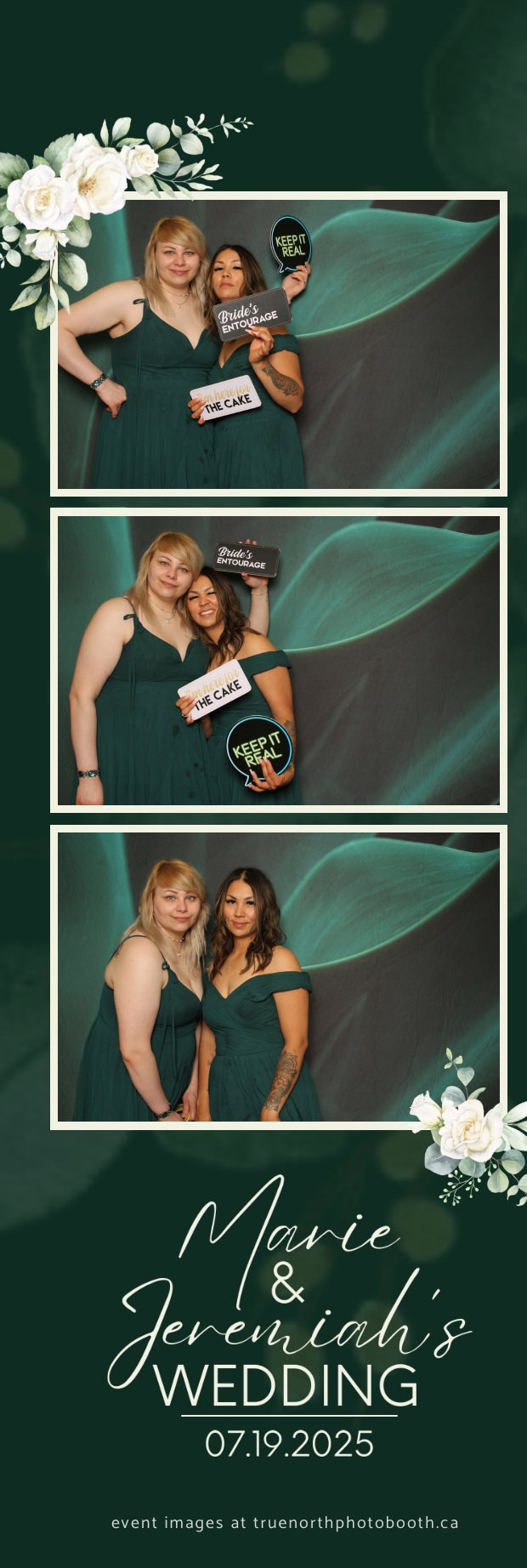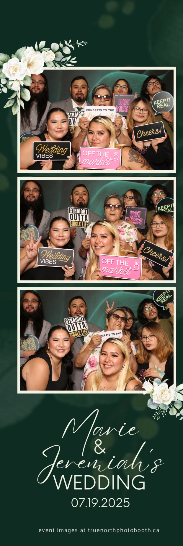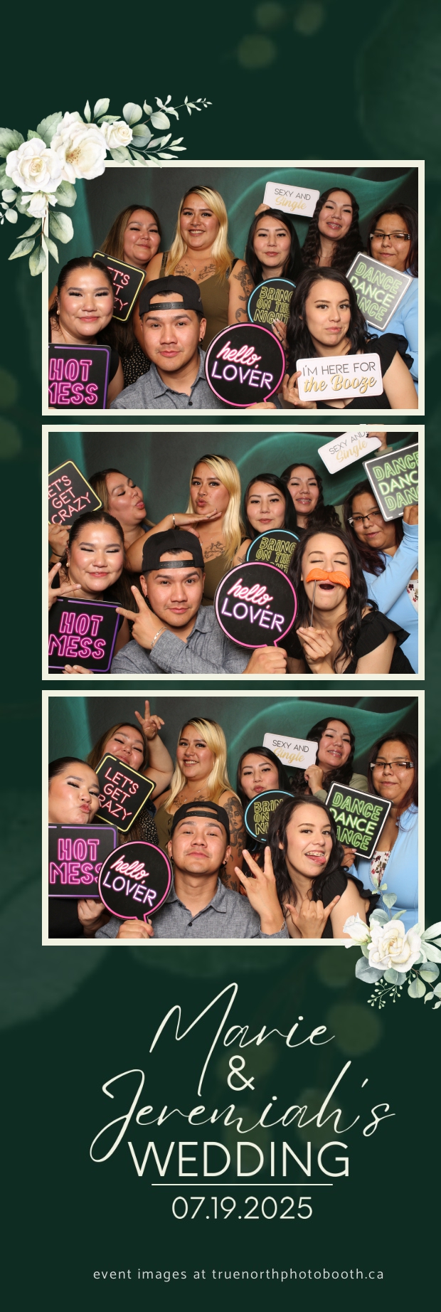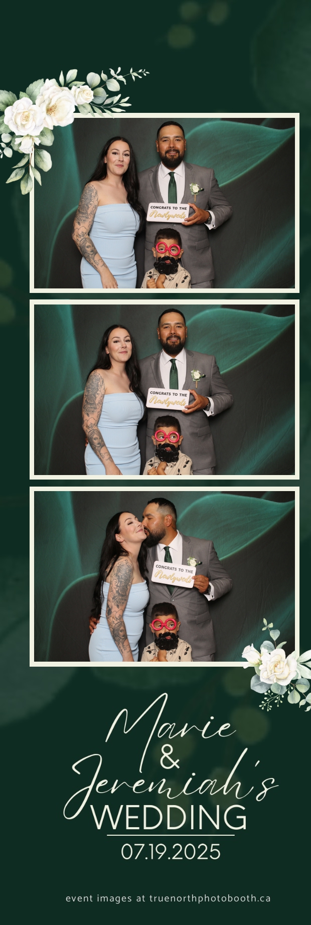 To match the refined atmosphere of the event, our elegant green pillow backdrops provided a lush, sophisticated setting that complemented the couple’s stylish wedding theme. With laughter, love, and countless photo-worthy moments, Marie & Jeremiah’s special day was a picture-perfect celebration made even more memorable with the True North Photo Booth experience.