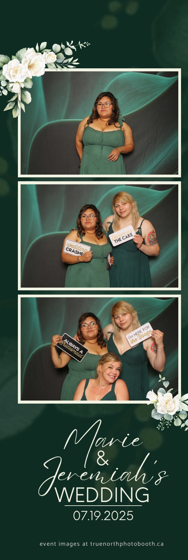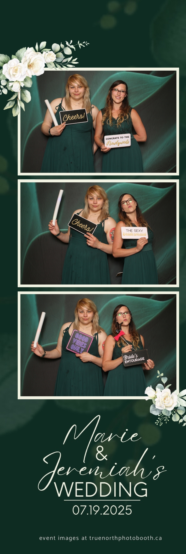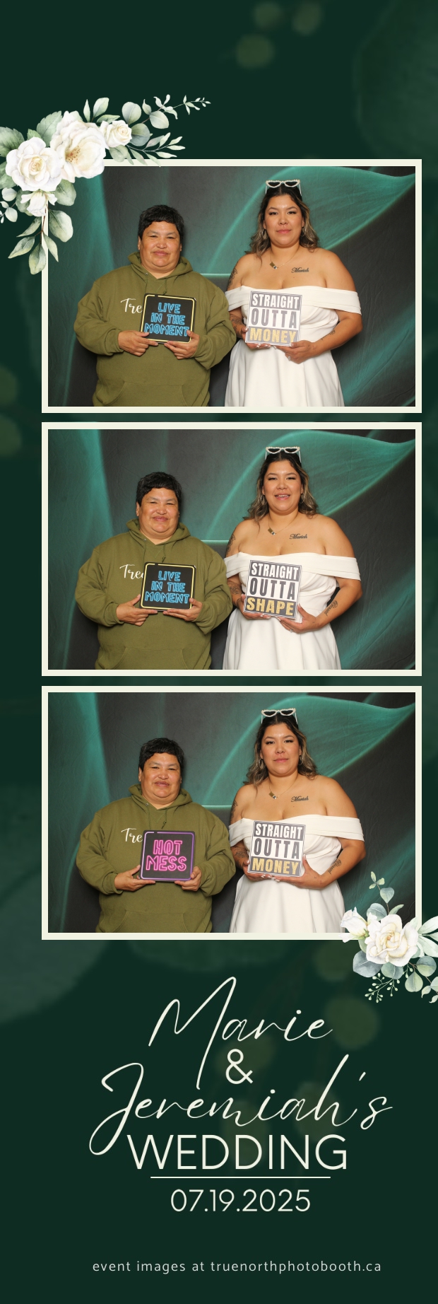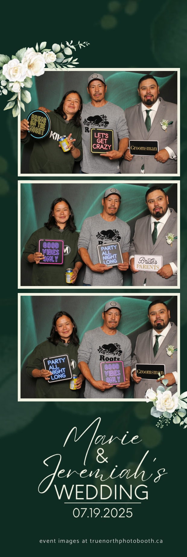 To match the refined atmosphere of the event, our elegant green pillow backdrops provided a lush, sophisticated setting that complemented the couple’s stylish wedding theme. With laughter, love, and countless photo-worthy moments, Marie & Jeremiah’s special day was a picture-perfect celebration made even more memorable with the True North Photo Booth experience.