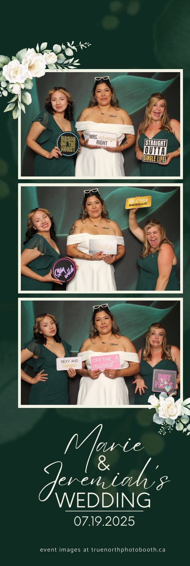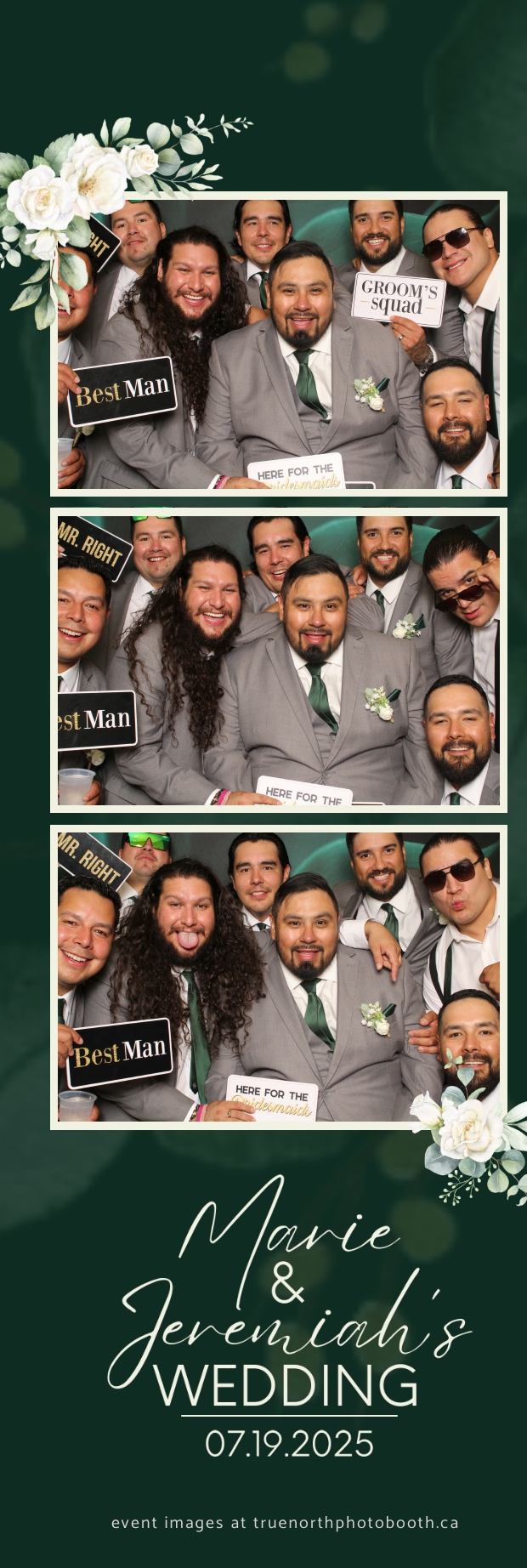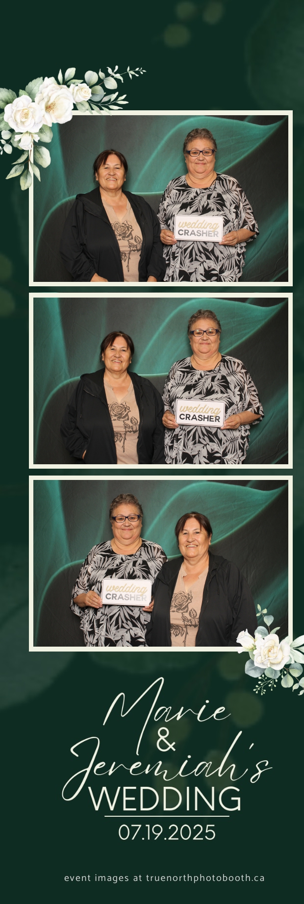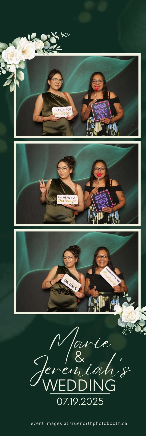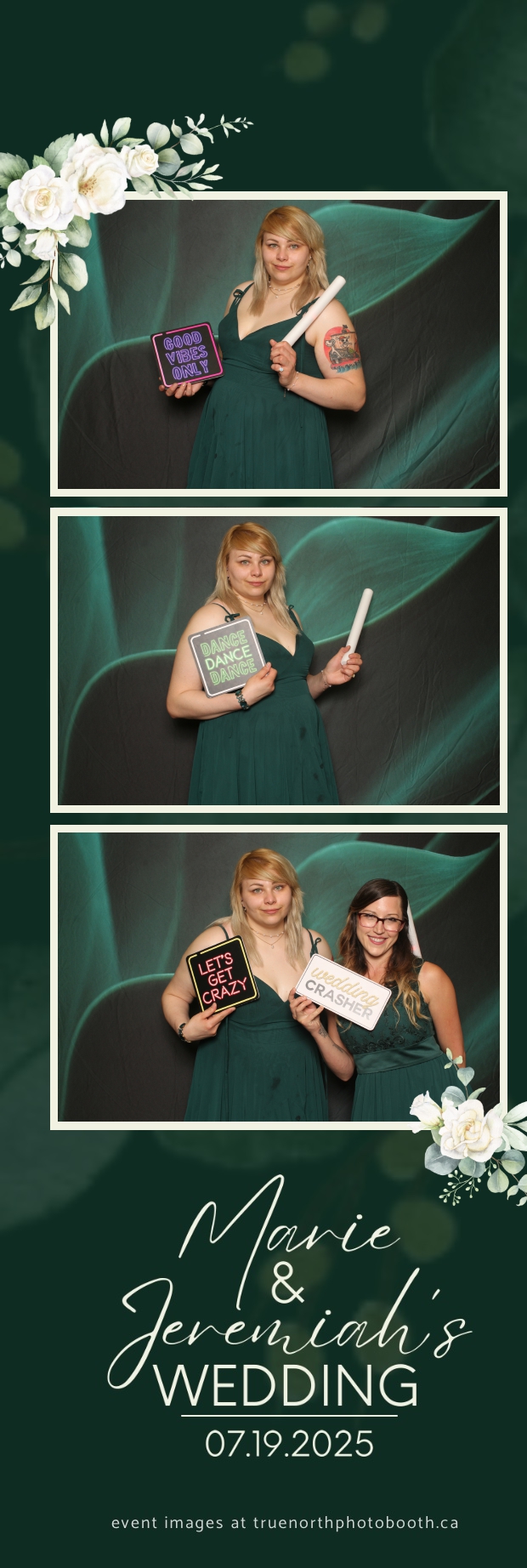 To match the refined atmosphere of the event, our elegant green pillow backdrops provided a lush, sophisticated setting that complemented the couple’s stylish wedding theme. With laughter, love, and countless photo-worthy moments, Marie & Jeremiah’s special day was a picture-perfect celebration made even more memorable with the True North Photo Booth experience.
