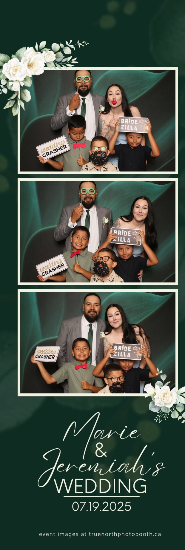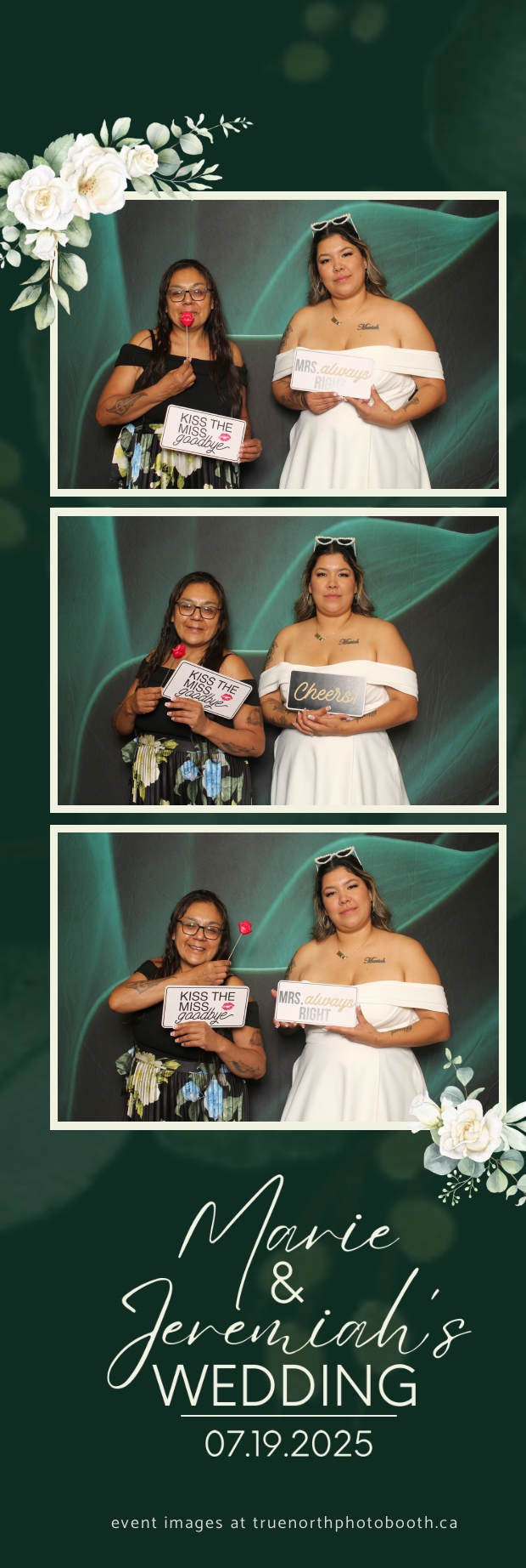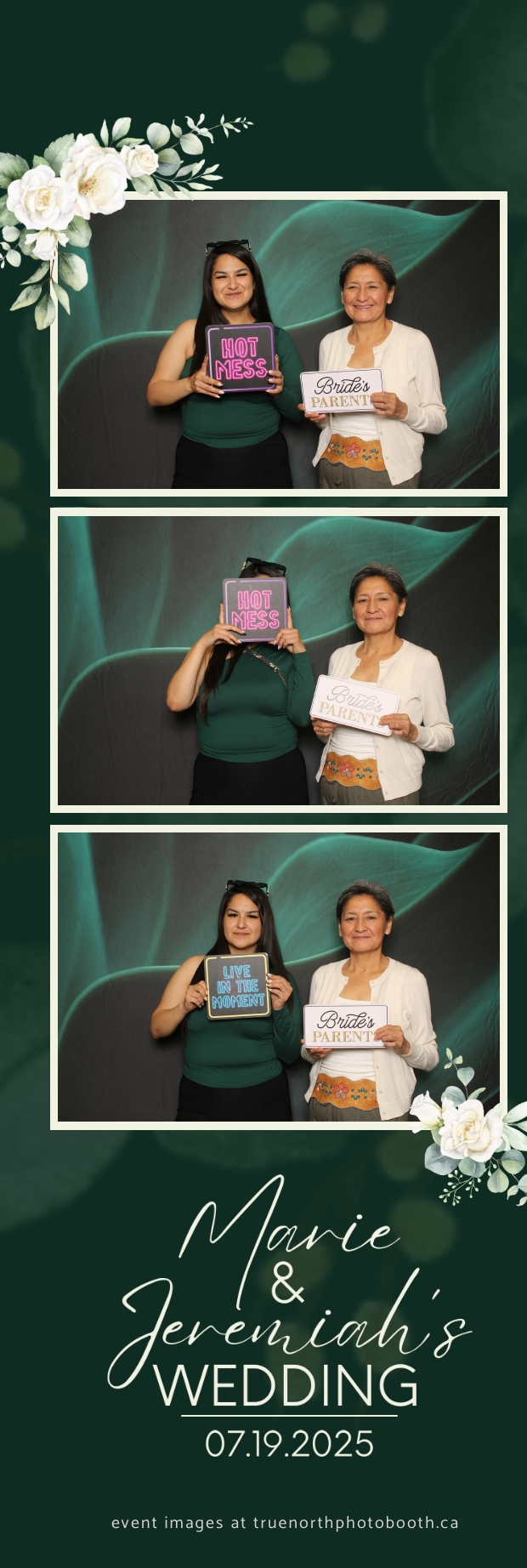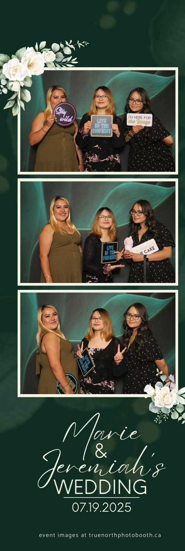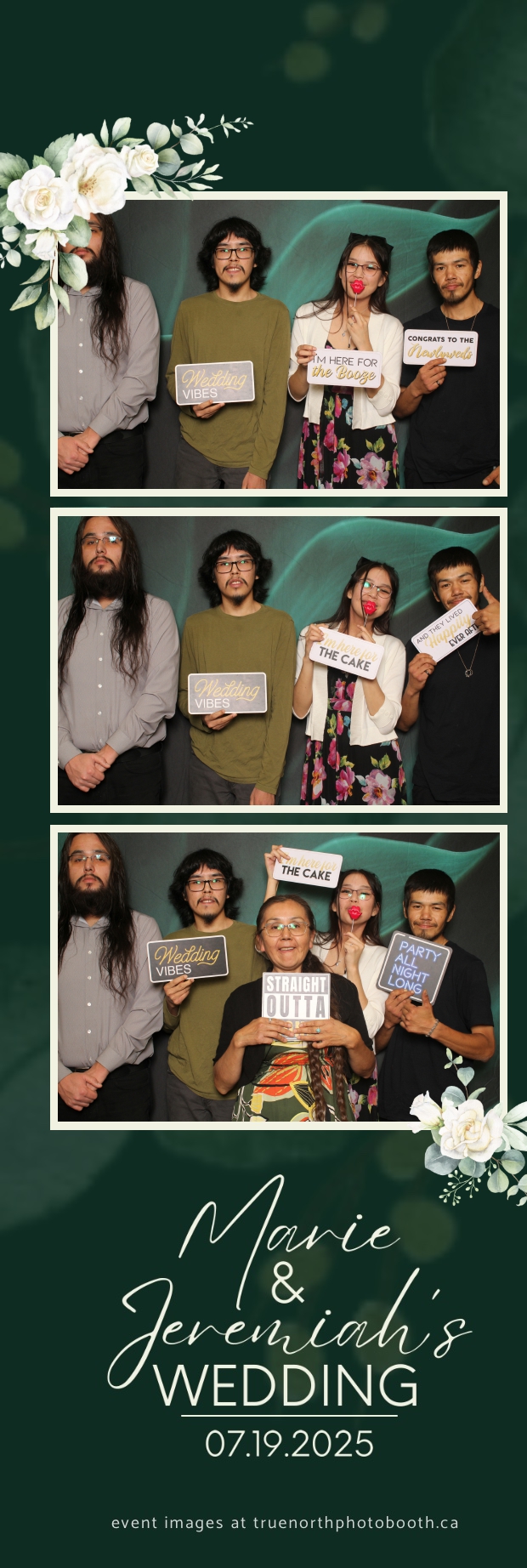To match the refined atmosphere of the event, our elegant green pillow backdrops provided a lush, sophisticated setting that complemented the couple’s stylish wedding theme. With laughter, love, and countless photo-worthy moments, Marie & Jeremiah’s special day was a picture-perfect celebration made even more memorable with the True North Photo Booth experience.