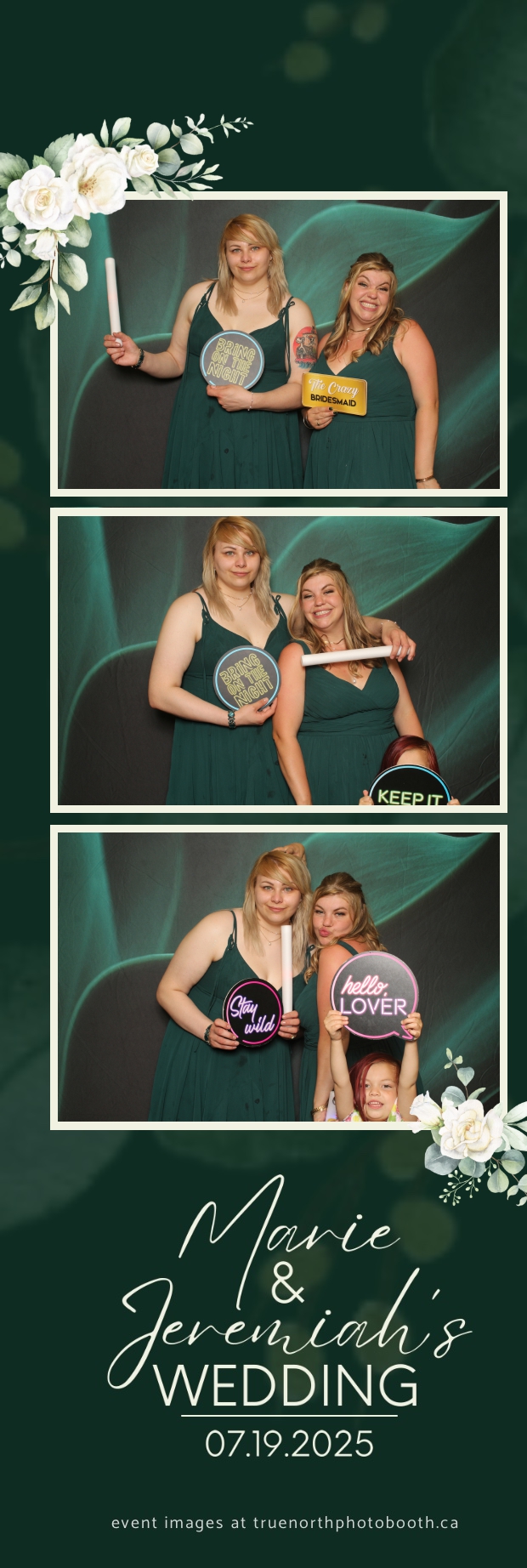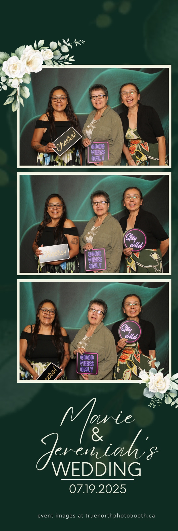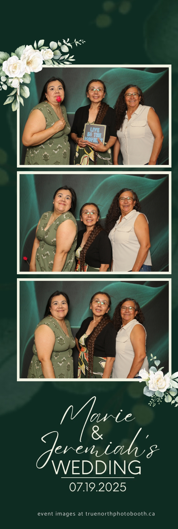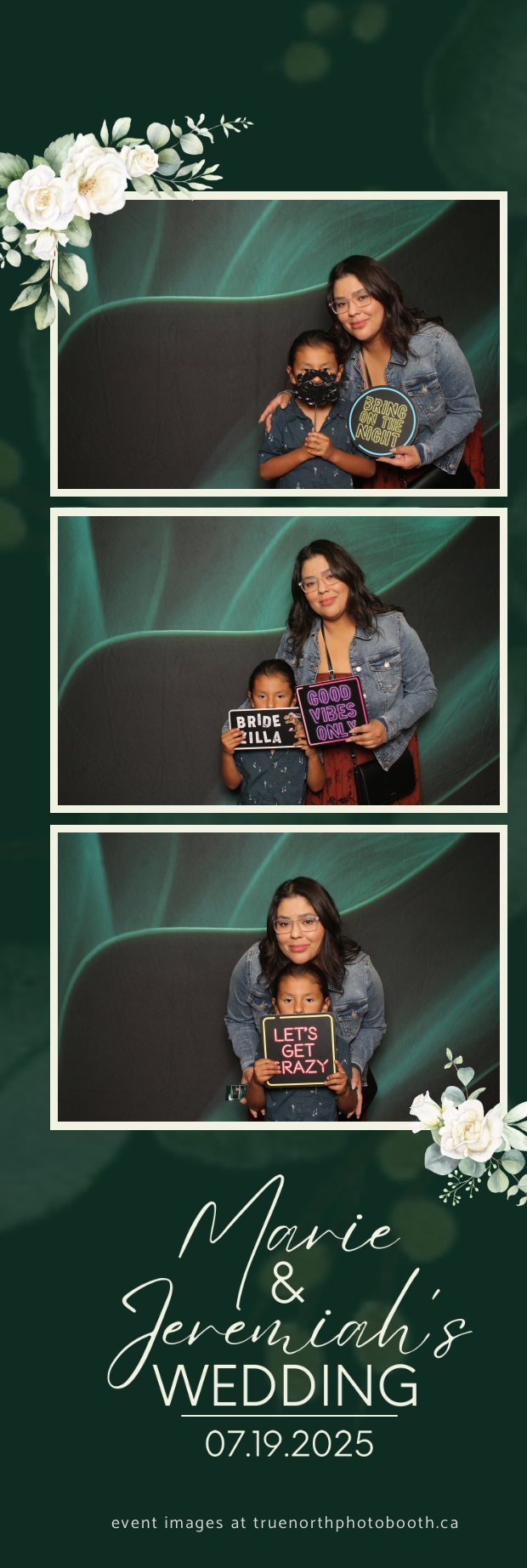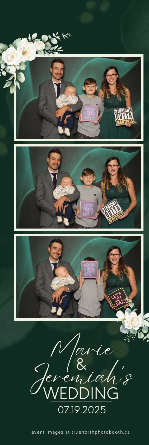 To match the refined atmosphere of the event, our elegant green pillow backdrops provided a lush, sophisticated setting that complemented the couple’s stylish wedding theme. With laughter, love, and countless photo-worthy moments, Marie & Jeremiah’s special day was a picture-perfect celebration made even more memorable with the True North Photo Booth experience.