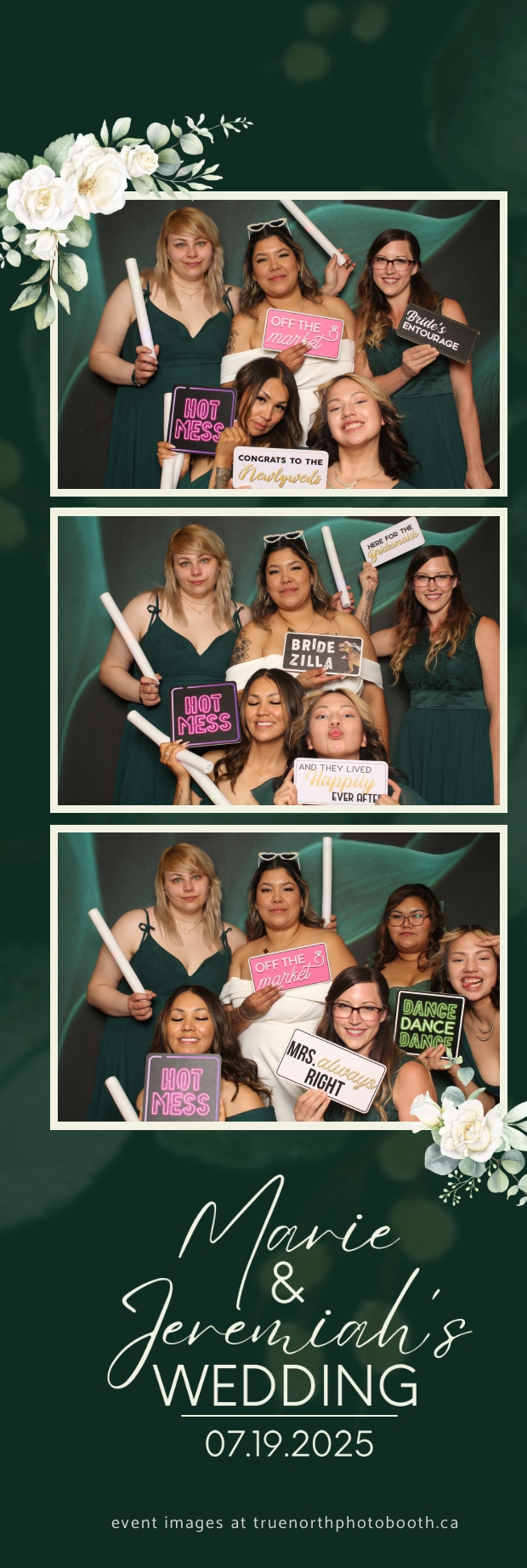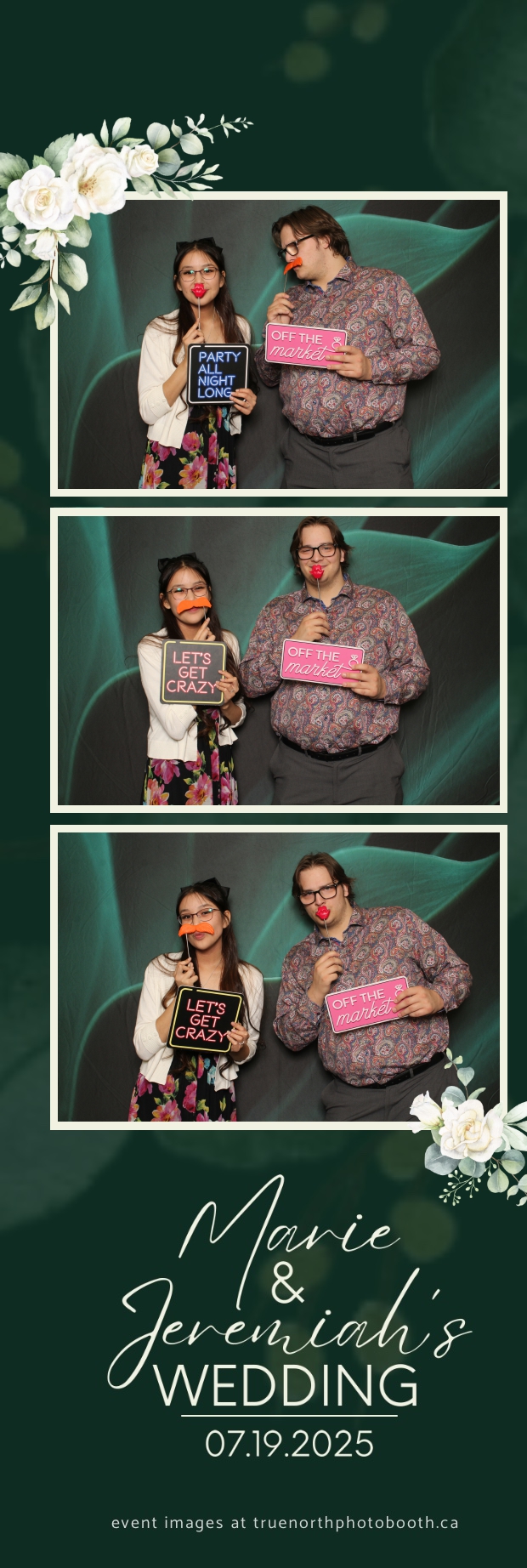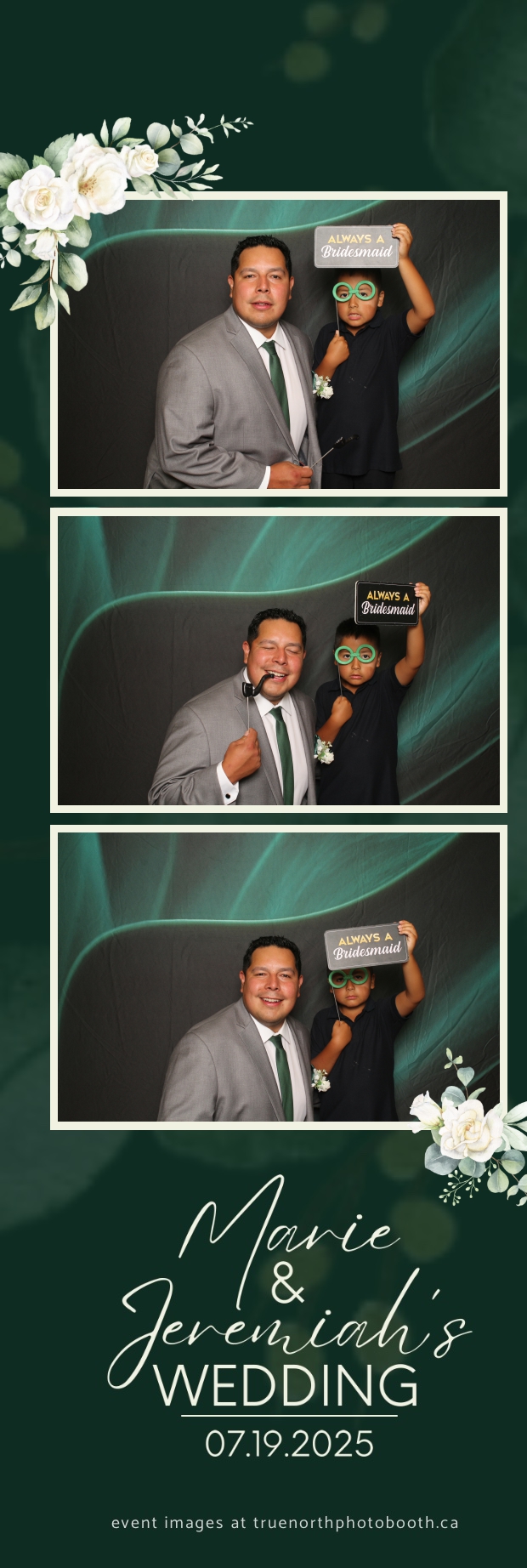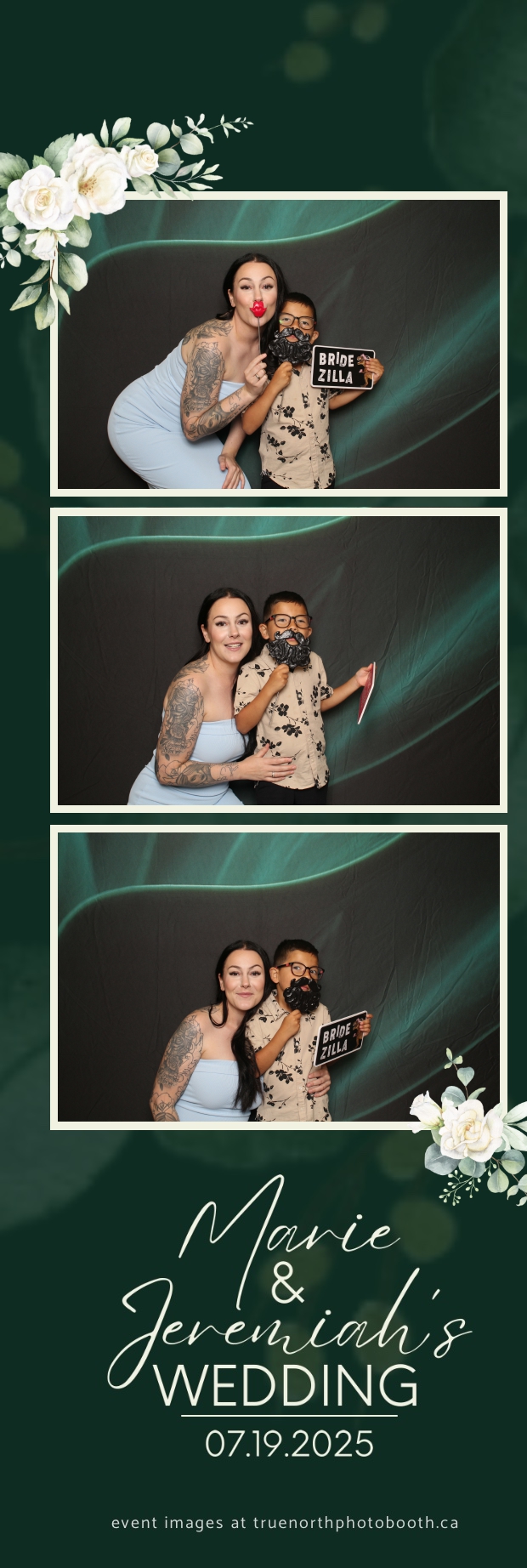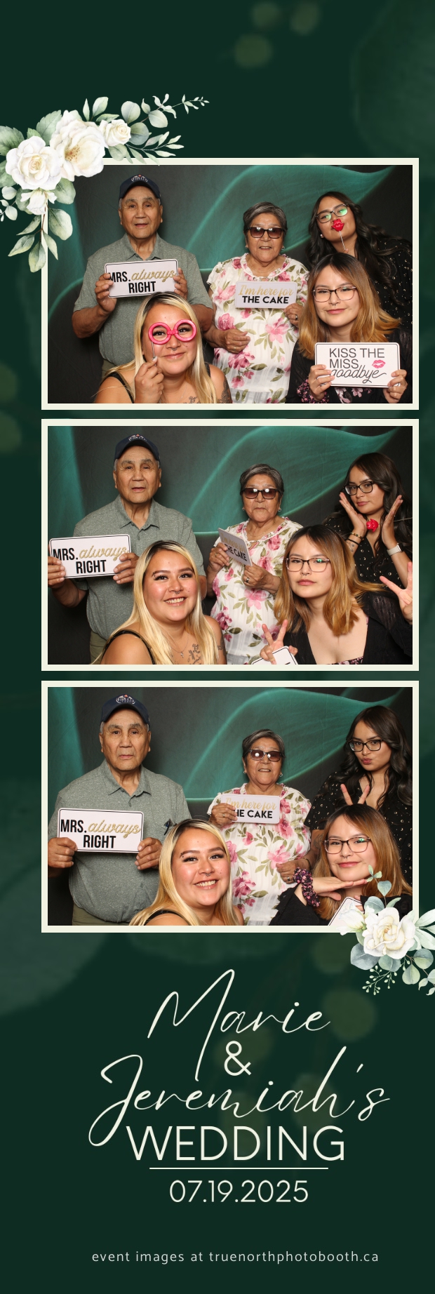 To match the refined atmosphere of the event, our elegant green pillow backdrops provided a lush, sophisticated setting that complemented the couple’s stylish wedding theme. With laughter, love, and countless photo-worthy moments, Marie & Jeremiah’s special day was a picture-perfect celebration made even more memorable with the True North Photo Booth experience.