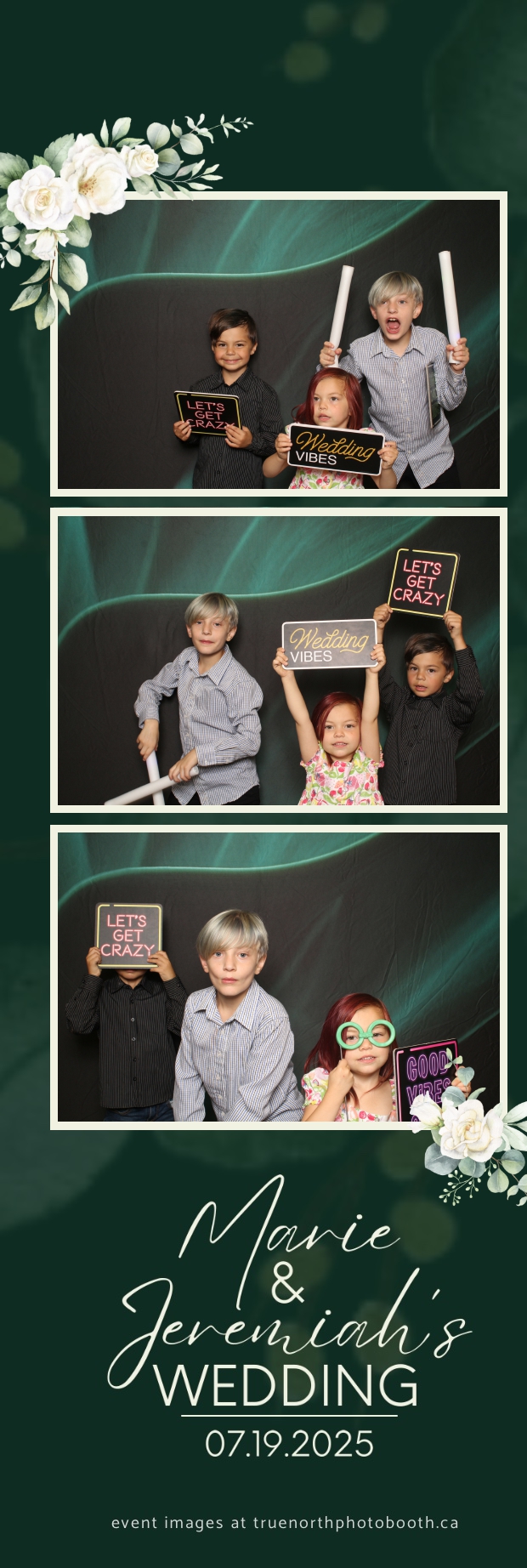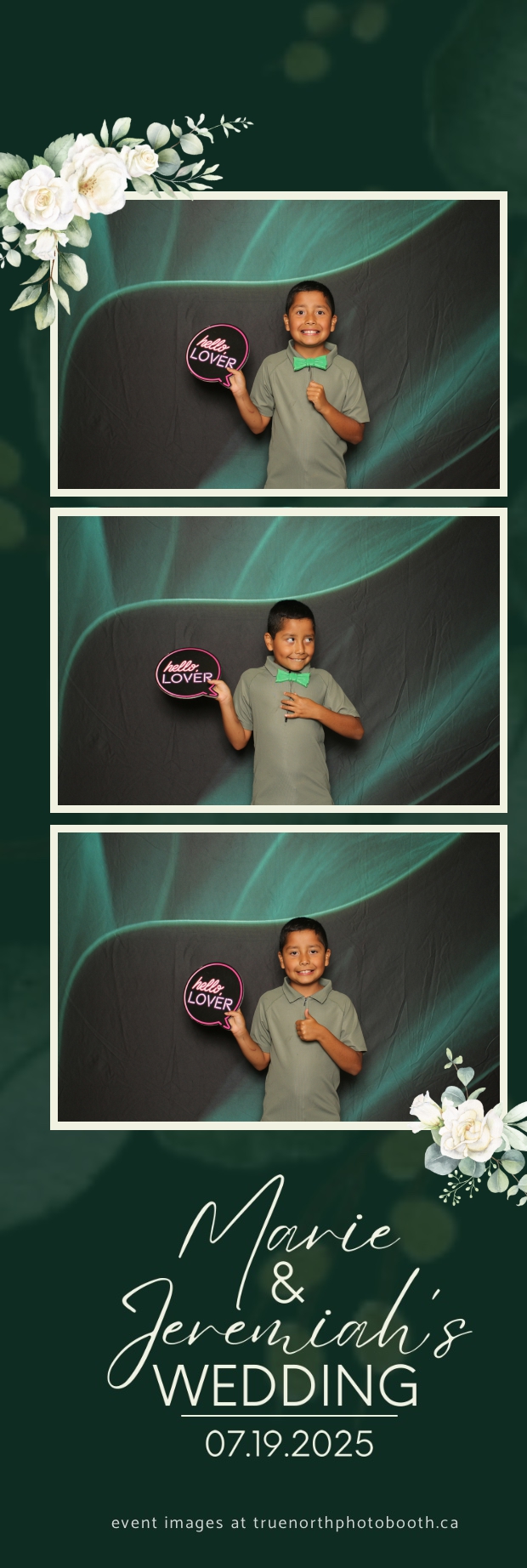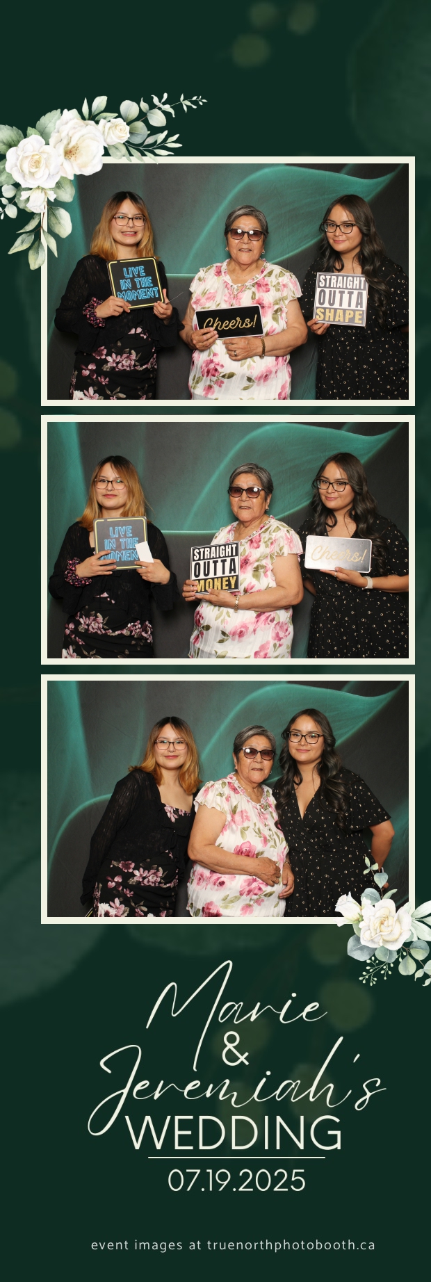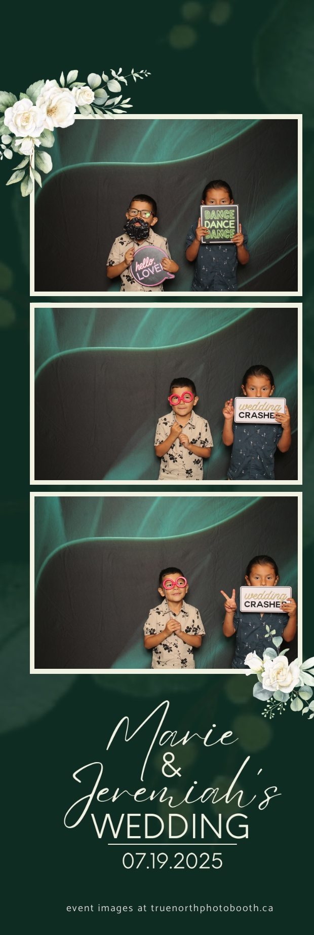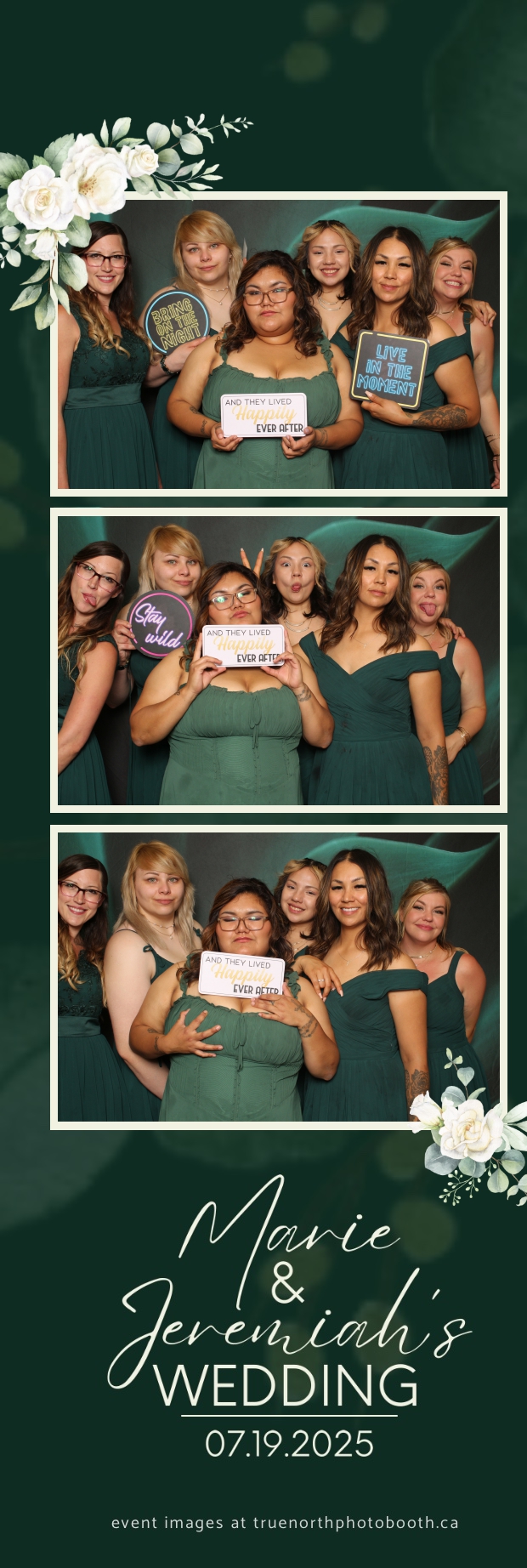 To match the refined atmosphere of the event, our elegant green pillow backdrops provided a lush, sophisticated setting that complemented the couple’s stylish wedding theme. With laughter, love, and countless photo-worthy moments, Marie & Jeremiah’s special day was a picture-perfect celebration made even more memorable with the True North Photo Booth experience.