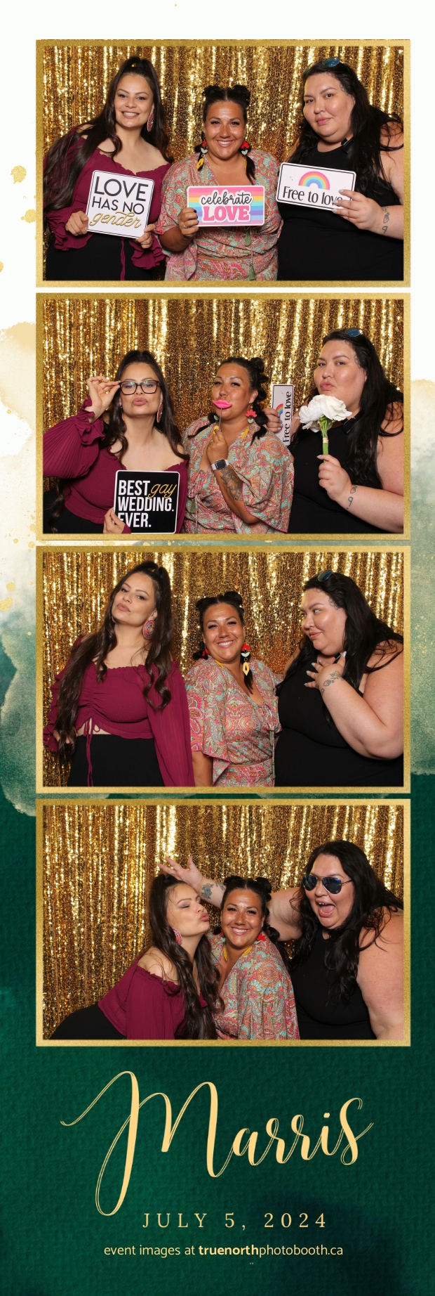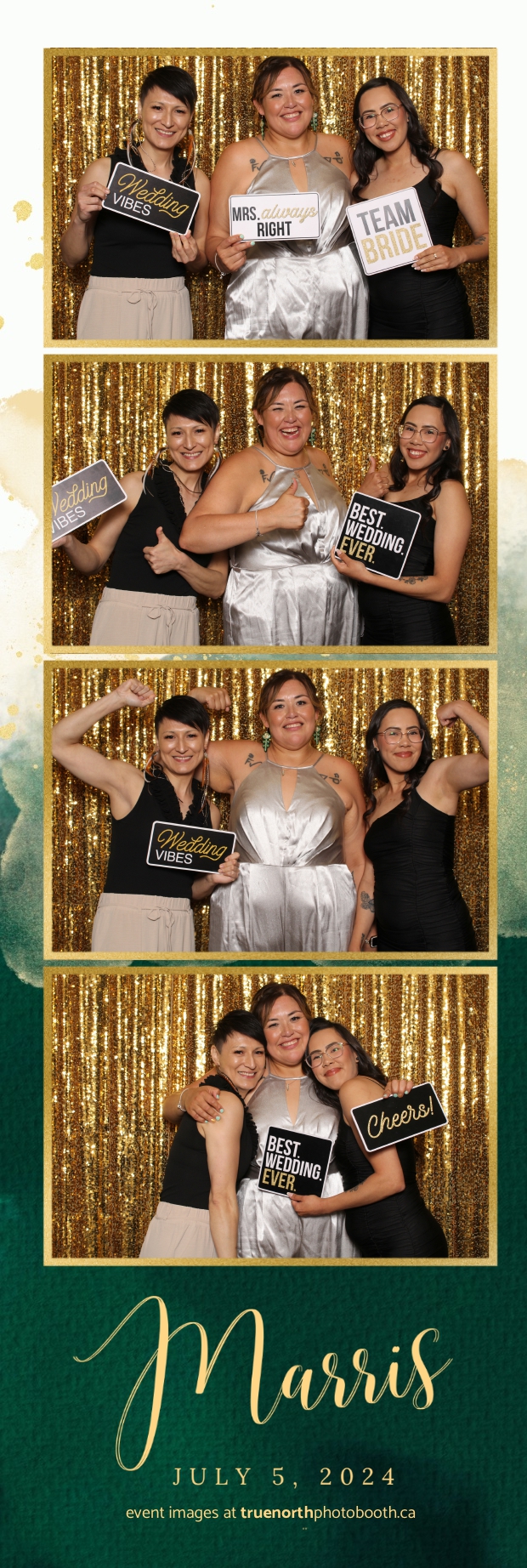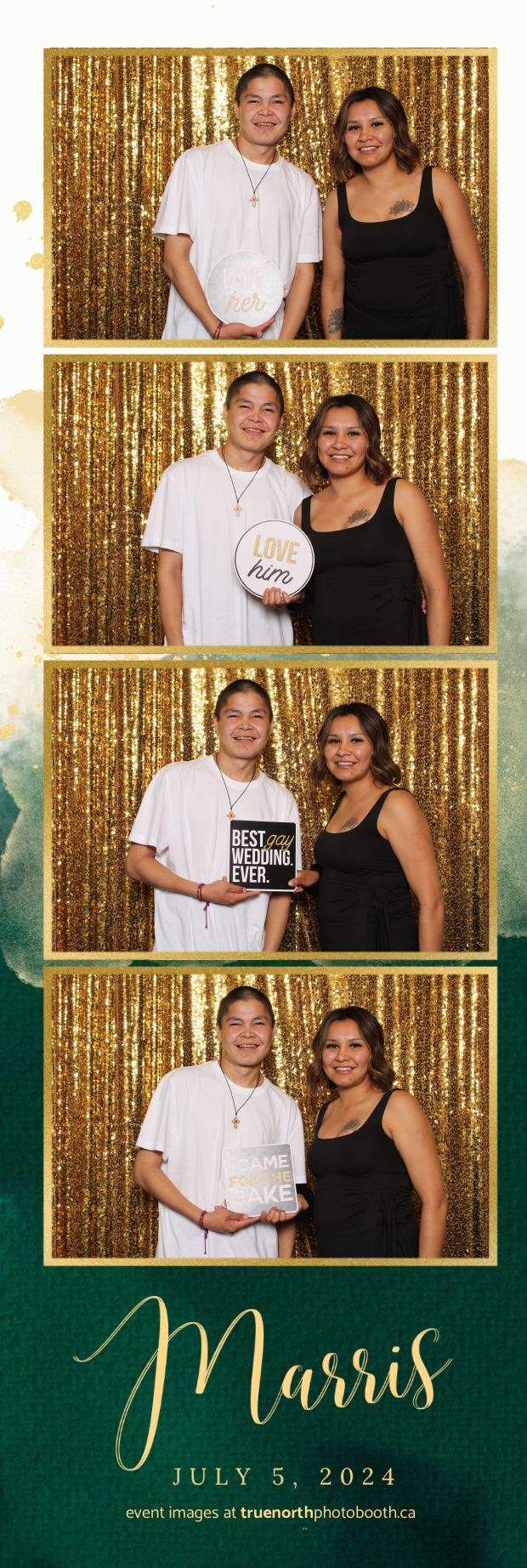 True North Photo Booth added an extra layer of fun and excitement to the event. With a dazzling gold sequin backdrop and custom 2X6 photo strips, guests enjoyed capturing unforgettable moments. The photo booth was a hit, offering a delightful way for everyone to create lasting memories of the special day. True North Photo Booth’s professionalism and creativity ensured that Mary and Farris’ wedding was not only memorable but also wonderfully documented, leaving everyone with cherished keepsakes of a love story that inspires and celebrates diversity.