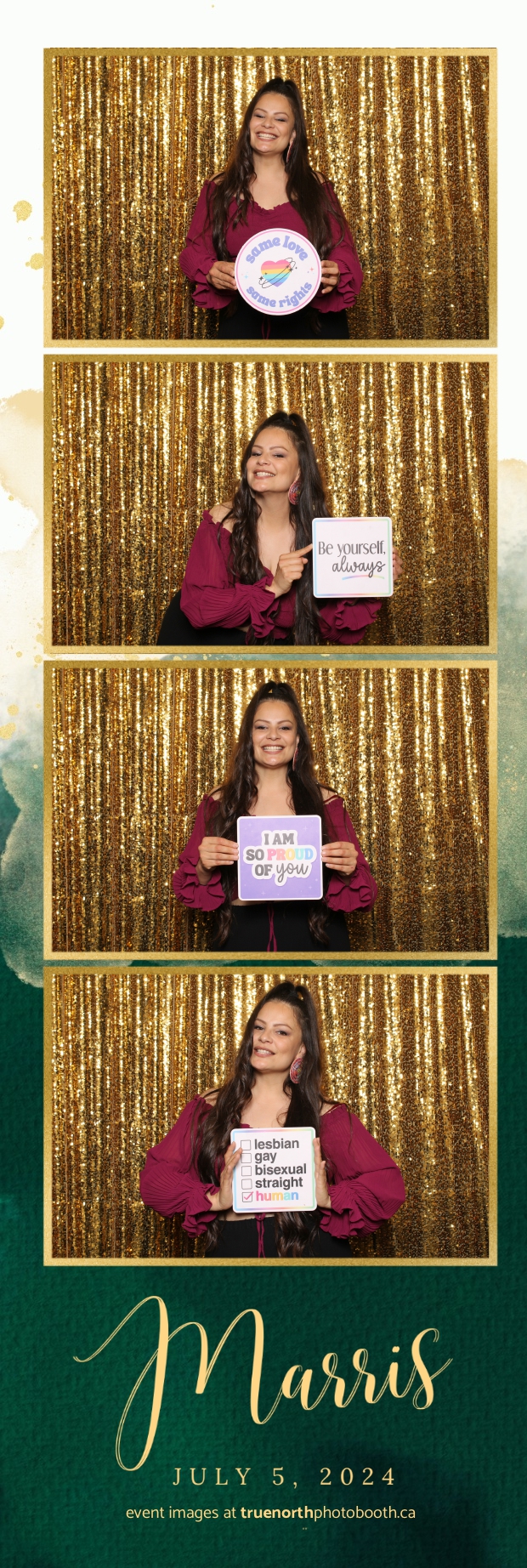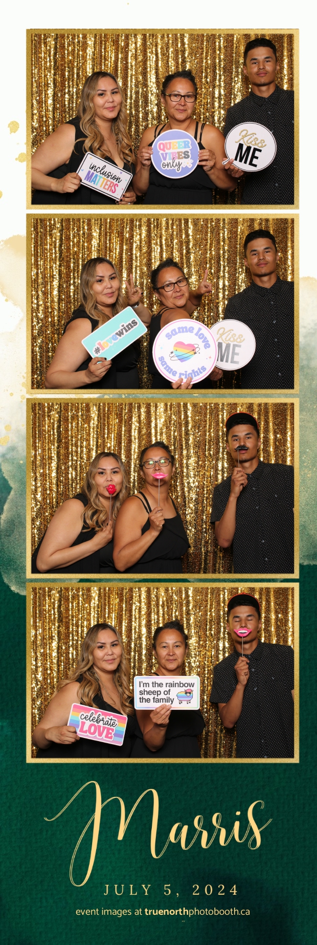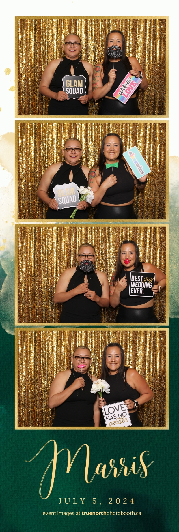 True North Photo Booth added an extra layer of fun and excitement to the event. With a dazzling gold sequin backdrop and custom 2X6 photo strips, guests enjoyed capturing unforgettable moments. The photo booth was a hit, offering a delightful way for everyone to create lasting memories of the special day. True North Photo Booth’s professionalism and creativity ensured that Mary and Farris’ wedding was not only memorable but also wonderfully documented, leaving everyone with cherished keepsakes of a love story that inspires and celebrates diversity.