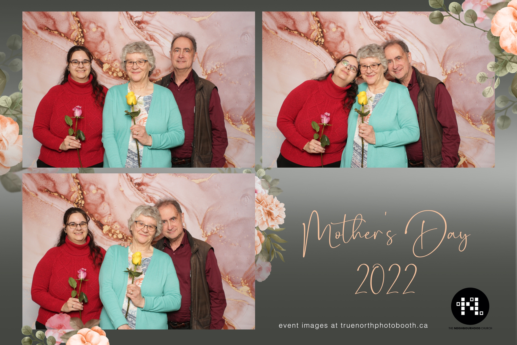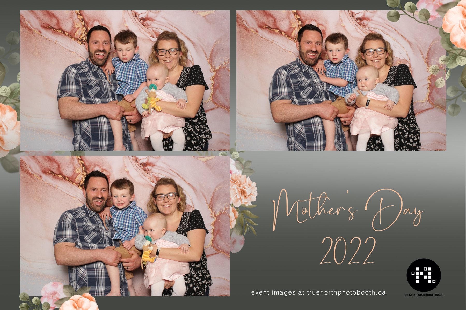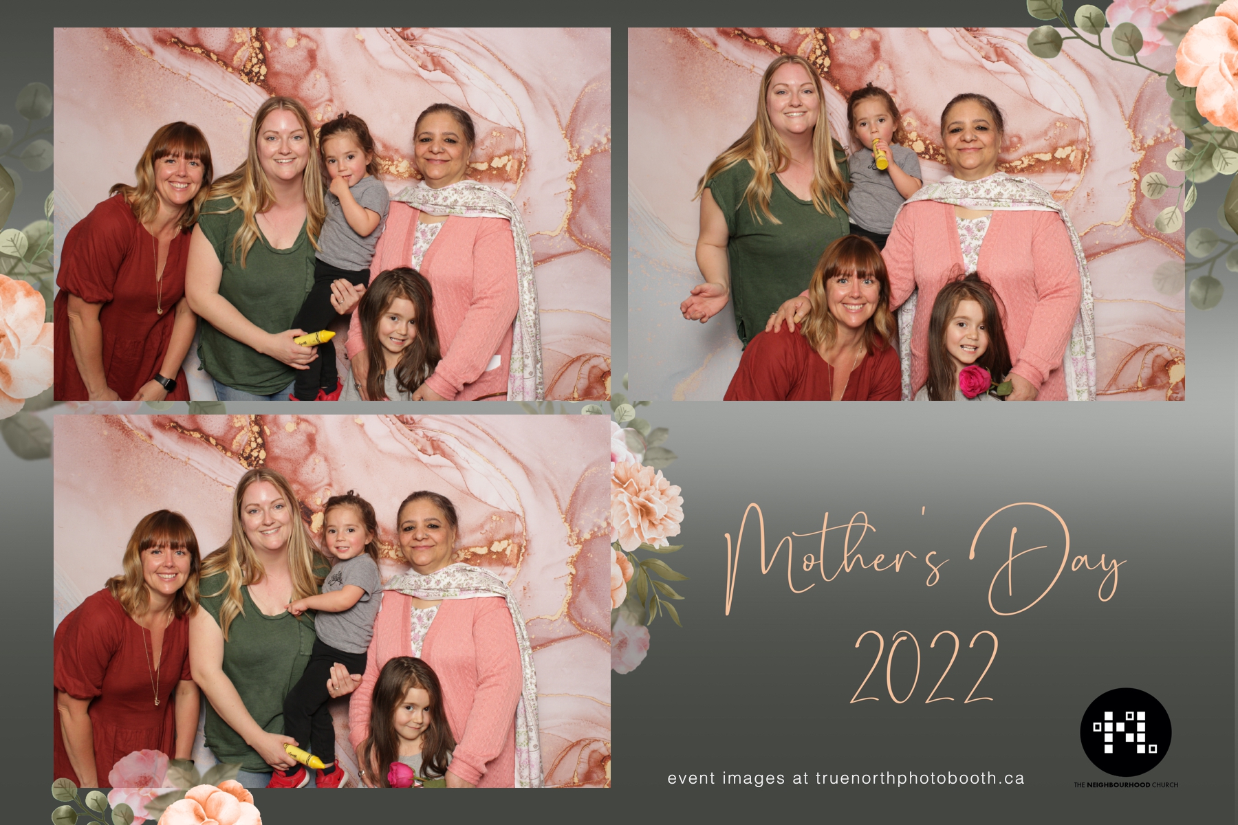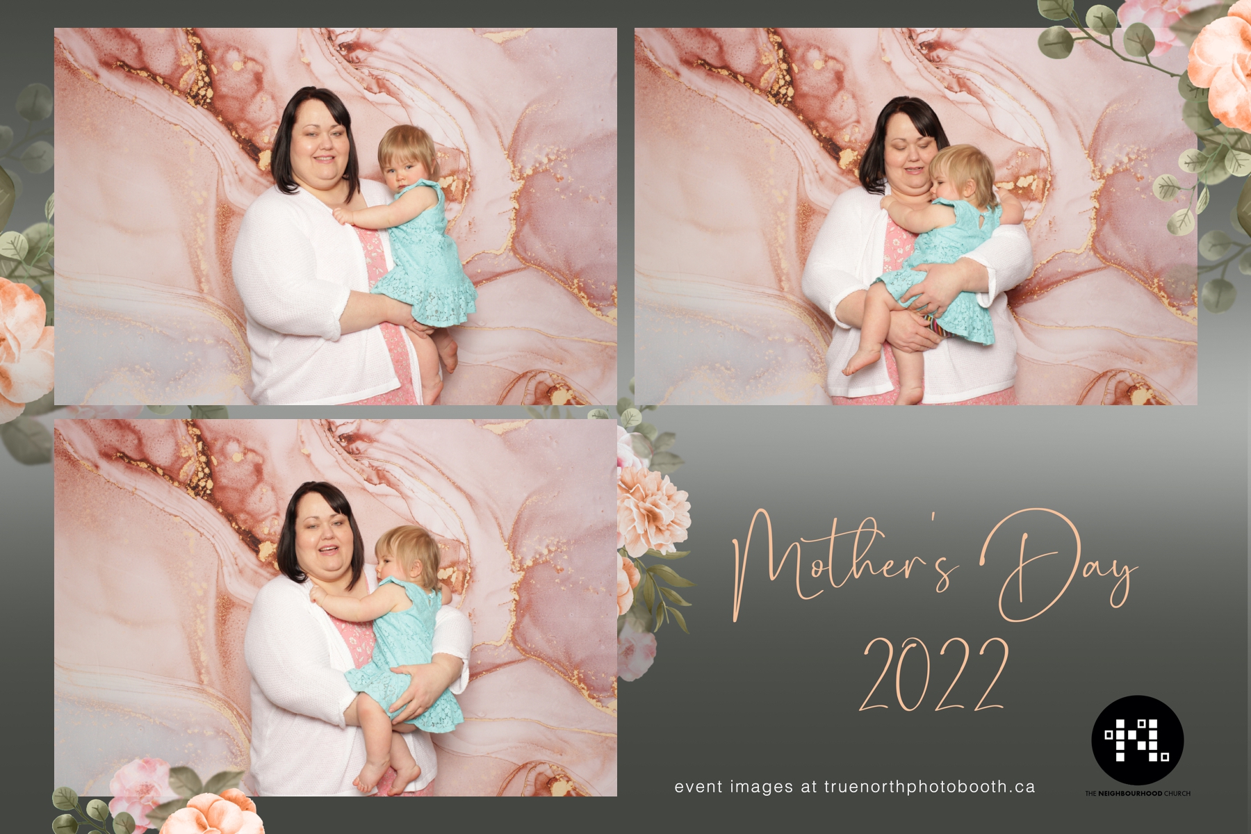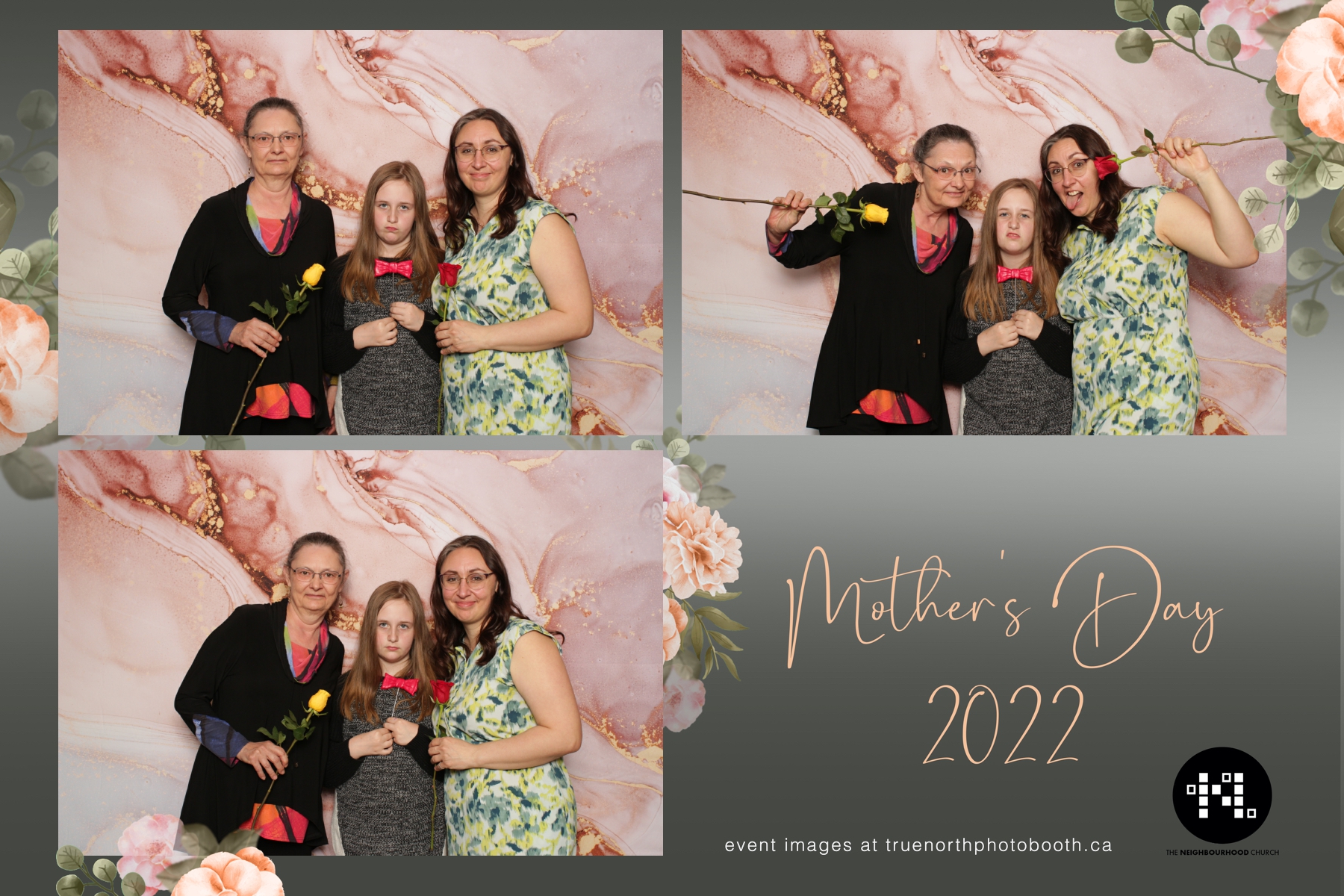 This year we got to spend mother’s day with all the amazing mothers at The Neighborhood Church here in Saskatoon. They were very intentional to make sure that all the mom’s in all three of their gatherings were appreciated, cared for and acknowledged for all the hard work they do on a regular basis for their families. Armed with a very beautiful 4X6 photo strip and our new Pink-gold marble backdrop, mom’s of all ages and stages grabbed their loved ones and headed to the photo booth for the one thing every mother wants on Mother’s Day…Ok… Maybe the number two or three thing on that list… A good family photo!  Thank you to Yasmin and the Neighborhood Church for having us. We love, love, love how honouring you are towards the mom’s in your community. Keep it up!