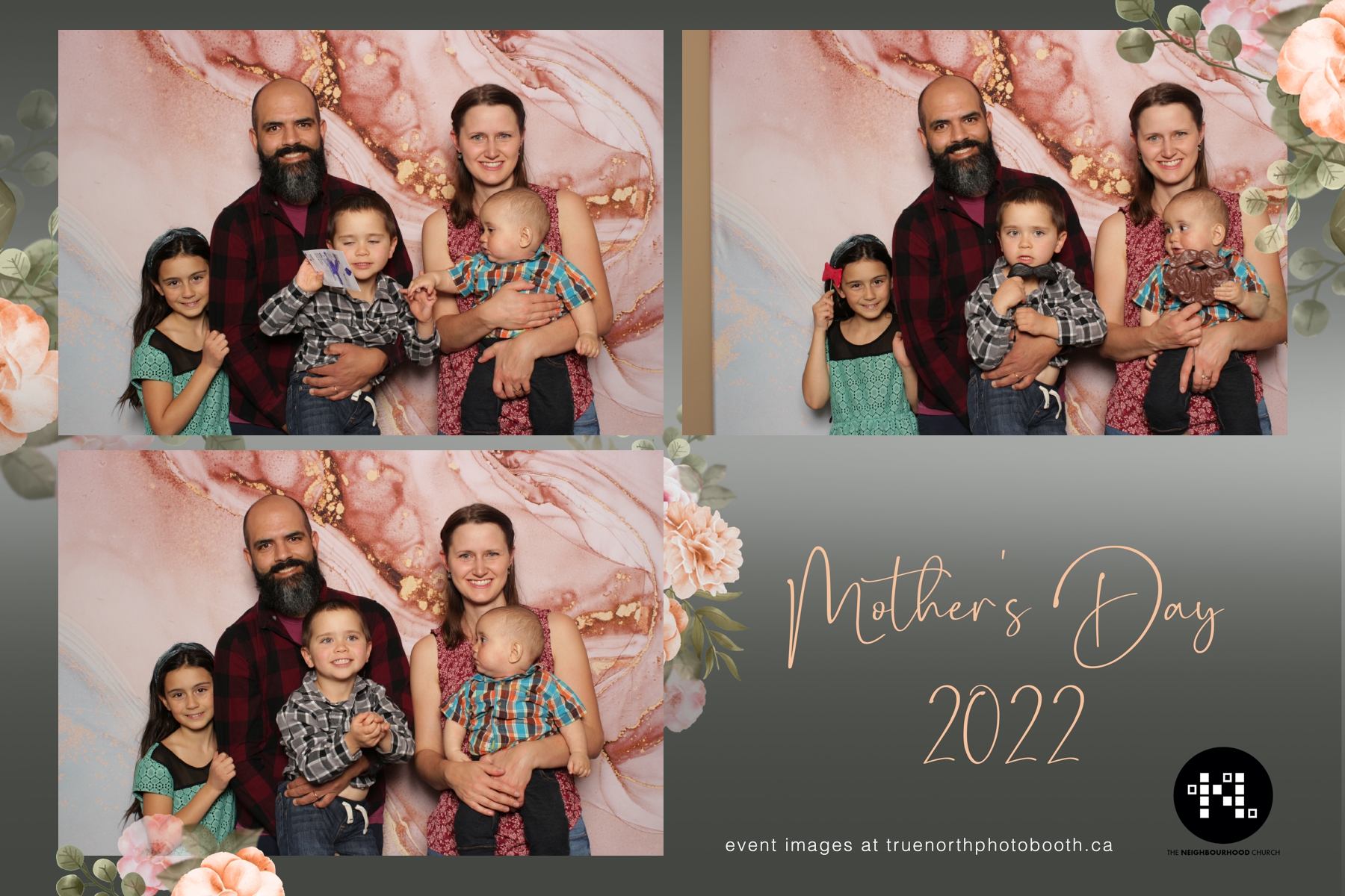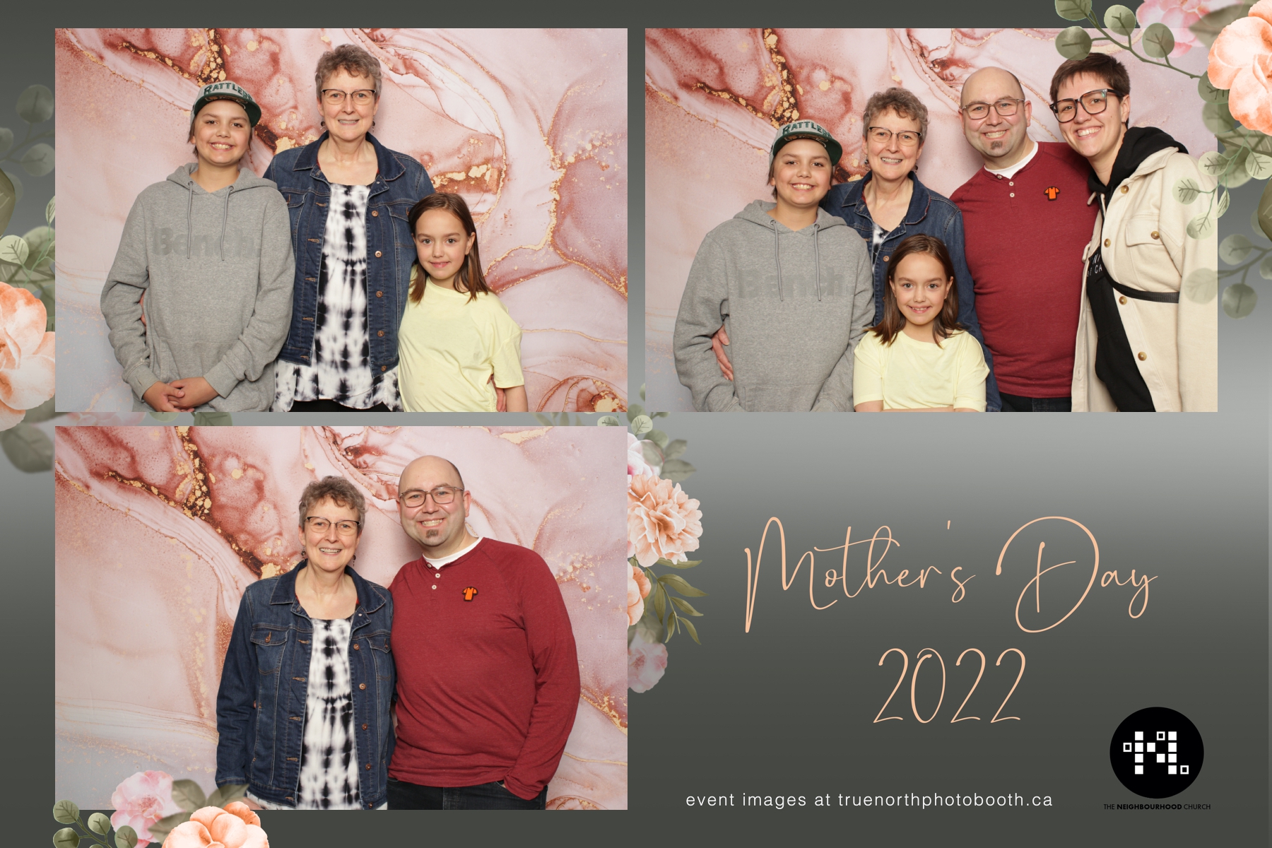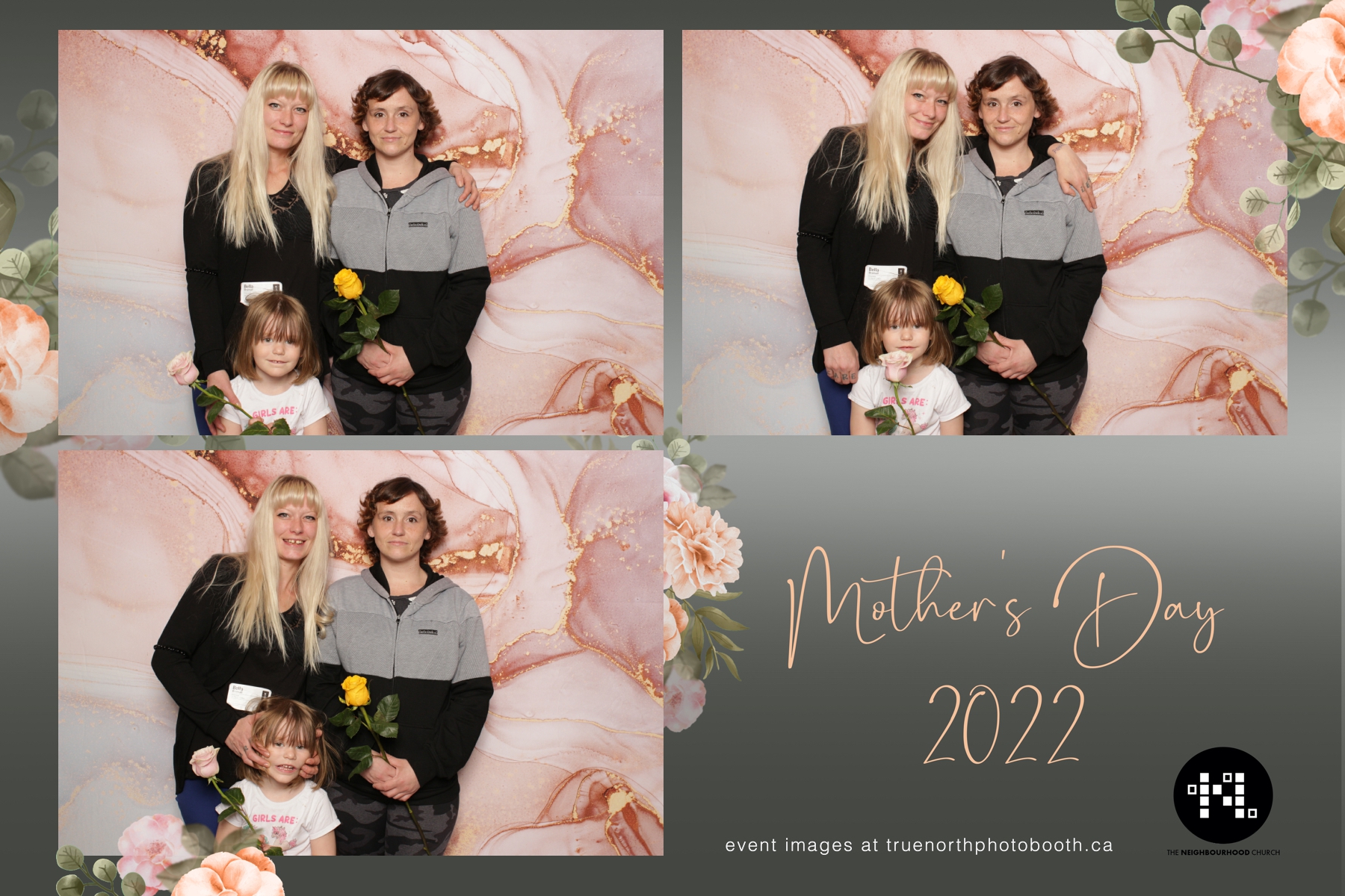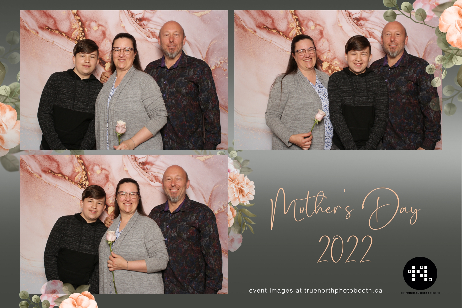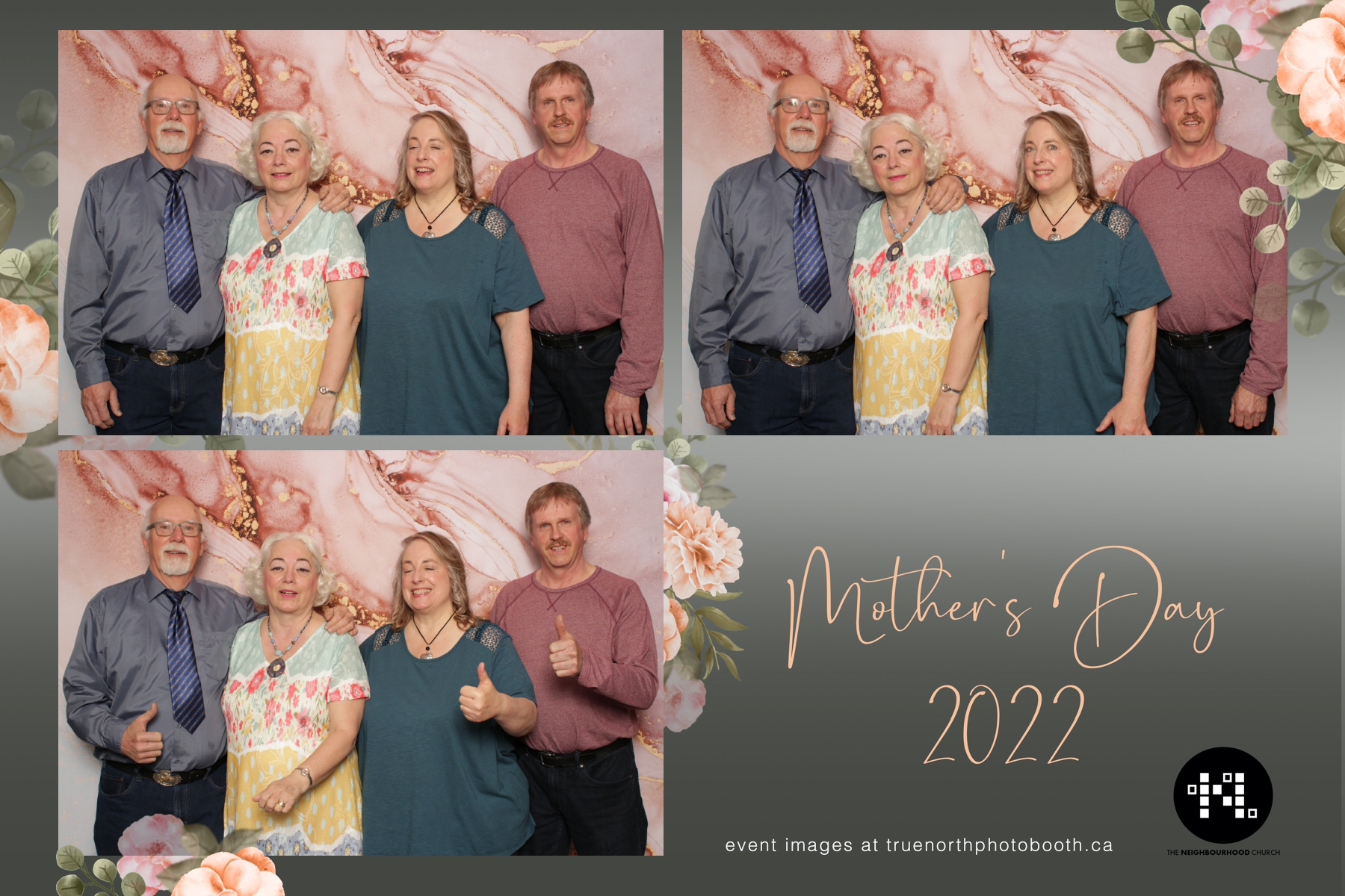 This year we got to spend mother’s day with all the amazing mothers at The Neighborhood Church here in Saskatoon. They were very intentional to make sure that all the mom’s in all three of their gatherings were appreciated, cared for and acknowledged for all the hard work they do on a regular basis for their families. Armed with a very beautiful 4X6 photo strip and our new Pink-gold marble backdrop, mom’s of all ages and stages grabbed their loved ones and headed to the photo booth for the one thing every mother wants on Mother’s Day…Ok… Maybe the number two or three thing on that list… A good family photo!  Thank you to Yasmin and the Neighborhood Church for having us. We love, love, love how honouring you are towards the mom’s in your community. Keep it up!