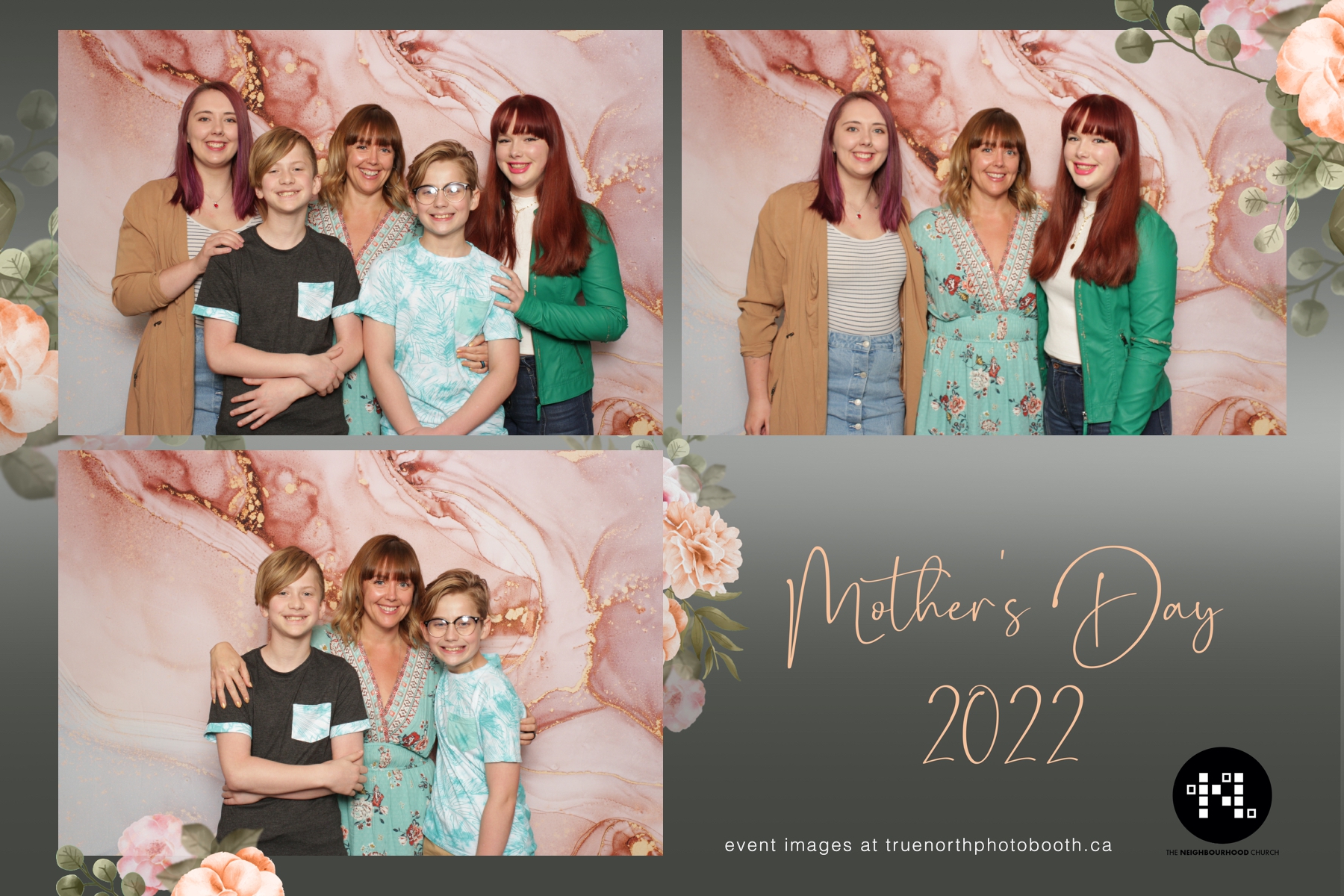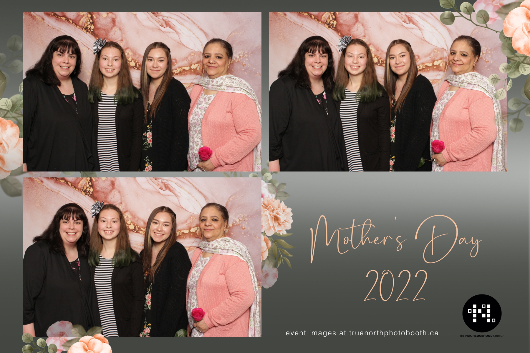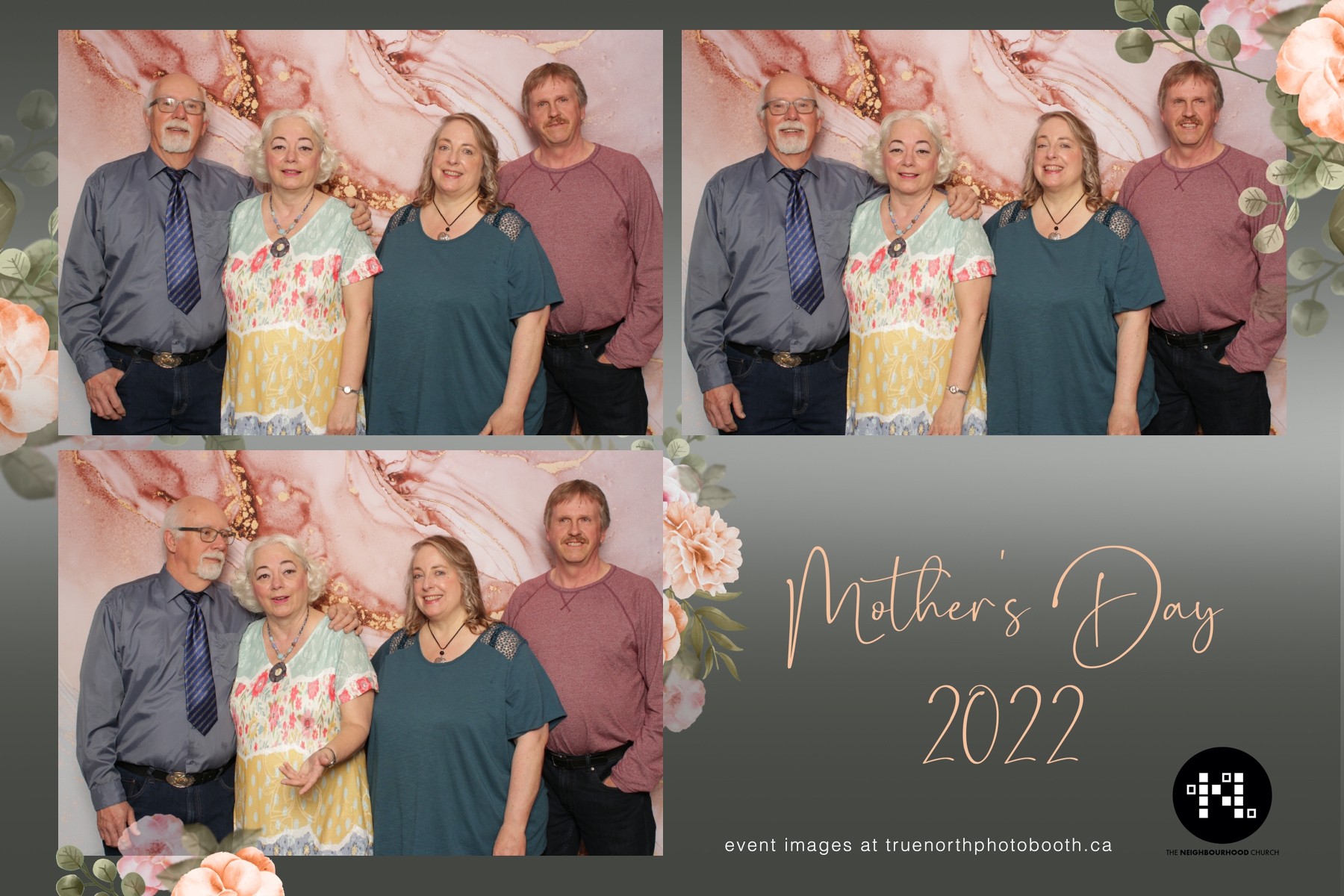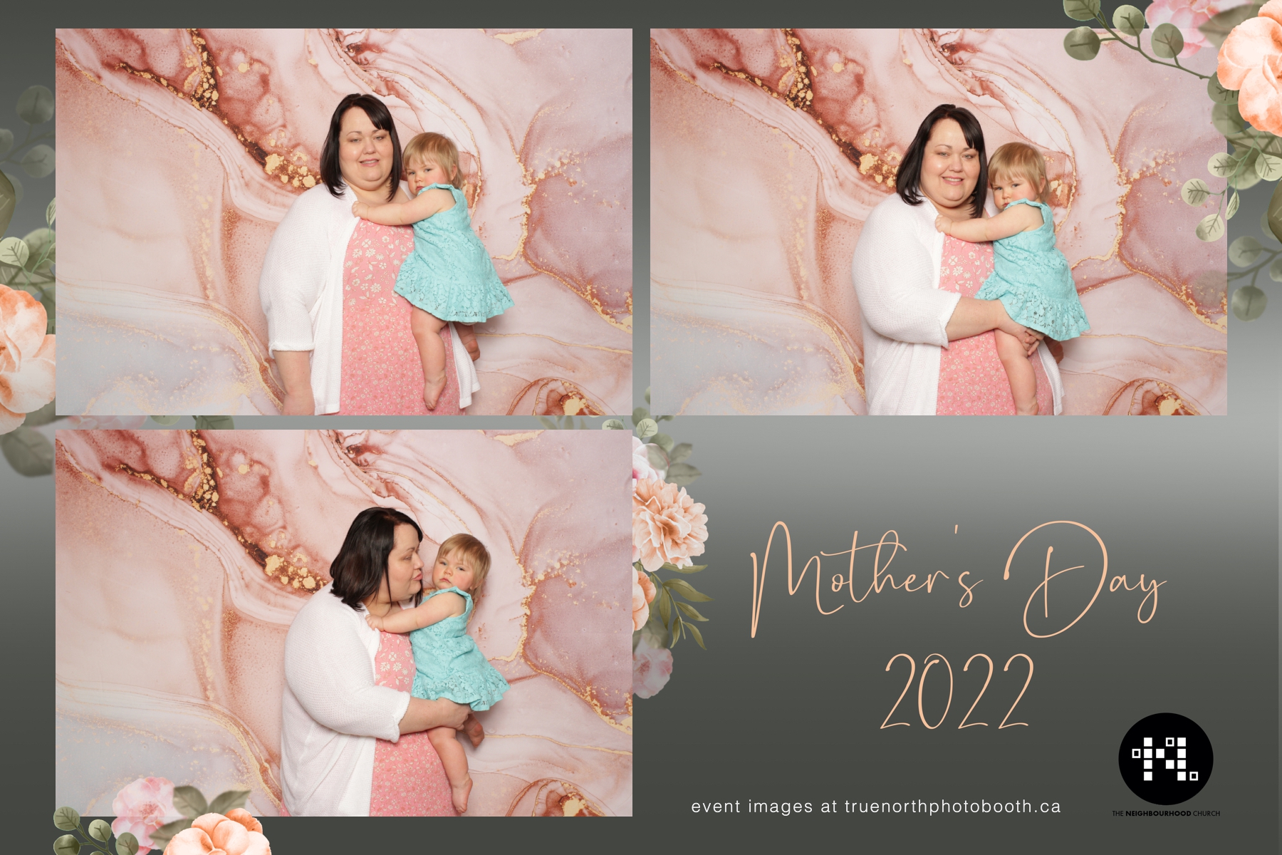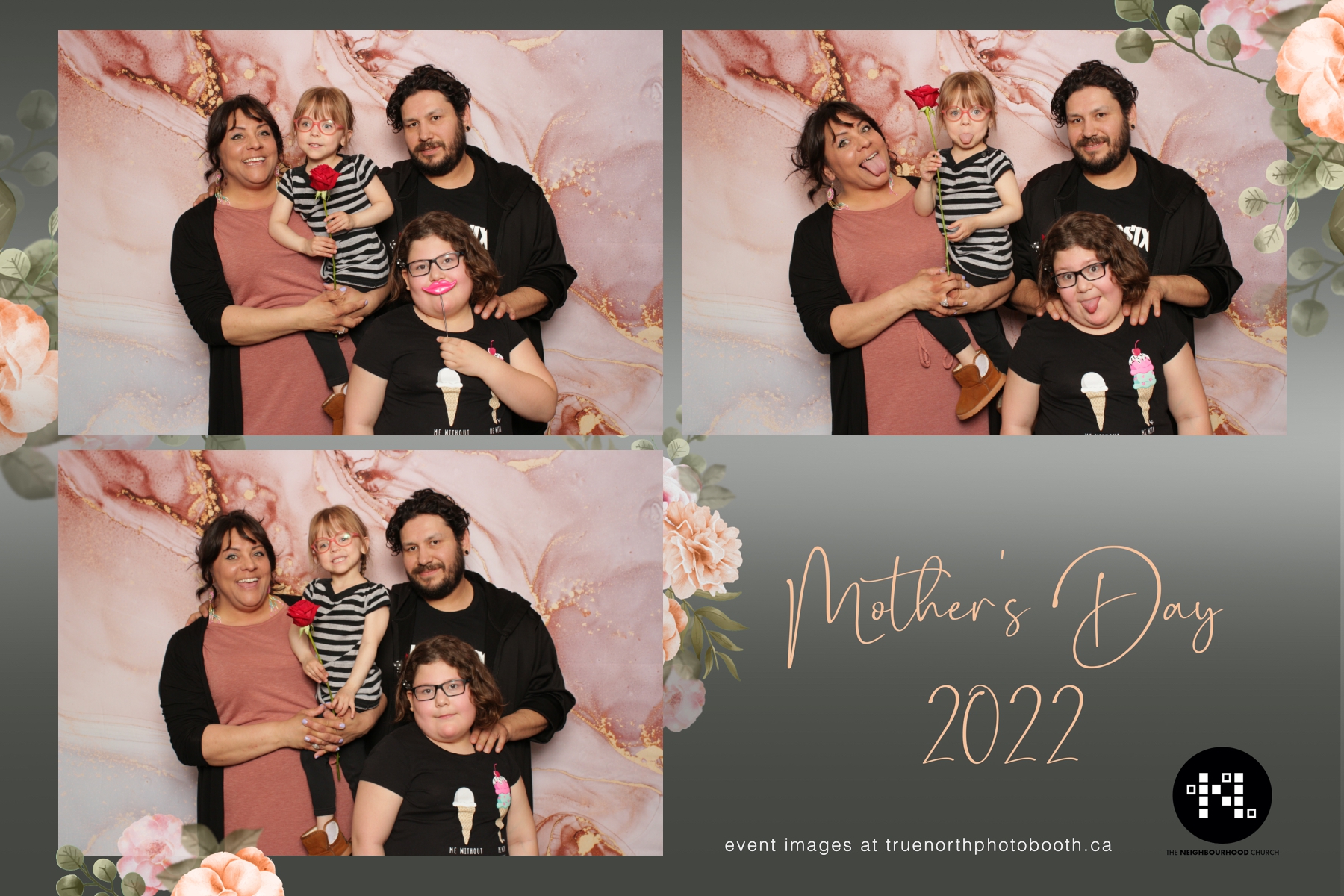 This year we got to spend mother’s day with all the amazing mothers at The Neighborhood Church here in Saskatoon. They were very intentional to make sure that all the mom’s in all three of their gatherings were appreciated, cared for and acknowledged for all the hard work they do on a regular basis for their families. Armed with a very beautiful 4X6 photo strip and our new Pink-gold marble backdrop, mom’s of all ages and stages grabbed their loved ones and headed to the photo booth for the one thing every mother wants on Mother’s Day…Ok… Maybe the number two or three thing on that list… A good family photo!  Thank you to Yasmin and the Neighborhood Church for having us. We love, love, love how honouring you are towards the mom’s in your community. Keep it up!
