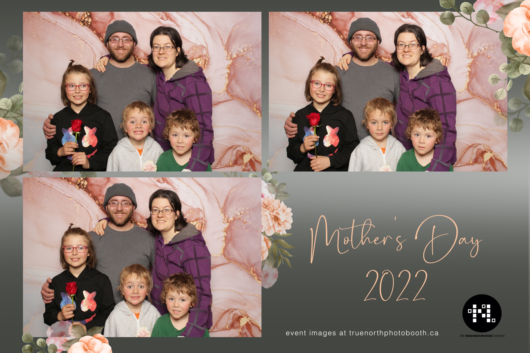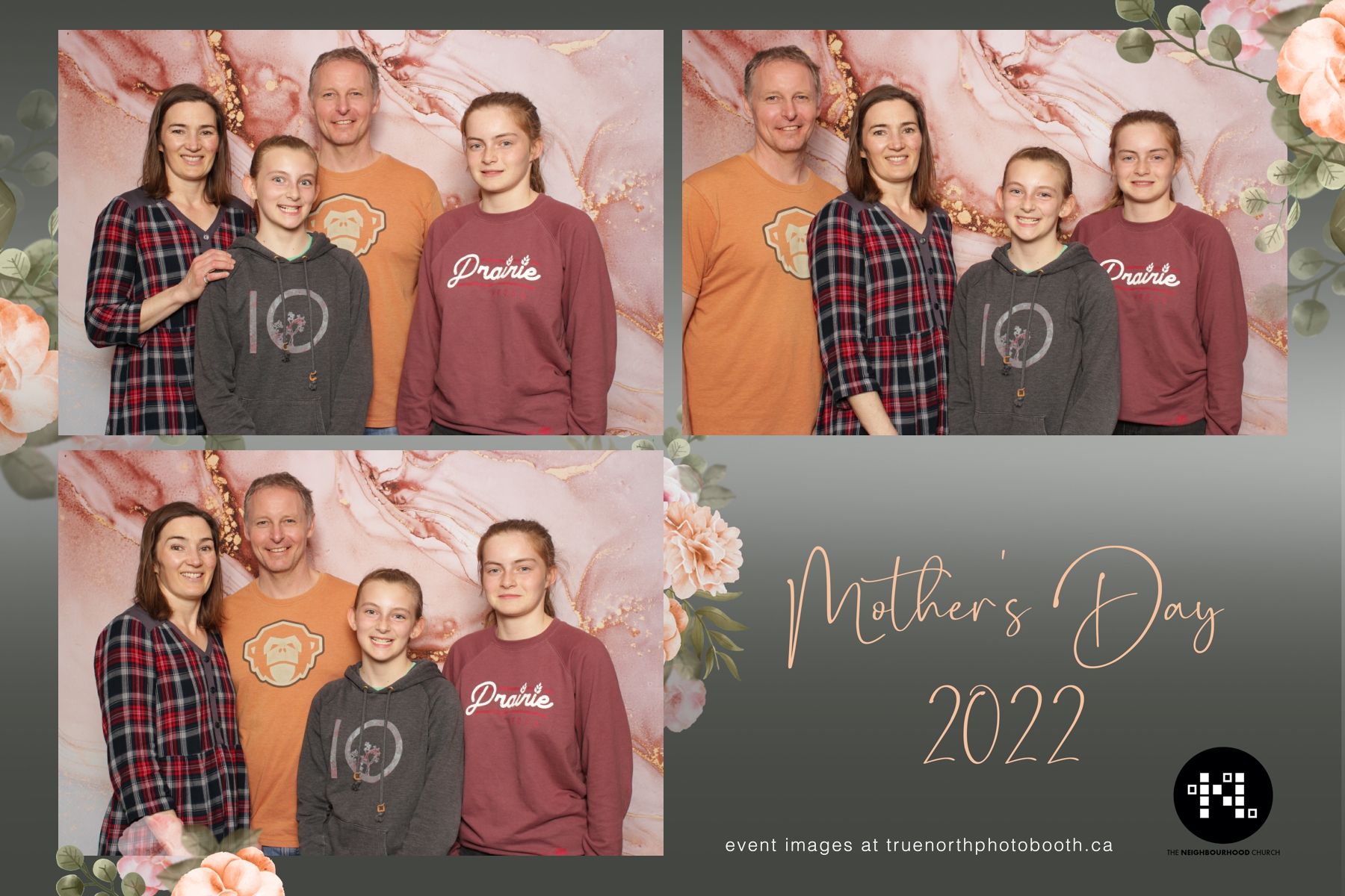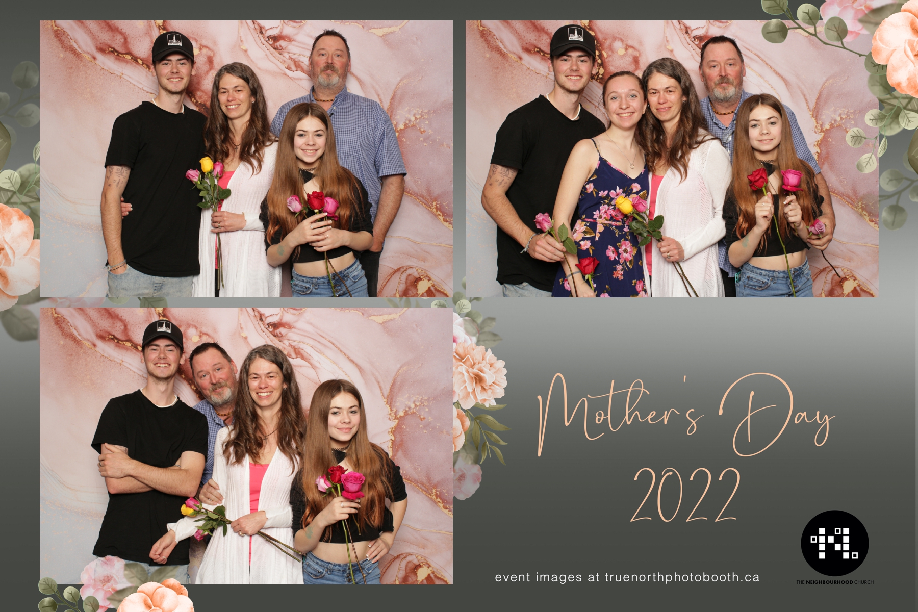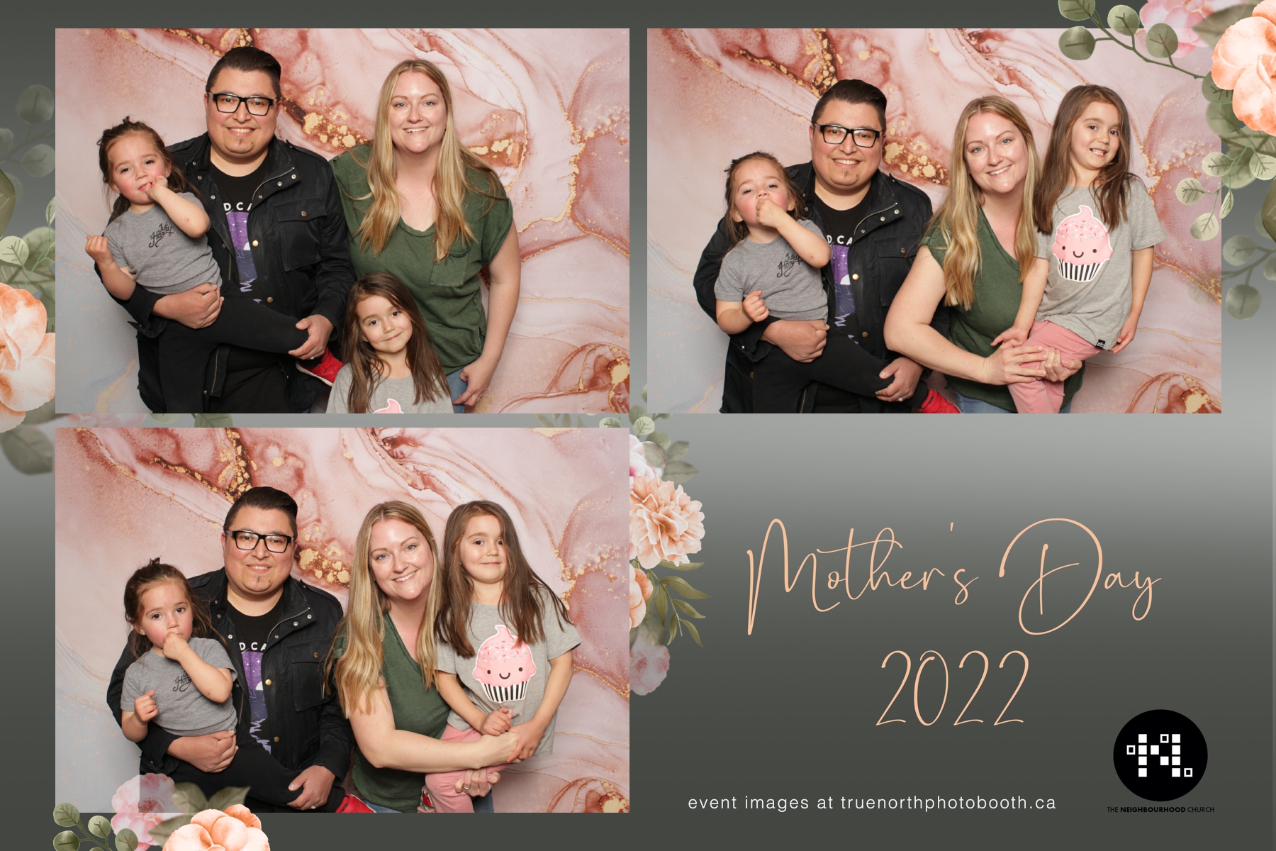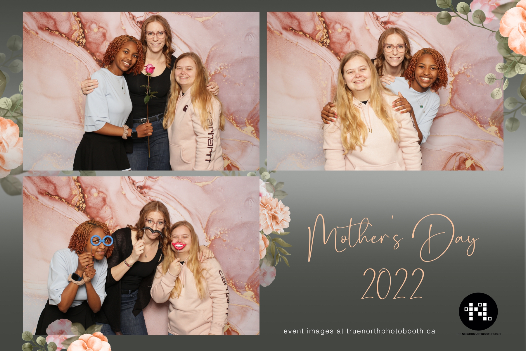 This year we got to spend mother’s day with all the amazing mothers at The Neighborhood Church here in Saskatoon. They were very intentional to make sure that all the mom’s in all three of their gatherings were appreciated, cared for and acknowledged for all the hard work they do on a regular basis for their families. Armed with a very beautiful 4X6 photo strip and our new Pink-gold marble backdrop, mom’s of all ages and stages grabbed their loved ones and headed to the photo booth for the one thing every mother wants on Mother’s Day…Ok… Maybe the number two or three thing on that list… A good family photo!  Thank you to Yasmin and the Neighborhood Church for having us. We love, love, love how honouring you are towards the mom’s in your community. Keep it up!