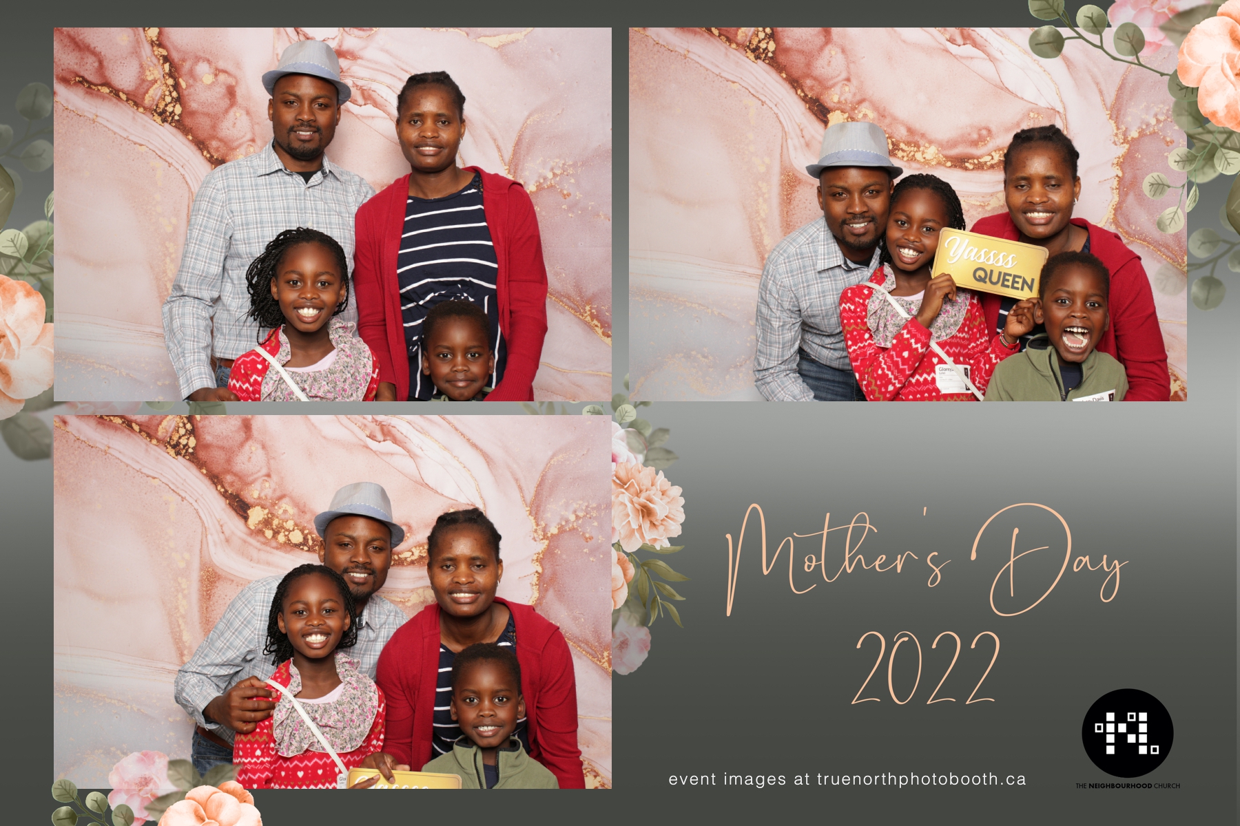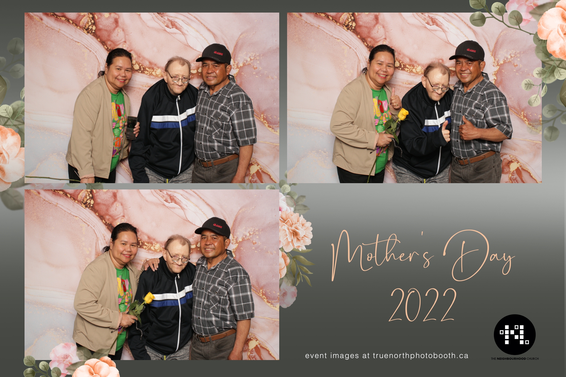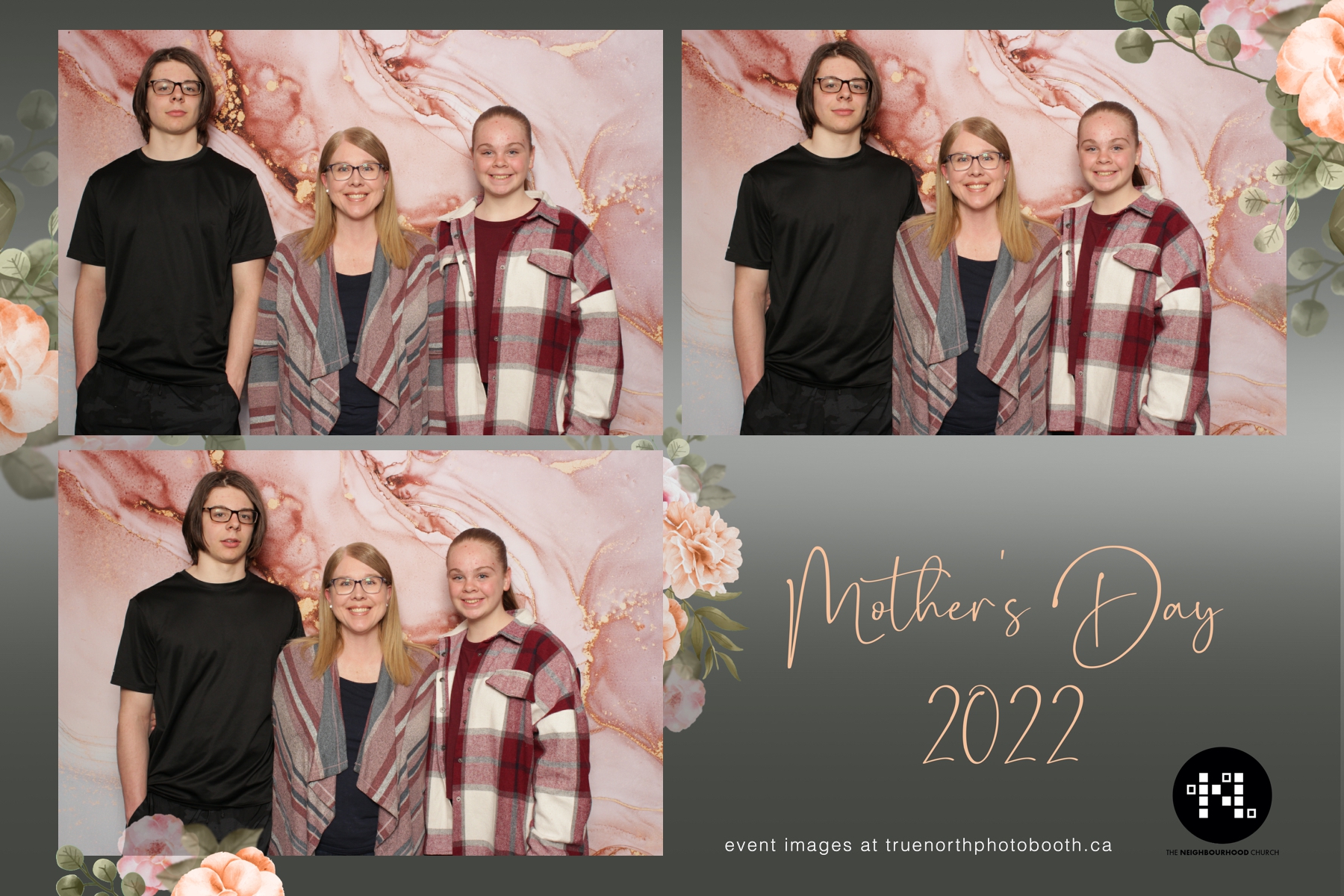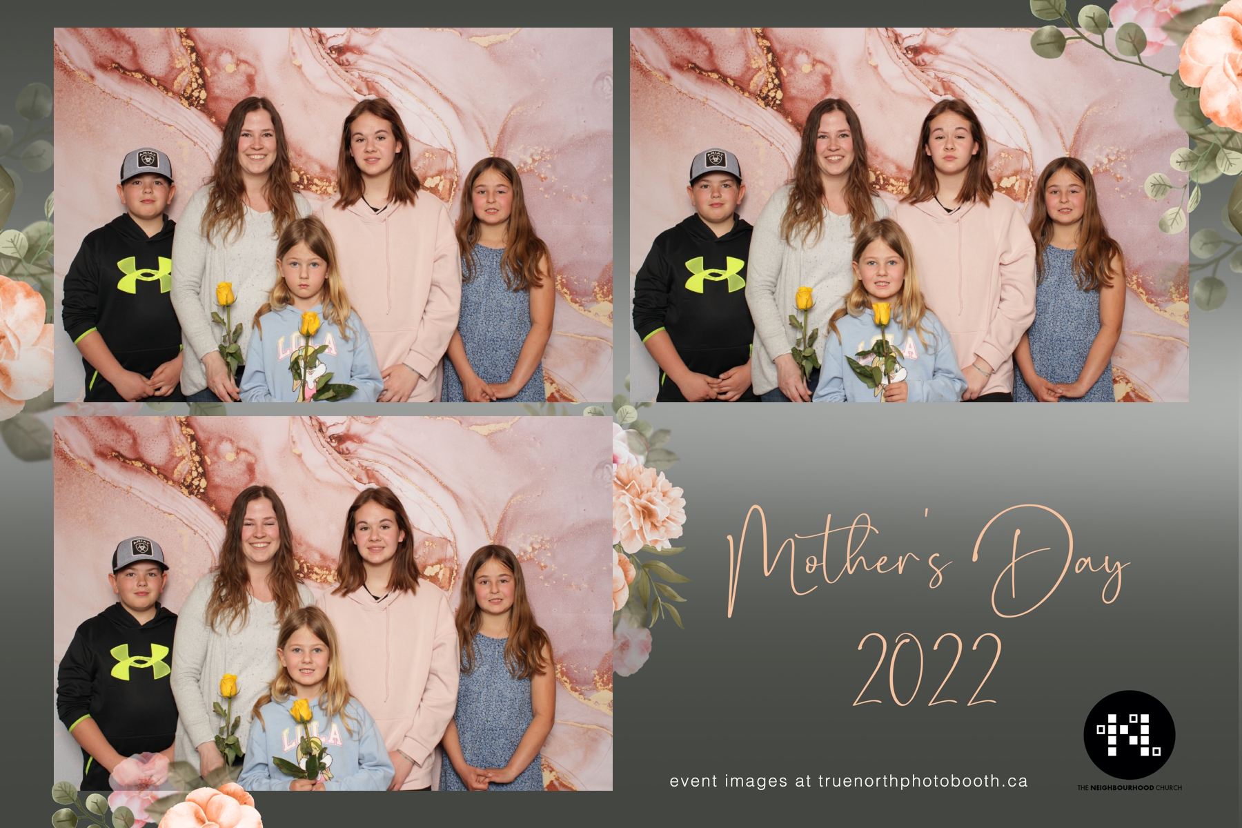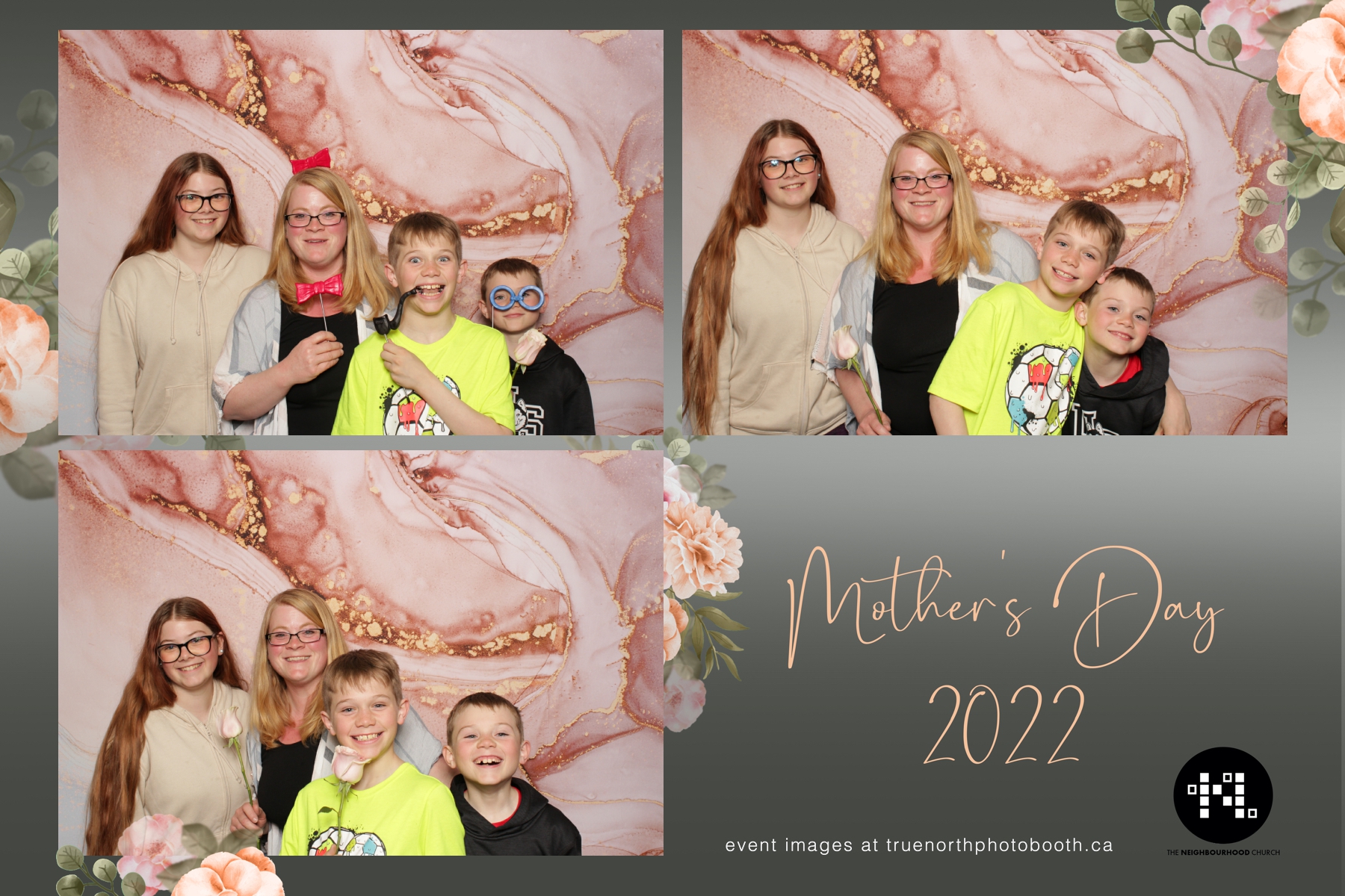 This year we got to spend mother’s day with all the amazing mothers at The Neighborhood Church here in Saskatoon. They were very intentional to make sure that all the mom’s in all three of their gatherings were appreciated, cared for and acknowledged for all the hard work they do on a regular basis for their families. Armed with a very beautiful 4X6 photo strip and our new Pink-gold marble backdrop, mom’s of all ages and stages grabbed their loved ones and headed to the photo booth for the one thing every mother wants on Mother’s Day…Ok… Maybe the number two or three thing on that list… A good family photo!  Thank you to Yasmin and the Neighborhood Church for having us. We love, love, love how honouring you are towards the mom’s in your community. Keep it up!