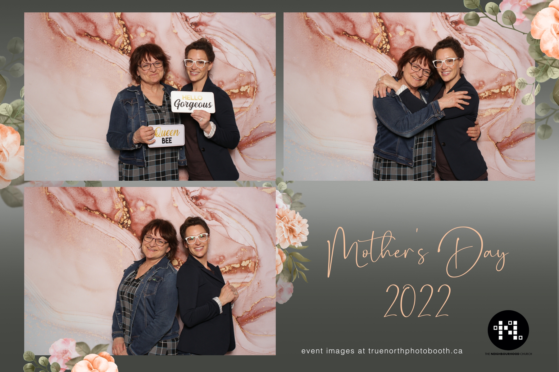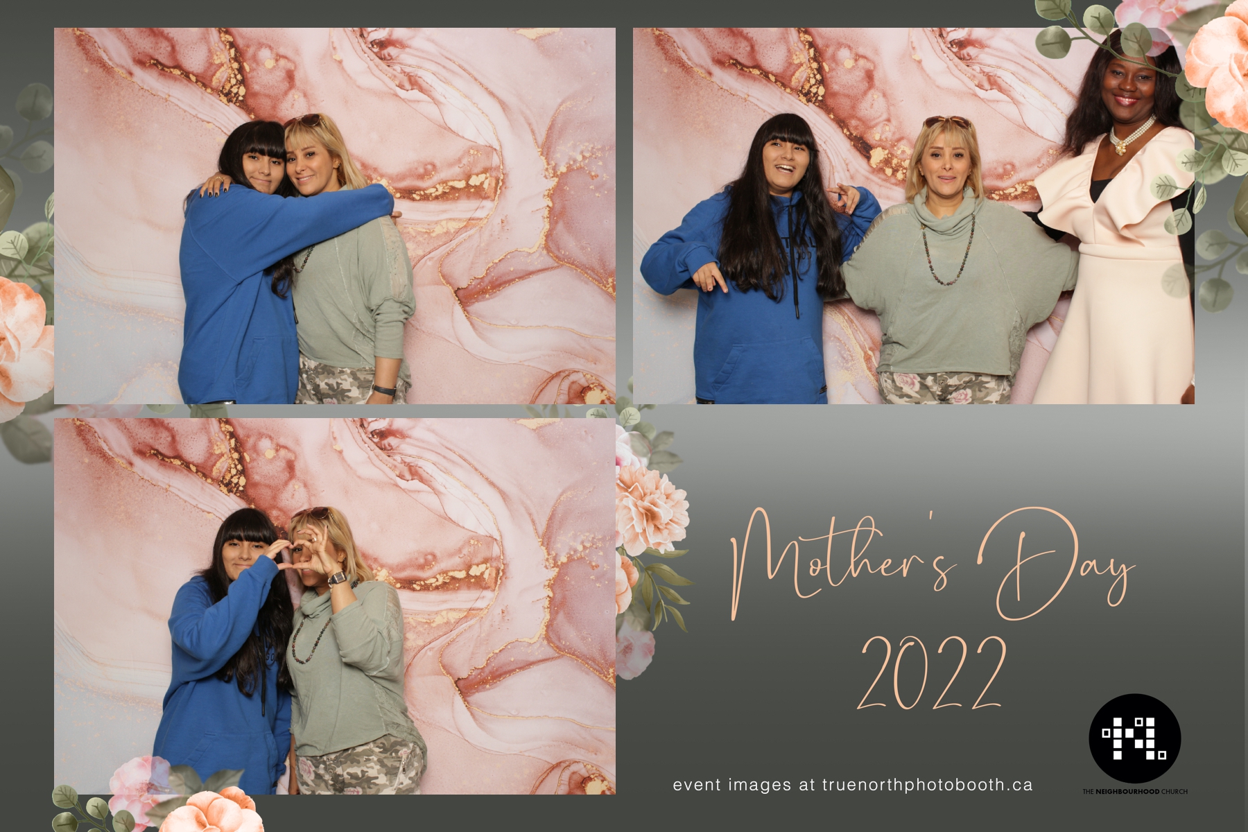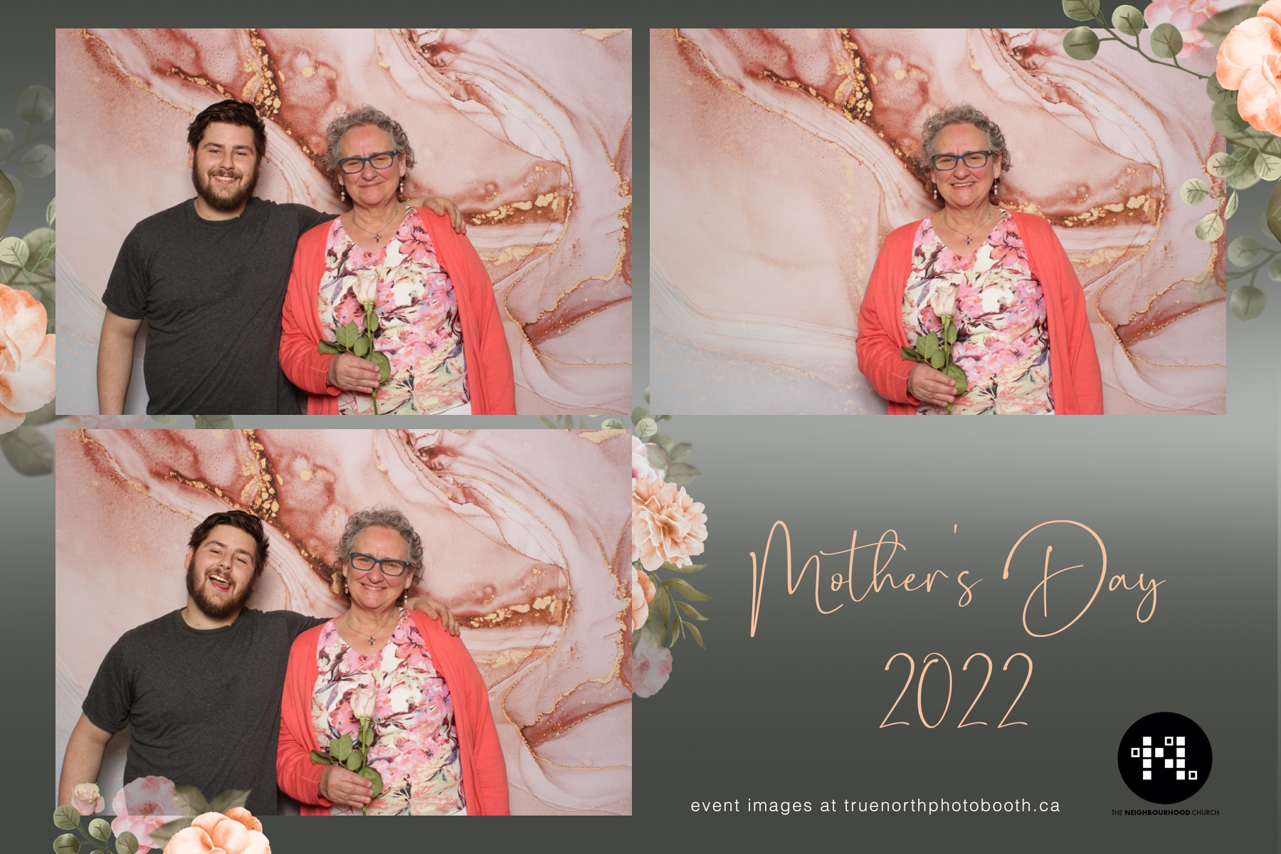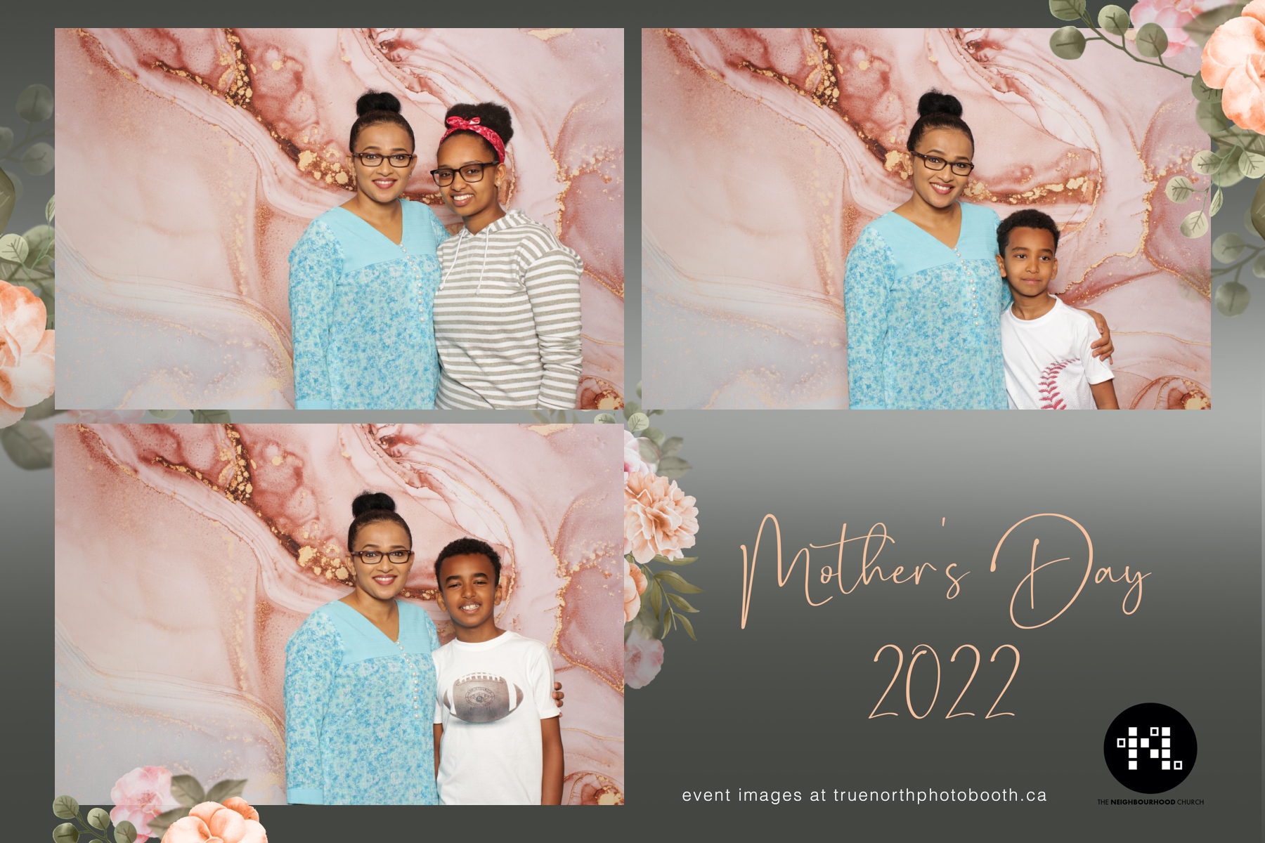 This year we got to spend mother’s day with all the amazing mothers at The Neighborhood Church here in Saskatoon. They were very intentional to make sure that all the mom’s in all three of their gatherings were appreciated, cared for and acknowledged for all the hard work they do on a regular basis for their families. Armed with a very beautiful 4X6 photo strip and our new Pink-gold marble backdrop, mom’s of all ages and stages grabbed their loved ones and headed to the photo booth for the one thing every mother wants on Mother’s Day…Ok… Maybe the number two or three thing on that list… A good family photo!  Thank you to Yasmin and the Neighborhood Church for having us. We love, love, love how honouring you are towards the mom’s in your community. Keep it up!