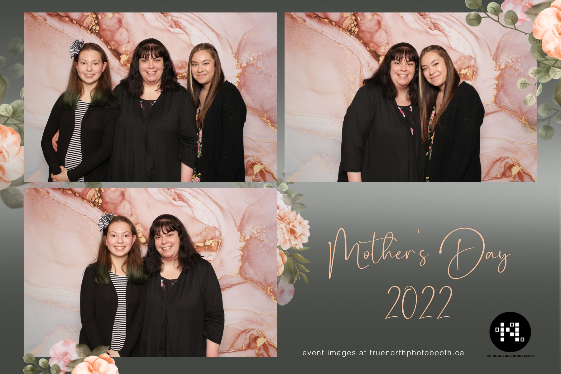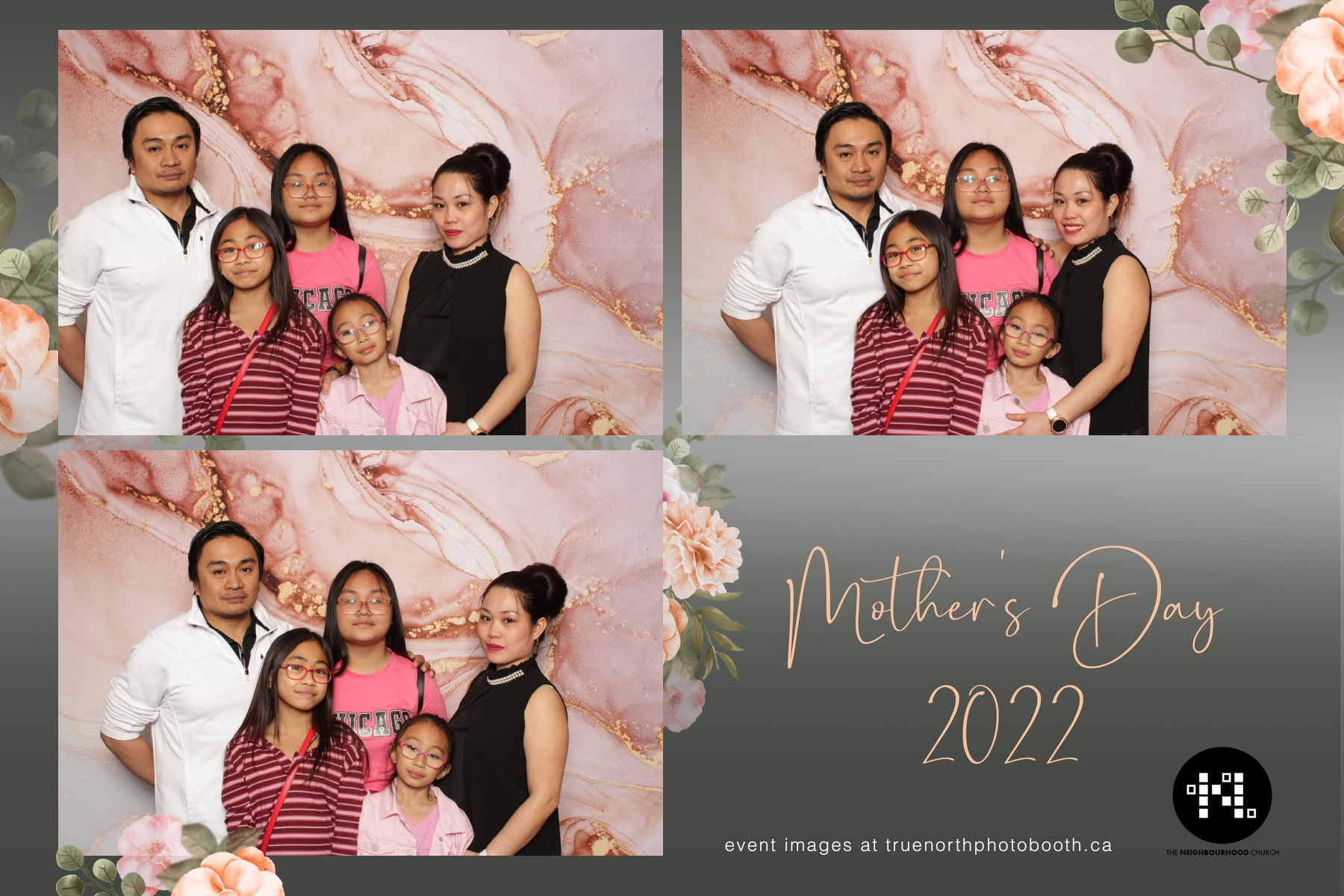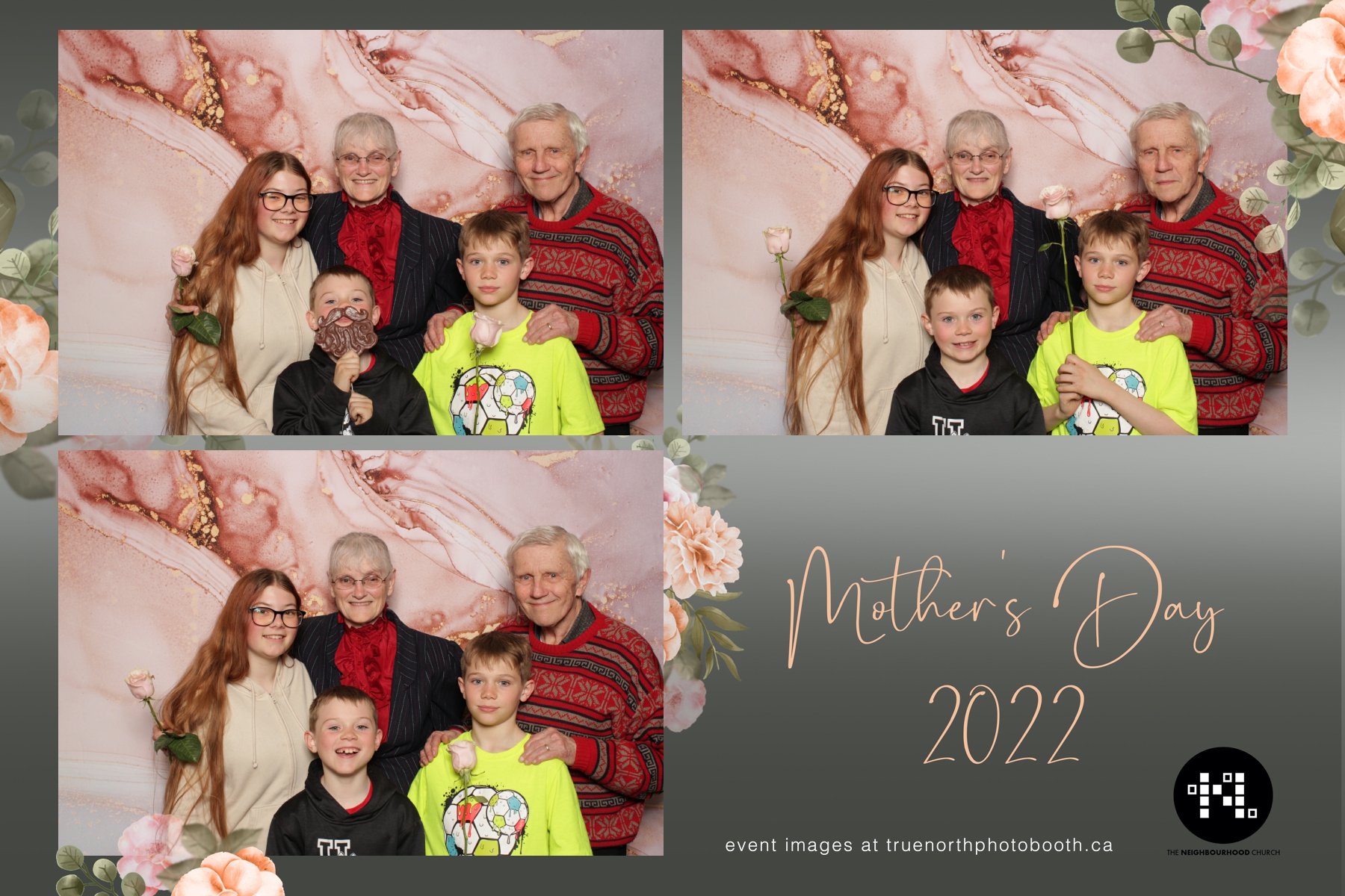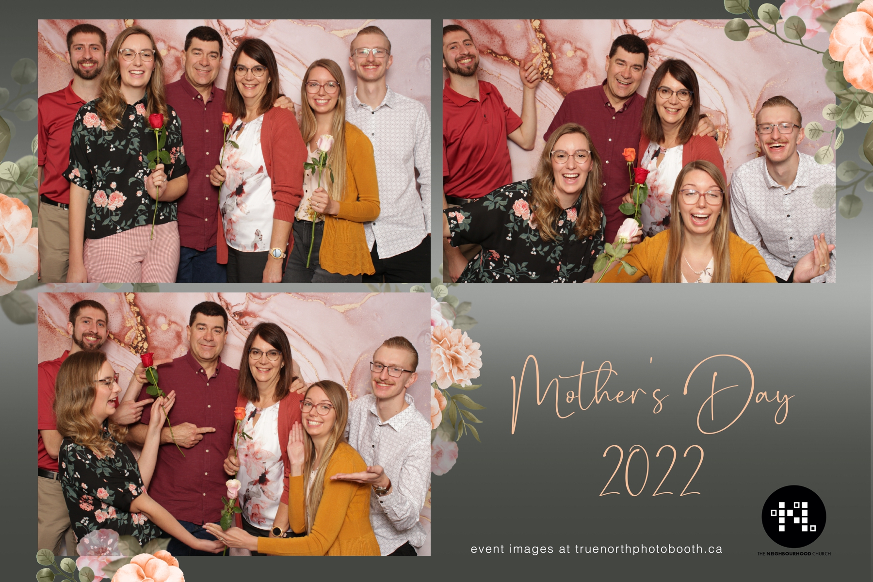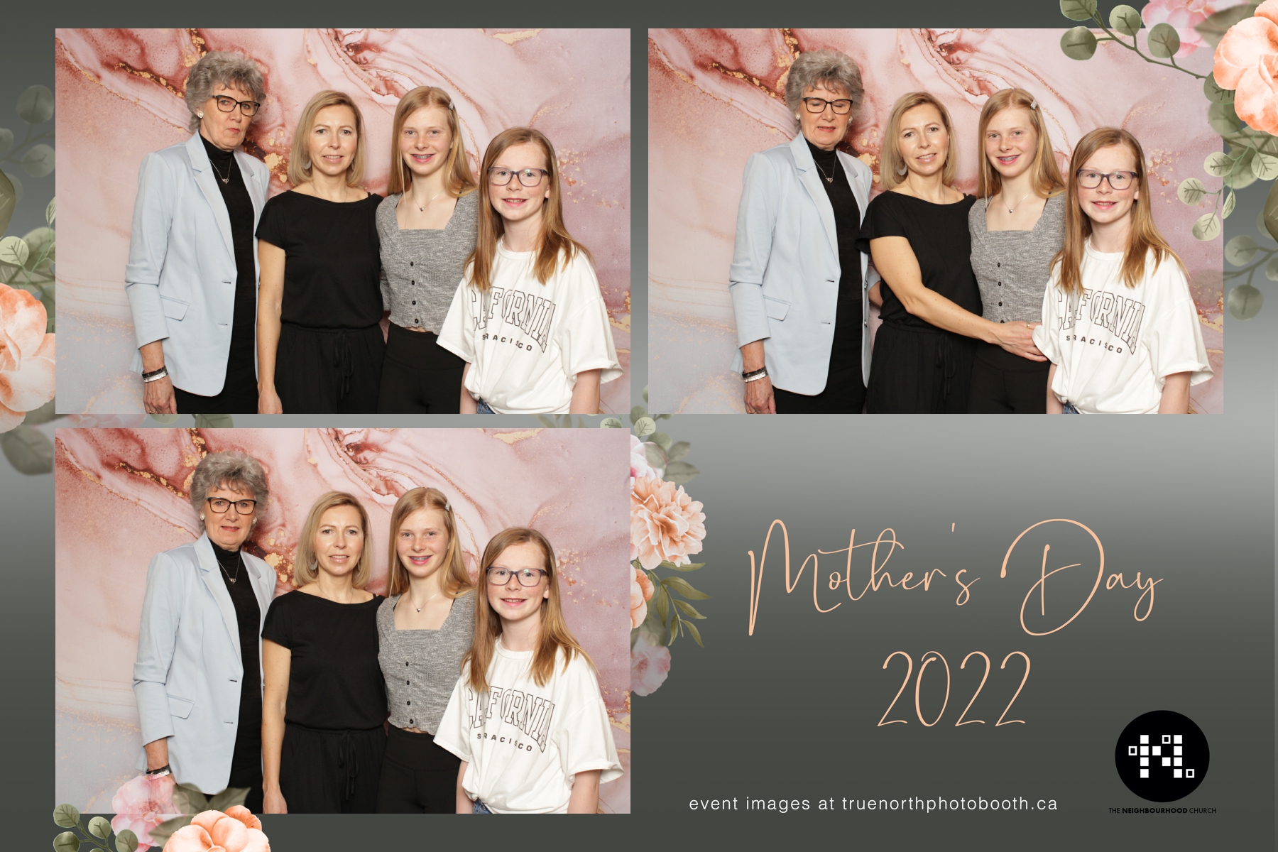 This year we got to spend mother’s day with all the amazing mothers at The Neighborhood Church here in Saskatoon. They were very intentional to make sure that all the mom’s in all three of their gatherings were appreciated, cared for and acknowledged for all the hard work they do on a regular basis for their families. Armed with a very beautiful 4X6 photo strip and our new Pink-gold marble backdrop, mom’s of all ages and stages grabbed their loved ones and headed to the photo booth for the one thing every mother wants on Mother’s Day…Ok… Maybe the number two or three thing on that list… A good family photo!  Thank you to Yasmin and the Neighborhood Church for having us. We love, love, love how honouring you are towards the mom’s in your community. Keep it up!