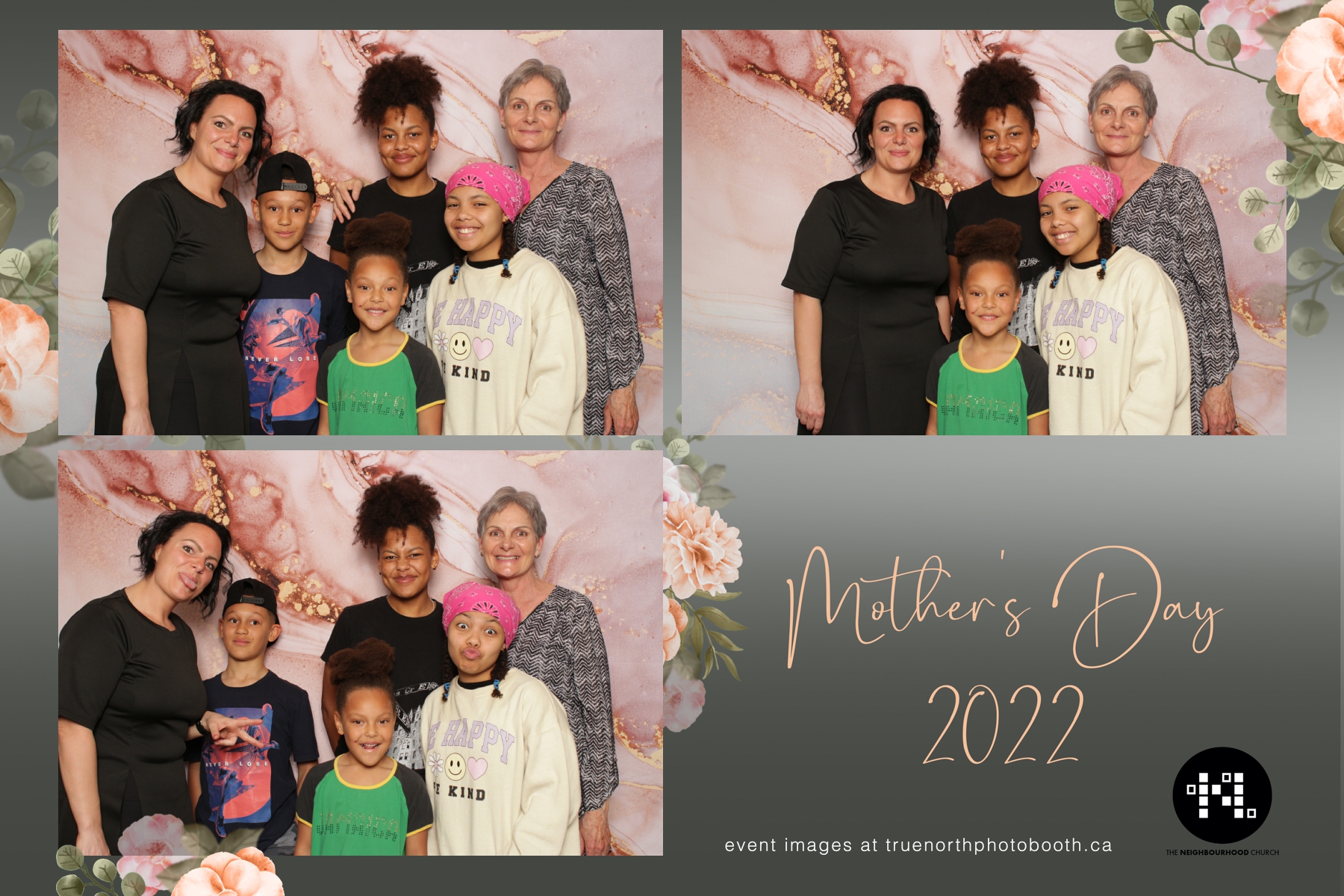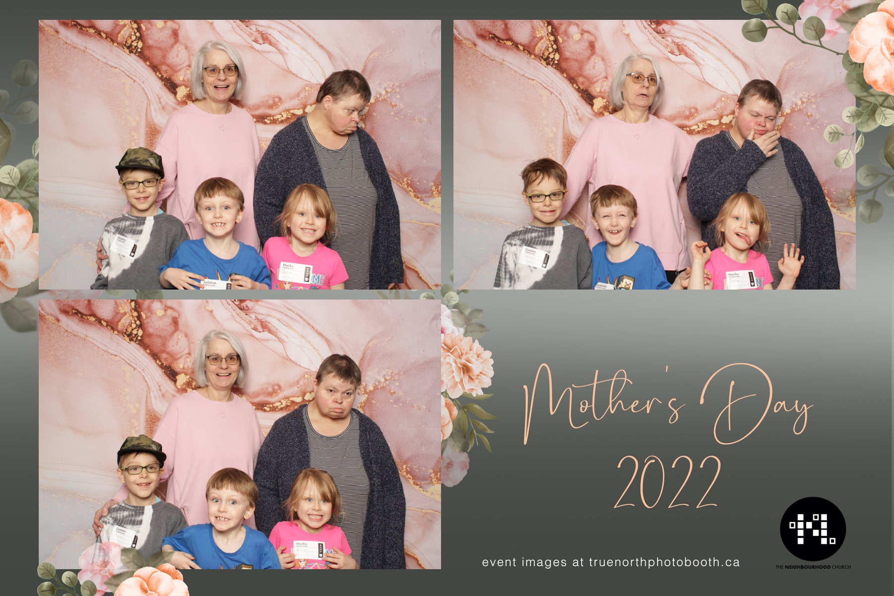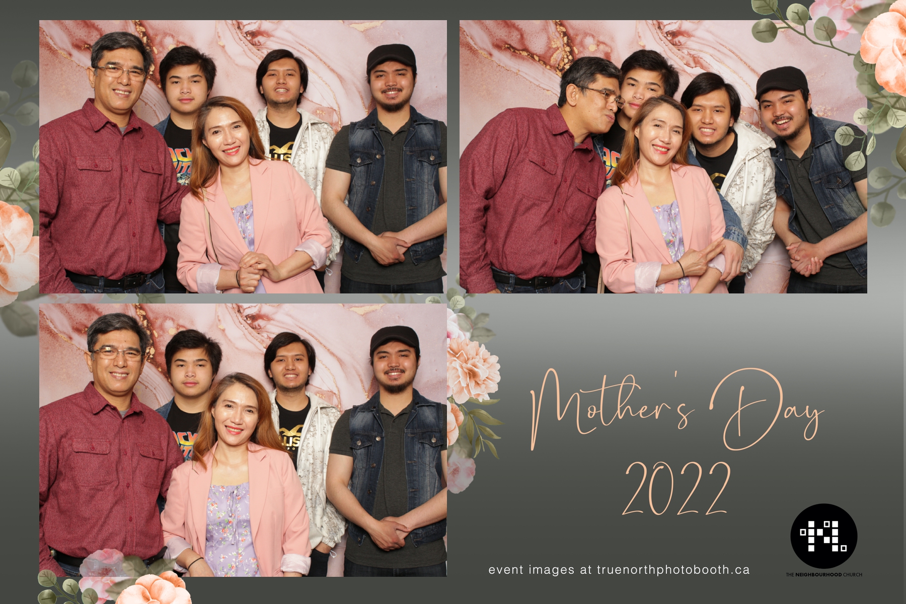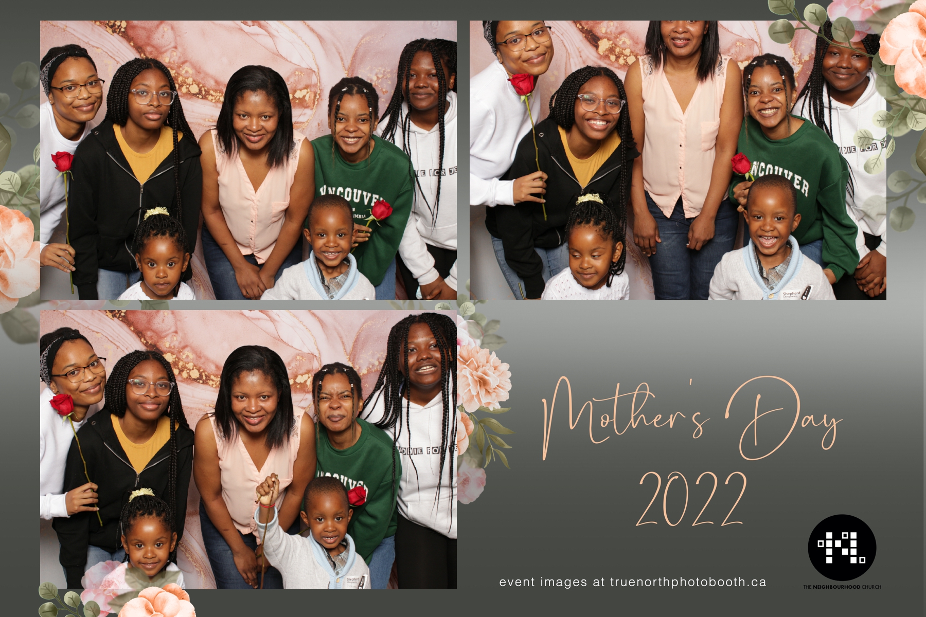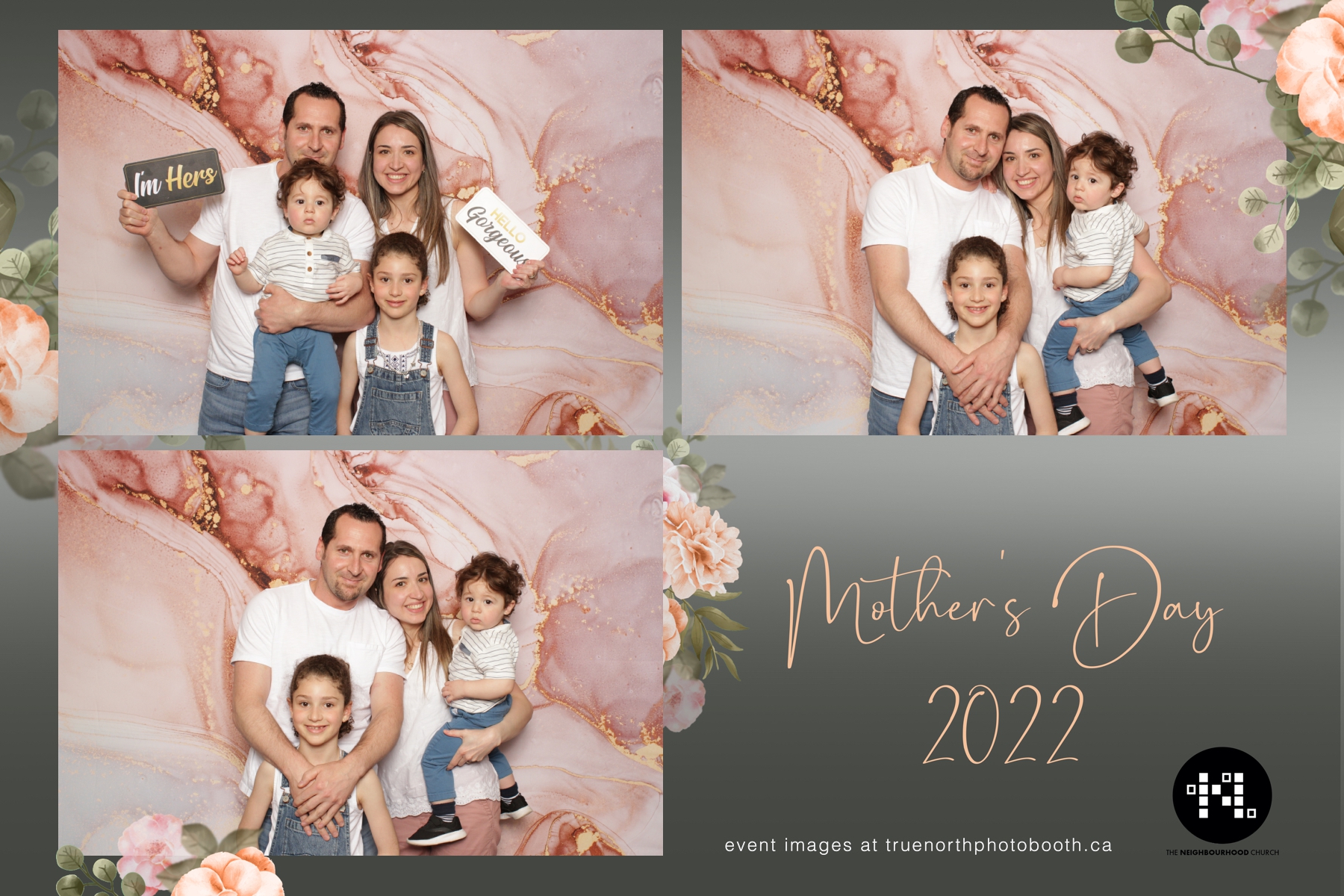 This year we got to spend mother’s day with all the amazing mothers at The Neighborhood Church here in Saskatoon. They were very intentional to make sure that all the mom’s in all three of their gatherings were appreciated, cared for and acknowledged for all the hard work they do on a regular basis for their families. Armed with a very beautiful 4X6 photo strip and our new Pink-gold marble backdrop, mom’s of all ages and stages grabbed their loved ones and headed to the photo booth for the one thing every mother wants on Mother’s Day…Ok… Maybe the number two or three thing on that list… A good family photo!  Thank you to Yasmin and the Neighborhood Church for having us. We love, love, love how honouring you are towards the mom’s in your community. Keep it up!