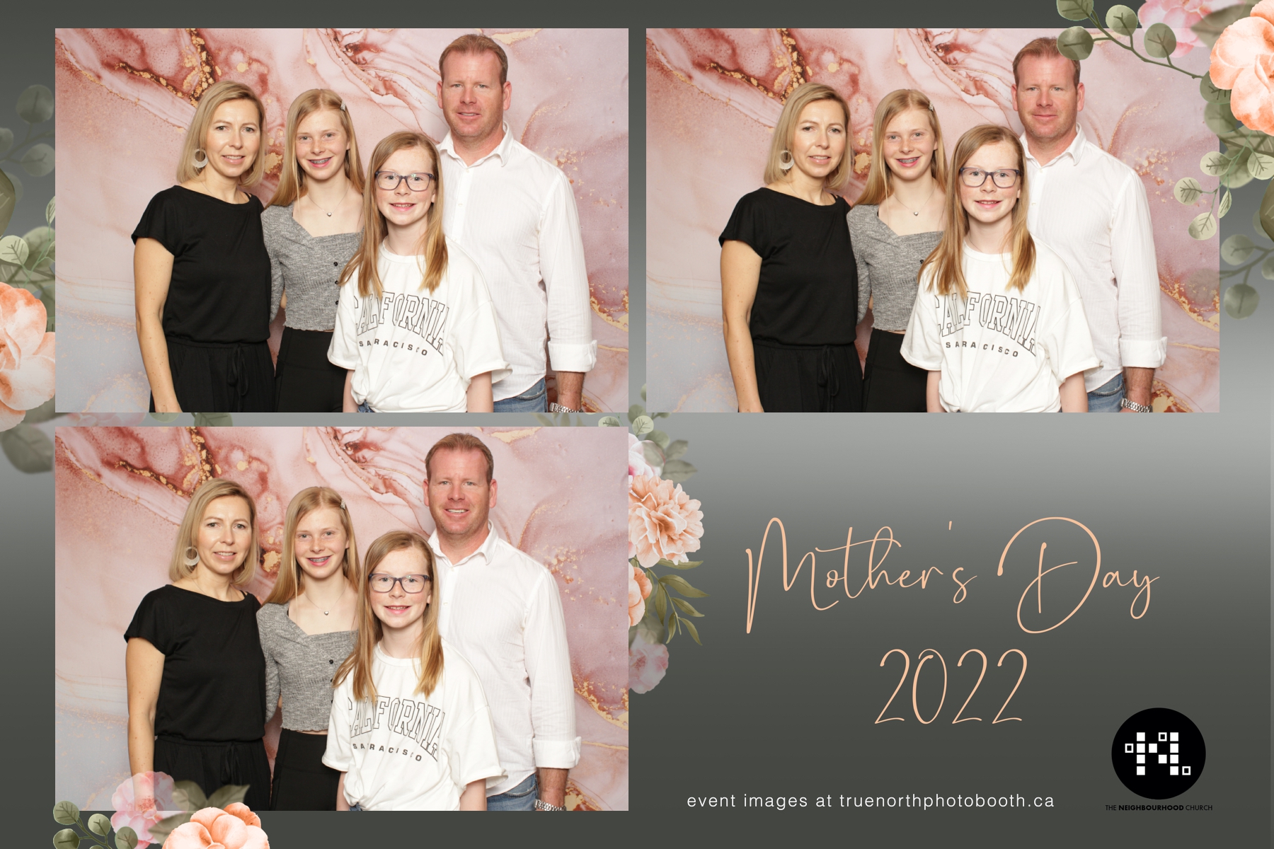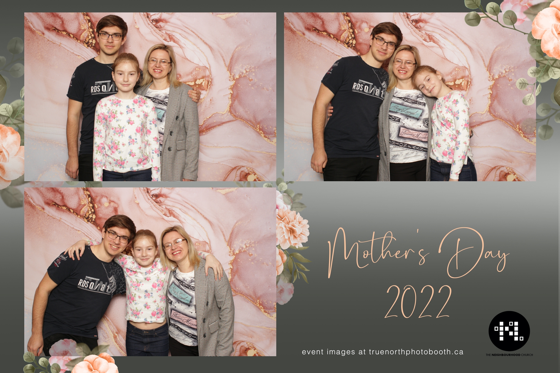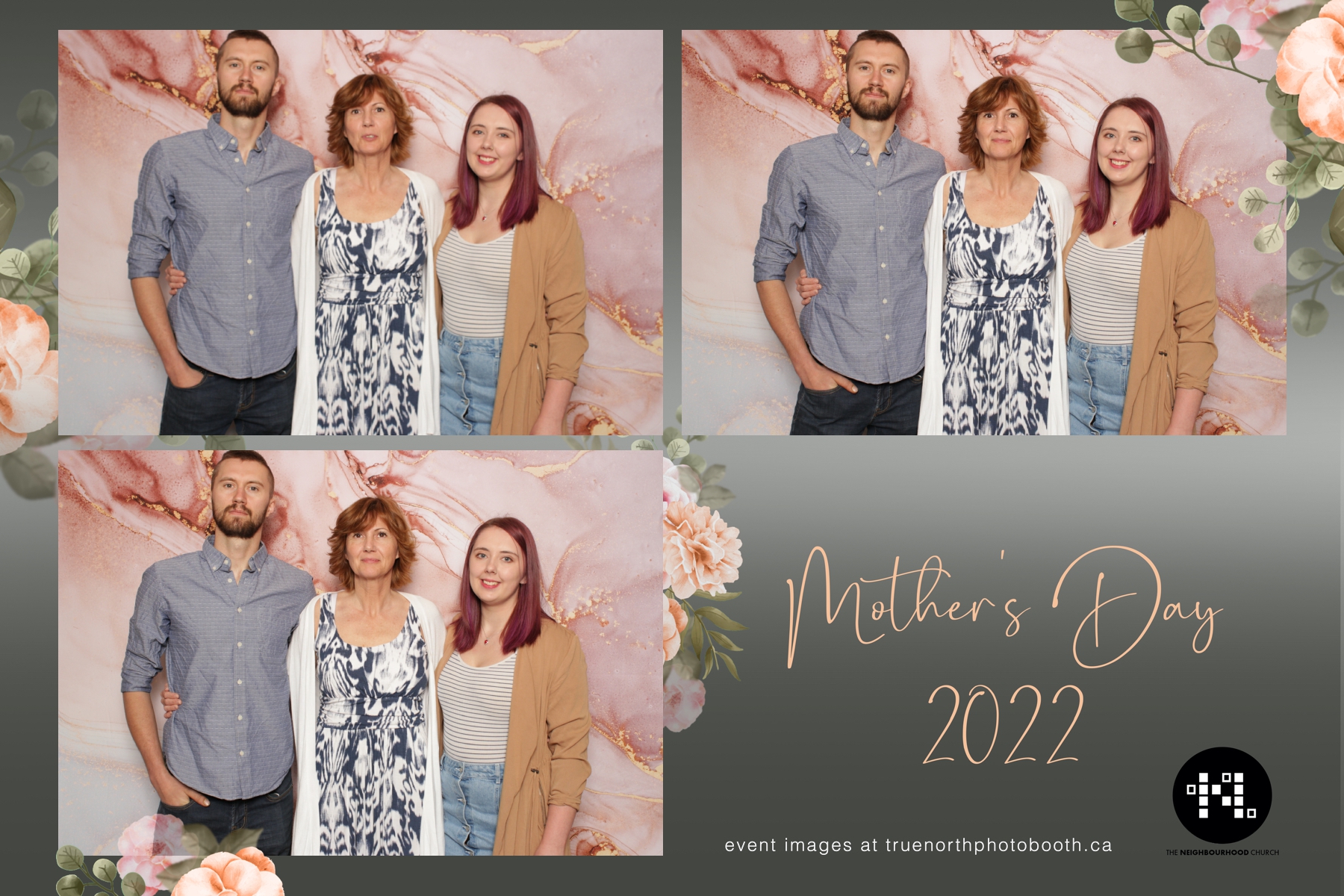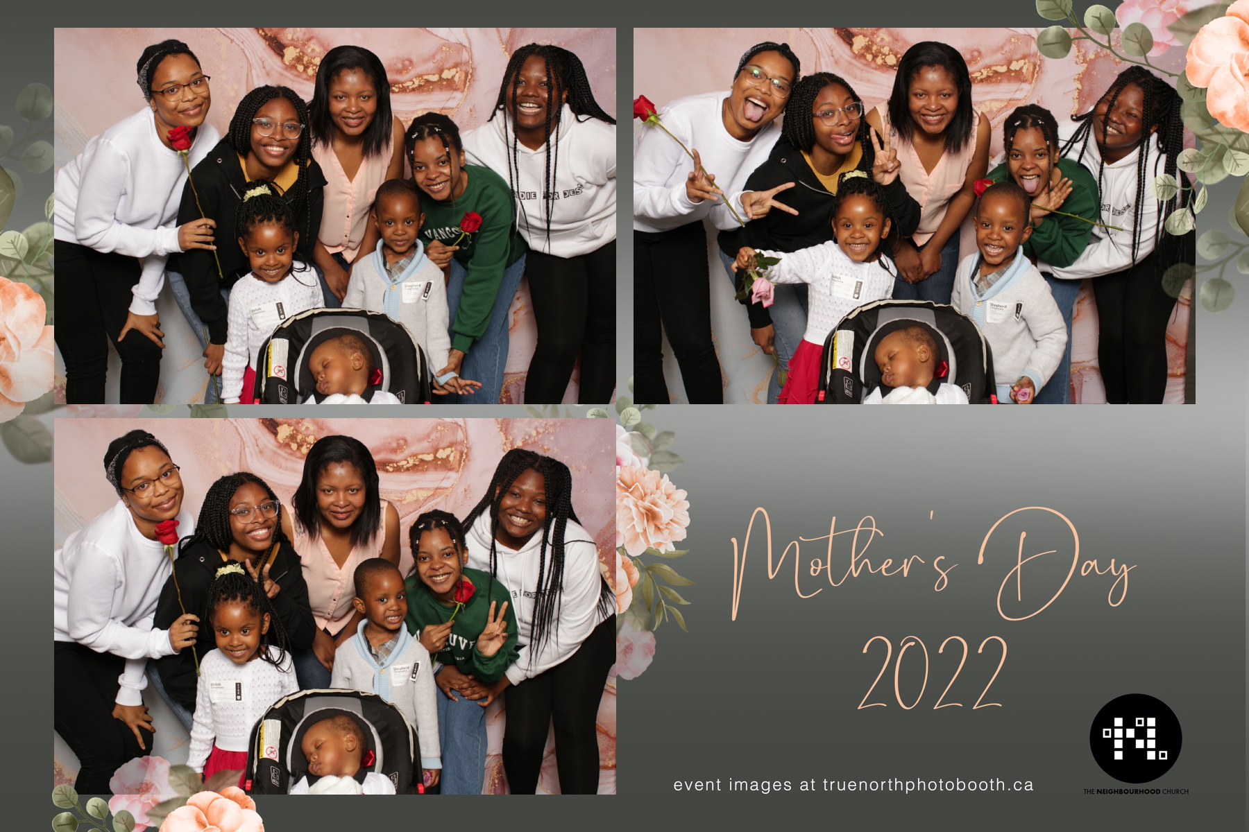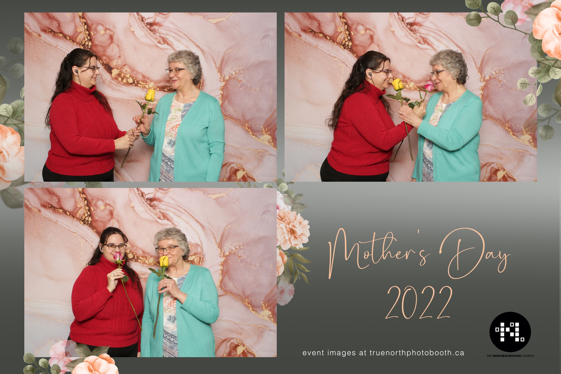 This year we got to spend mother’s day with all the amazing mothers at The Neighborhood Church here in Saskatoon. They were very intentional to make sure that all the mom’s in all three of their gatherings were appreciated, cared for and acknowledged for all the hard work they do on a regular basis for their families. Armed with a very beautiful 4X6 photo strip and our new Pink-gold marble backdrop, mom’s of all ages and stages grabbed their loved ones and headed to the photo booth for the one thing every mother wants on Mother’s Day…Ok… Maybe the number two or three thing on that list… A good family photo!  Thank you to Yasmin and the Neighborhood Church for having us. We love, love, love how honouring you are towards the mom’s in your community. Keep it up!