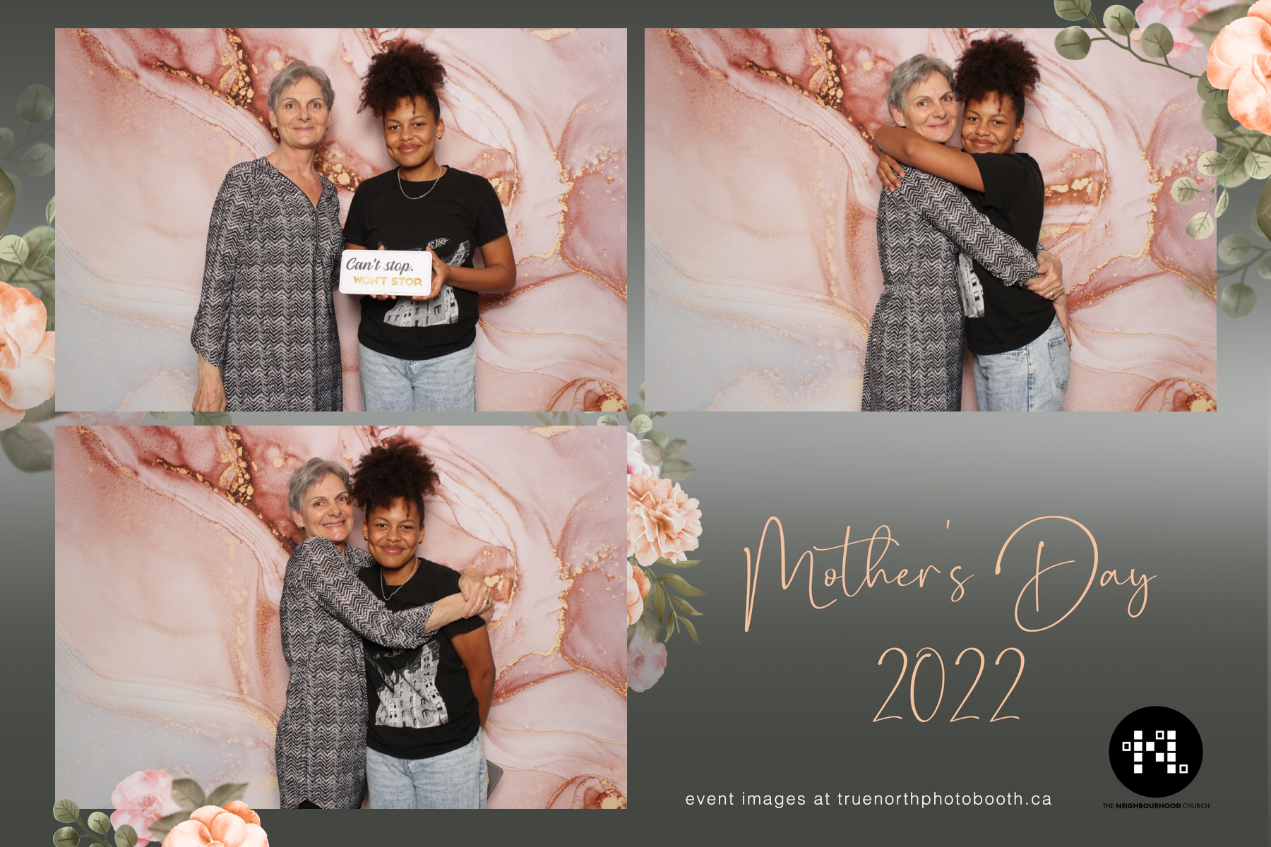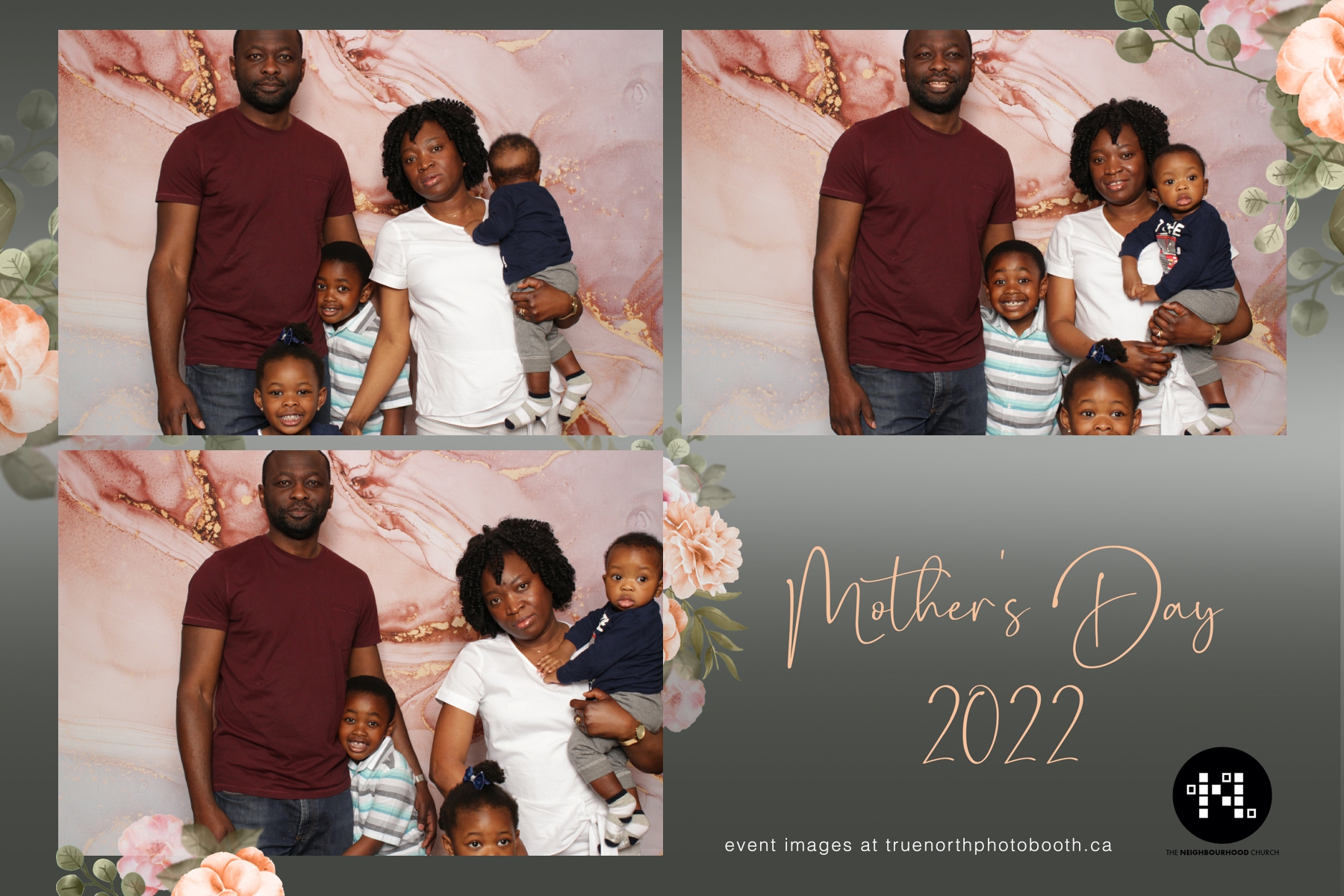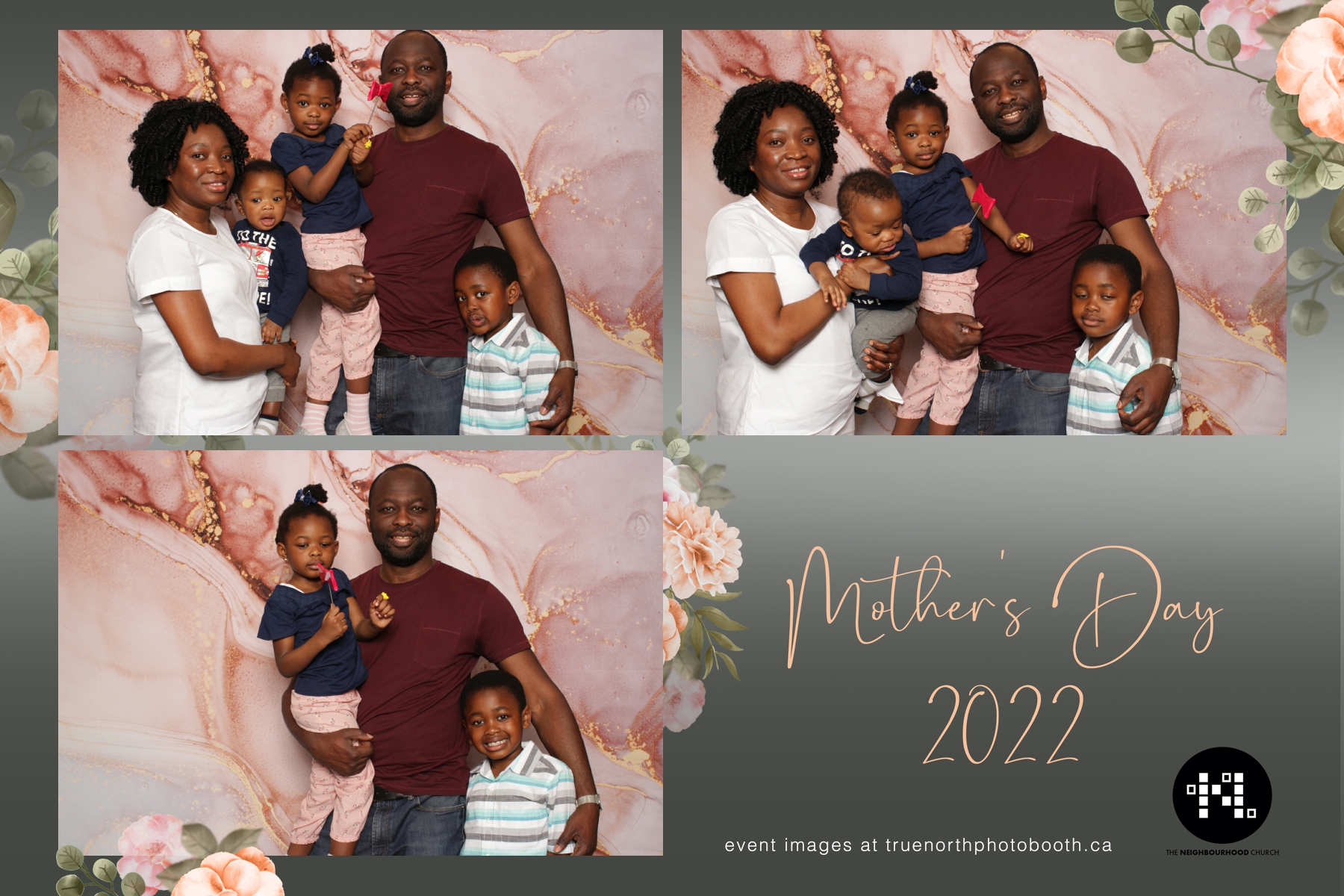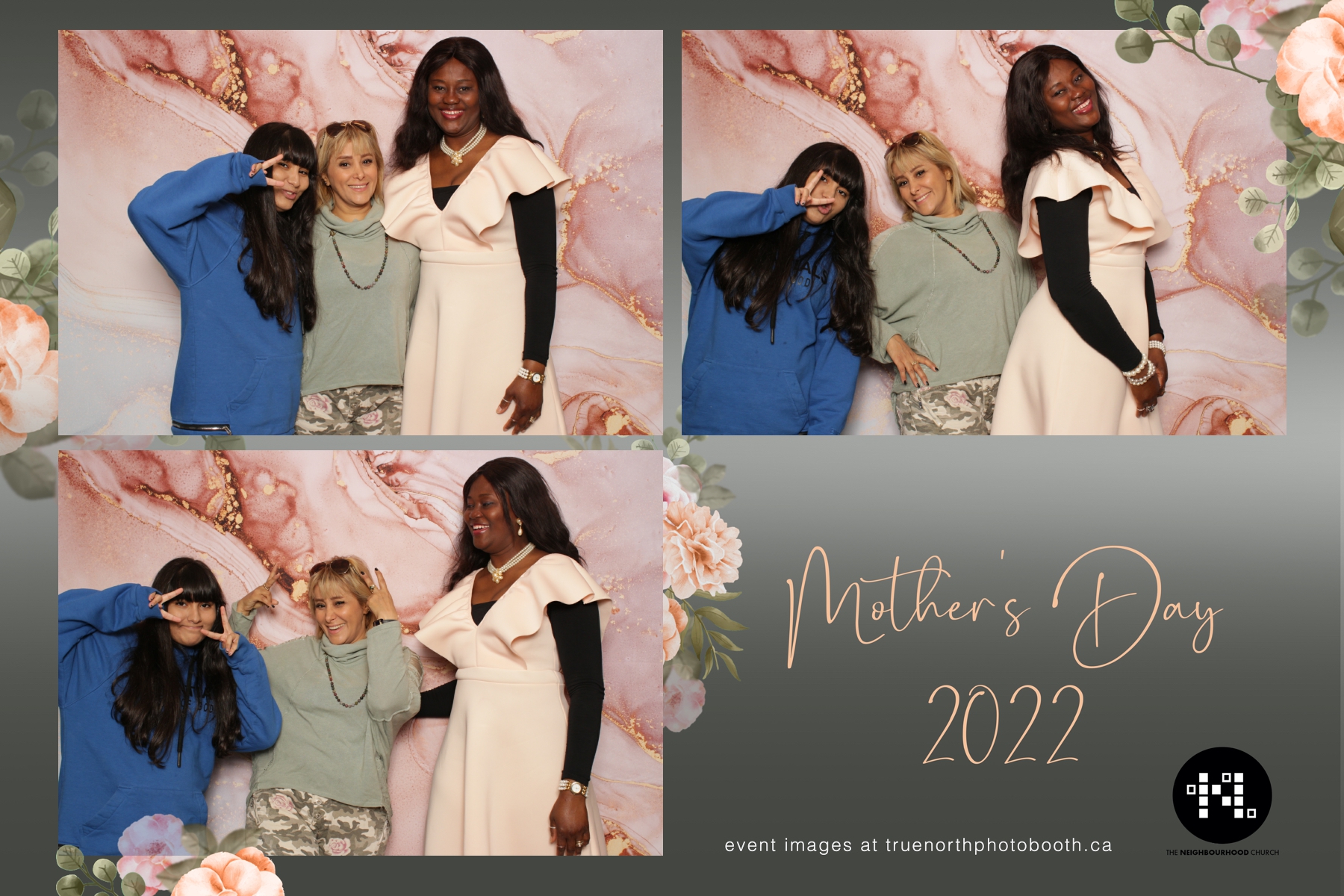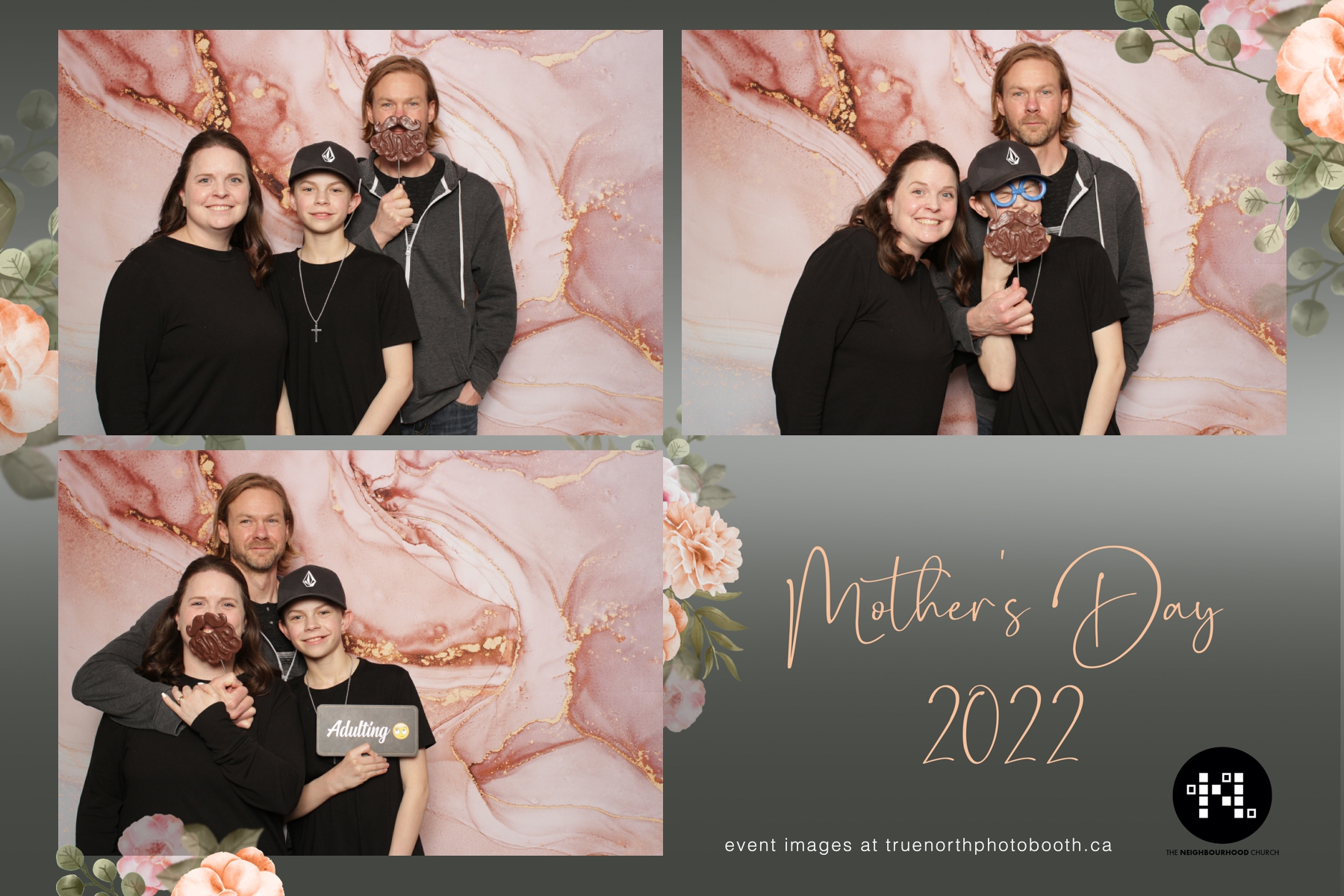 This year we got to spend mother’s day with all the amazing mothers at The Neighborhood Church here in Saskatoon. They were very intentional to make sure that all the mom’s in all three of their gatherings were appreciated, cared for and acknowledged for all the hard work they do on a regular basis for their families. Armed with a very beautiful 4X6 photo strip and our new Pink-gold marble backdrop, mom’s of all ages and stages grabbed their loved ones and headed to the photo booth for the one thing every mother wants on Mother’s Day…Ok… Maybe the number two or three thing on that list… A good family photo!  Thank you to Yasmin and the Neighborhood Church for having us. We love, love, love how honouring you are towards the mom’s in your community. Keep it up!