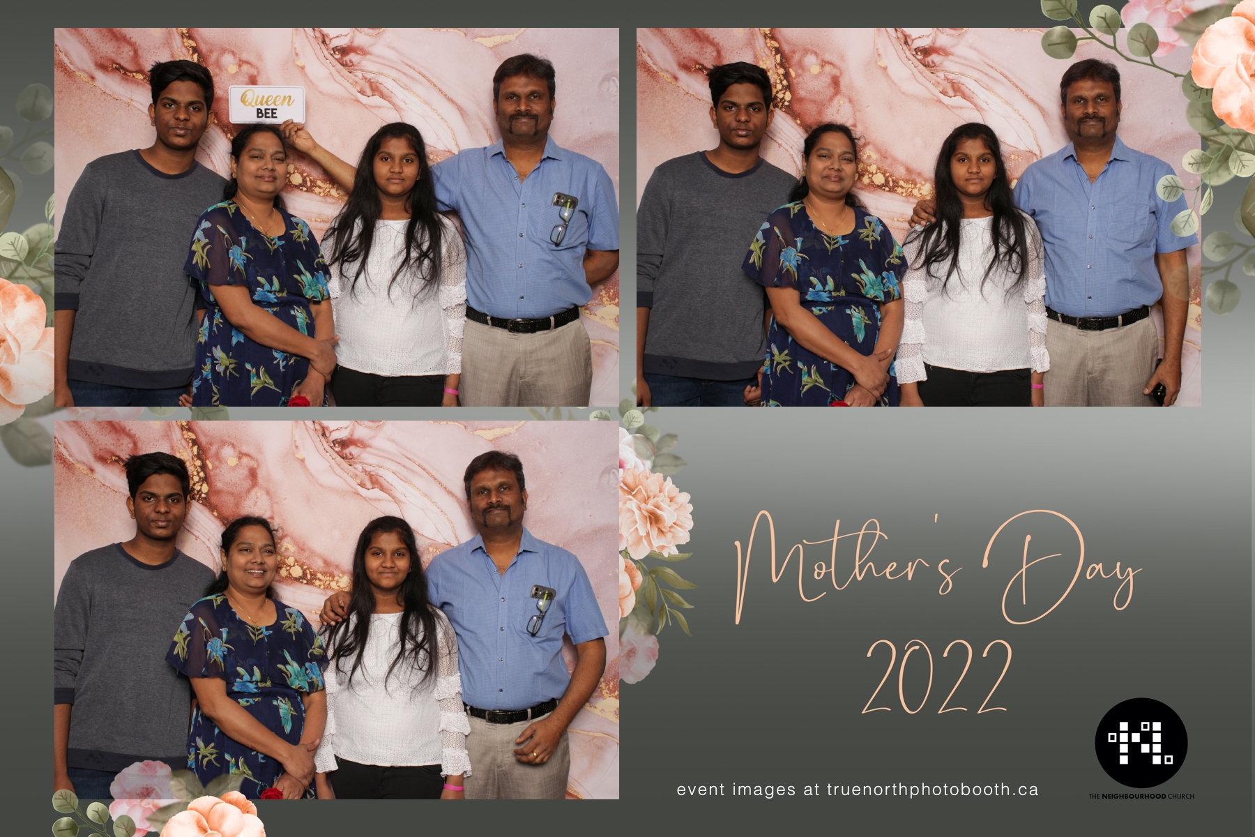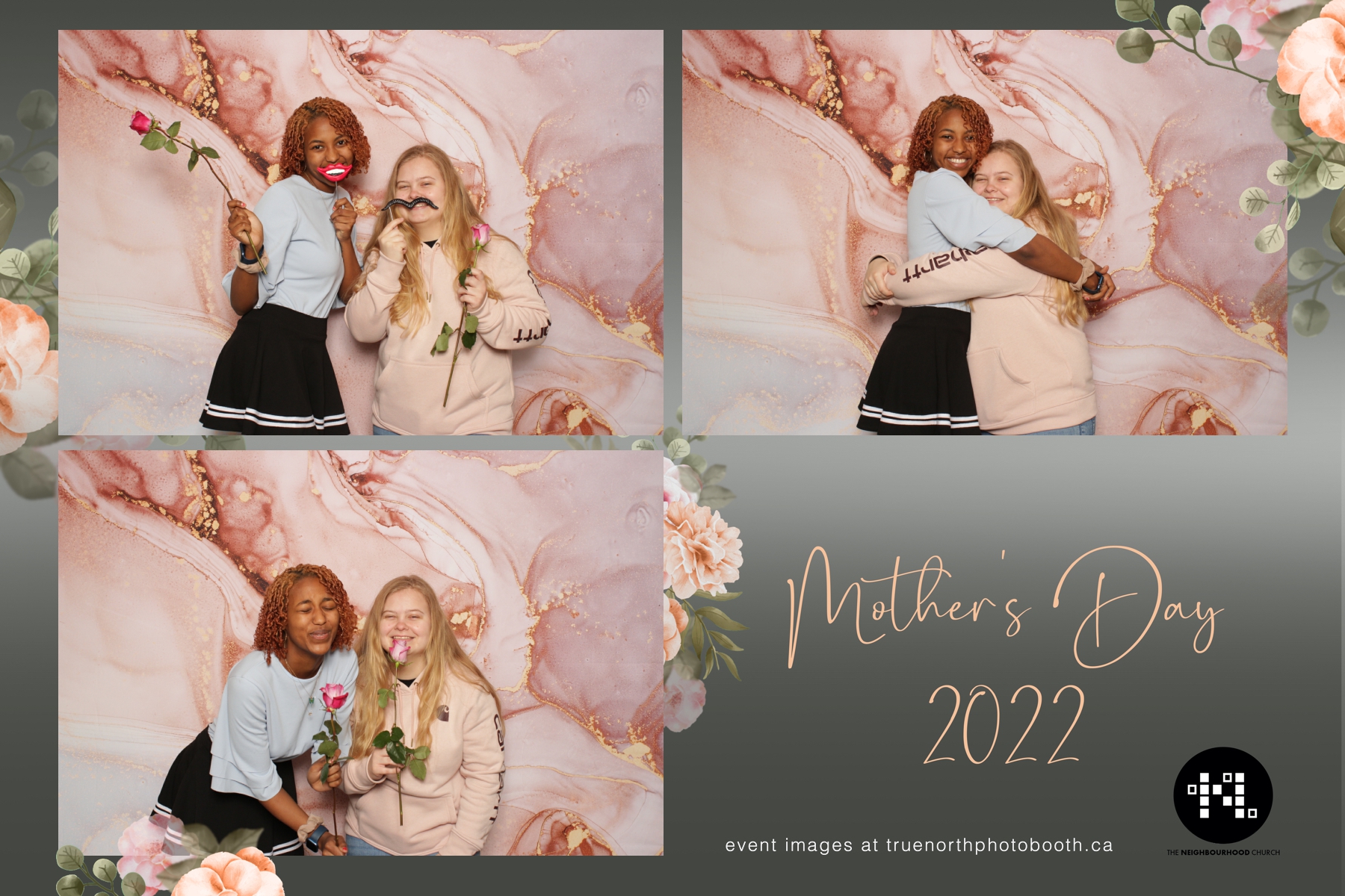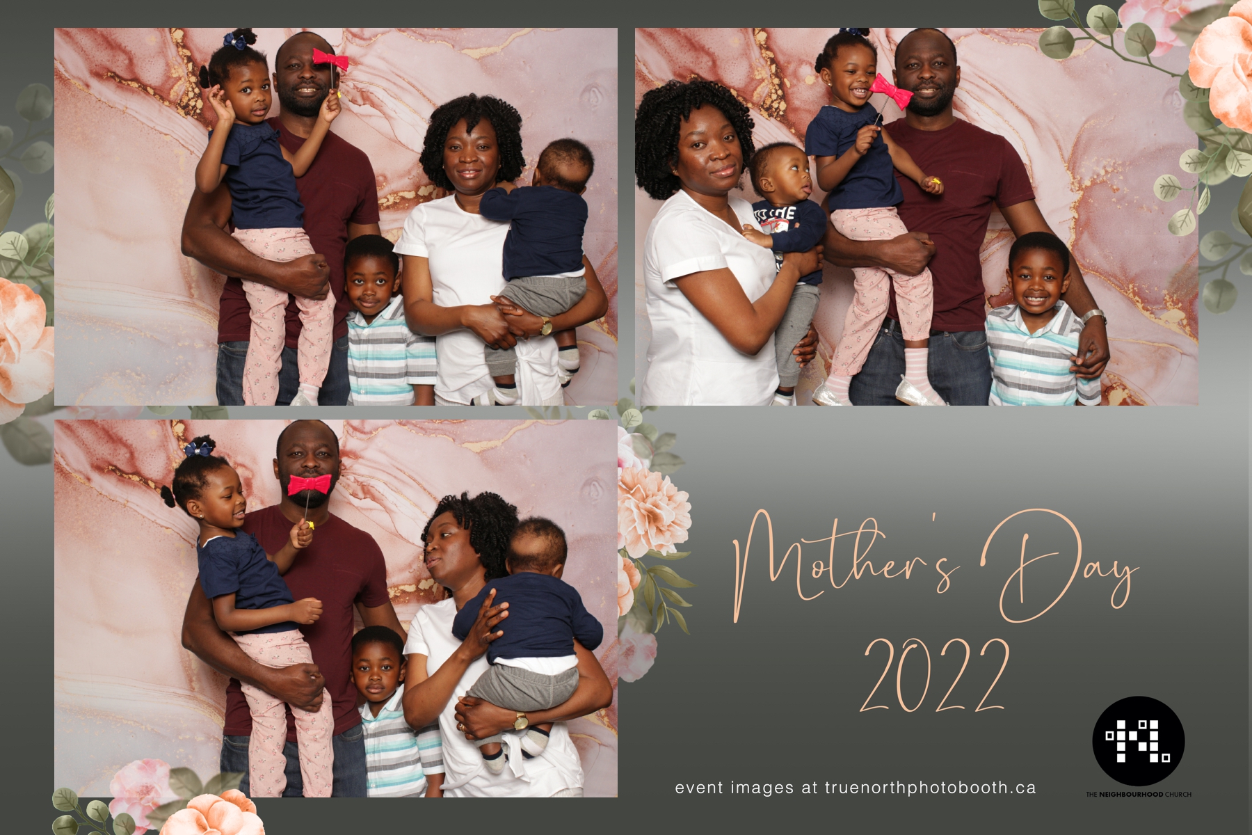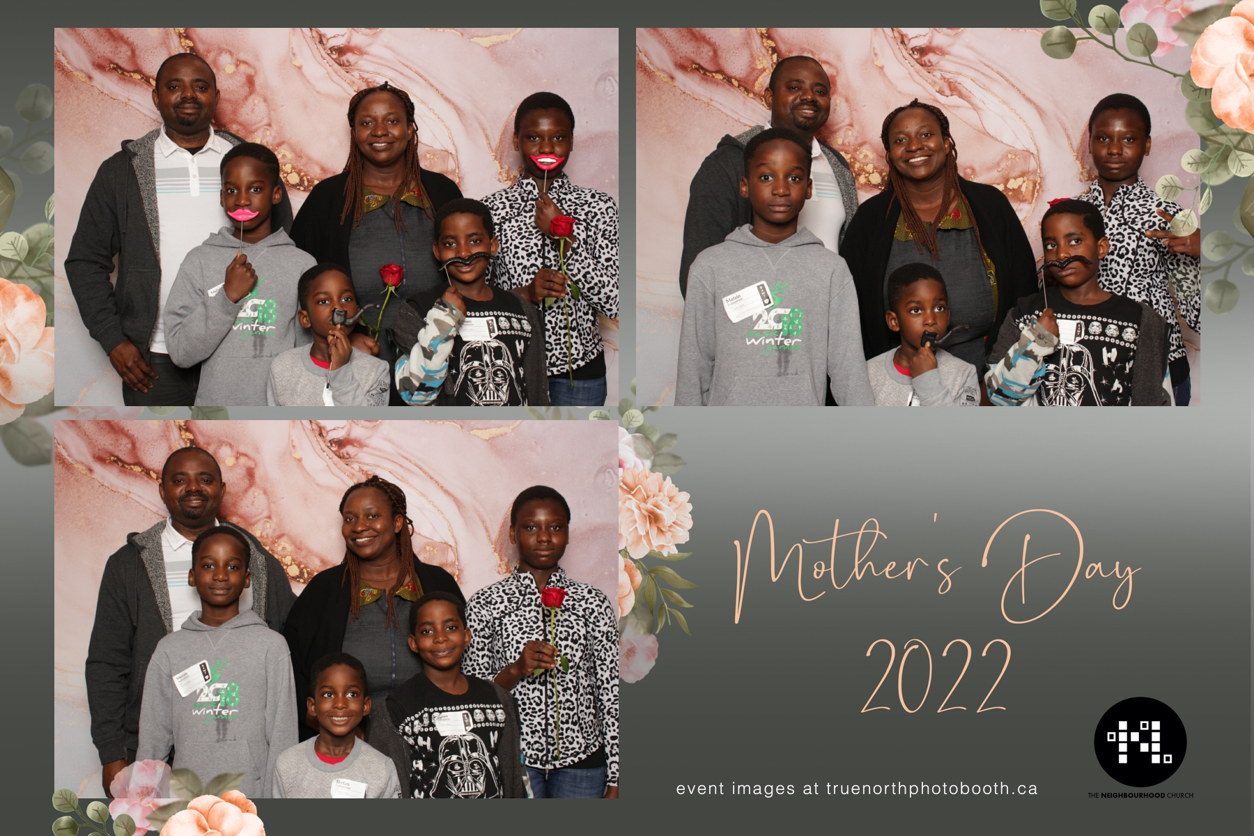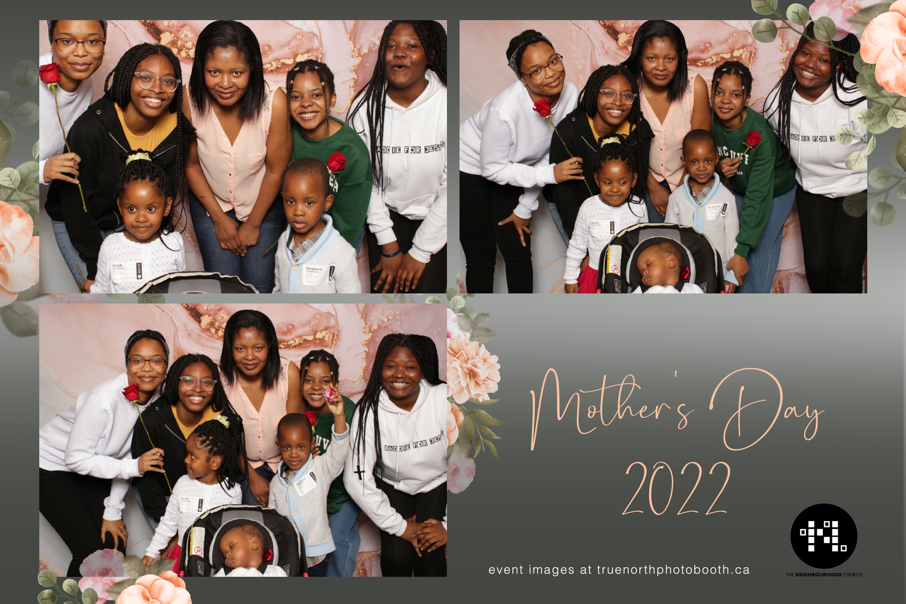 This year we got to spend mother’s day with all the amazing mothers at The Neighborhood Church here in Saskatoon. They were very intentional to make sure that all the mom’s in all three of their gatherings were appreciated, cared for and acknowledged for all the hard work they do on a regular basis for their families. Armed with a very beautiful 4X6 photo strip and our new Pink-gold marble backdrop, mom’s of all ages and stages grabbed their loved ones and headed to the photo booth for the one thing every mother wants on Mother’s Day…Ok… Maybe the number two or three thing on that list… A good family photo!  Thank you to Yasmin and the Neighborhood Church for having us. We love, love, love how honouring you are towards the mom’s in your community. Keep it up!