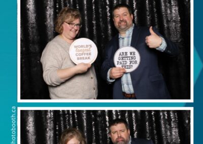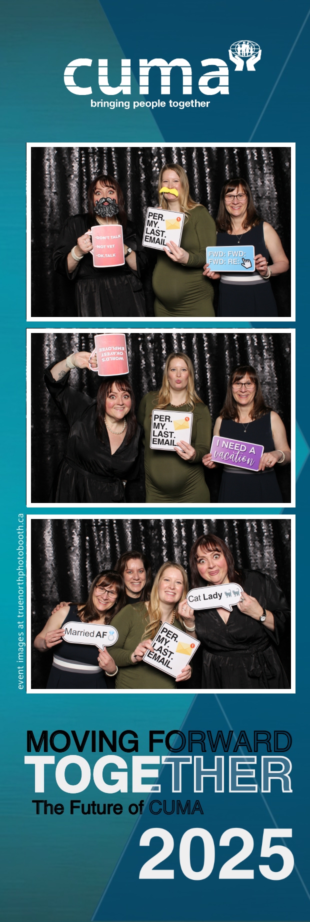 Adding to the excitement, True North Photo Booth was there to capture unforgettable moments with a 2X6 custom photo strip featuring the sleek and stylish Black Sequin backdrop. Attendees had a blast striking their best poses and taking home fun keepsakes to remember the night. True North Photo Booth was honored to be part of such a dynamic event, helping guests create lasting memories while celebrating the bright future of Saskatchewan’s credit unions!
