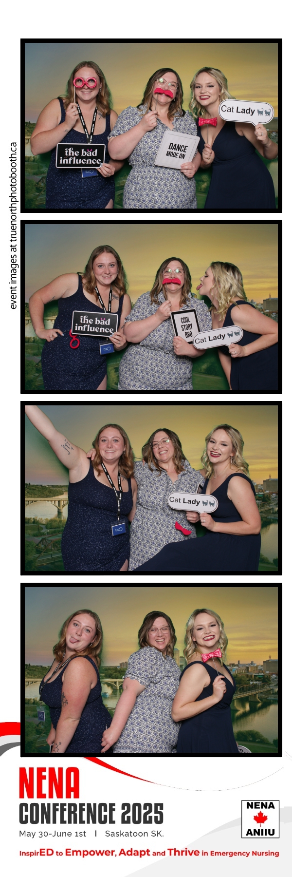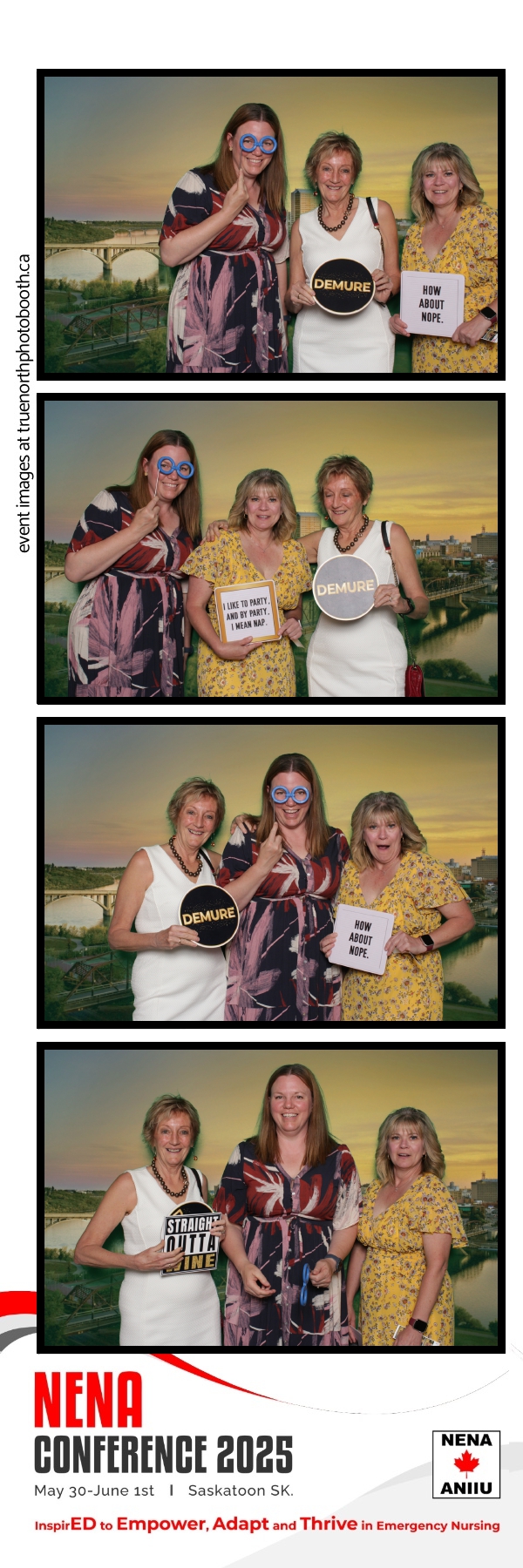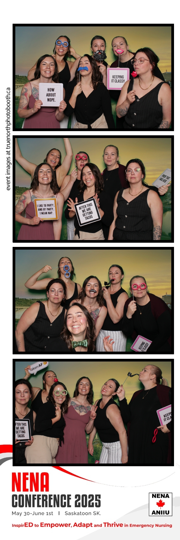The NENA Conference 2025, hosted by the National Emergency Nursing Association (NENA), was an inspiring three-day event held at the stunning Remai Modern in Saskatoon. With the theme “InspirED to Empower, Adapt and Thrive in Emergency Nursing,” the conference brought together emergency nursing professionals from across the country for a dynamic lineup of workshops, training sessions, plenaries, breakout speakers, and vendor showcases. True North Photo Booth was proud to be part of this empowering experience, providing a 2X6 custom photo strip setup with an engaging green screen backdrop that allowed attendees to capture fun, personalized memories.