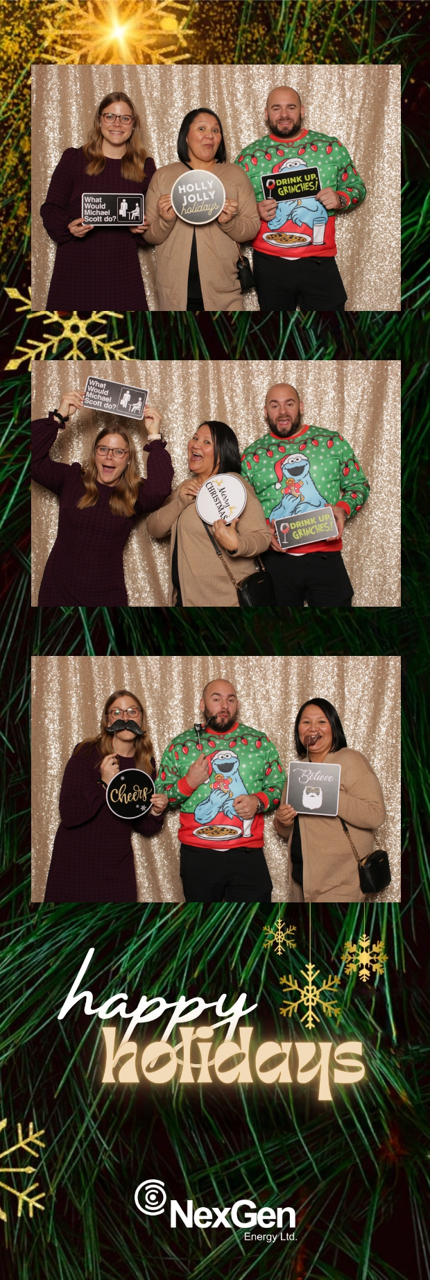 The NexGen Holiday Party 2023, held at the elegant Remai Modern, was a seamless blend of festive revelry and corporate sophistication, and True North Photo Booth added a touch of sparkle to this distinctive corporate celebration. The 2X6 custom photo strips became instant treasures, capturing the joy and camaraderie that marked NexGen’s celebration of the holiday season. Against the backdrop of the sophisticated Champagne Sequin Backdrop, every photo was a glitzy reflection of the company’s success and the high spirits of the holiday.