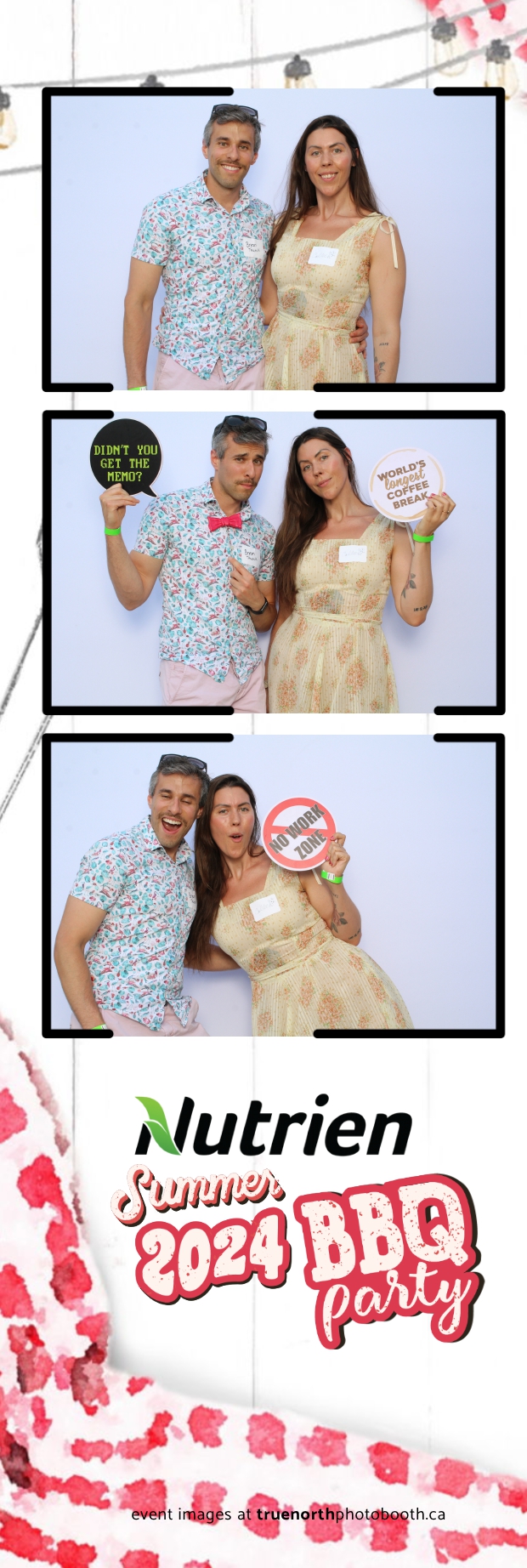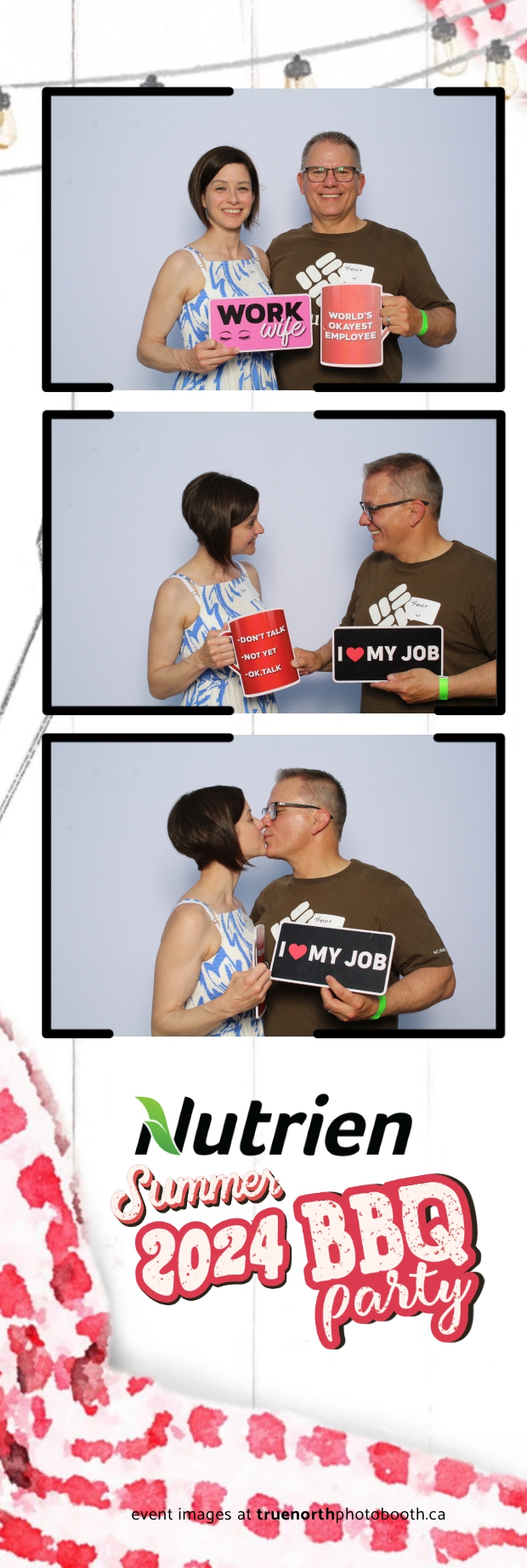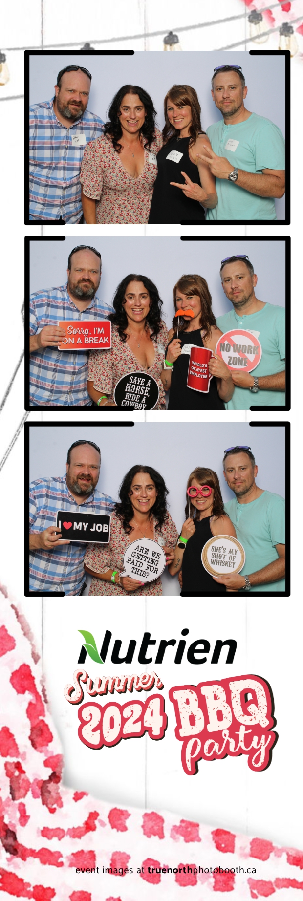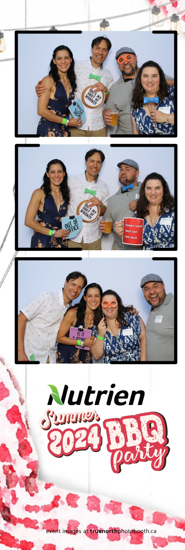 True North Photo Booth featured a stunning white pillow backdrop, creating an elegant yet fun atmosphere for capturing memories. Guests enjoyed the 2X6 custom photo strips, taking home personalized keepsakes that commemorated the day. The presence of True North Photo Booth elevated the entire event, offering a unique and interactive experience that kept everyone entertained. Their professional service and high-quality photos ensured that the Nutrien 2024 Summer BBQ was not only memorable but also beautifully documented, making it a standout corporate event of the summer.